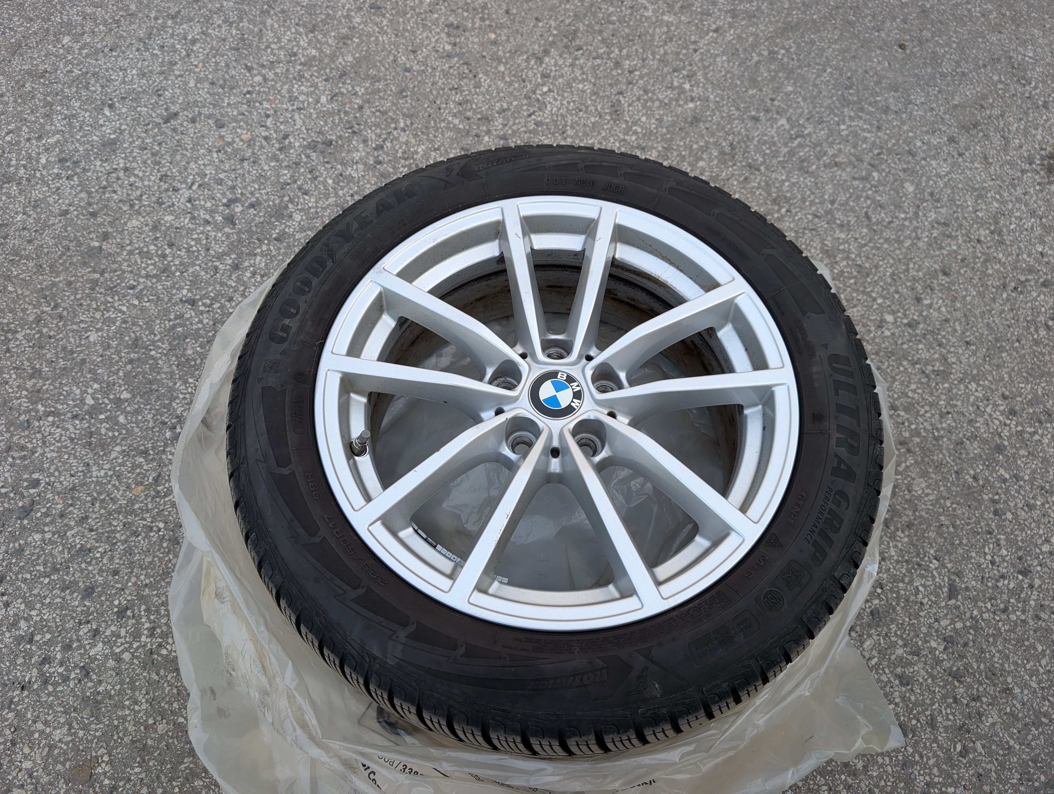 4x zimné pneumatiky na diskoch, uložené vo vozidle.