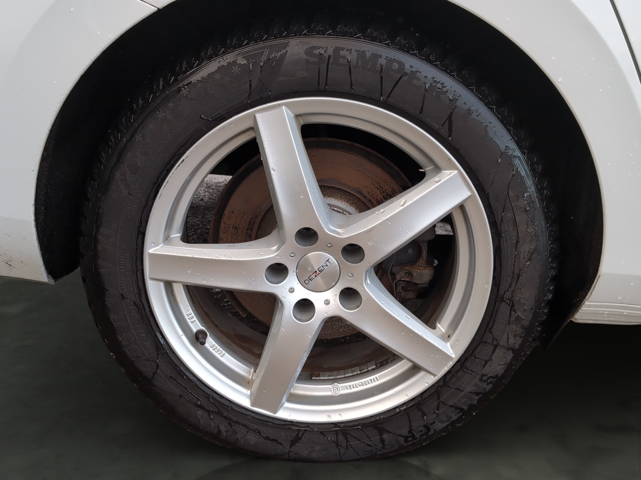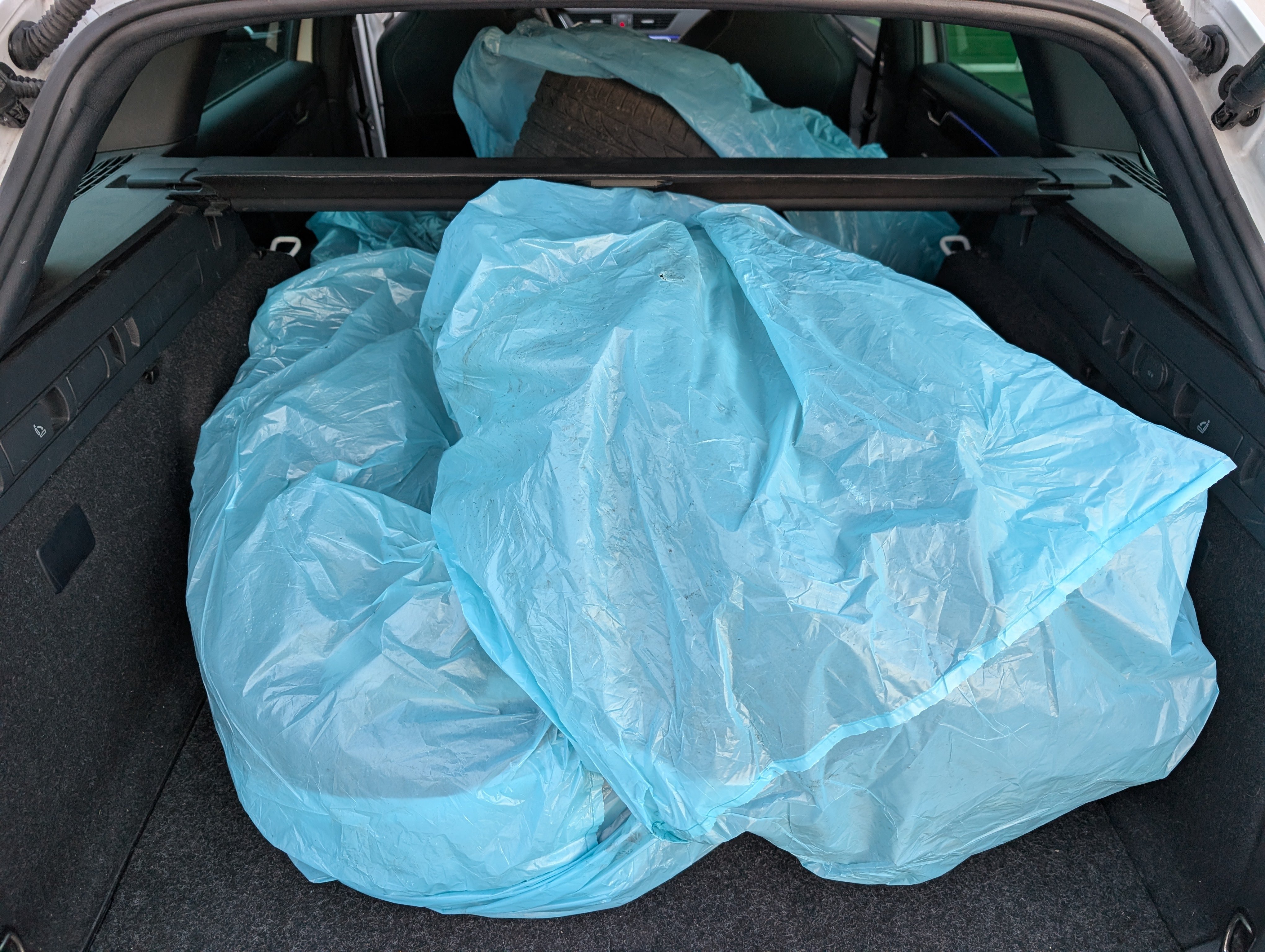 4x letné pneumatiky na diskoch, uložené vo vozidle.