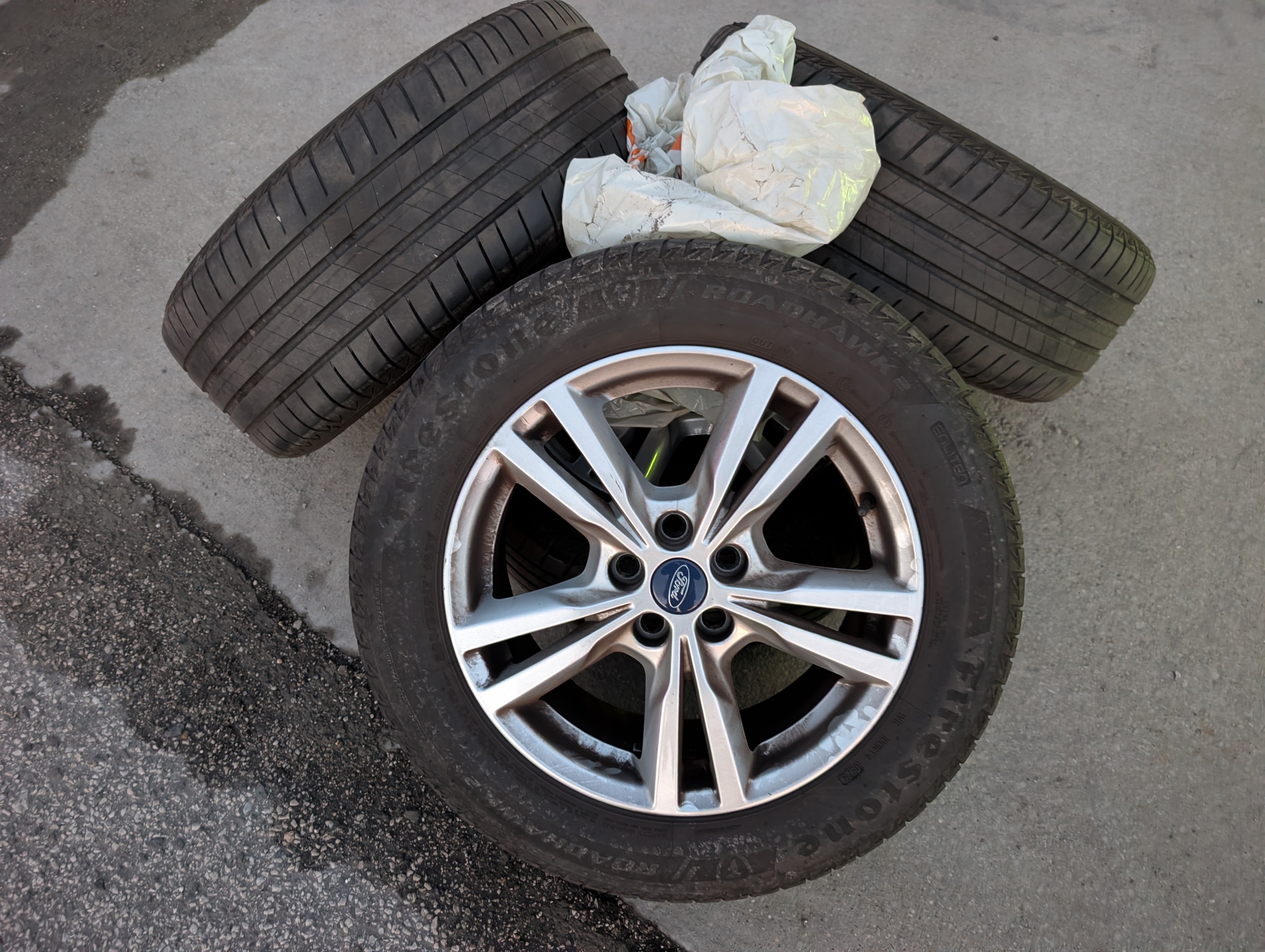 4x letné pneumatiky na diskoch, uložené vo vozidle.