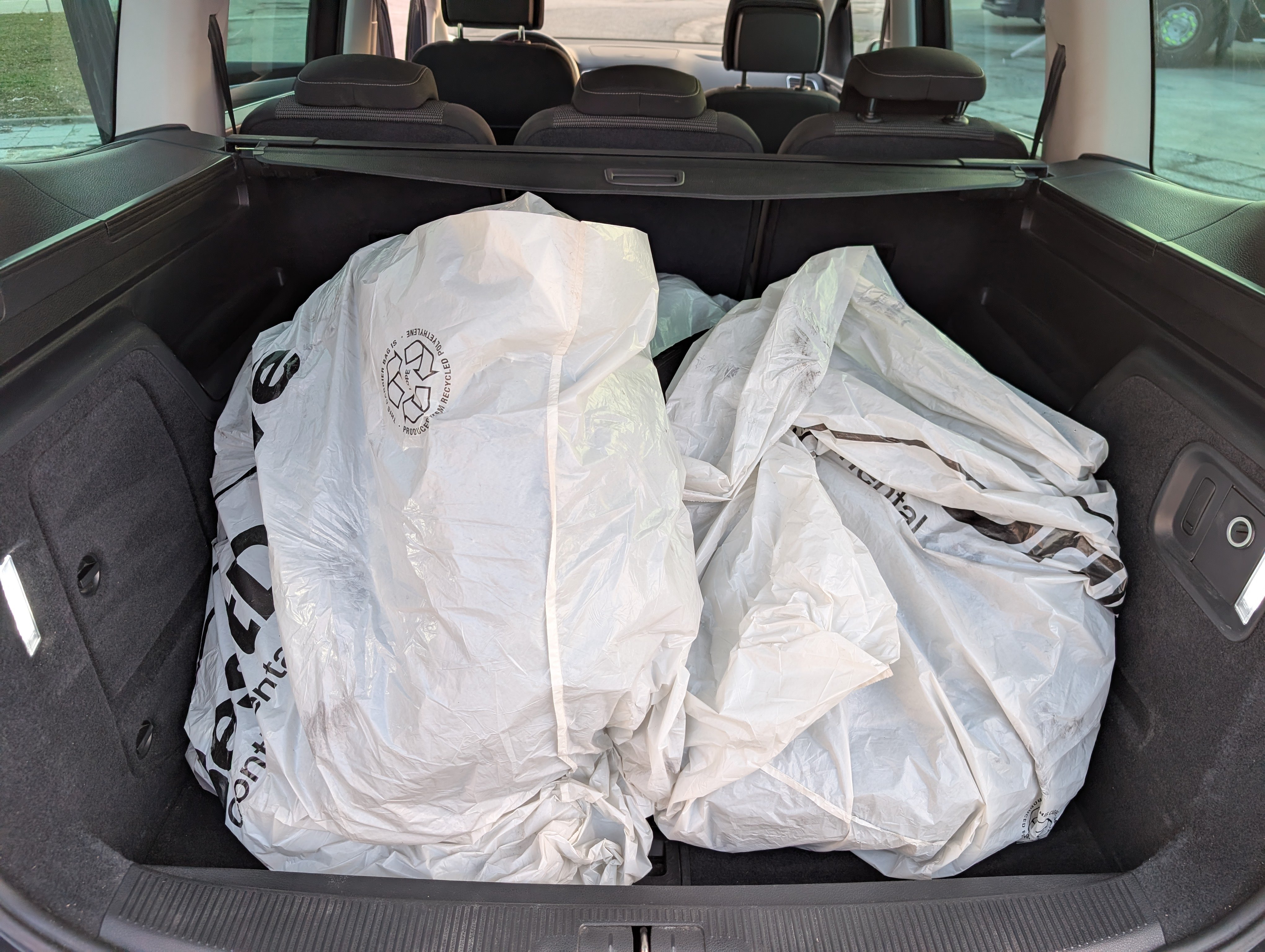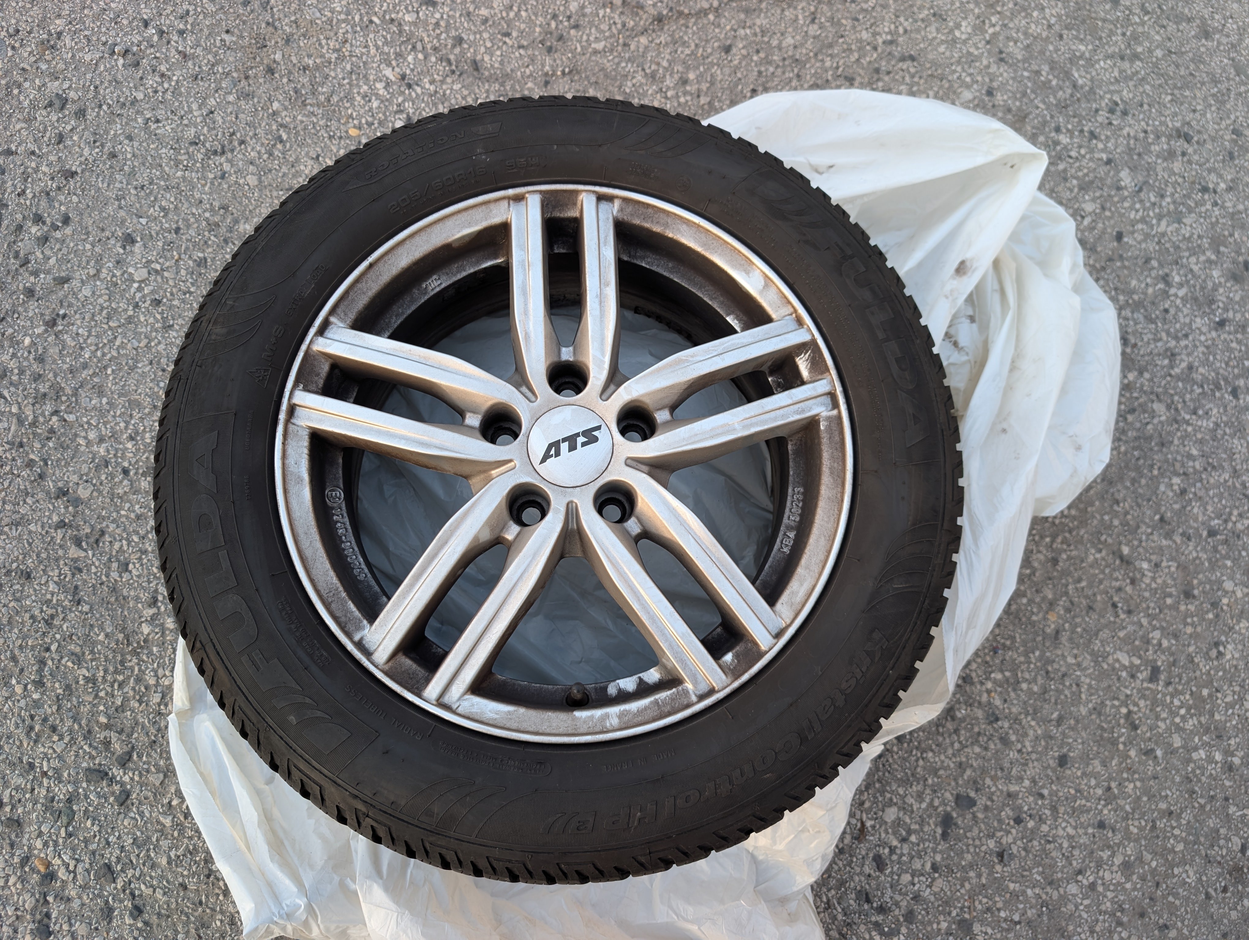 4x zimné pneumatiky na diskoch, uložené vo vozidle.