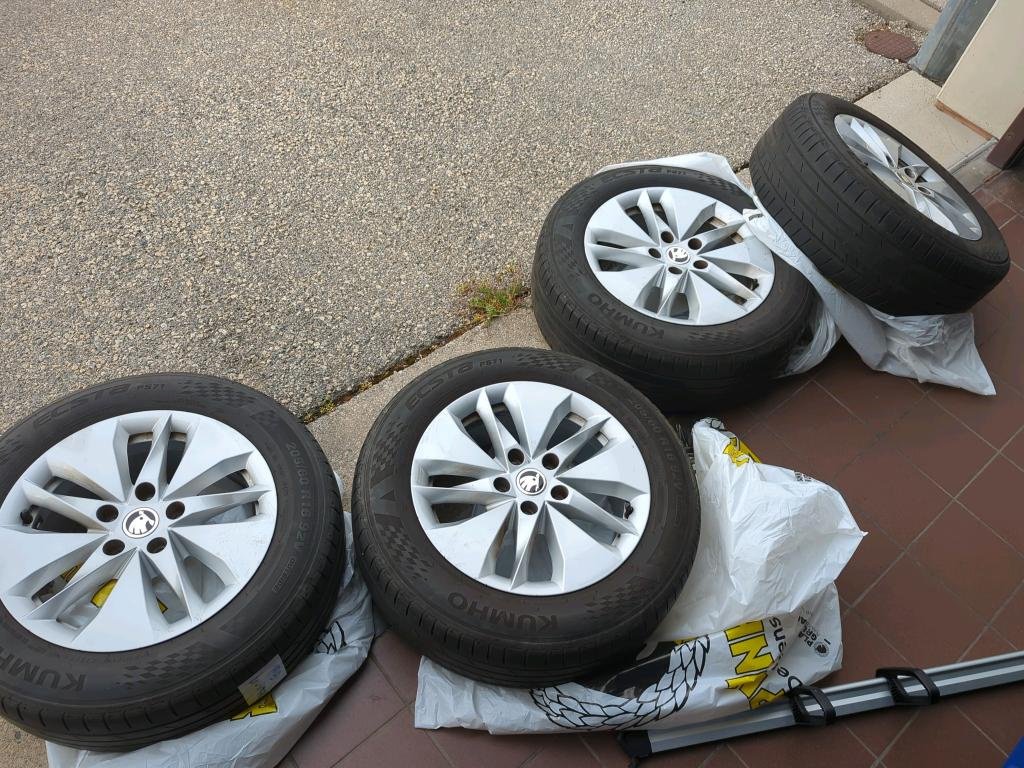 4x letné pneumatiky na diskoch, uložené vo vozidle.