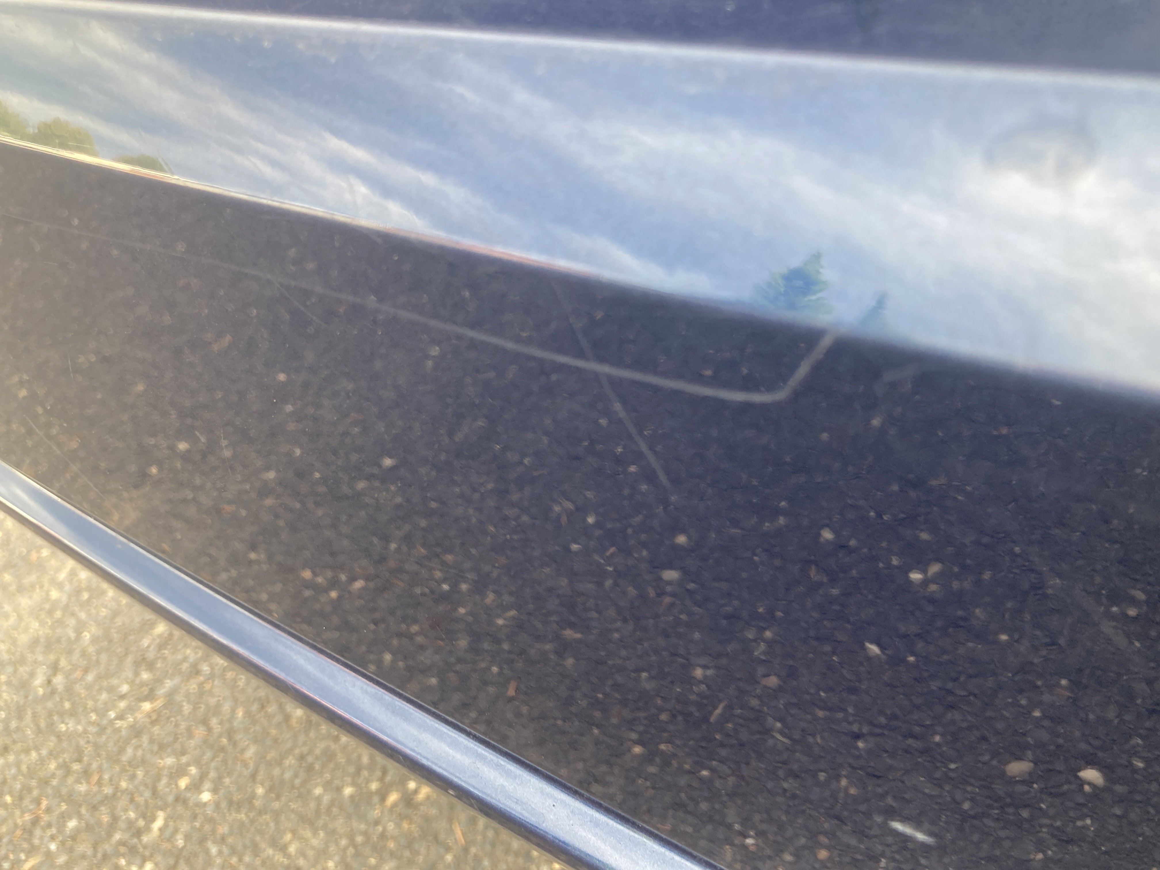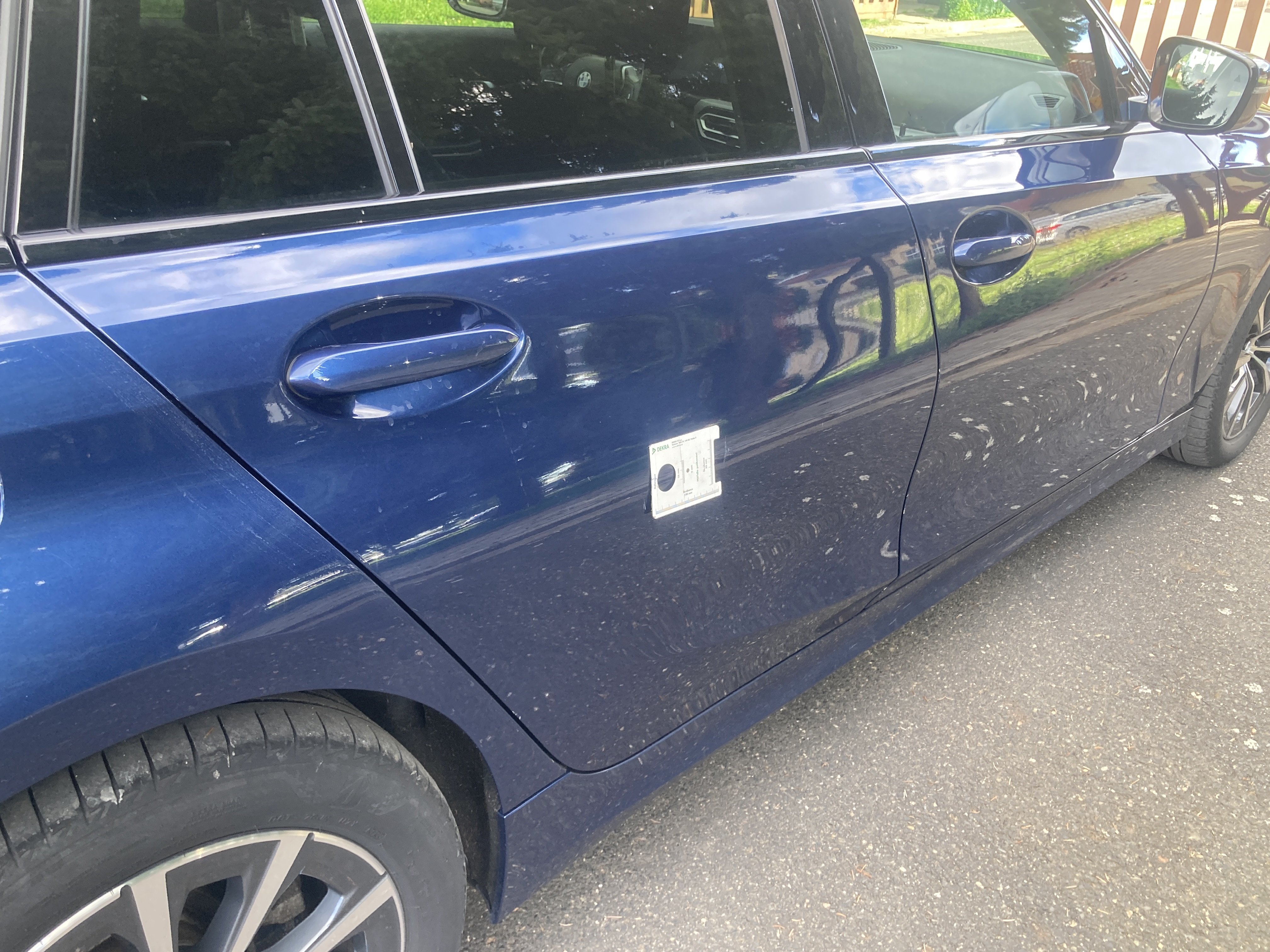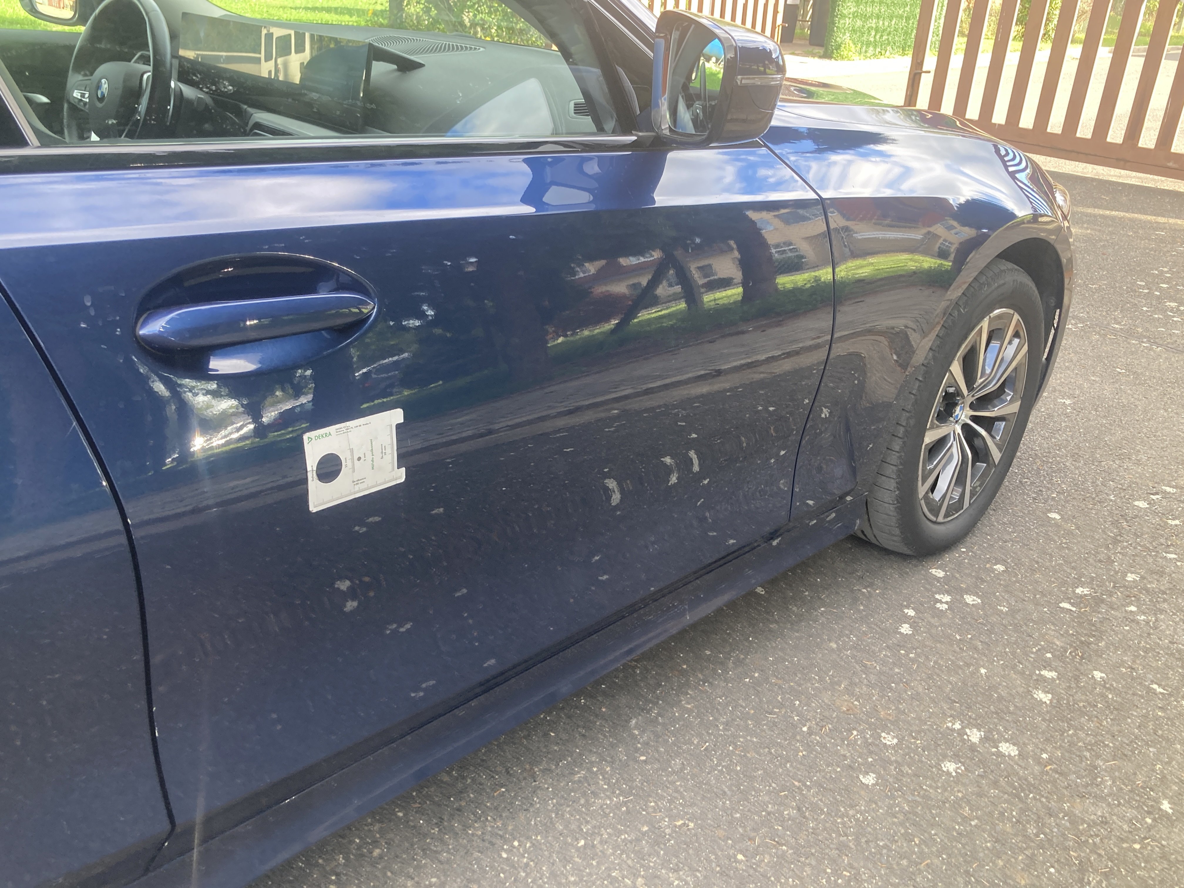 Oděrky a škrábance po obvodu karosérie, přední část karosérie je poškozená od kamínků, mírně odřený pravý přední blatník, odřený zadní nárazník, odřená hrana pravých předních dveří, odřený pravý rám dveří, odřená střecha, interiér vozidla opotřeben, karosérie nese stopy po předchozí opravě,