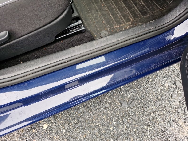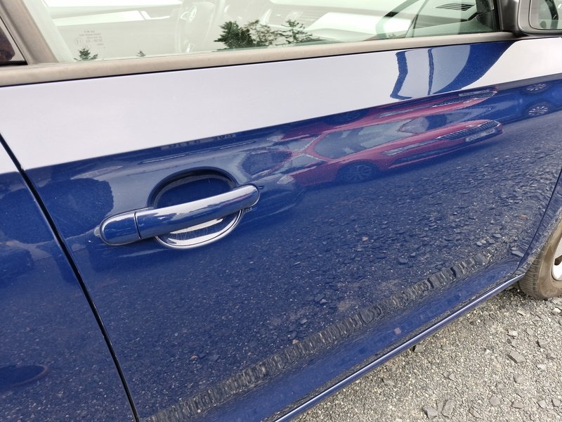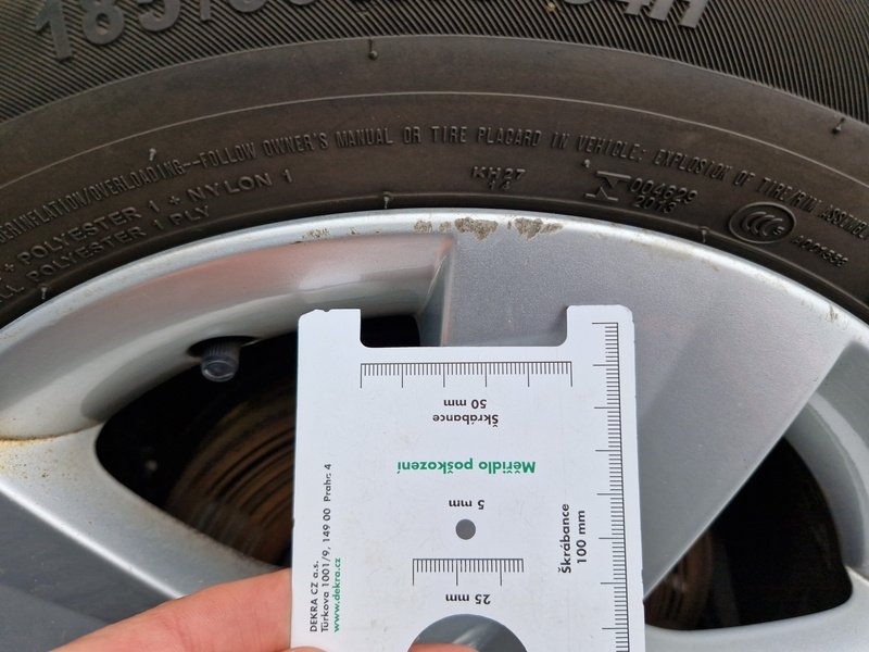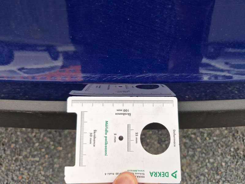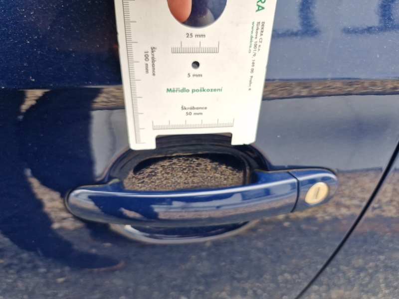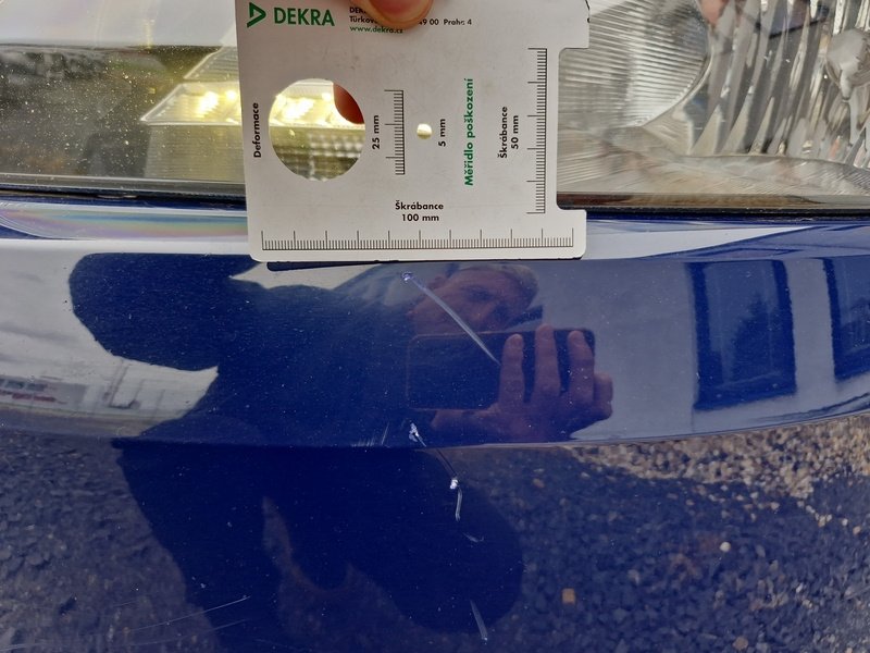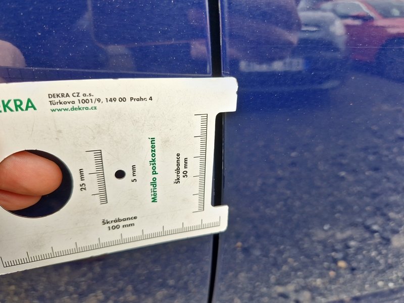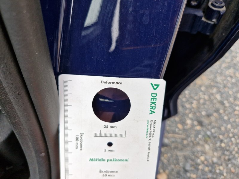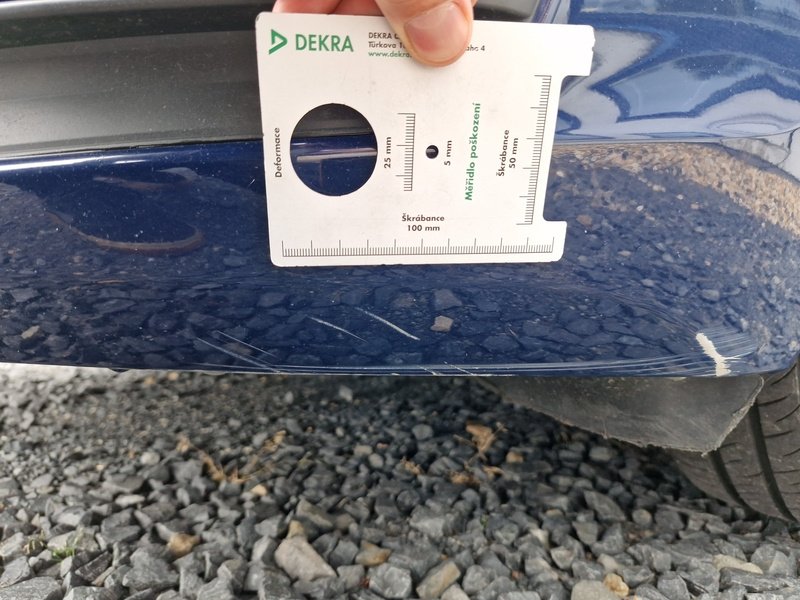 Oděrky a škrábance po obvodu karosérie, přední část karosérie je poškozená od kamínků, odřený přední nárazník, mírně promáčklé levé přední dveře - jamka, mírně promáčklý levý B sloupek - jamka, odřený zadní nárazník, odřený spojler zadního nárazníku, odřené pravé zadní dveře, odřené pravé přední dveře, odřený pravý práh, interiér vozidla opotřeben,