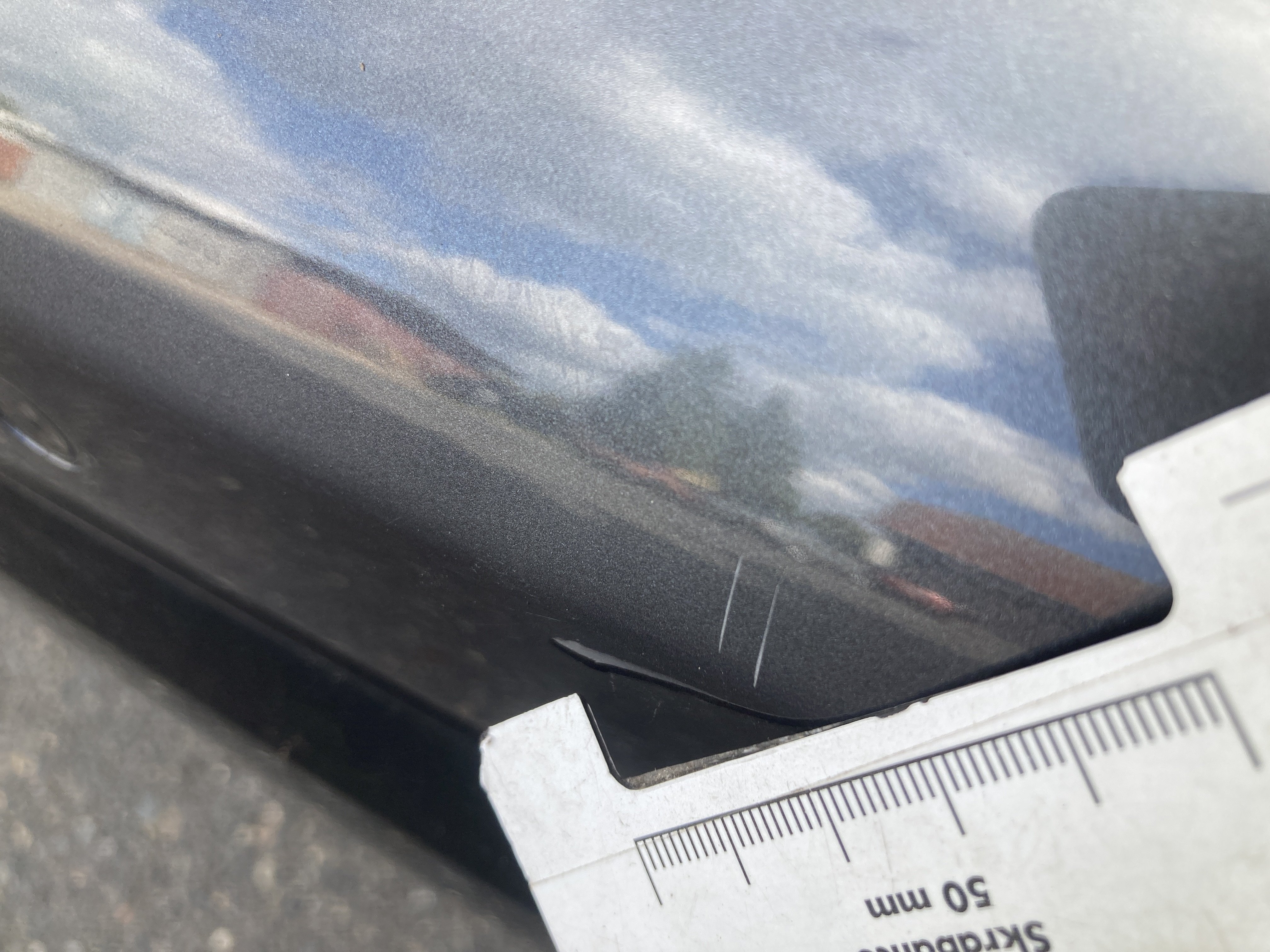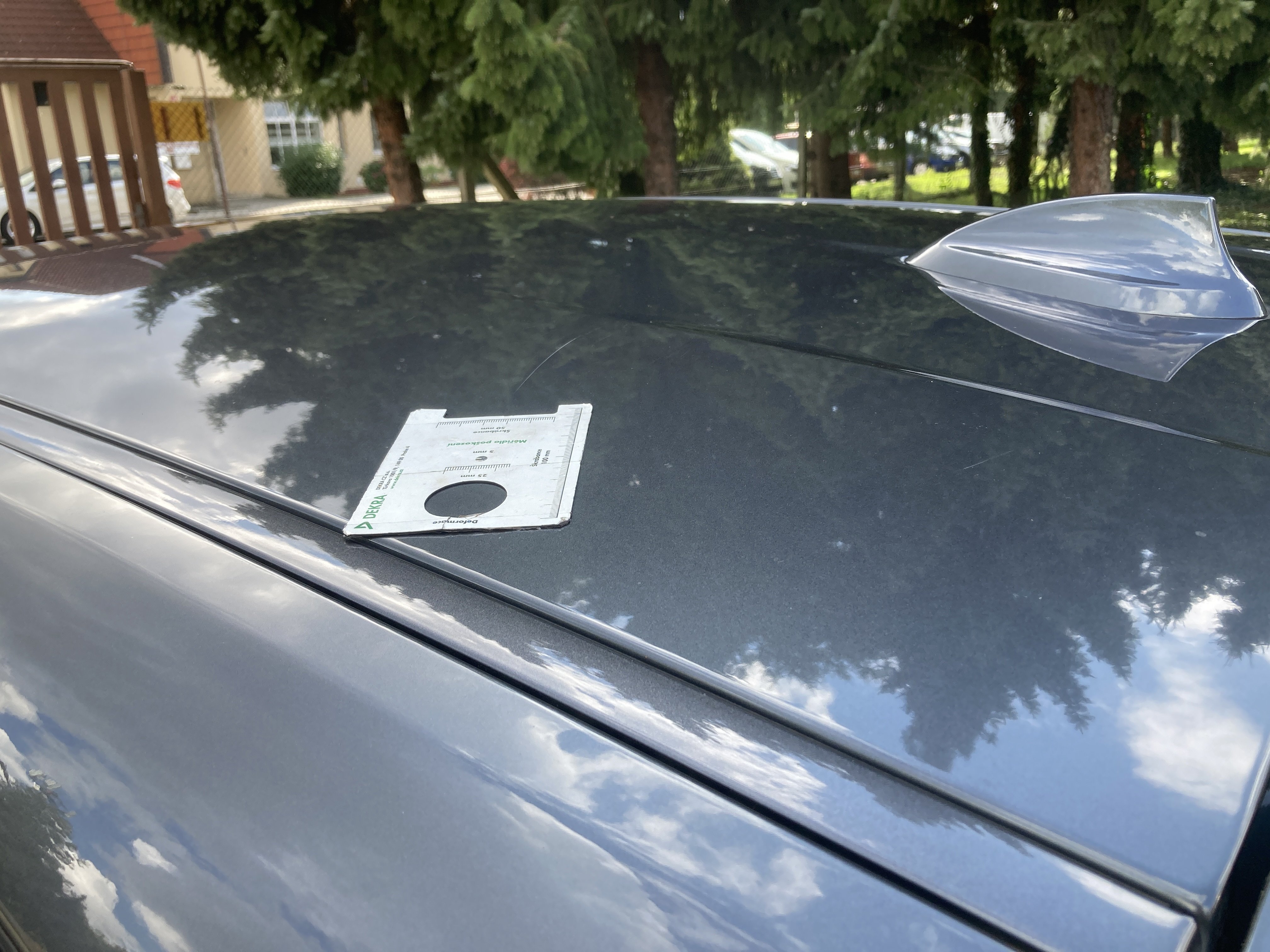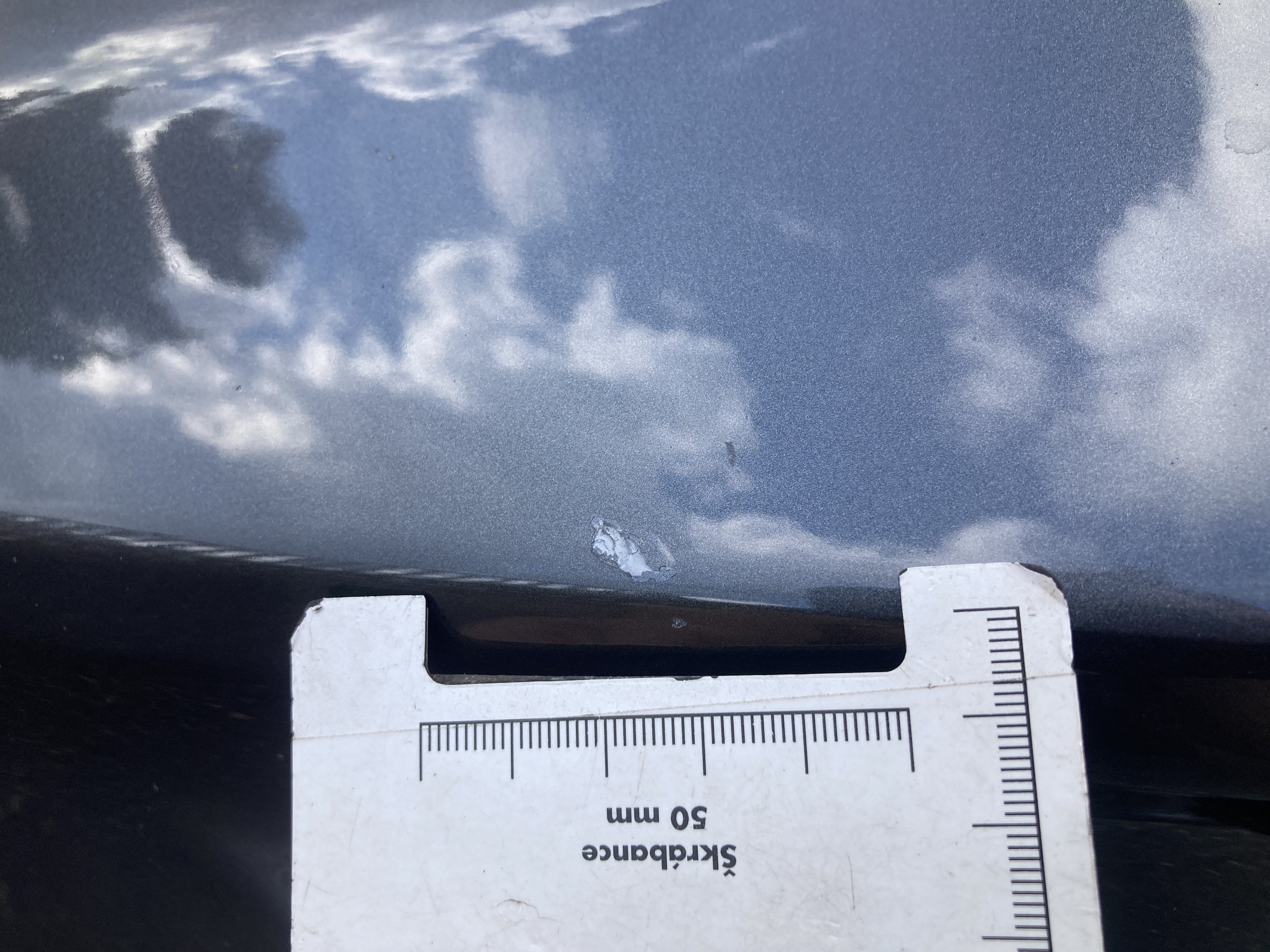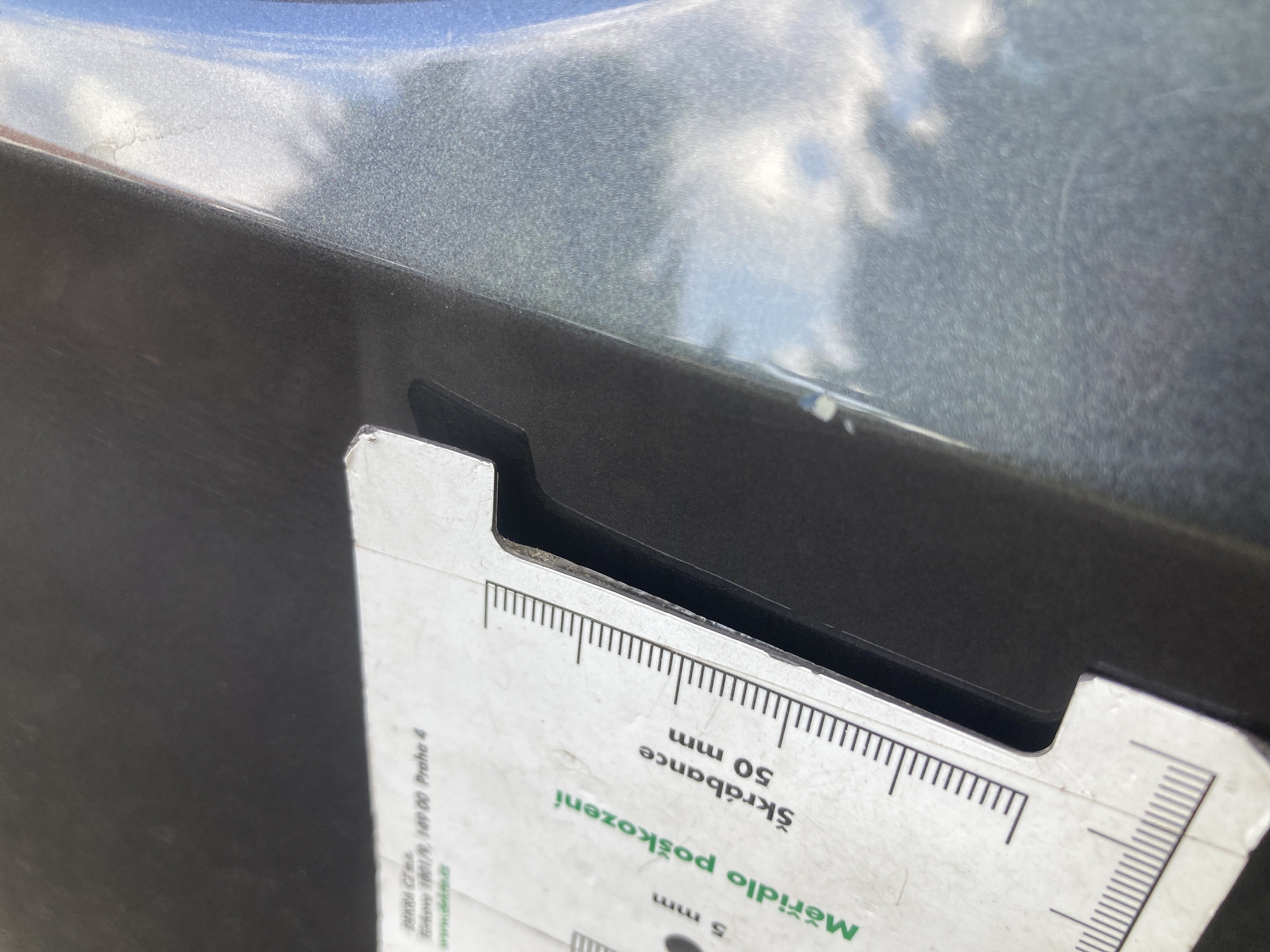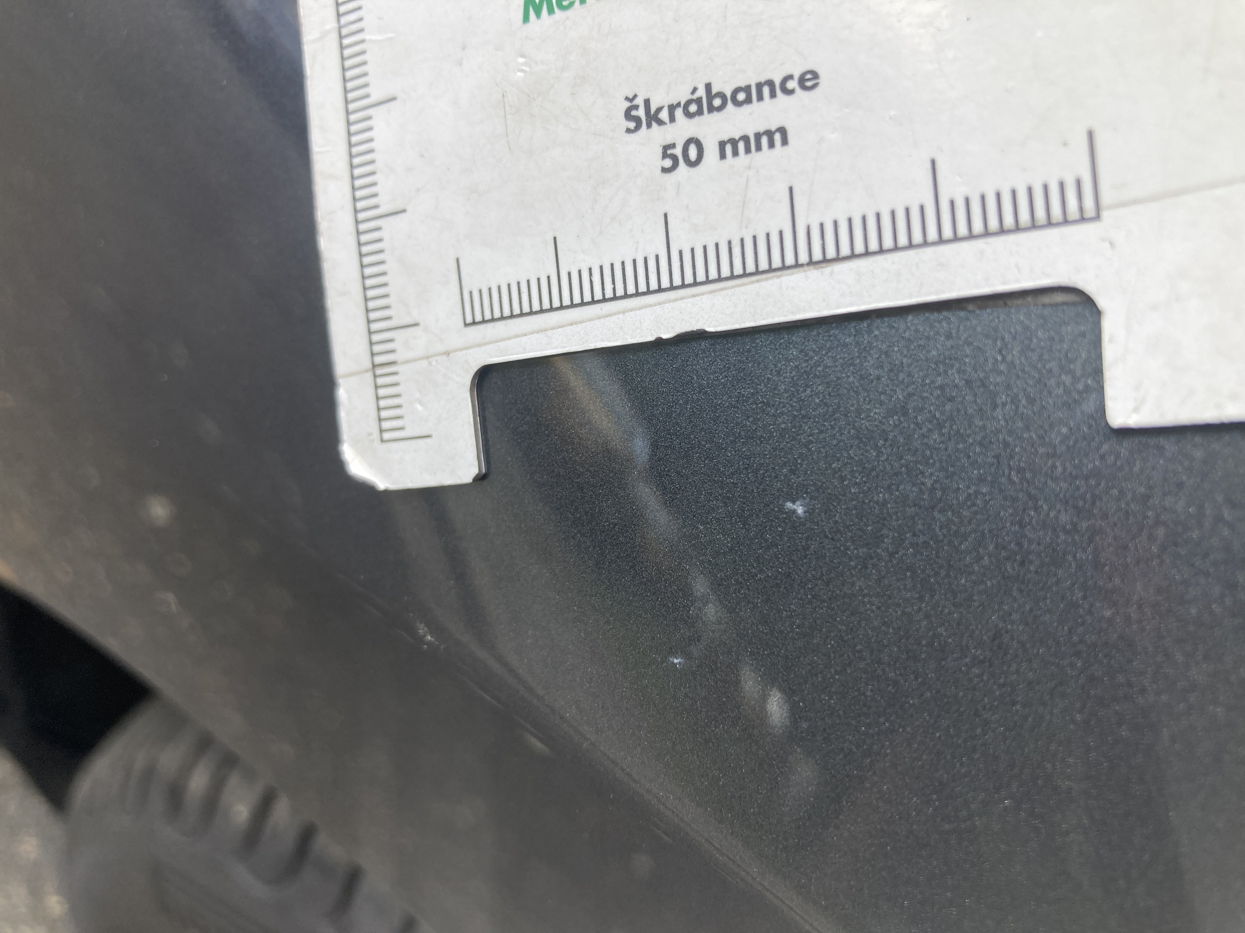 Oděrky a škrábance po obvodu karosérie, přední část karosérie je poškozená od kamínku, mírně odřený pravý přední blatník, odřený a mírně deformovaný přední nárazník, odřený zadní nárazník, odřený lem pravého zadního blatníku, mírně odřené pravé zadní dveře, odřený kryt pravého zpětného zrcátka, odřená střecha, chybí krycí plato zavzadlového prostoru, interiér vozidla opotřeben, karosérie nese stopy po předchozí opravě,