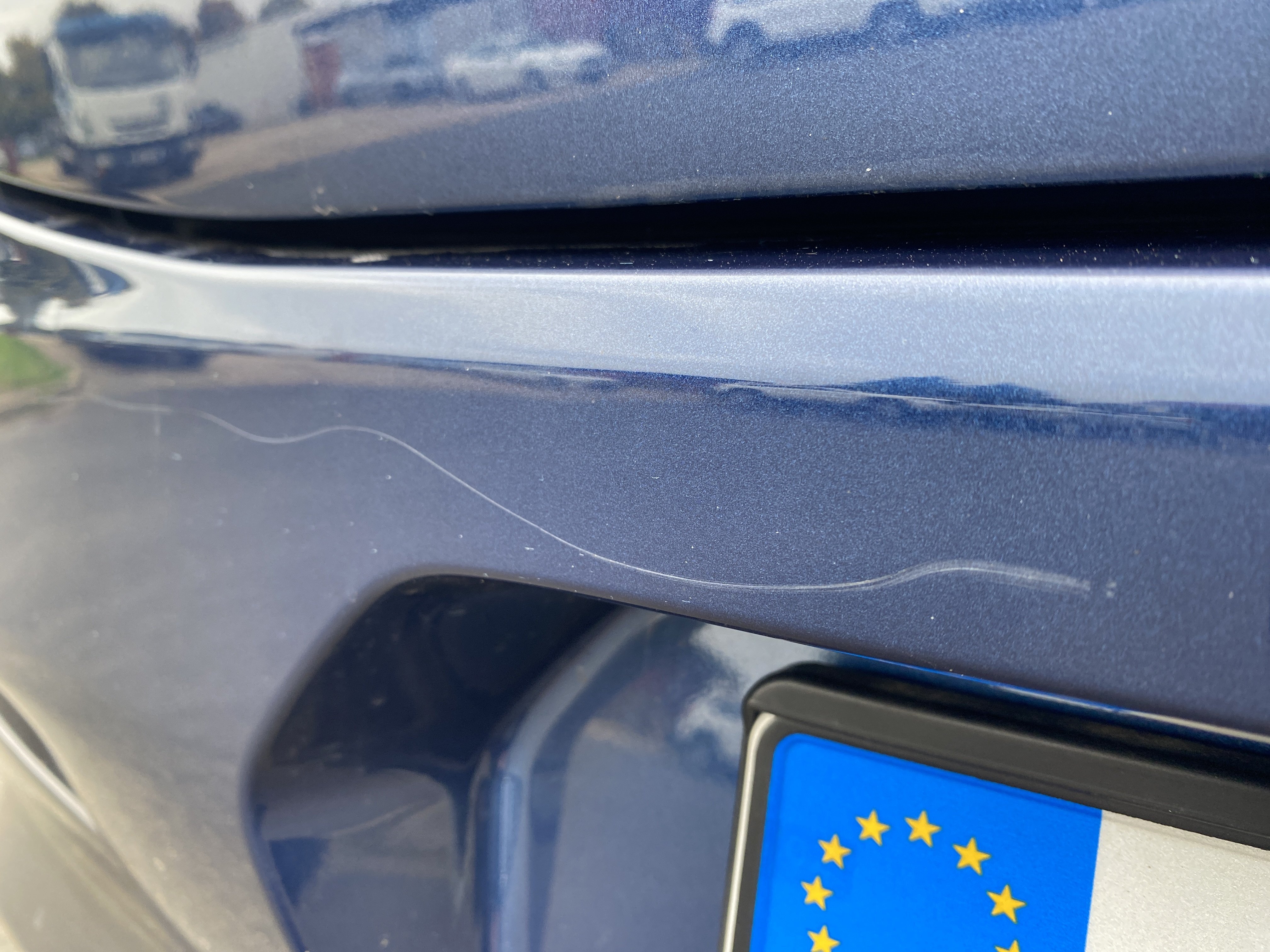 Oděrky a škrábance po obvodu karosérie, přední část karosérie je poškozená od kamínků, odřené levé přední dveře, odřený zadní nárazník, odřené víko zavzadlového prostoru, odřené pravé zadní dveře, mírně poškozené čelní sklo, karosérie nese stopy po předchozí opravě, chybí krytka pro tažné oko v předním nárazníku, interiér vozidla opotřeben,