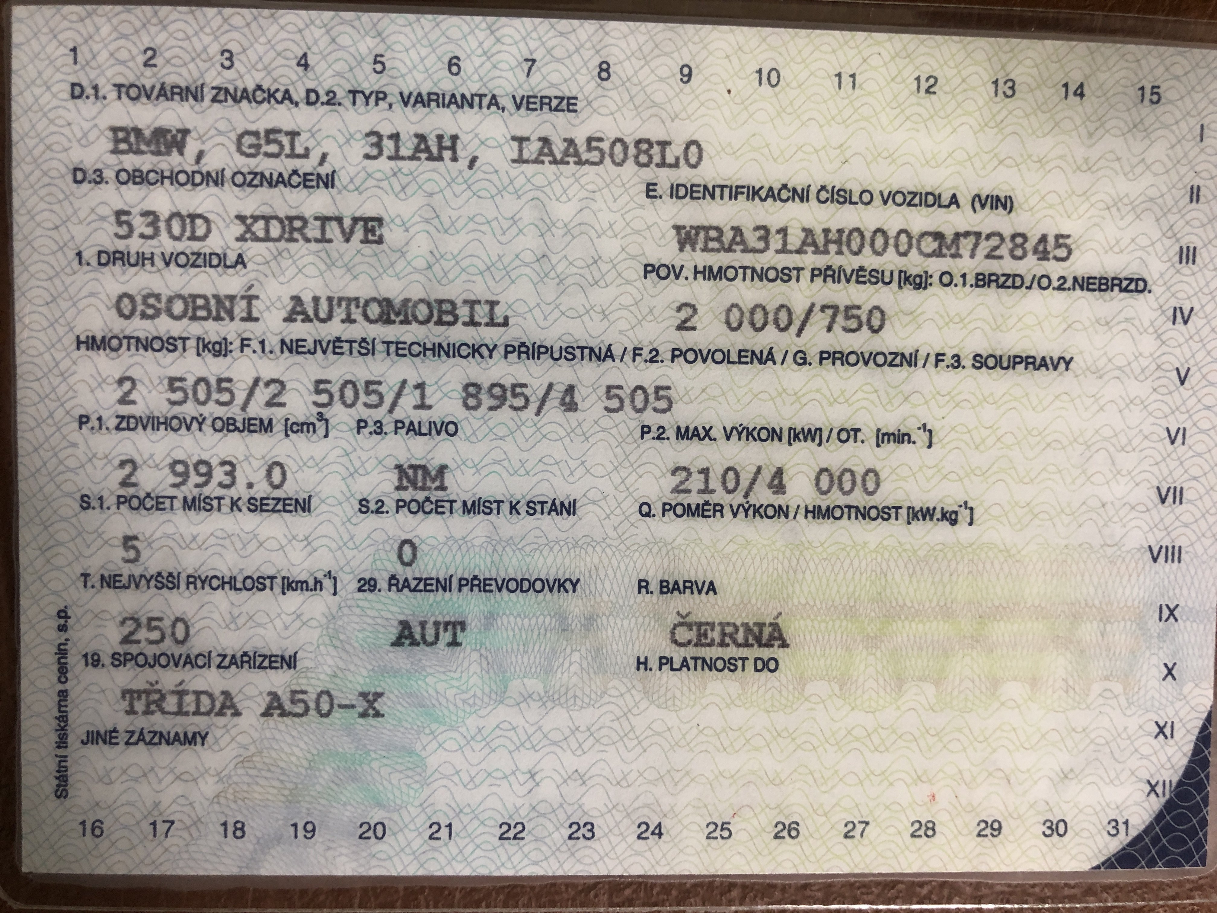 | Značka a typ | BMW 530d xDrive Limousine M-Sport - Automat, Diesel 210 kW |