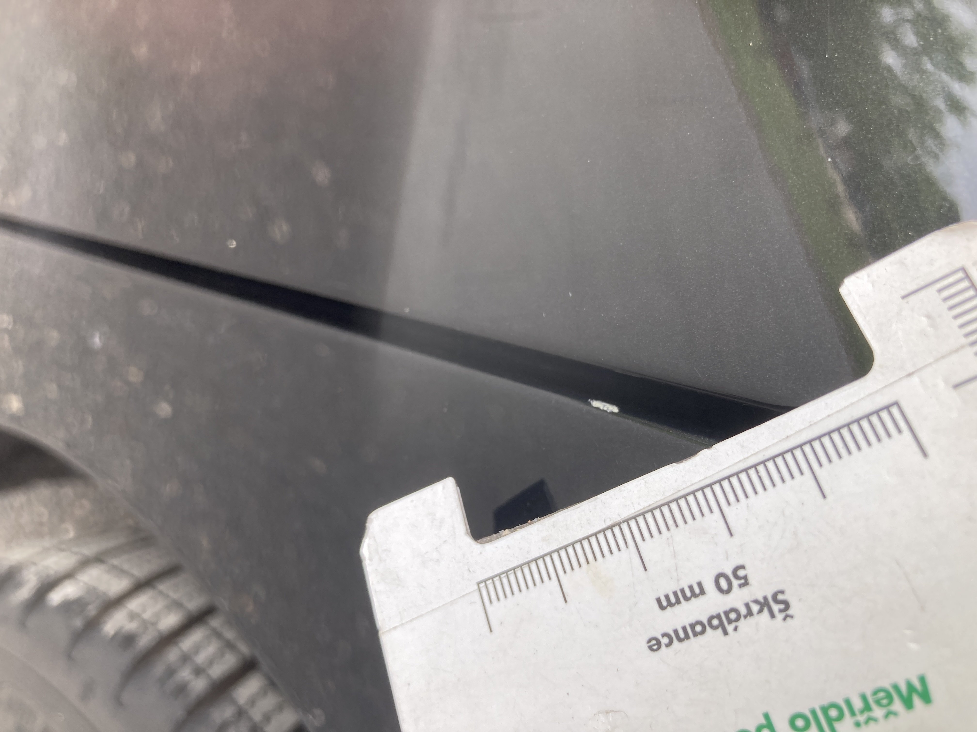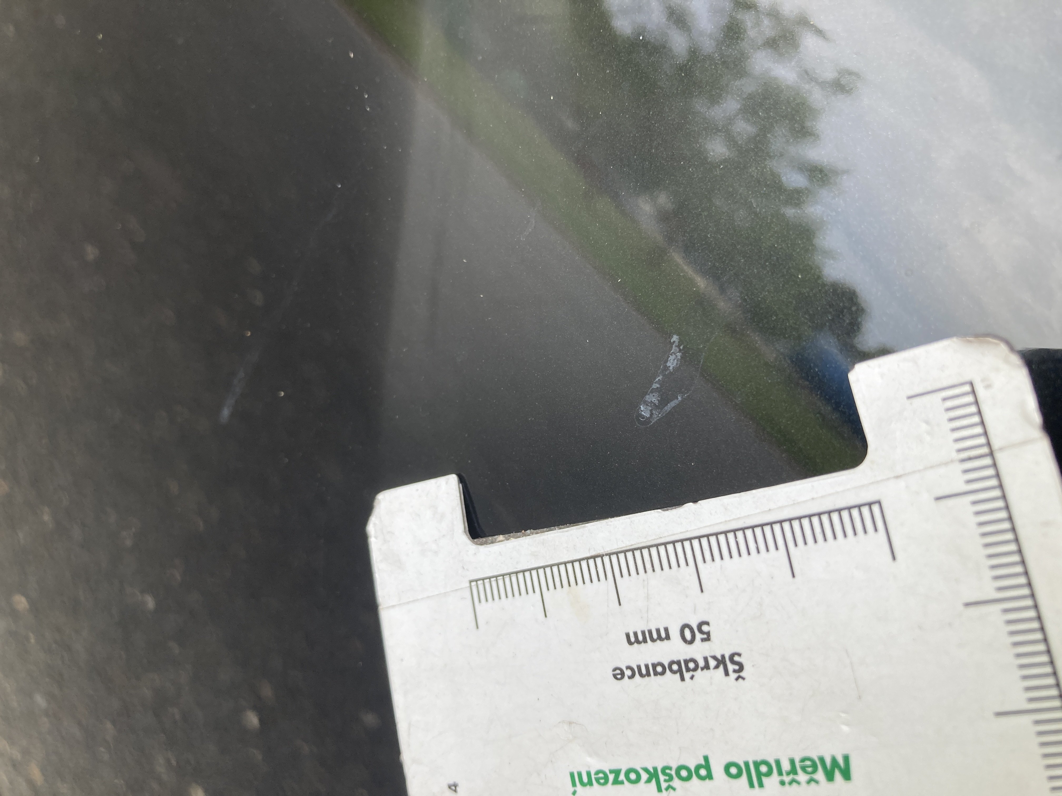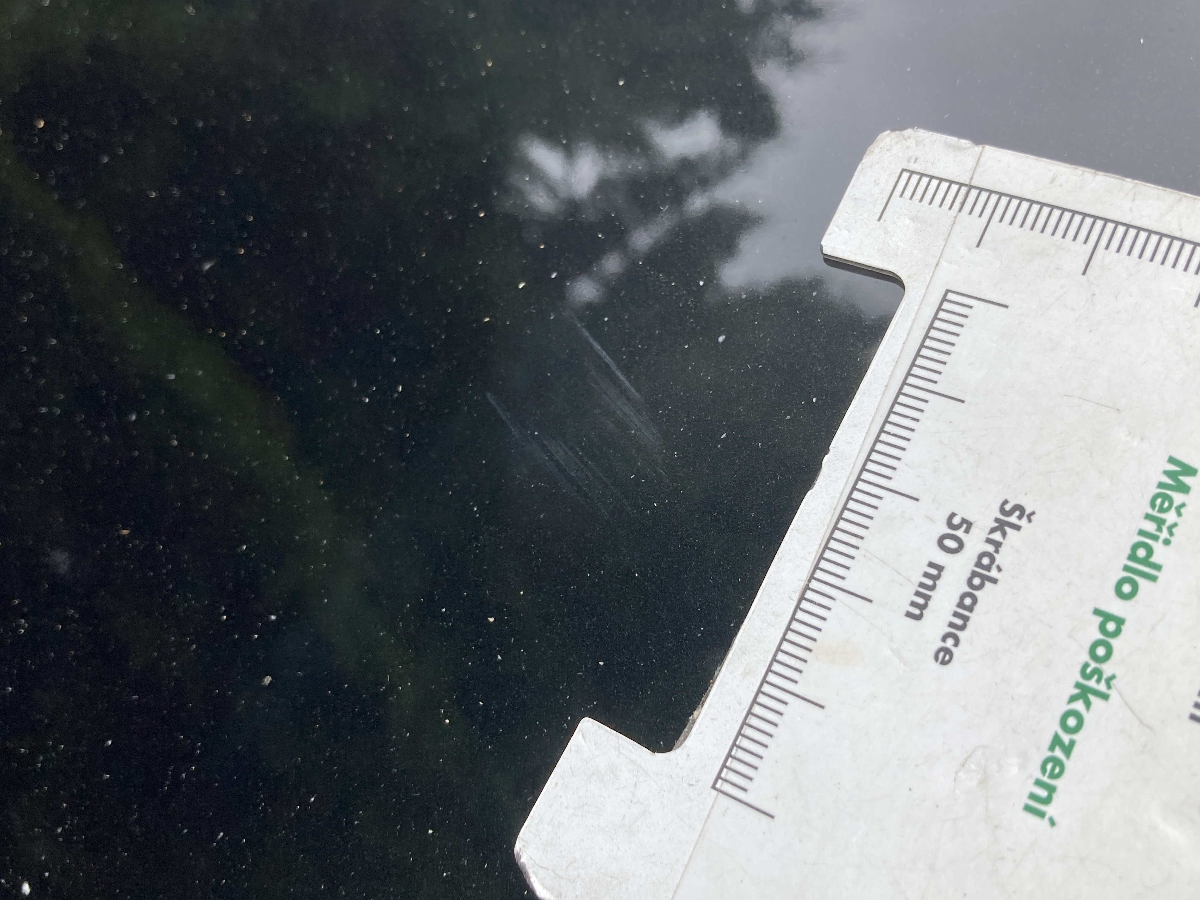 Oděrky a škrábance po obvodu karosérie, přední část karosérie je poškozená od kamínků, odřený přední nárazník, mírně odřené víko motorového prostoru, mírně odřené levé přední dveře, odřená hrana levých předních dveří, mírně odřený levý zadní blatník, mírně odřené víko zavzadlového prostoru, mírně odřené pravé přední dveře, interiér vozidla opotřeben,