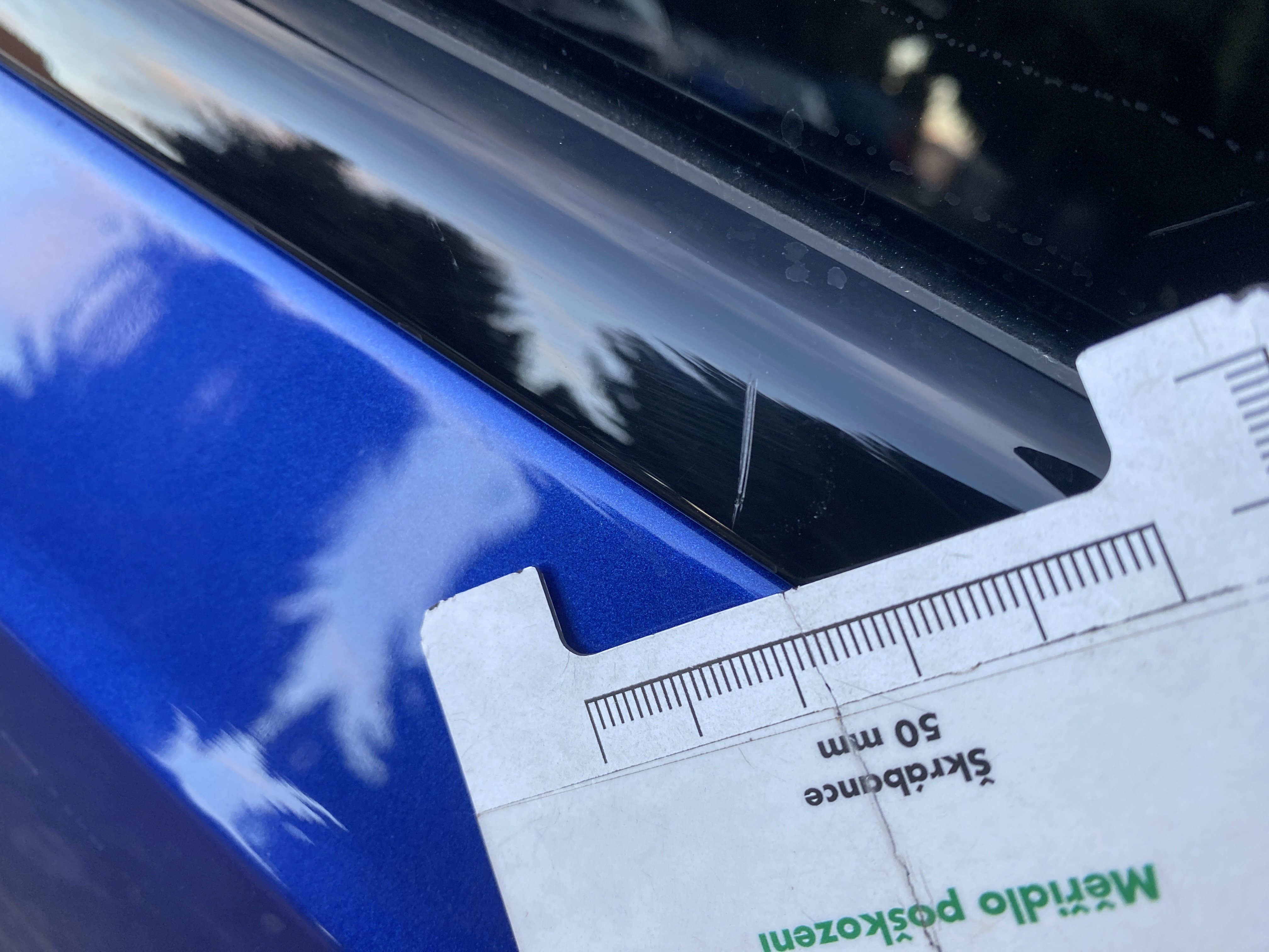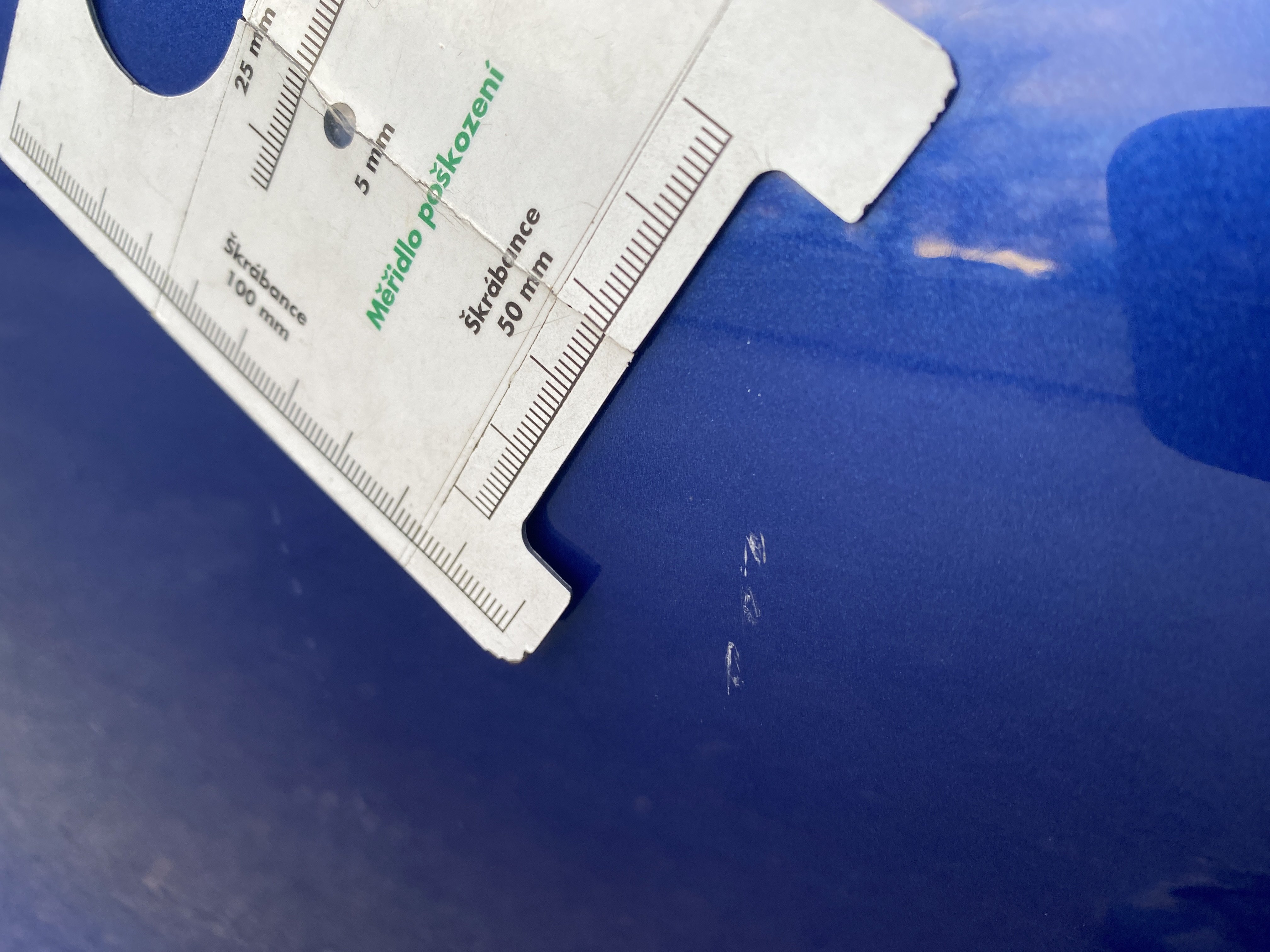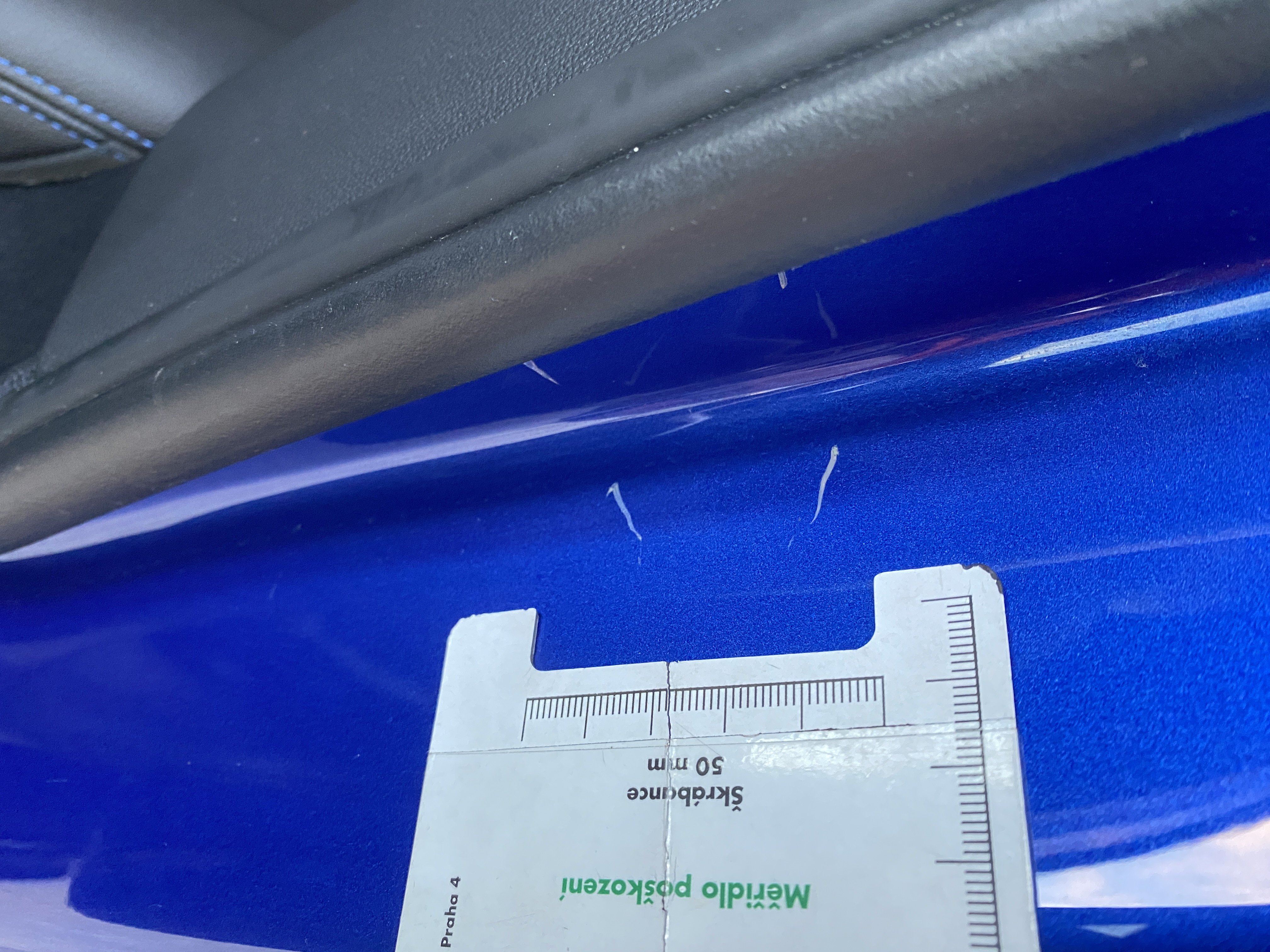 Oděrky a škrábance po obvodu karosérie, přední část karosérie je poškozená od kamínků, odřené levé přední dveře, mírně odřené levé zadní dveře, odřený zadní nárazník, mírně odřené víko zavazadlového prostoru, mírně odřené pravé zadní dveře, odřená lišta pravých zadních dveří, odřený vnitřní rám levých zadních dveří, intriér vozidla opotřeben,