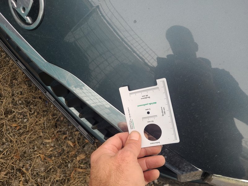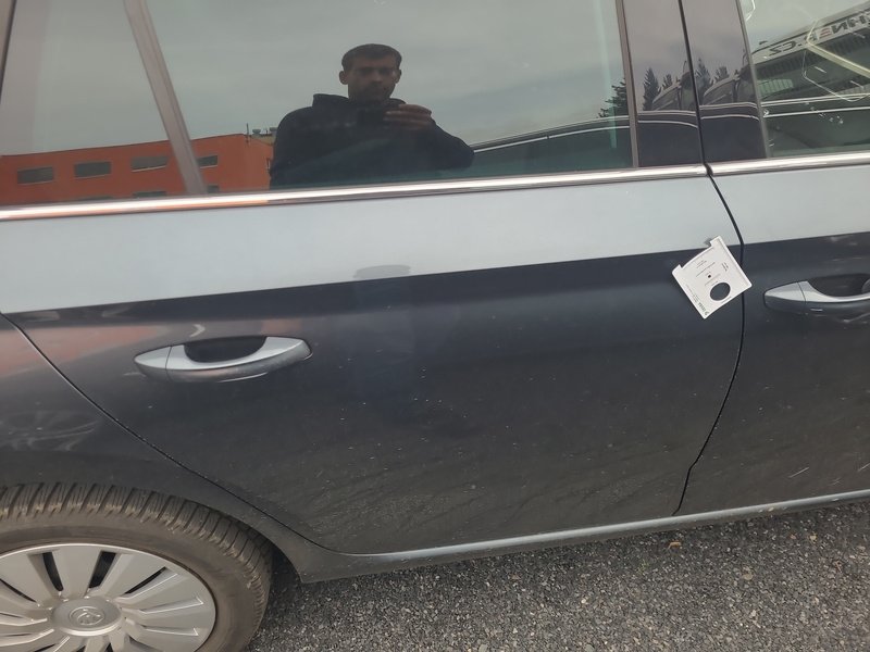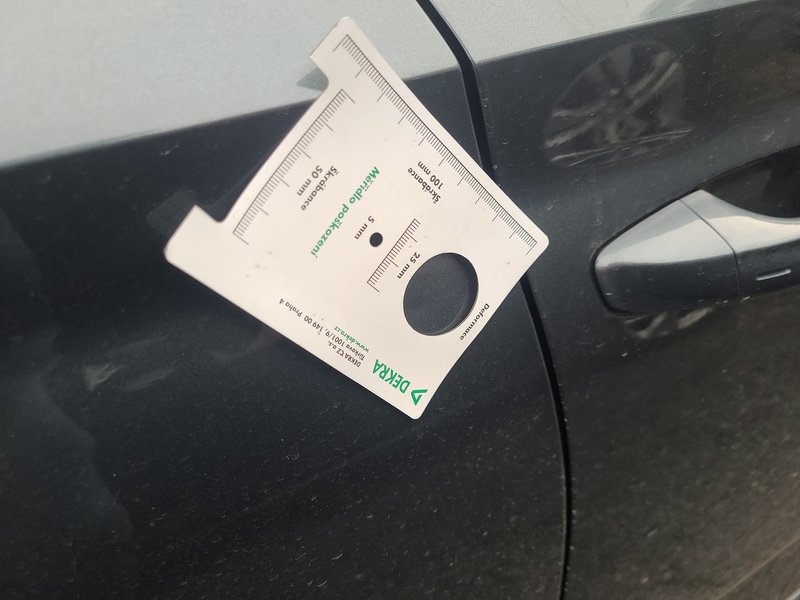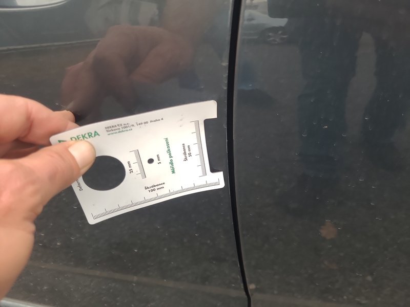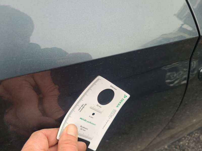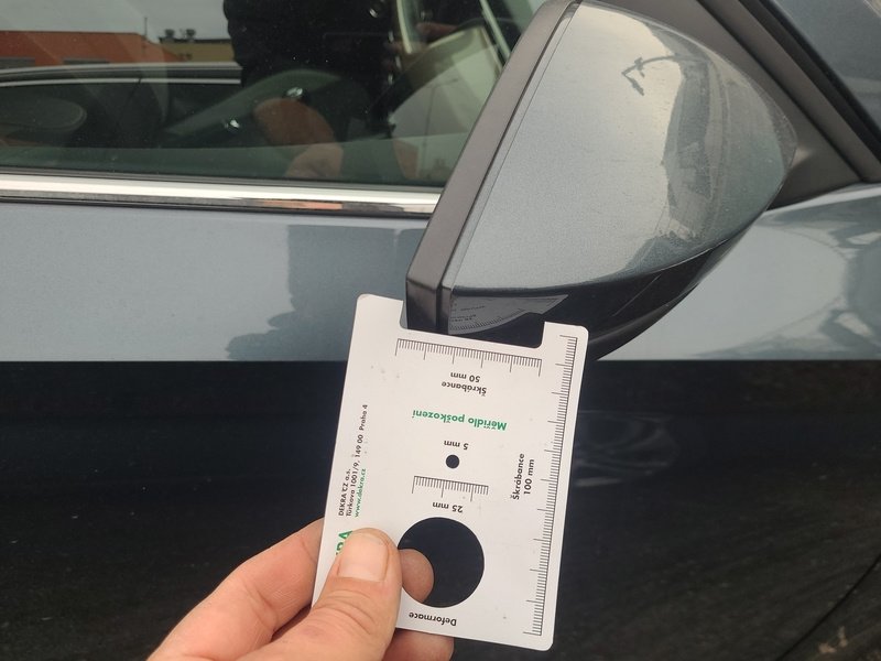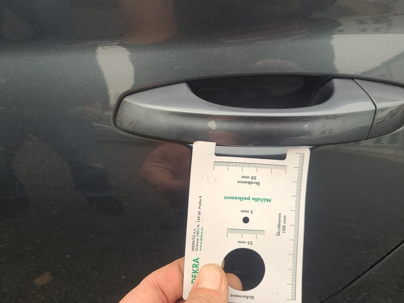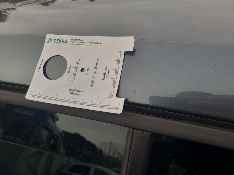 Oděrky a škrábance po obvodu karosérie, přední část karosérie je poškozená od kamínků, deformace víka motorového prostoru, odřené levé přední dveře, odřený levý práh, odřené madlo kliky levých zadních dveří, mírně promáčklá levá zadní bočnice - jamka, odřený levý rám dveří, mírně promáčklé pravé zadní dveře - jamka, odřený pravý práh, odřený kryt pravého zpětného zrcátka, interiér vozidla opotřeben,