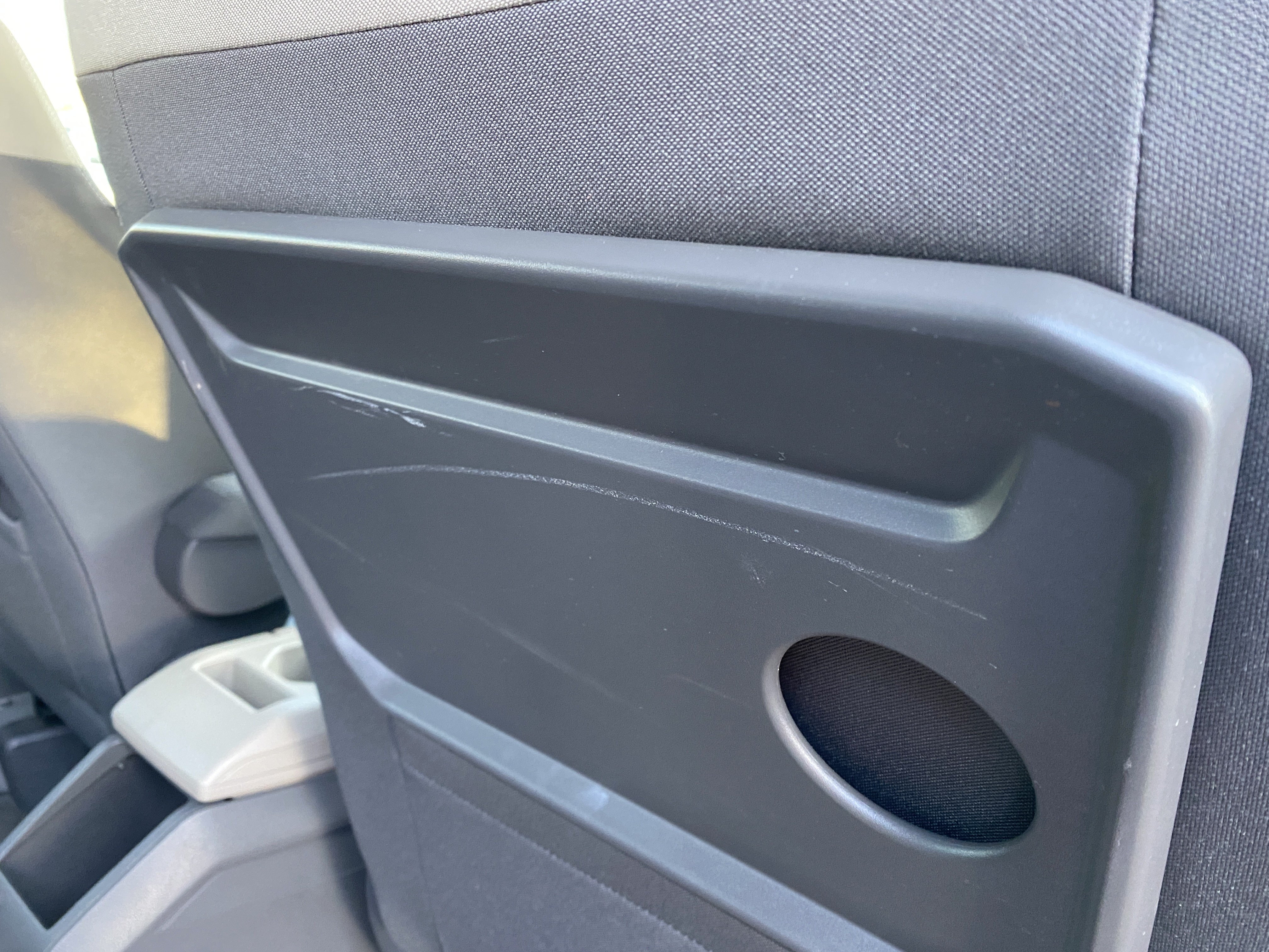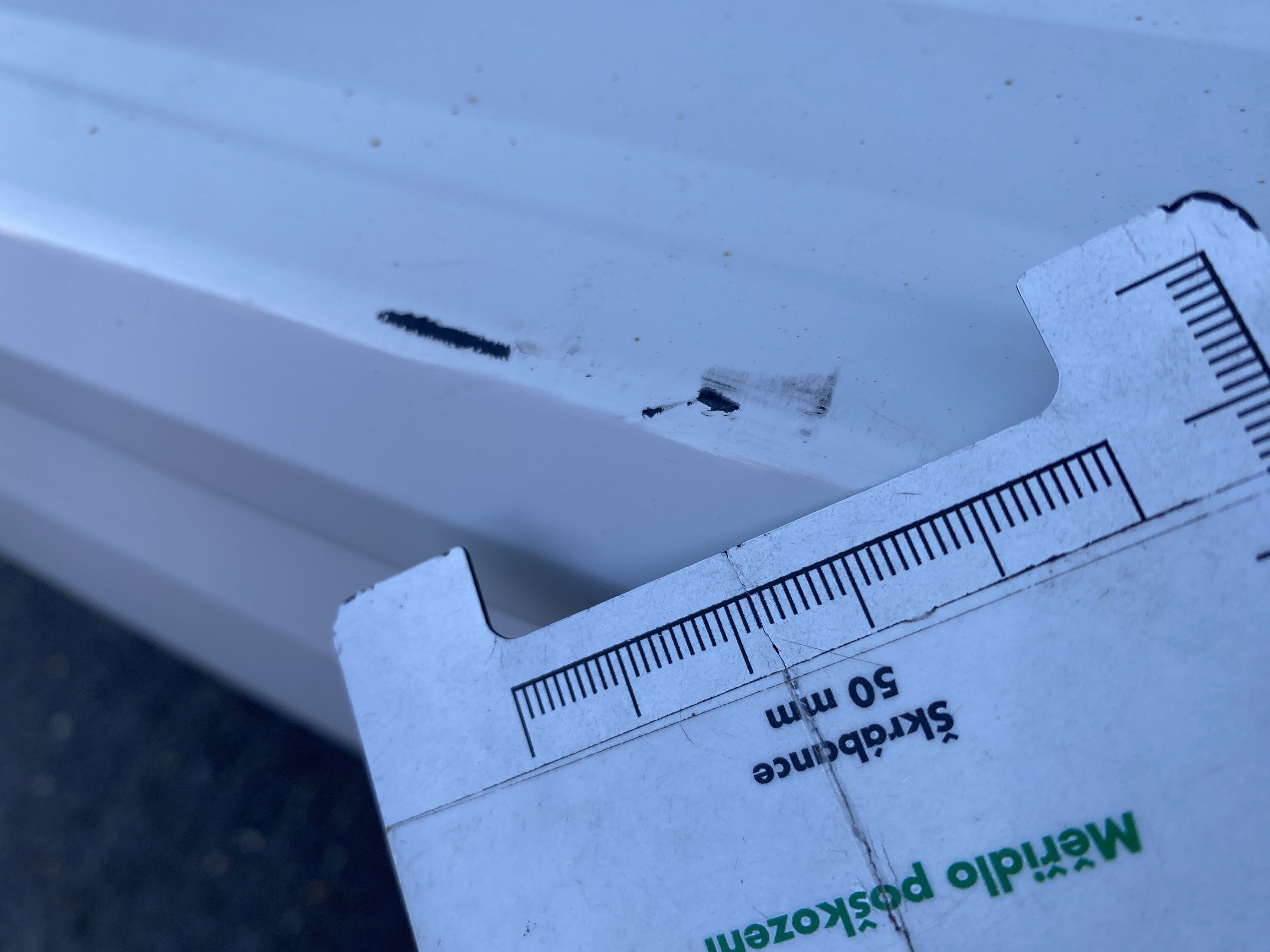 Oděrky a škrábance po obvodu karosérie, přední část karosérie je poškozená od kamínků, odřený zadní nárazník, interiér vozidla opotřeben,