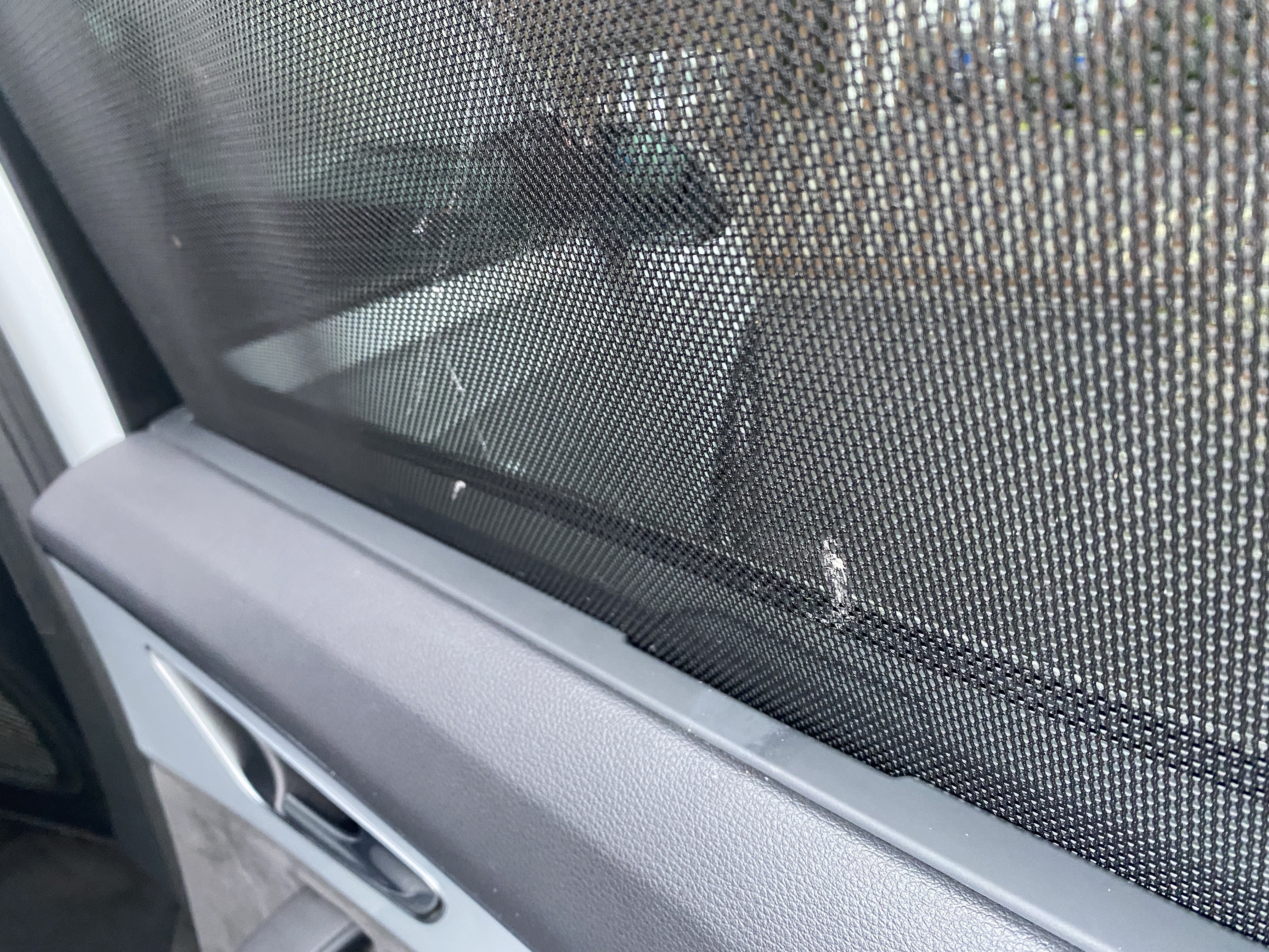Oděrky a škrábance po obvodu karosérie, přední část karosérie je poškozená od kamínků, poškozená levé zadní mlhové světlo v zadním nárazníku, odřený zadní nárazník, poškozená roleta pravých zadních dveří, interiér vozidla opotřeben,
