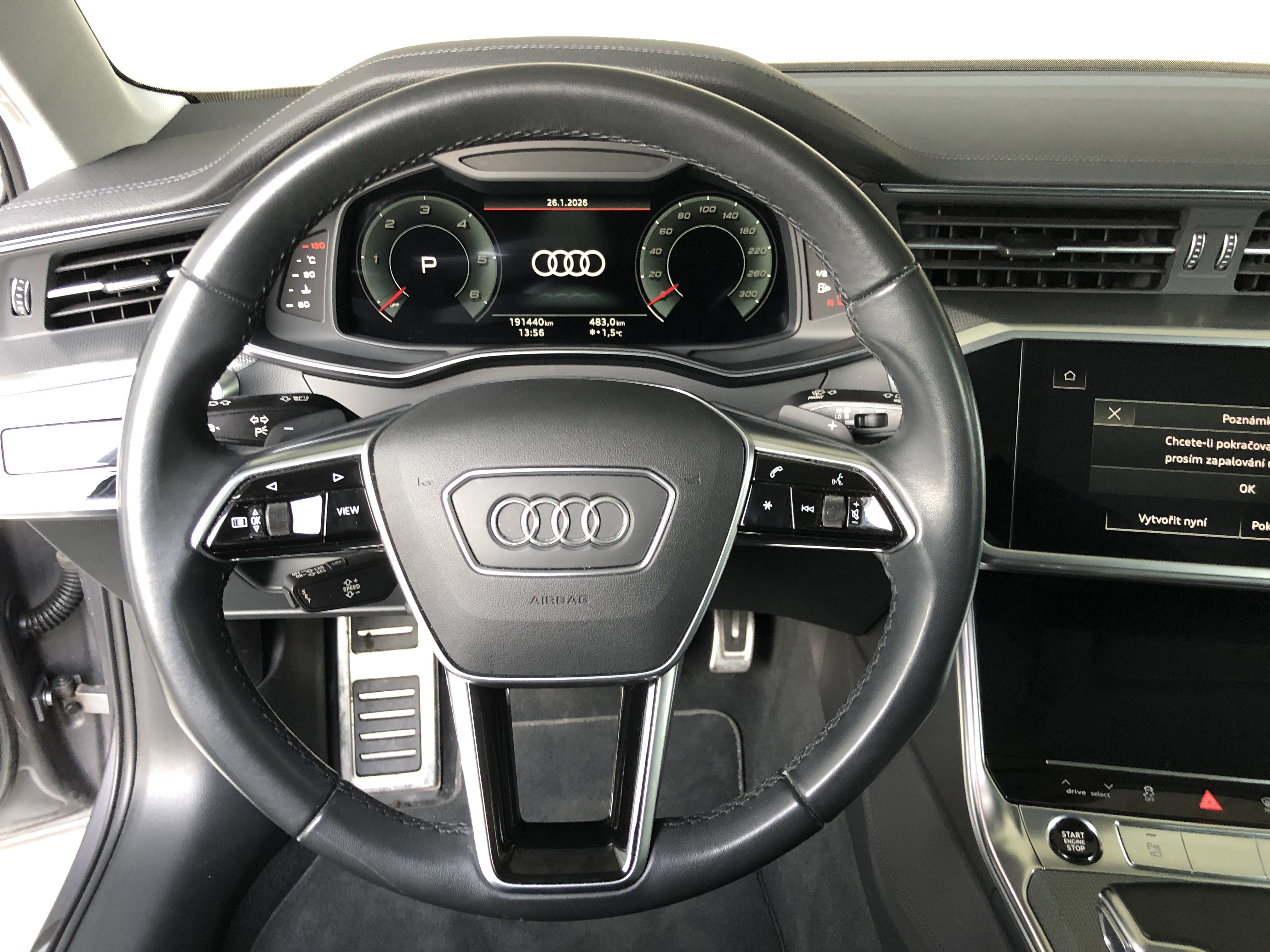 Speciální výbava: adaptivní stěrač, vyhř., airbag boč. vpředu a za., Bluethooth-handsfree sada s rozpoznávání řeči (Audi Phone Box), dynamické řízení - řízení pohonu všech kol, kamera zpětná, klimatizace komfort-autom. 4-zónový, komfortní klíč s ovl. senzorem dveře za. výklop.-odemykání včetně (otevřít + zavřít), Kontur / paket Osvětlení Ambiente (plus), Matrix-LED světlomety(svítilny za. LED s dynamickým směrovým světlem, zařízení pro čištění světlometu (Ostřik. zaříz.)), metalíza-lakování, obložení stropu látka, černá, obsluhovací prvky optika sklo, včetně opakovač hliník-optika, paket Interiér allroad(lišty nástupní s vložka hliníková a označení modelu, osvětl., vybavení interiéru: vložky ozd. hliník, pedály a opěra nožní v ocel ušlech., potah sedadla / čalounění: Alcantara / kůže s ražené logo v opěradla sedadel př., vybavení interiéru: prvky interiéru v koženka spodní, sportovní sedadla vpředu, opěry páteře beder. vpředu, el. nastav., volant (Sport/kůže - 3-paprsky) s multifunkce a funkce řazení), Pomocný systém řidiče: asistent změny jízdního pruhu (Side Assist) včetně Audi pre sense rear(Pomocný systém řidiče: signalizace výstupu, Pomocný systém řidiče: systém upozorňující blížící se vozidlo zezadu záď vozidla), Pomocný systém řidiče: rozpoznávání dopravních značek, rozhraní Multimedia MMI Navigation Plus s MMI Touch(Audi Smartphone Interface, přístroj sdružený digitální (virtual cockpit plus)), ráfek z leh. slitiny 8,5x20 (10-paprsků, V-design), sada upevň. pro systém kolejnic v prostor zavazadl., sedadla vpředu el. nastav. (levý s Memory)(opěry páteře beder. vpředu, el. nastav.), servozavírání pro dveře, sklo čelní komfort klimatizace / sklo akustické, vyhř., Sound systém Bang & Olufsen, sportovní diferenciál, Tažné zařízení (otoč.koule), třmeny brzdy kotouč. červená lak., volant vyhř. (Sport/kůže - 3-paprsky) s multifunkce a funkce řazení, vybavení interiéru: prvky interiéru v koženka nahoře a spodní, zrcátko vněj. el. nastav., vytáp. a sklop., s ztmavování automat. a Memory(zrcátko vněj. s indikace obrubníku autom., vpravo)