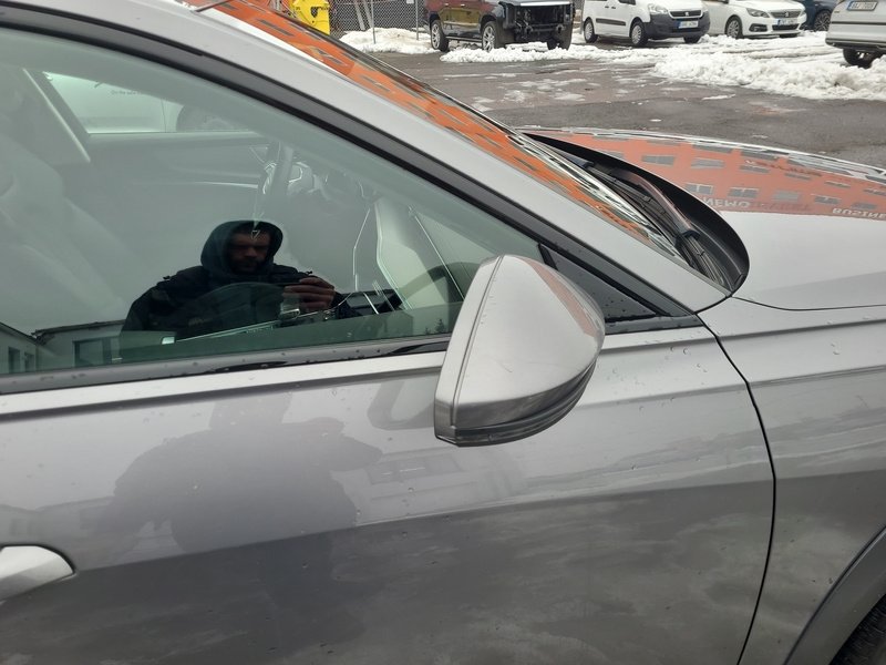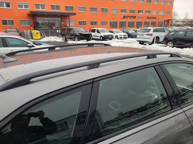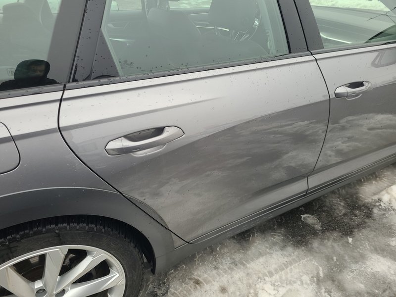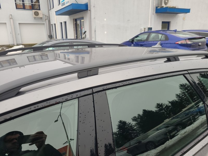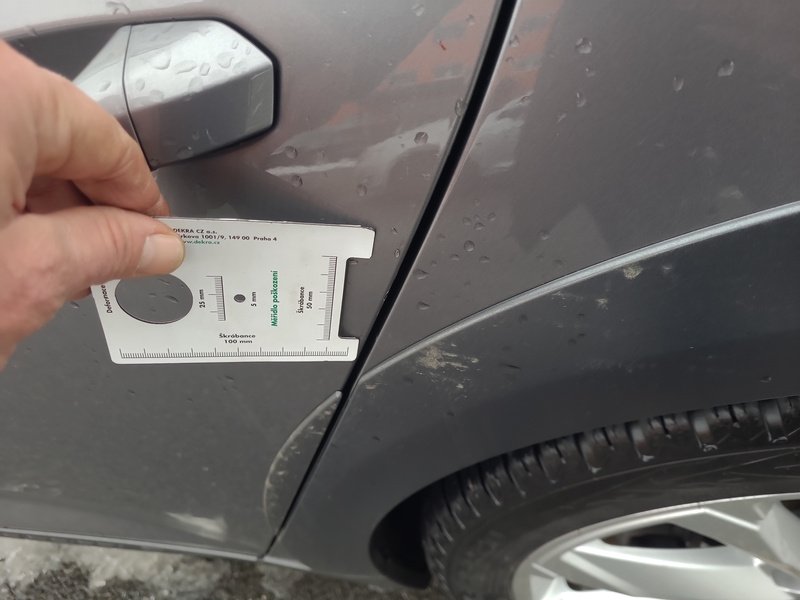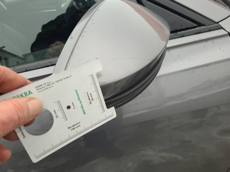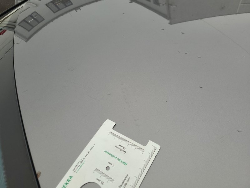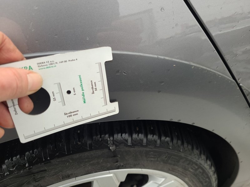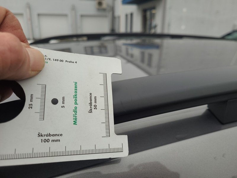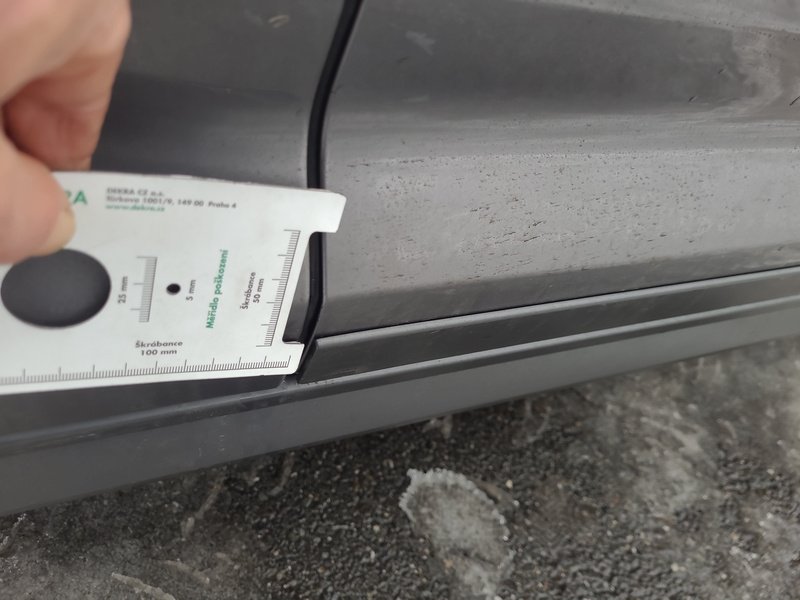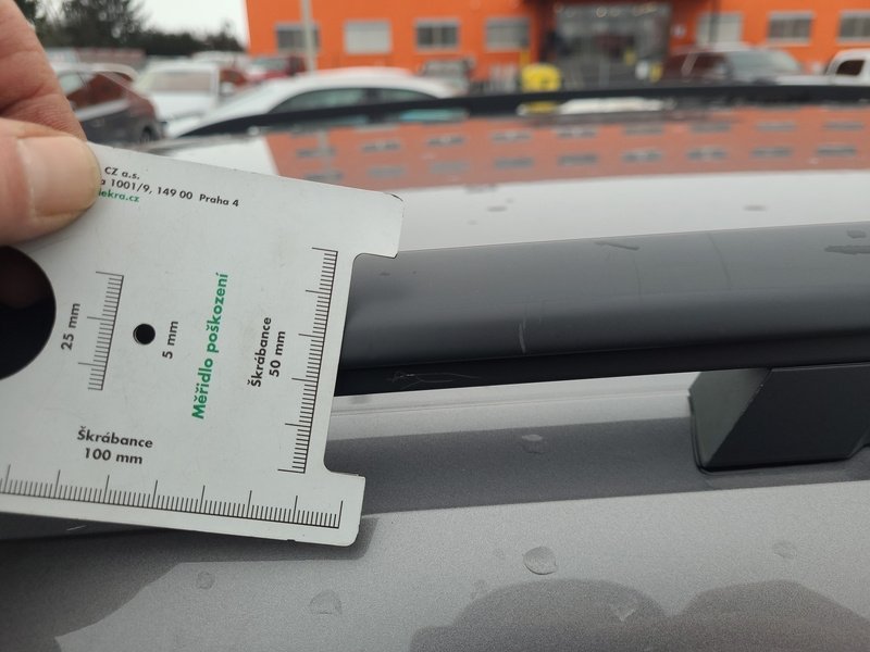 Oděrky a škrábance po obvodu karosérie, přední část karosérie je poškozená od kamínků, odřený přední nárazník, odřený kryt levého zpětného zrcátka, odřené levé přední dveře, odřené levé zadní dveře, odřená levá zadní bočnice, odřený zadní nárazník, odřená střecha, odřené podélné střešní nosiče, odřená pravá zadní bočnice, odřený lem kola pravé zadní bočnice, odřené pravé zadní dveře, mírně promáčklý pravý C sloupek - jamka, odřené pravé přední dveře, odřený kryt pravého zpětného zrcátka, interiér vozidla opotřeben,