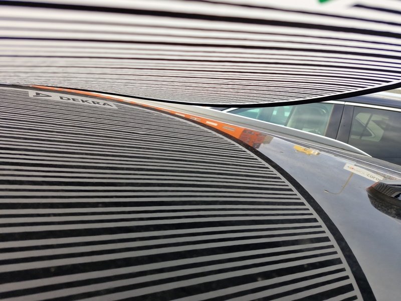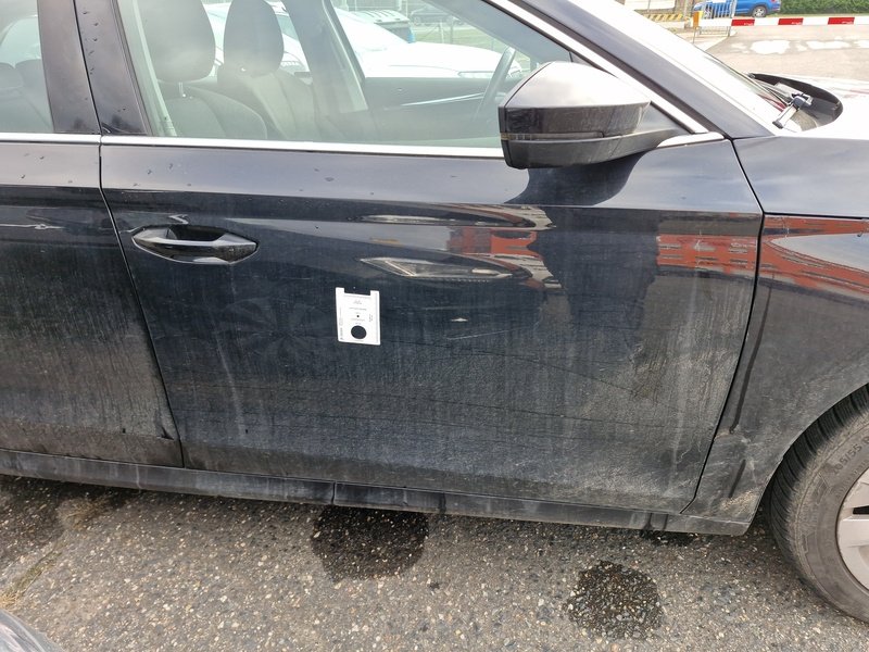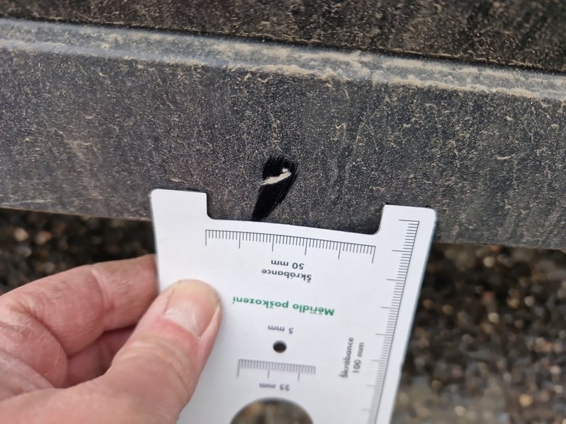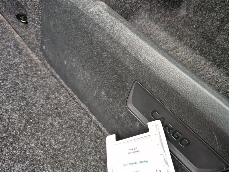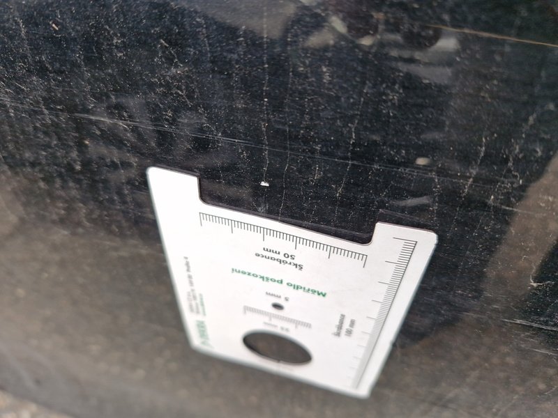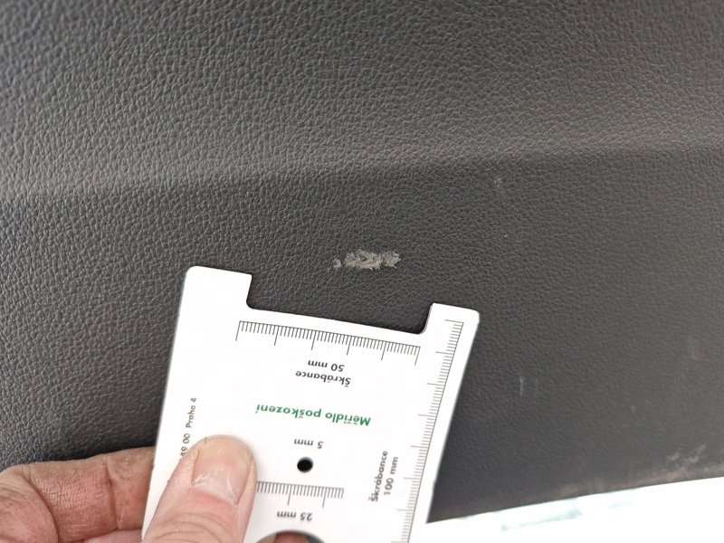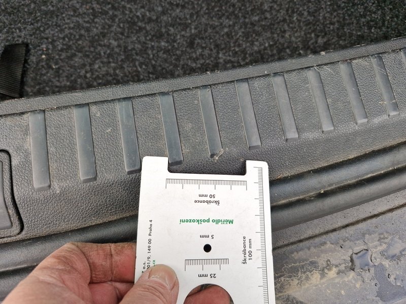 Oděrky a škrábance po obvodu karosérie, přední část karosérie je poškozená od kamínků, odřené pravé přední dveře, odřený zadní nárazník, odřené levé přední dveře, poškozené čelní sklo, interiér vozidla opotřeben, karosérie poškozená od karup - jamky,