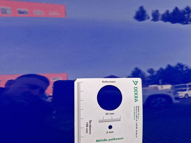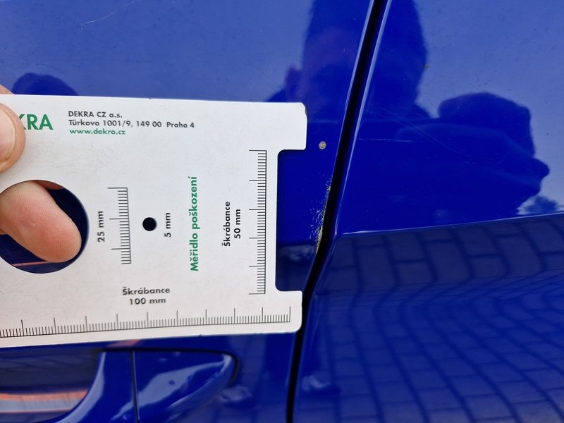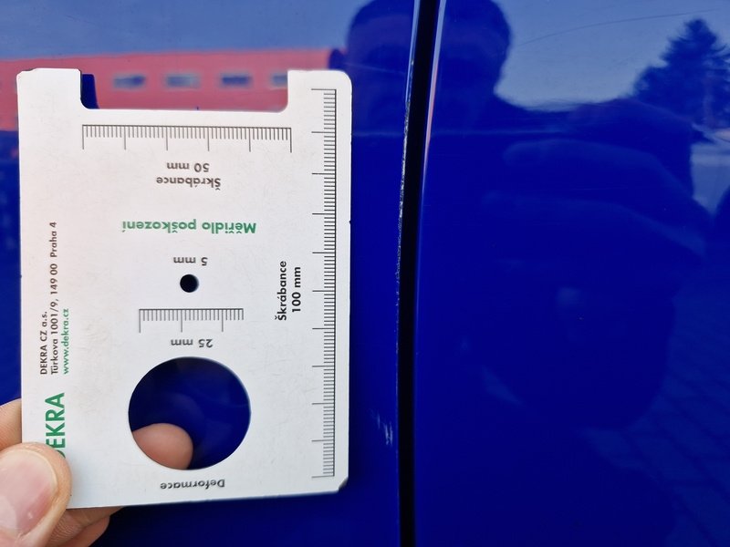 Oděrky a škrábance po obvodu karosérie, přední část karosérie je poškozená od kamínků, odřené víko motorového prostoru, odřený přední nárazník, odřené levé přední dveře, odřené madlo kliky levých předních dveří, mírně promáčklá levá zadní bočnice - jamka mírně promáčklé levé zadní dveře - jamka, odřený zadní nárazník, mírně promáčklá pravá zadní bočnice - jamka, mírně promáčklé pravé zadní dveře - jamka, deformace pravých předních dveří, odřený pravý A sloupek, karosérie vozidla poškozena od krup - jamky, interiér vozidla opotřeben,