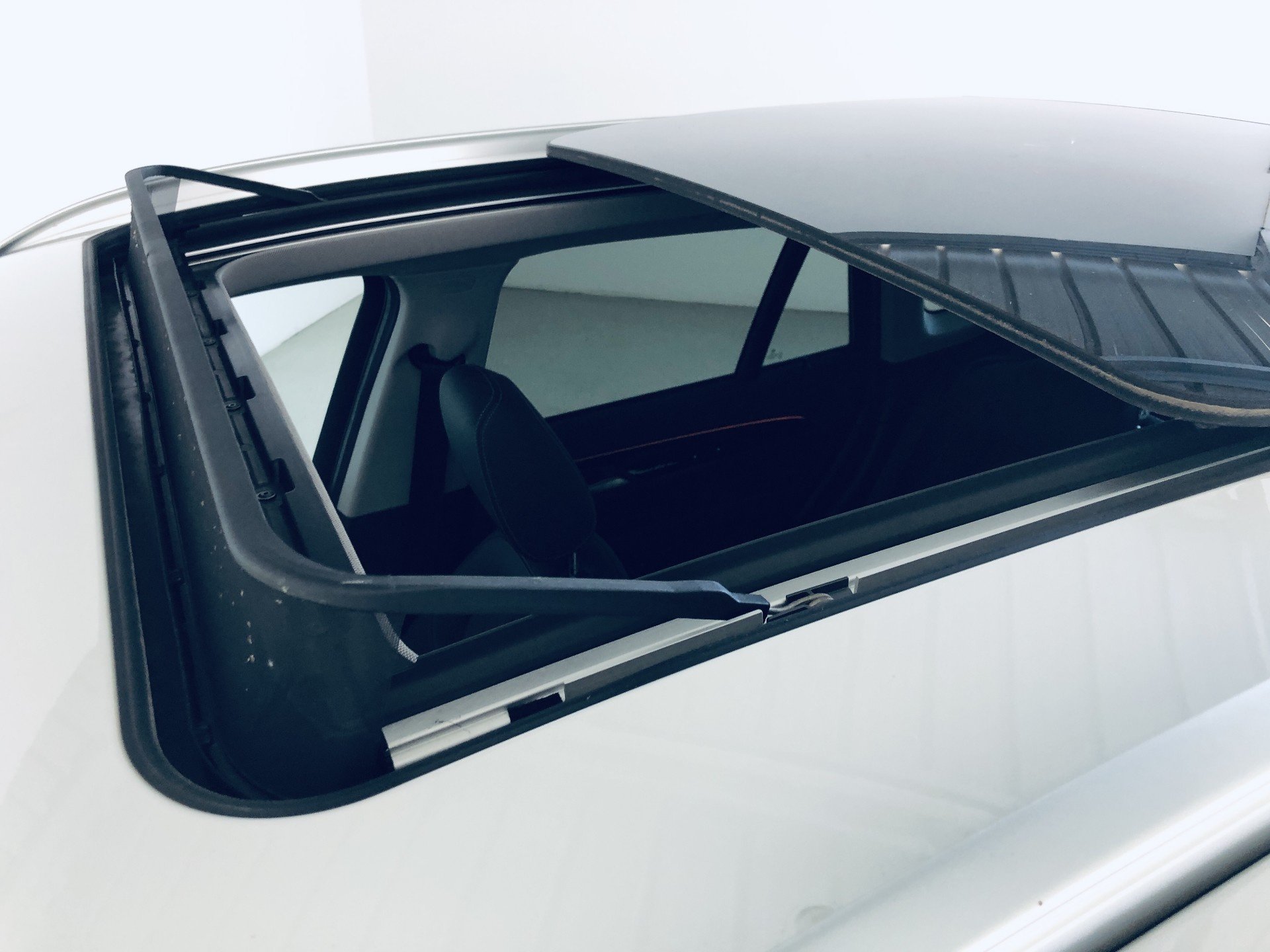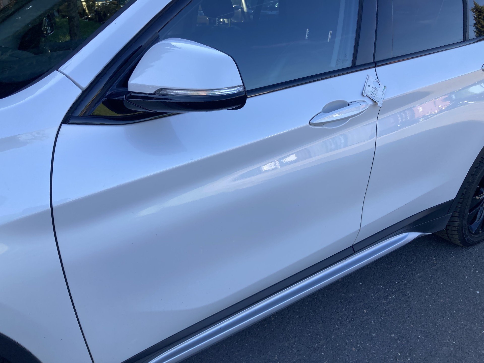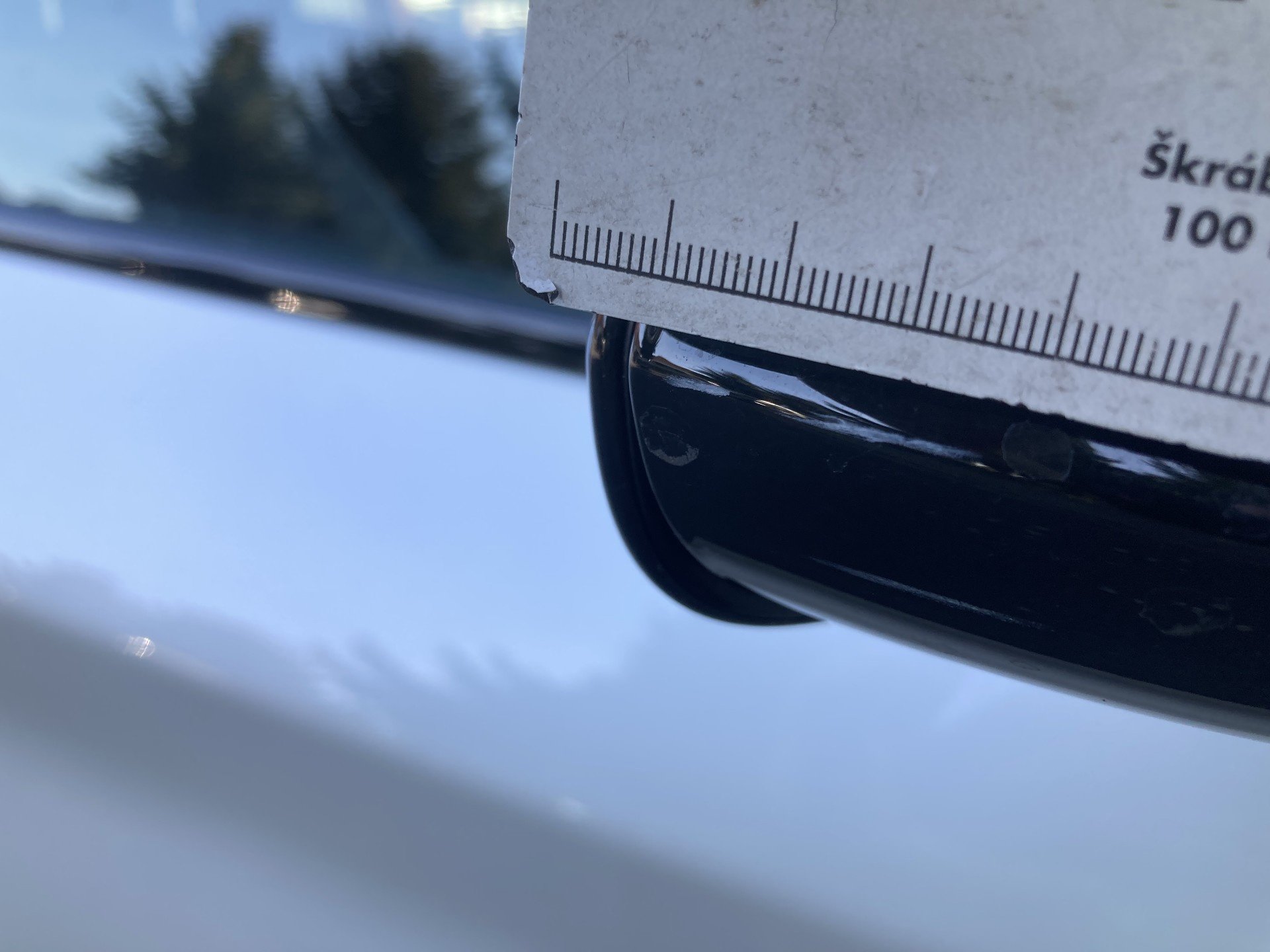 Oděrky a škrábance po obvodu karosérie, přední část karosérie je poškozená od kamínků, odřený přední dveře, poškozené čelní sklo, odřený zadní nárazník, odřená střecha, odřené pravé přední dveře, mírně promáčklý lem levého zadního blatníku - jamka, karosérie neses topy po předchozí opravě, interiér vozidla opotřeben,