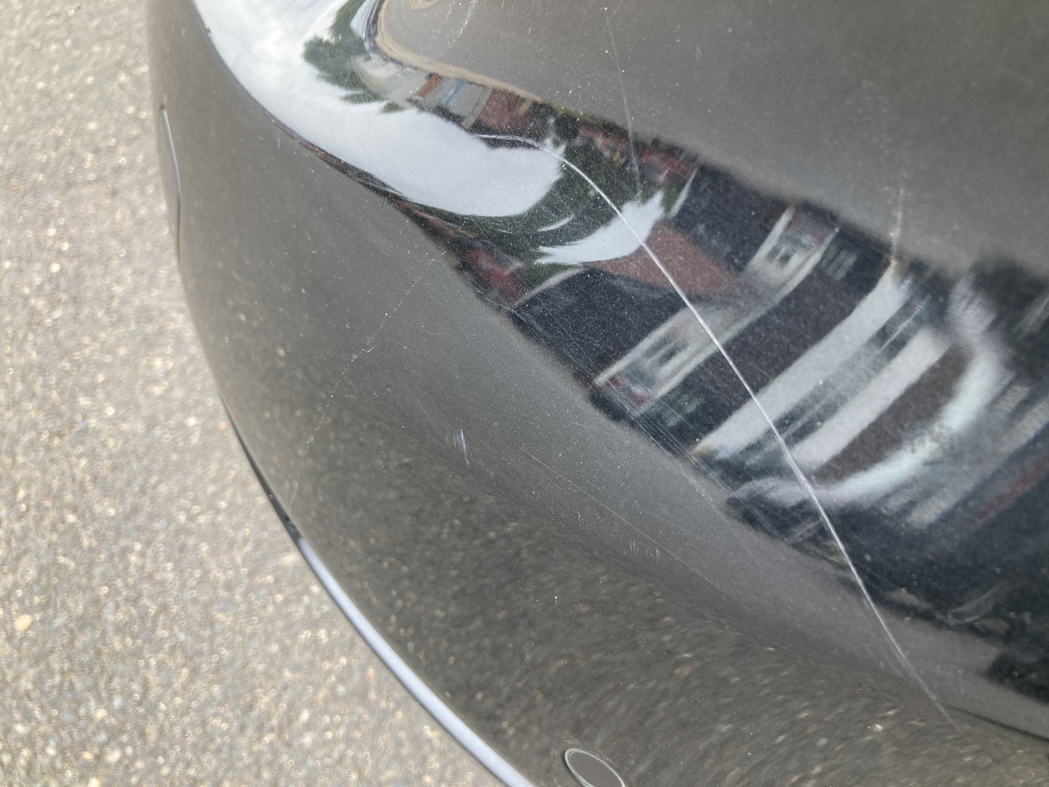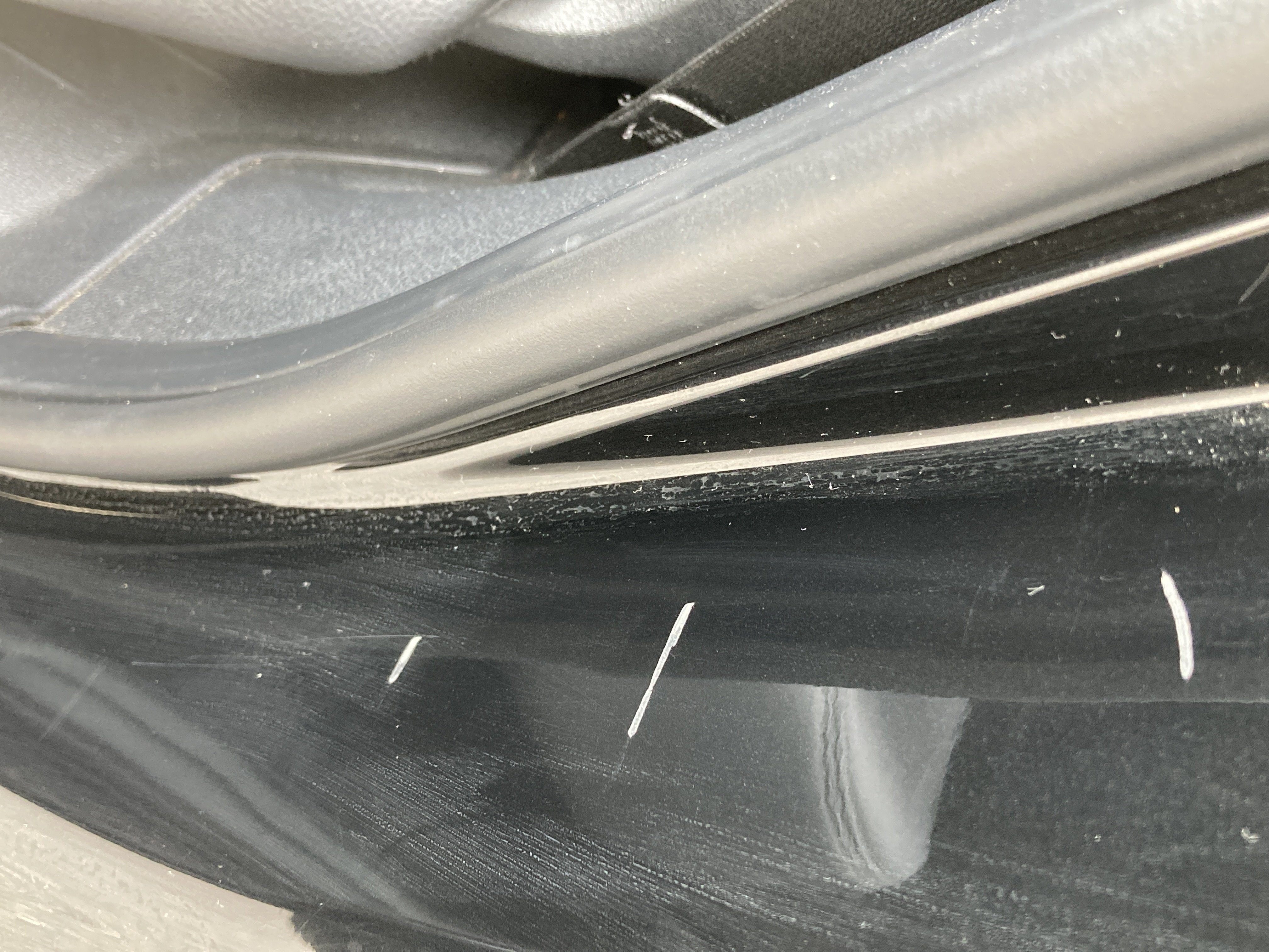 Oděrky a škrábance po obvodu karosérie, přední část karosérie je poškozená od kamínků, poškozená hluková izolace víka motorového prostoru, mírně promáčklý levý přední blatník - jamka, mírně odřené levé zadní dveře, odřený zadní nárazník, mírně odřené víko zavzadlového prostoru, mírně odřený kryt pravého zpětného zrcátka, mírně odřený pravý práh, interiér vozidla opotřeben, karosérie nese stopy po předchozí opravě, deformace plata střechy v zadní části, interiér vozidla opotřeben,