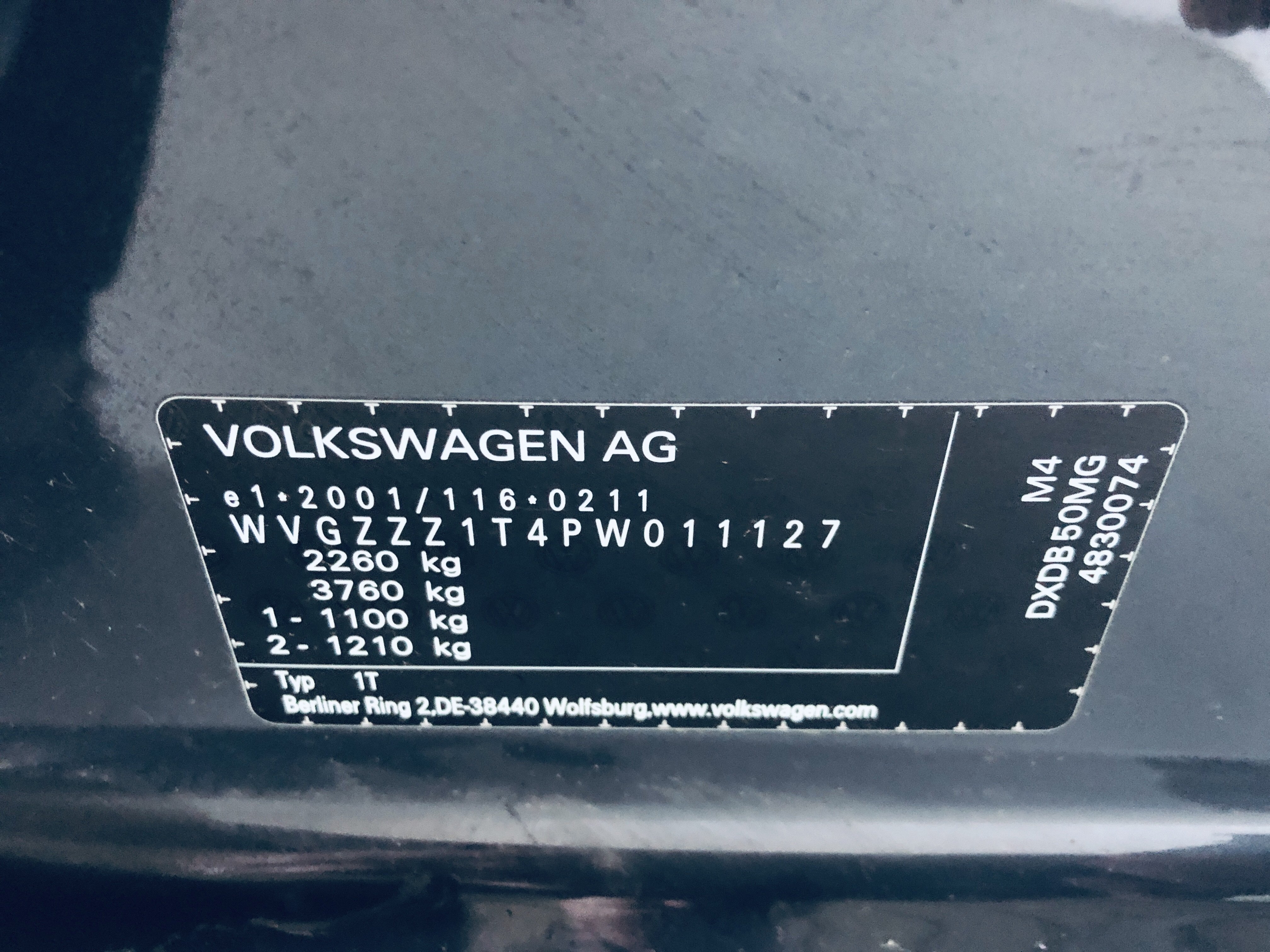 | VIN | WVGZZZ1T4PW011127 |
