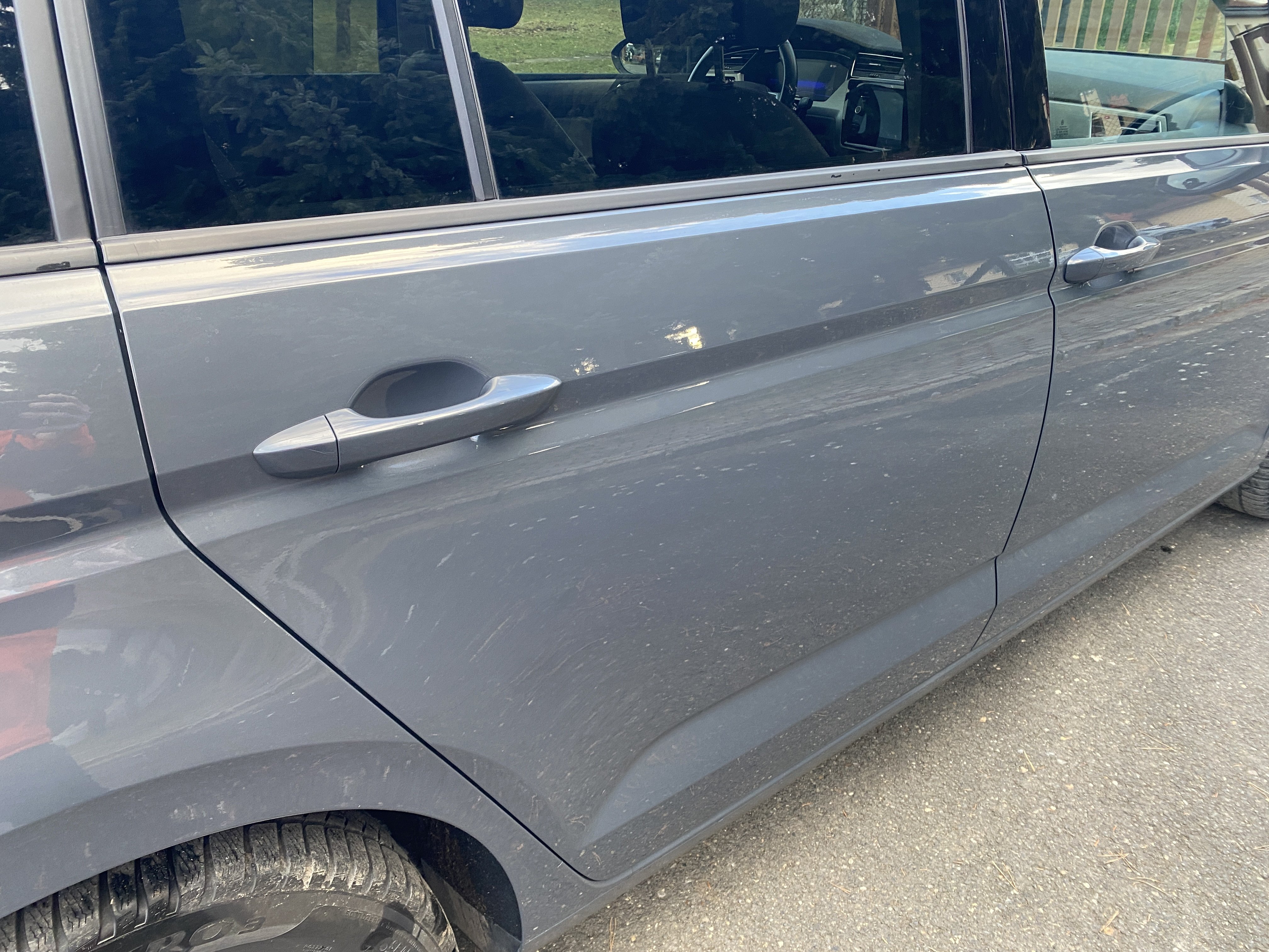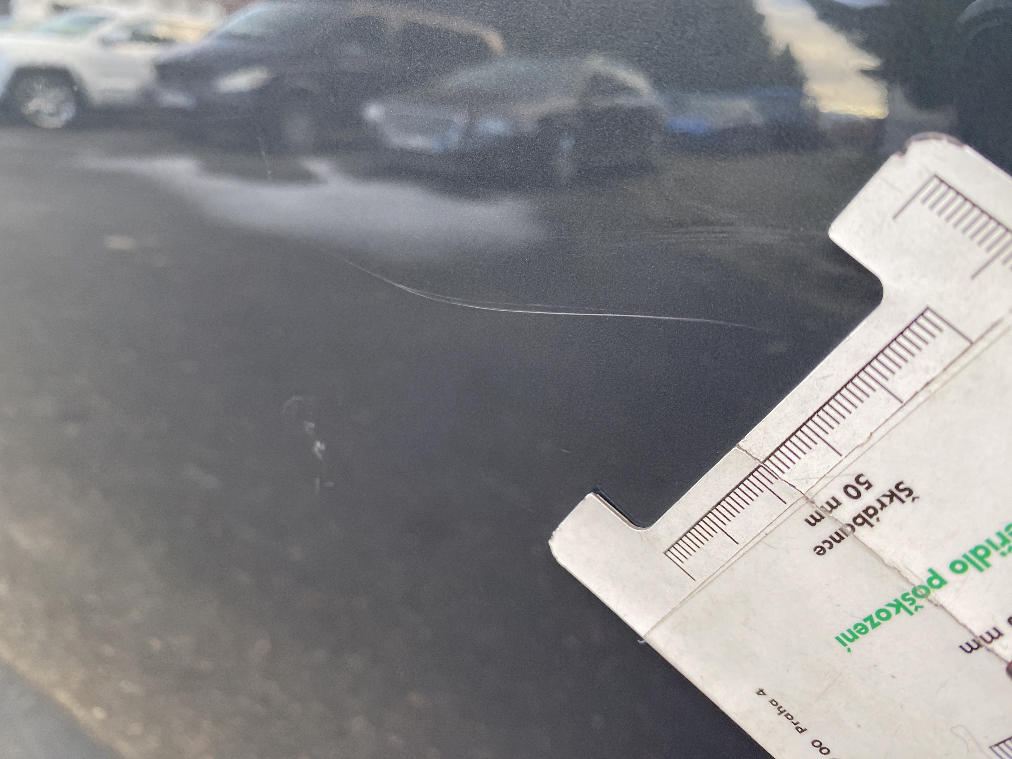 Oděrky a škrábance po obvodu karosérie, přední část karosérie je poškozená od kamínků, odřený levý A sloupek, odřená klika levých předních dveří, odřené levé přední dveře, odřené levé zadní dveře, odřený zadní nárazník, mírně promáčklý pravý zadní blatník - jamka, odřená klika pravých zadních dveří, odřené pravé zadní dveře, mírně poškozené čelní sklo, interiér vozu opotřeben,