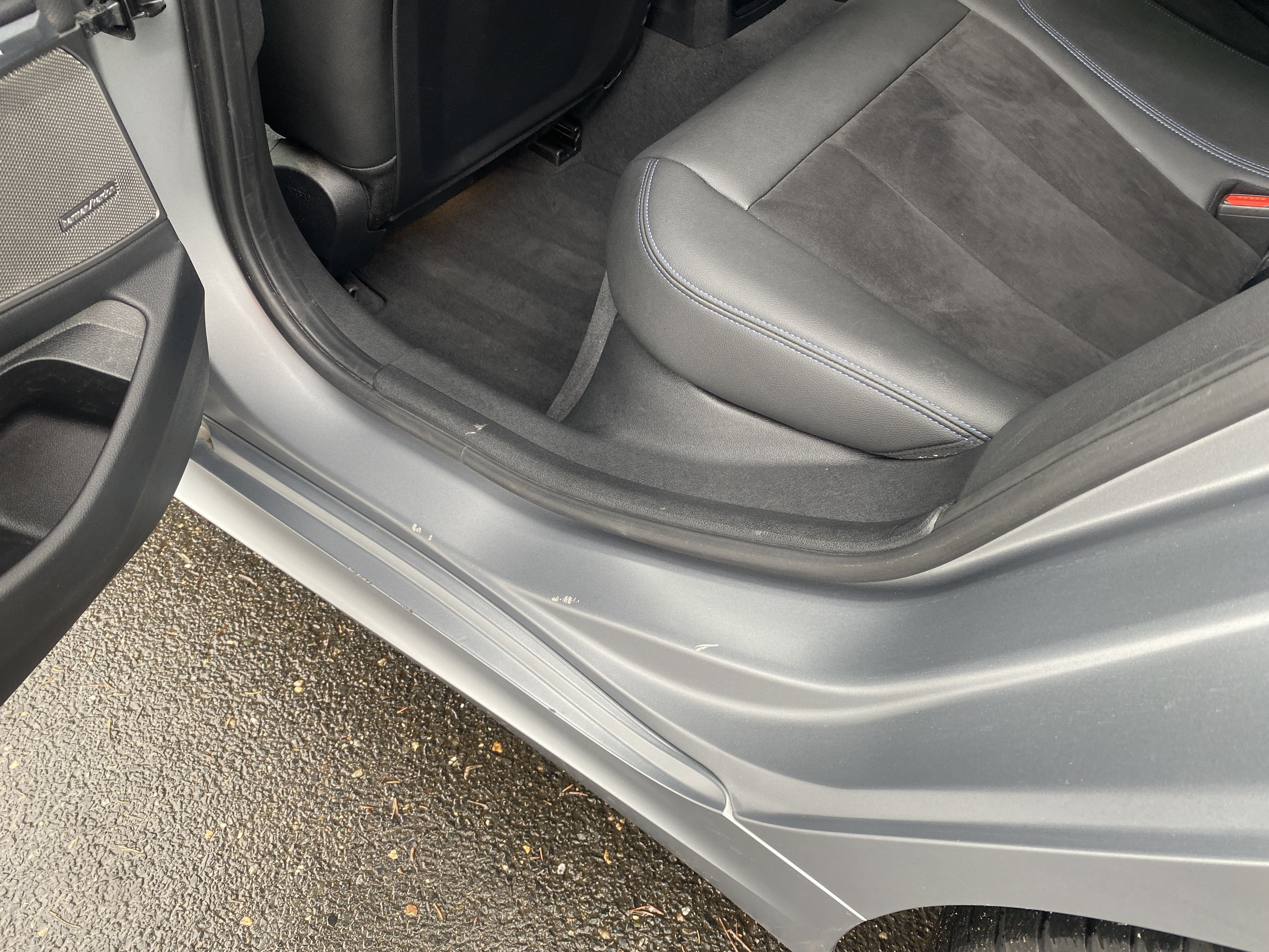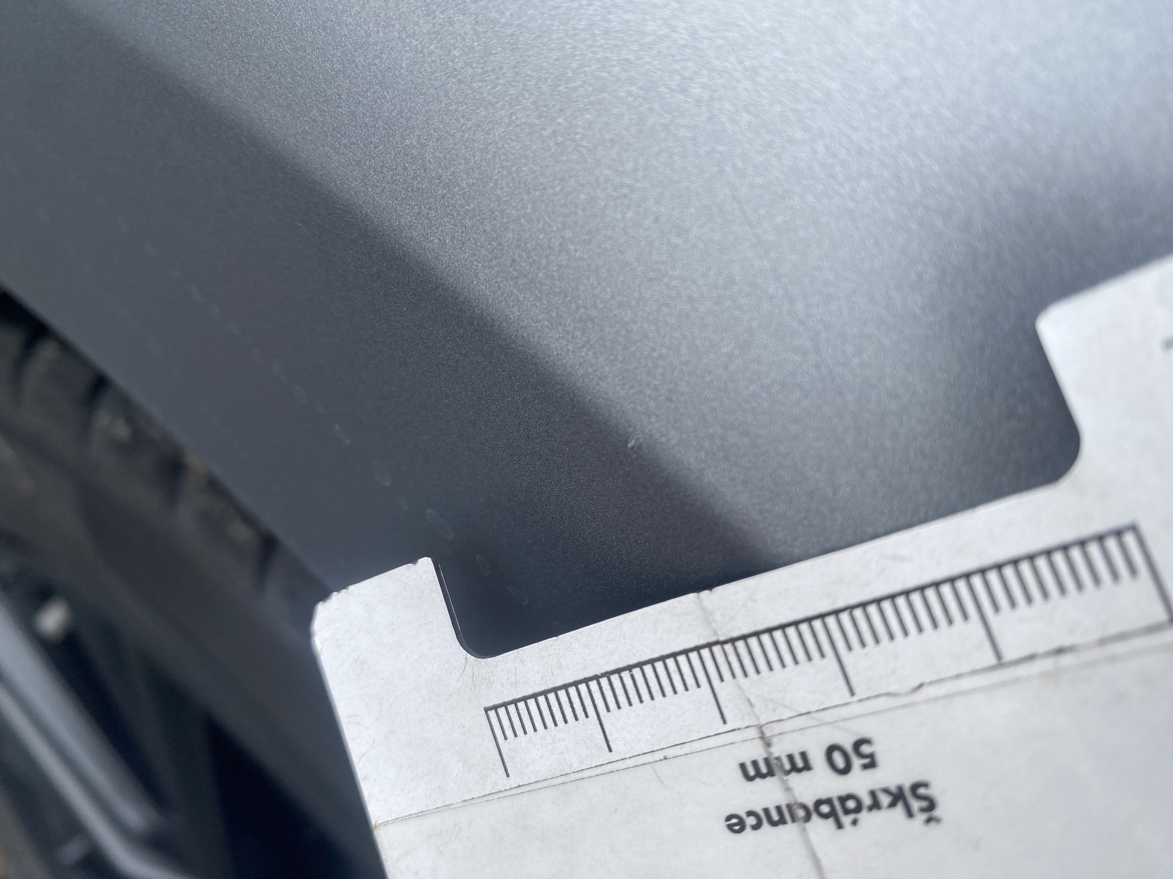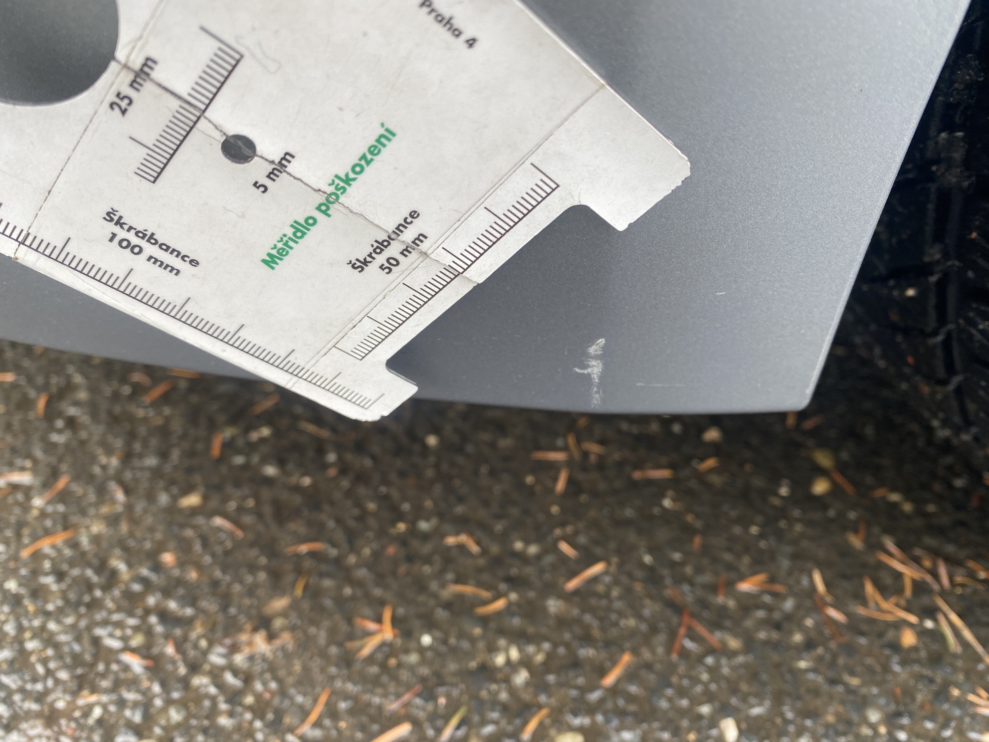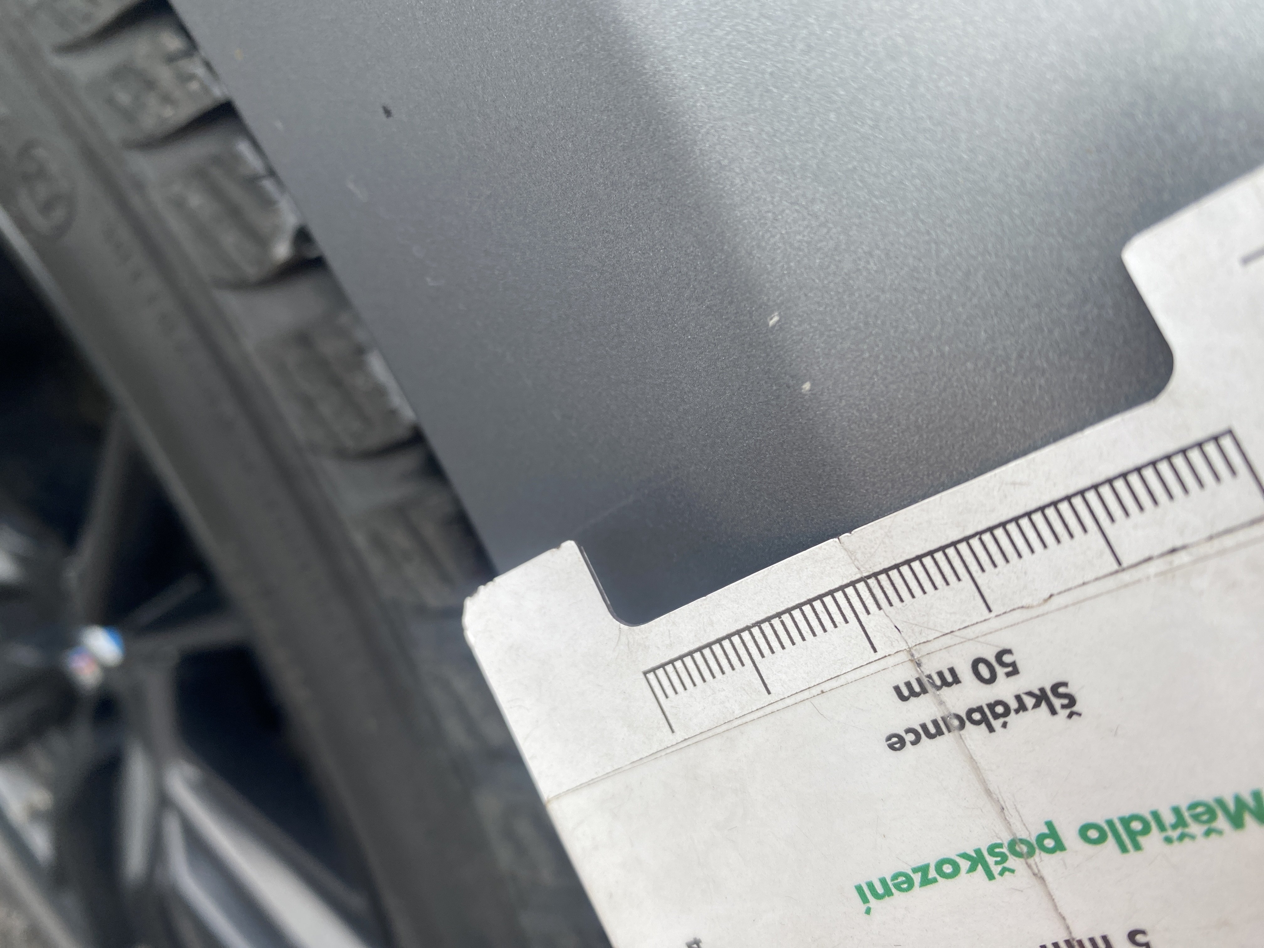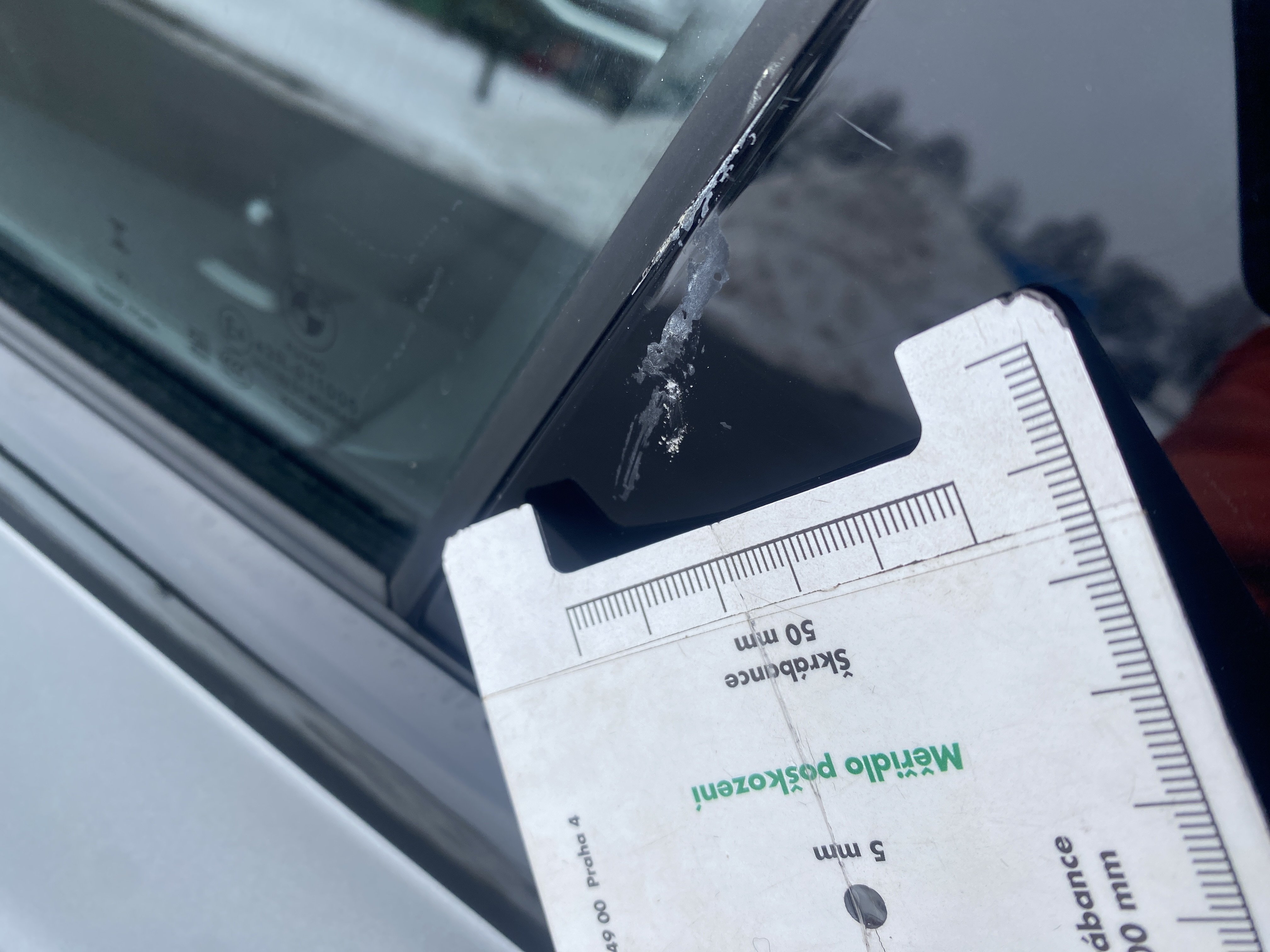 Oděrky a škrábance po obvodu karosérie, přední část karosérie je poškozená od kamínků, mírně odřený pravý přední blatník, mírně odřený přední nárazník, poškozené čelní sklo, odřené levé zadní dveře, odřený zadní nárazník, odřené a mírně promáčklé víko zavzadlového prostoru - jamka, mírně odřený lem pravého zadního blatníku, odřený vnitřní levý práh, odřené levé přední dveře, interiér vozidla opotřeben,