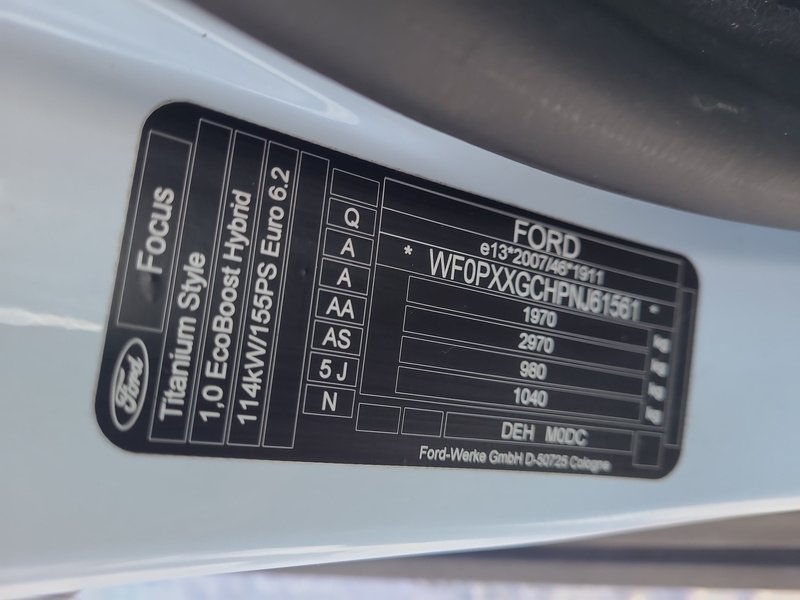 Standardní výbava: 3. světlo brzd., airbag strana spolujezdce odpojit., asistent světlometu s senzor den/noc, barevný displej pro počítač palub., bezklíčové startování, brzda park. el. s funkce Auto-Hold(brzda park. el.), chromovaný dekor skla boč., držadlo řadicí/volicí páky kůže, elektron. stabiliz. systém (ESP), elektronický rozdělovač brzdného účinku (EBD) (EBD), FordPass Connect včetně eCall(Pomocný systém řidiče: systém bezpeč. SYNC s automat. volání nouz.), imobilizér, Inteligentní omezovač rychlosti(omezovač rychlosti, Pomocný systém řidiče: asistent rozpoz. dopr. značky), Intelligent Protection System (IPS)(airbag strana řidiče/spolujezdce, airbag hlavový/ramenní vpředu a za., airbag boč. vpředu, pás bezpeč. 3-bodový za., předpínač pásu), karoserie: 5-dv., klimatizace autom. 2-zónový, kličky dveří vnější barva vozidla, kontr. systém tlaku v pneu, konzola stř. Premium(opěrka ruky stř. vpředu s přihrádka odkl. a 12V-zásuvka), konzola střešní Premium(schránka na brýle v obložení stropu / konzola střešní integr.), kryt zavaz. prostoru / roleta, lampička na čtení vpředu, lampičky na čtení vzadu, lišty chrom. na boční skla spodní, Mild-Hybrid 114 kW (motor 1,0 Ltr. - 114 kW EcoBoost), My Key (2. klíč vozidla programovatelný), nosič střeš. podél. (hliník), nárazník barva vozidla, ocelové ráfky 6,5x16, opěra beder. sedadlo vpředu levý, opěradlo sedadla za. dělený/sklop. (60:40), opěrky hlavy za. mech. nastav. (3 díl), opěrky hlavy za. nastav., osvětlení zavazadl. prostoru, paket Audio 67(rádiový příjem digitální (DAB), ovládání audio na volantu, 6 reproduktor, hlasová modulace a Bluethooth rozhraní, příprava mobilní telefon/Handy s Bluetooth/USB port, Pomocný systém řidiče: systém bezpeč. SYNC s automat. volání nouz., USB propojení, Audio-navigační systém Ford SD (s Ford SYNC 4 a barevný dotykový displej)), paket Viditelnost(svět. funkce Coming-Home, světlomet s prodleva vypínače, stěrač s senzor dešťový, zrcátko zpět. vni. s ztmavování automat.), pneu - oprav.sada, podlaha ložného prostoru nastav., Pomocný systém řidiče: asistent nouzové brzdy, Pomocný systém řidiče: asistent pro jízdu v pruhu, Pomocný systém řidiče: asistent rozjezdu do kopce (Hill-Holder), Pomocný systém řidiče: Pre-Collision-System, Pomocný systém řidiče: výběr jízdního programu (Drive Mode), posilovač brzd el., počítač palub. /počítač spotřeby paliva(Eco-indikace pro jízdu s optimál. spotřebou (EcoCoach)), prosklení tón., protiblok. brzd. systém (ABS), protiprokluzová regulace (ASR), převodovka 6-rychl. - typ: 6MX65, regulátor rychl. (tempomat), rohožky velur - vpředu, s nízkou úrovní škodlivin podle normy výfuk. emisí Euro 6d, sedadlo vpředu levý výškově nastav., servořízení el., sloupek řízení (volant) výškově/podélně stavitelný, směrovka v zrcátko vněj. integr., spoiler střešní barva vozidla, sportovní sedadla vpředu, spouštěč okna el. vpředu + za. s zamykání komfortní, start/stop systém, stěrač skla za., svítilny za. LED, světlo denní potkáv. LED, světlomet mlhový LED, světlomet mlhový s funkcí přisvícení do zatáčky, systém park. vpředu a za.(systém park. za.), uchycení Isofix pro dětská sedačka, ukazatel teploty vněj., volant (kůže 3-paprsky), zadní sklo vyhř., zamykání centr. s ovládání dálk., zařízení výstražné pro pásy bezpeč. vpředu, zařízení výstražné pro pásy bezpeč. za., zrcátko vněj. barva vozidla, zrcátko vněj. el. nastav. a vyhř., zrcátko vněj. el. sklopný, zásuvka (12V-zásuvka) v prostor zavazadl./ložný, úprava modelu (facelift), Částicový filtr zážehového motoru (OPF)