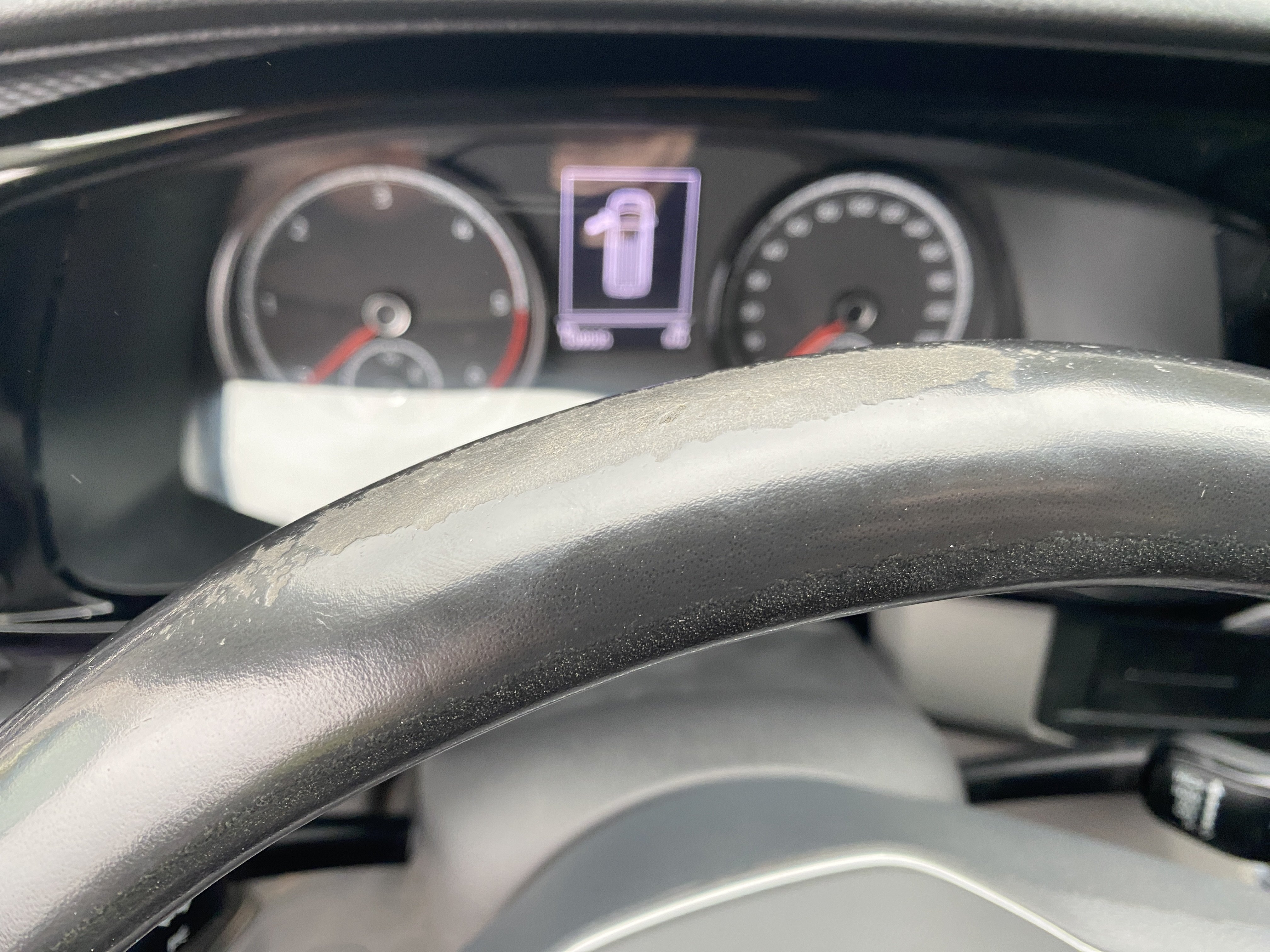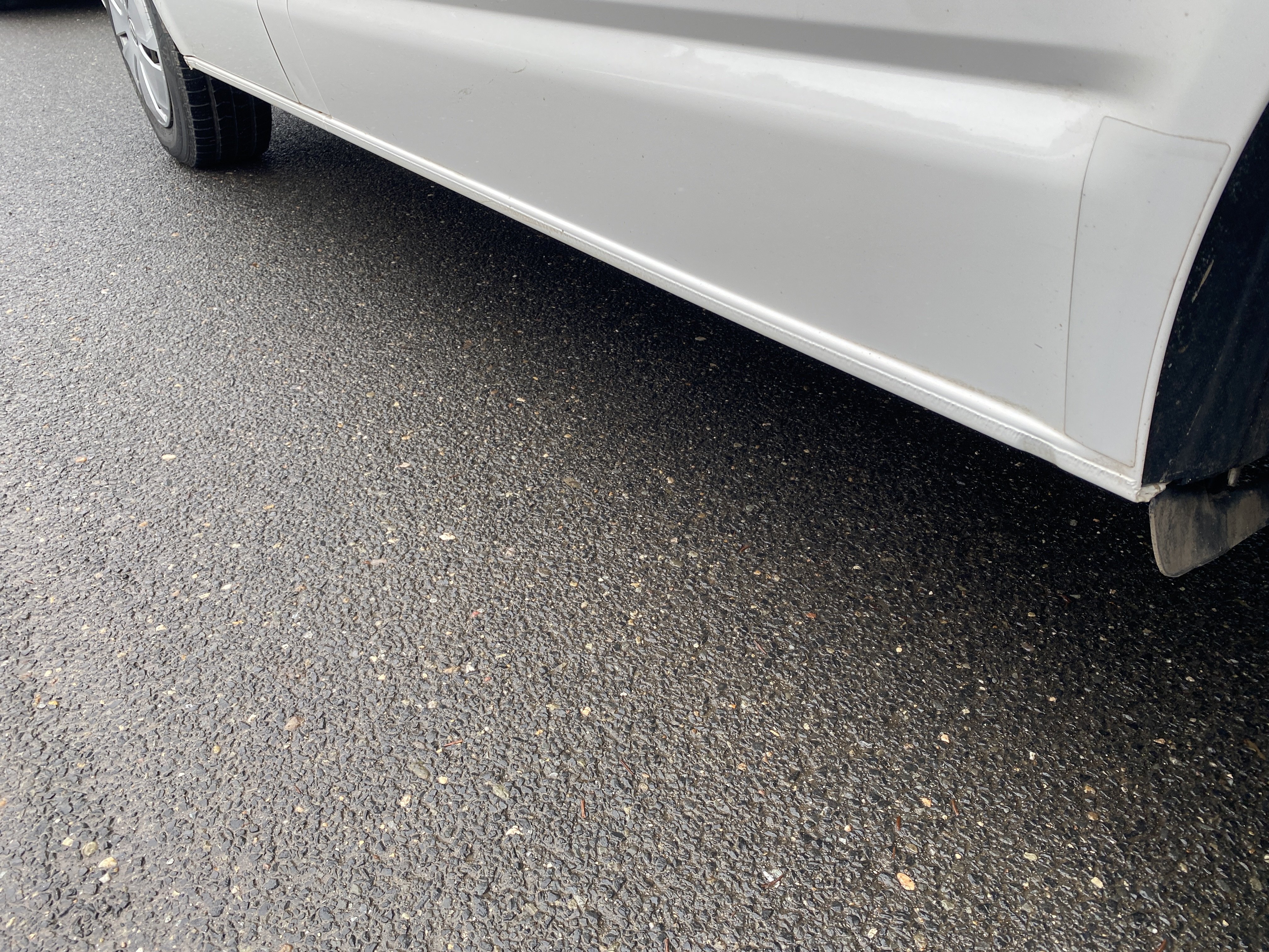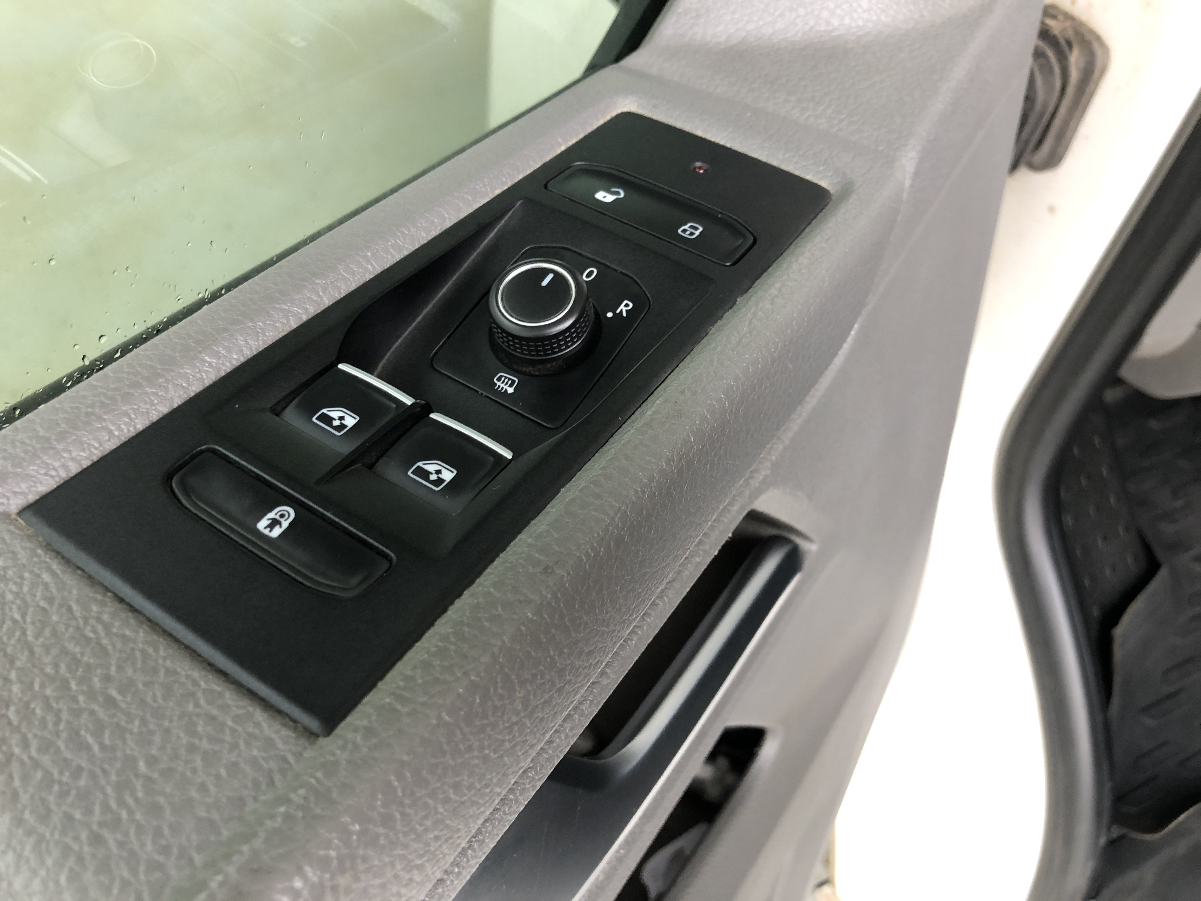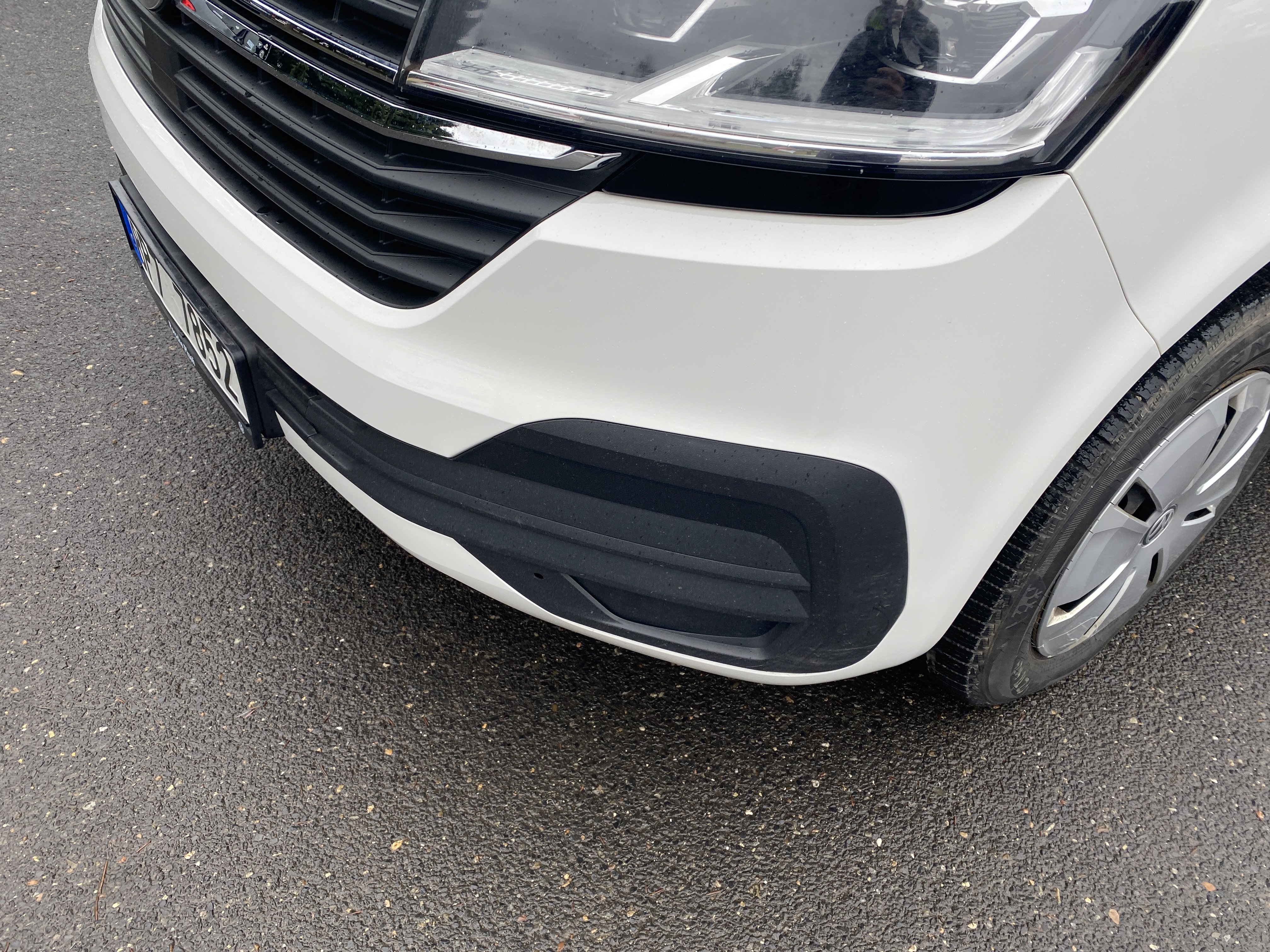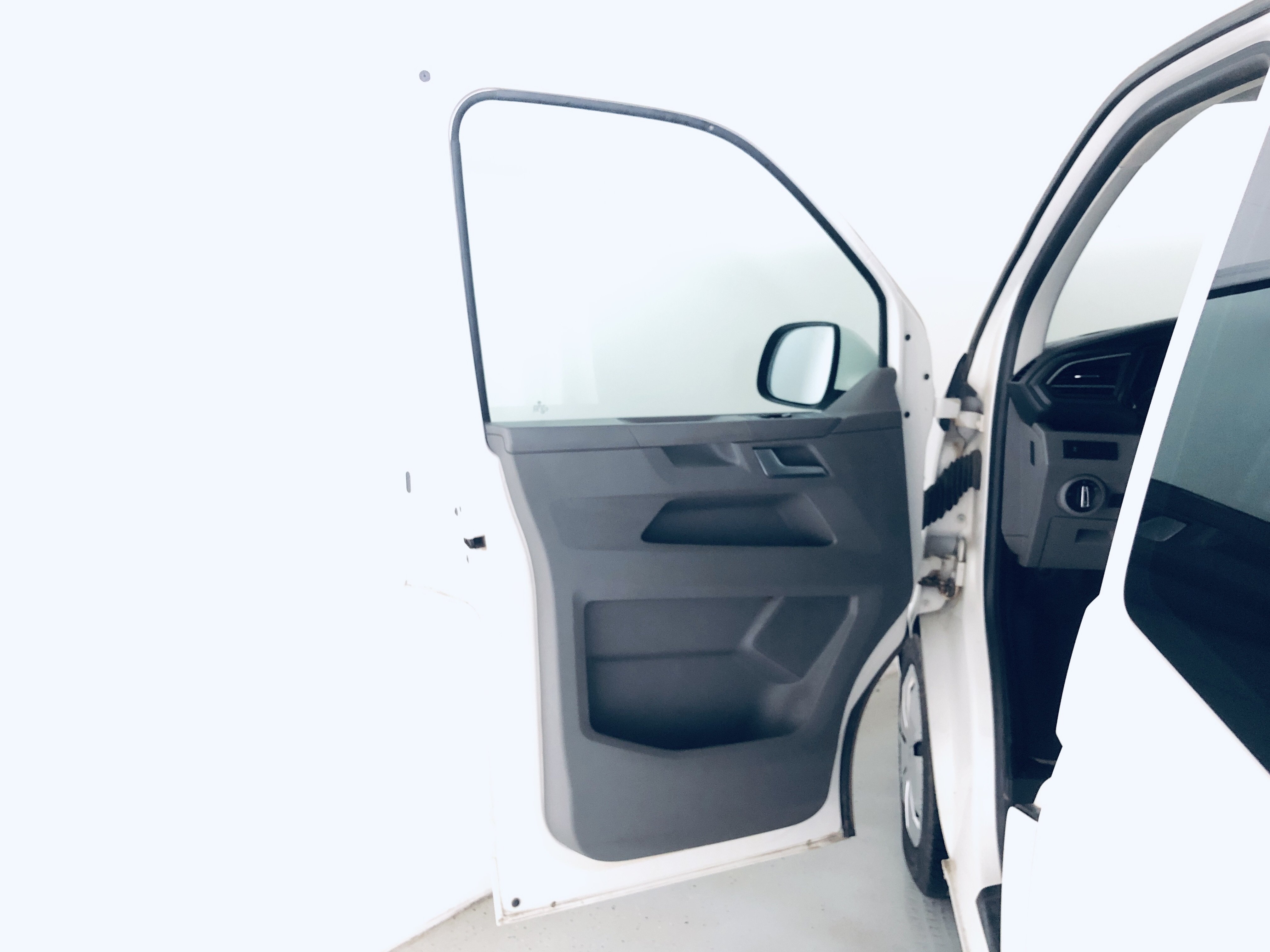 Oděrky a škrábance po obvodu karosérie, přední část karosérie je poškozená od kamínků, odřený přední nárazník, poškozené čelní sklo, mírně odřené levé přední dveře, odřený kryt levého zpětného zrcátka, promáčklý levý zadní blatník, promáčklý levý práh, odřený zadní nárazník, odřené zadní dveře nákladového prostoru, odřené pravé zadní světlo, odřené pravé posuvné dveře, odřené a mírně promáčklé pravé přední dveře - jamka, poškozen středový výdech ventilace, interiér vozidla opotřeben,