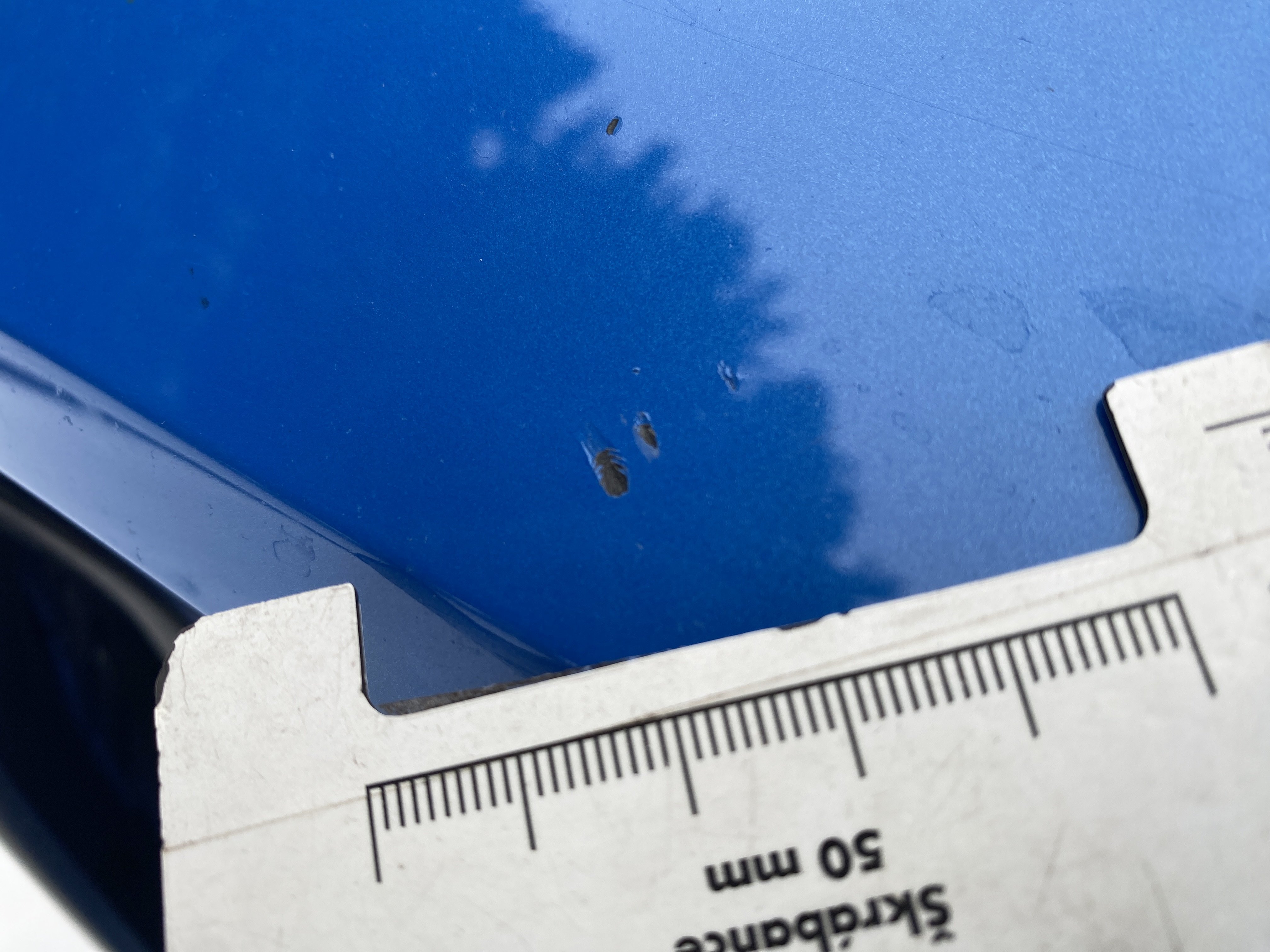 Oděrky a škrábance po obvodu karosérie, přední část karosérie je poškozená od kamínků, odřený přední nárazník, mírně odřený zadní nárazník, mírně poškozené čelní sklo, karosérie nese stopy po předchozí opravě, interiér vozidla opotřeben,