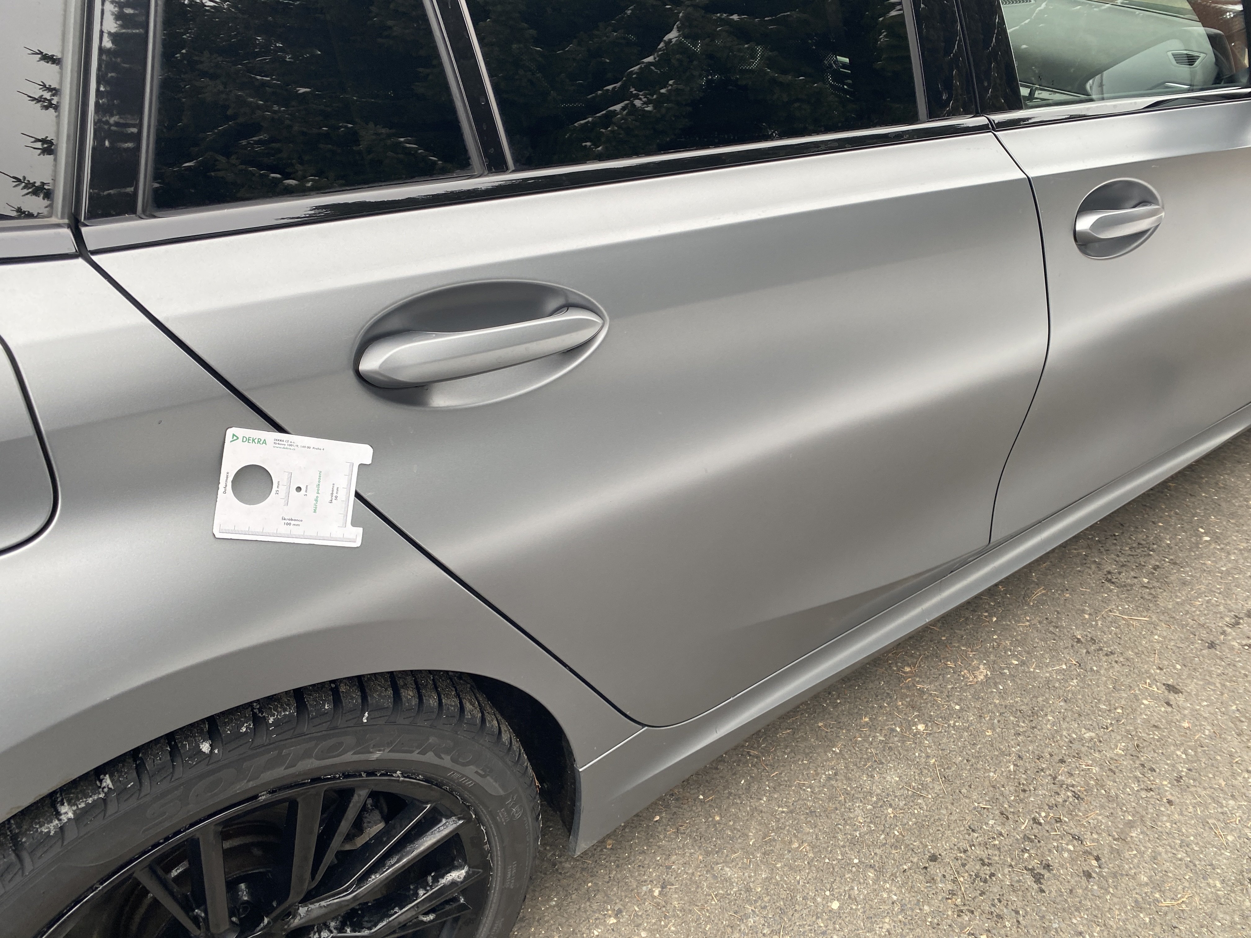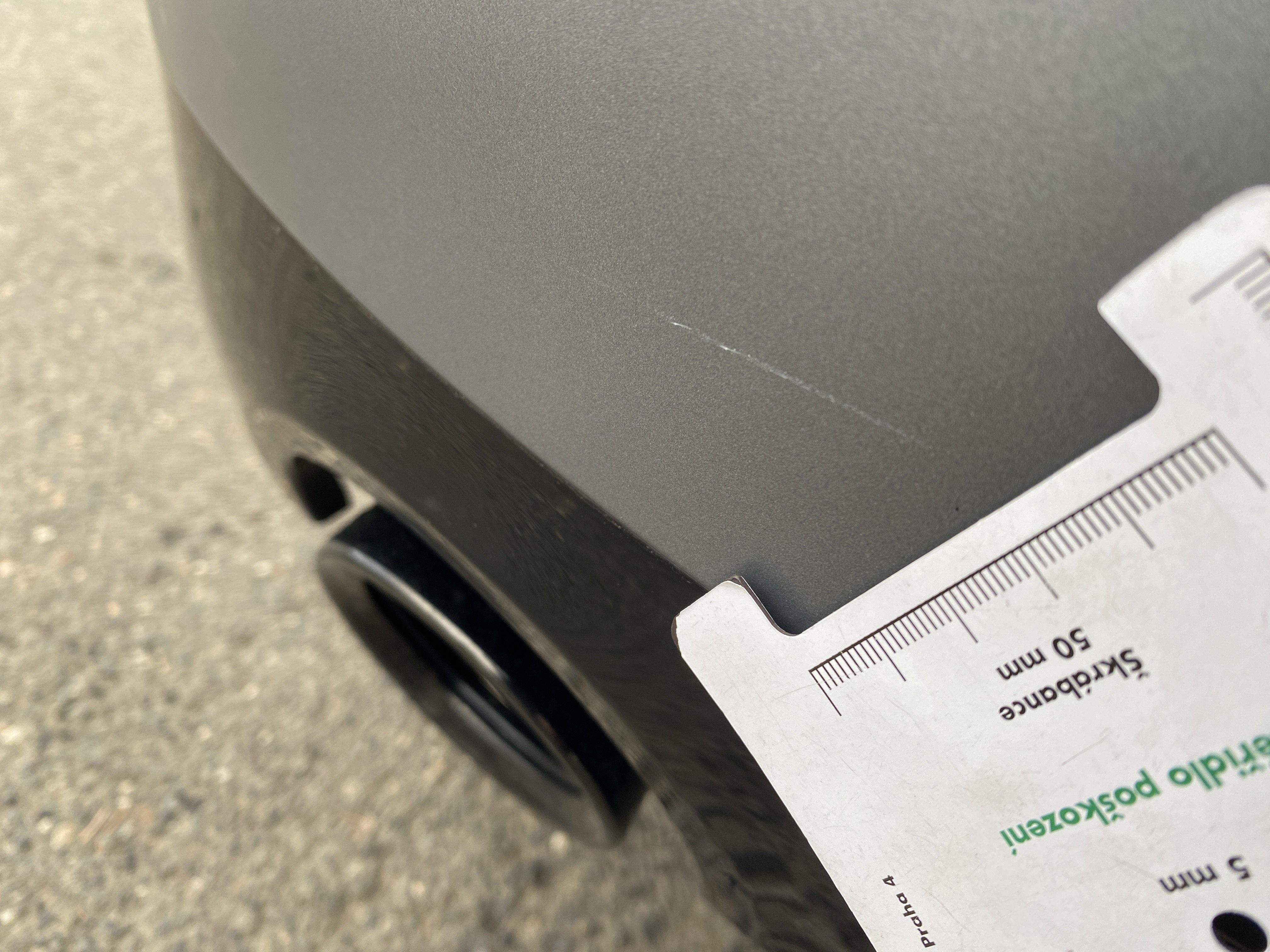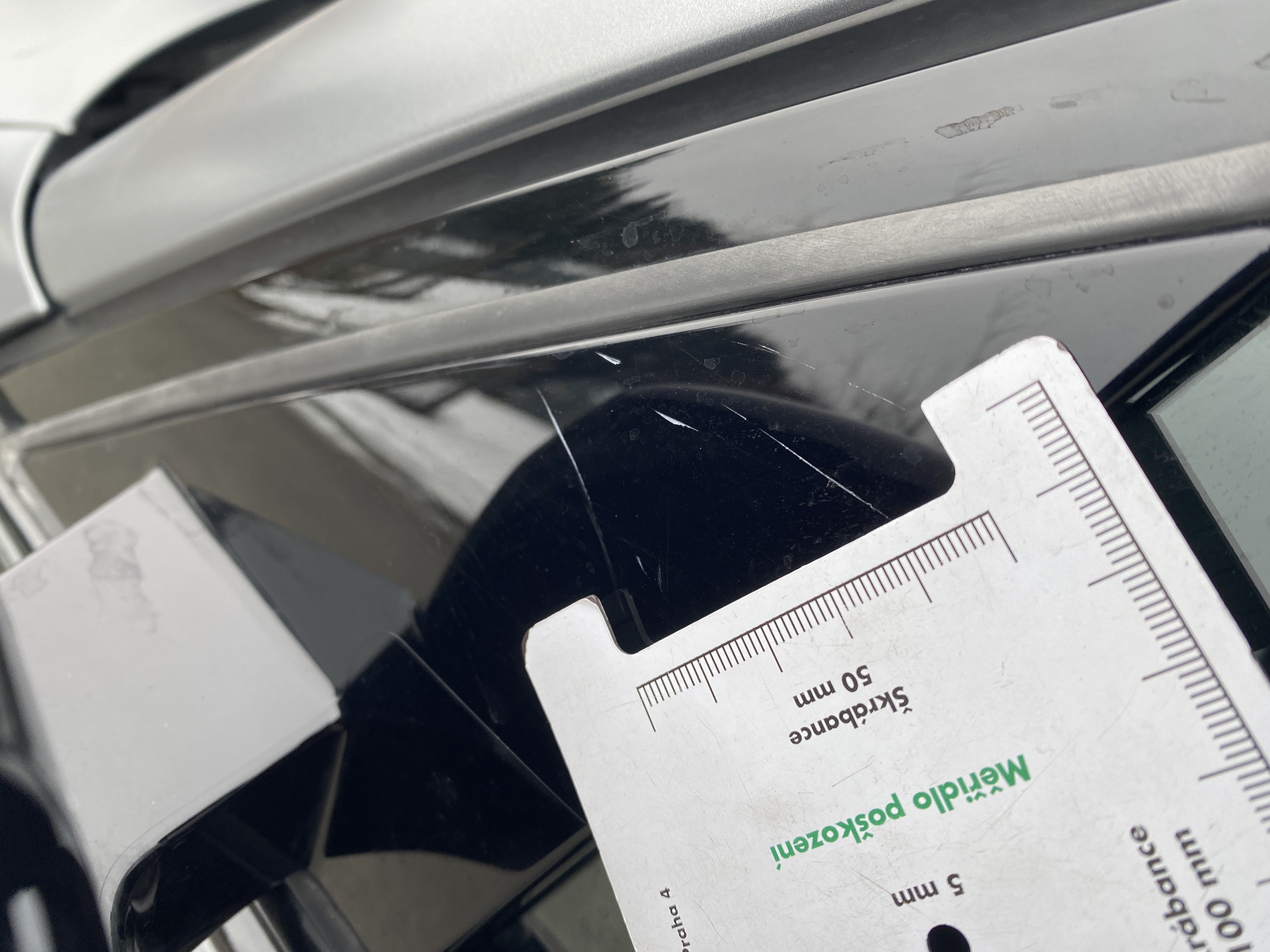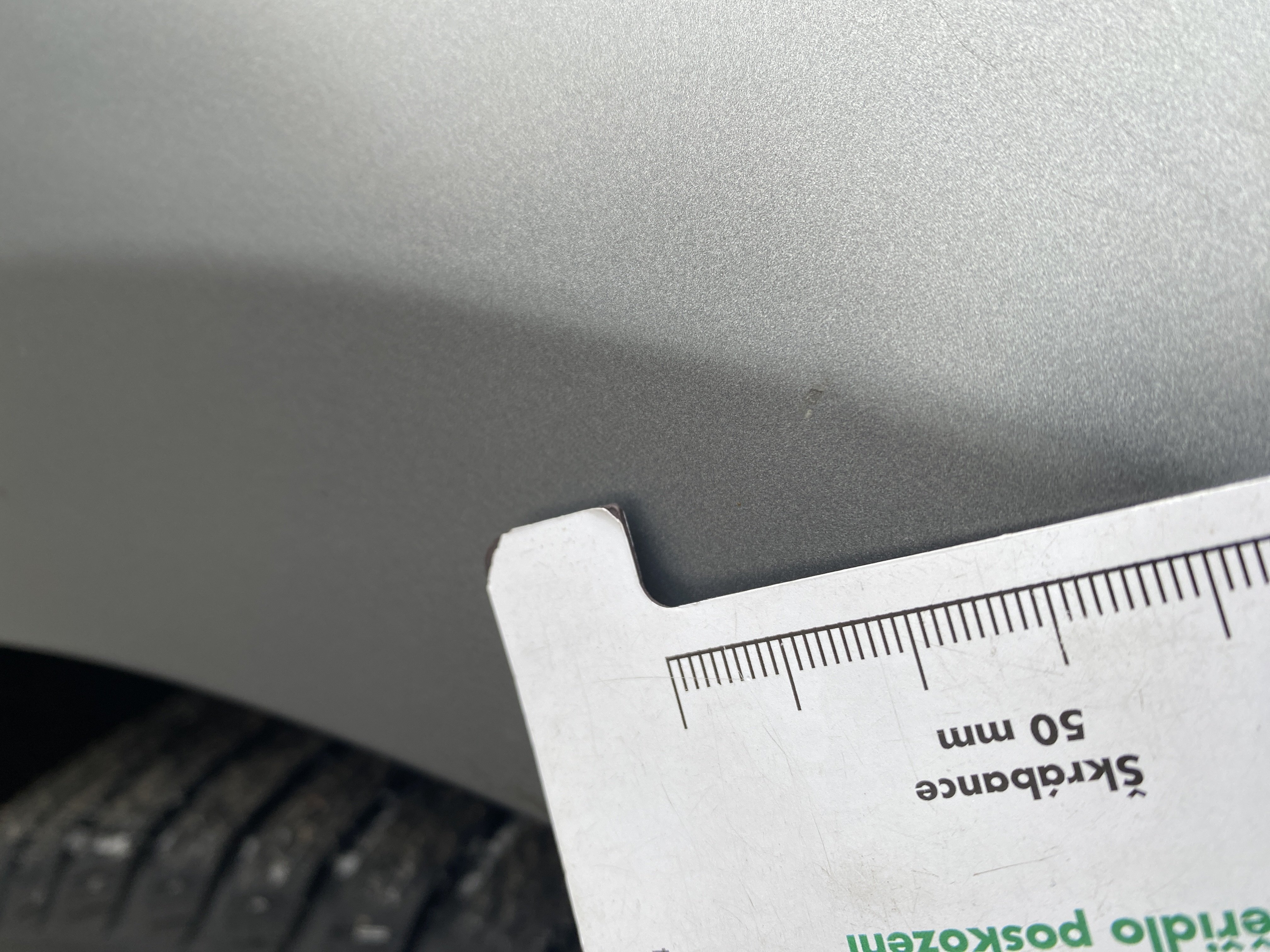 Oděrky a škrábance po obvodu karosérie, přední část karosérie je poškozená od kamínků, odřený kryt levého zpětného zrcátka, odřený zadní nárazník, mírně odřený lem pravého zadního blatníku, mírně odřené pravé zadní dveře, interiér vozidla opotřeben,