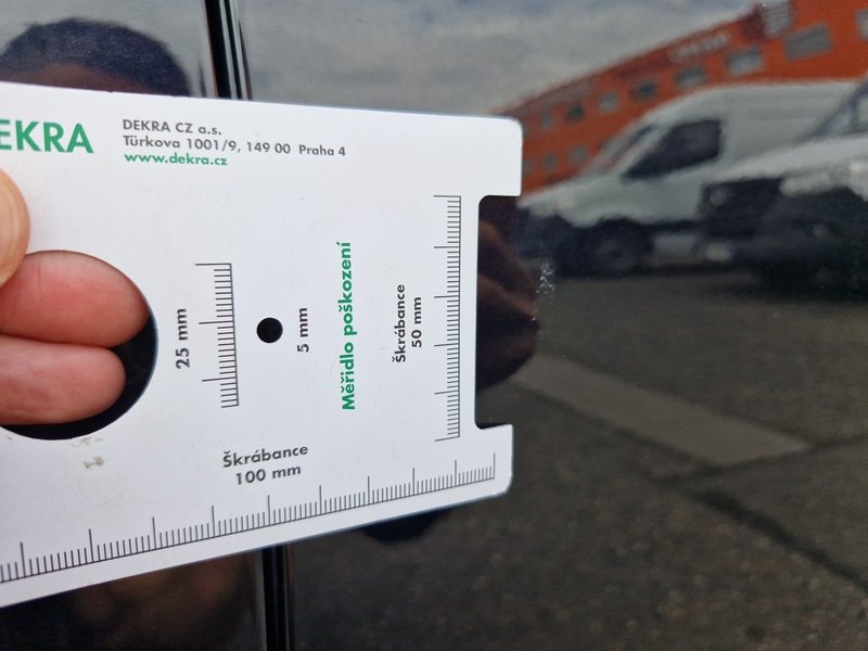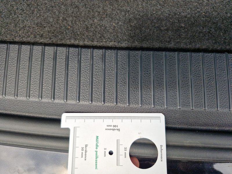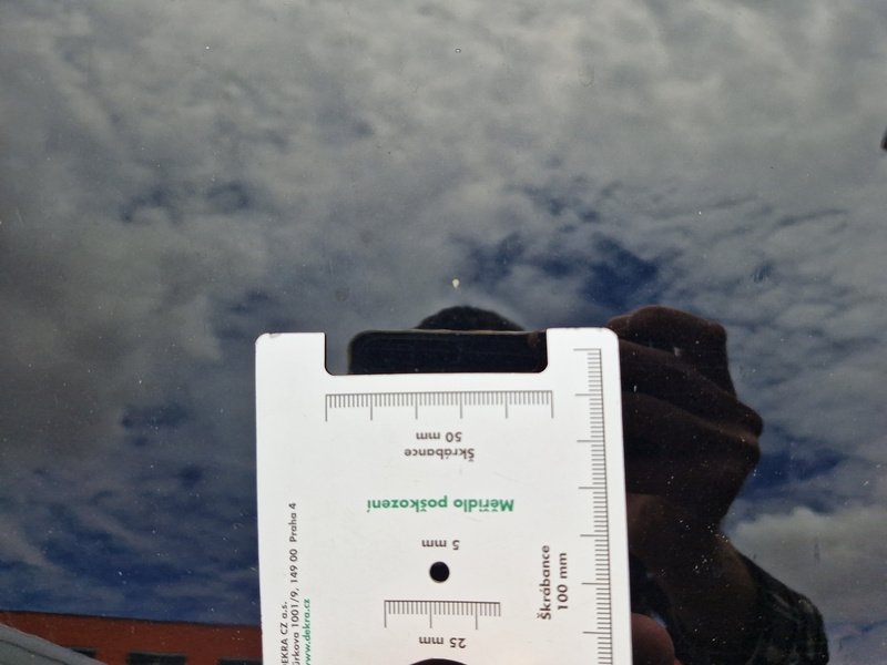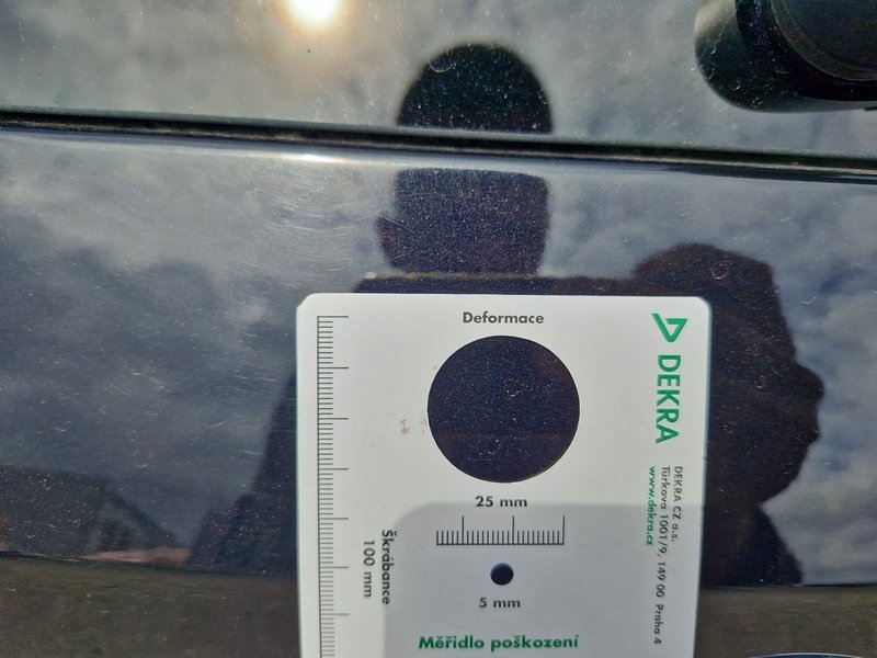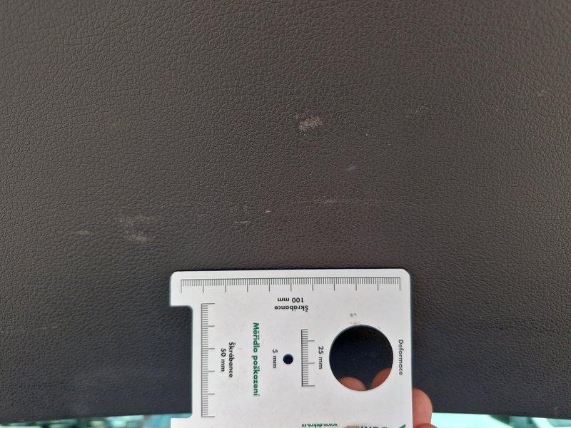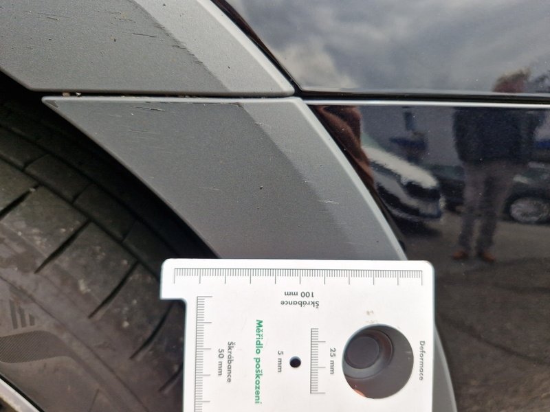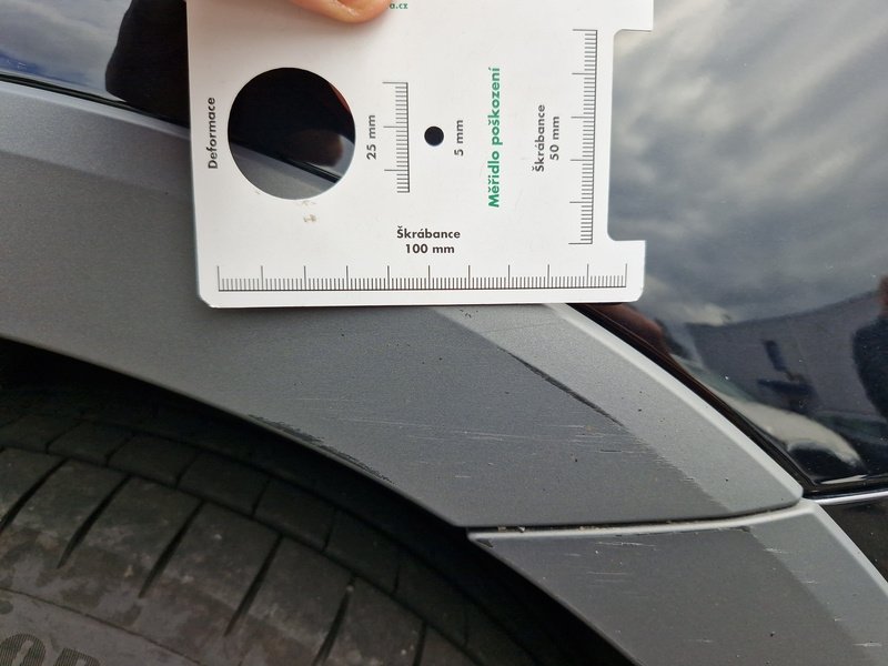 Oděrky a škrábance po obvodu karosérie, přední část karosérie je poškozená od kamínků, poškozené čelní sklo, deformace levých předních dveří, odřený kryt levého zpětného zrcátka, deformace levé zadní bočnice, odřený lem kola levé zadní bočnic,e odřený zadní nárazník, deformace zadního nárazníku, odřený spojler zadního nárazníku, mírně promáčklé víko zavazadlového prostoru - jamka, odřená pravá zadní bočnice, odřené pravé zadní dveře, odřené pravé přední dveř,e interiér vozidla opotřeben,