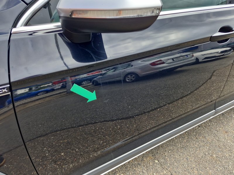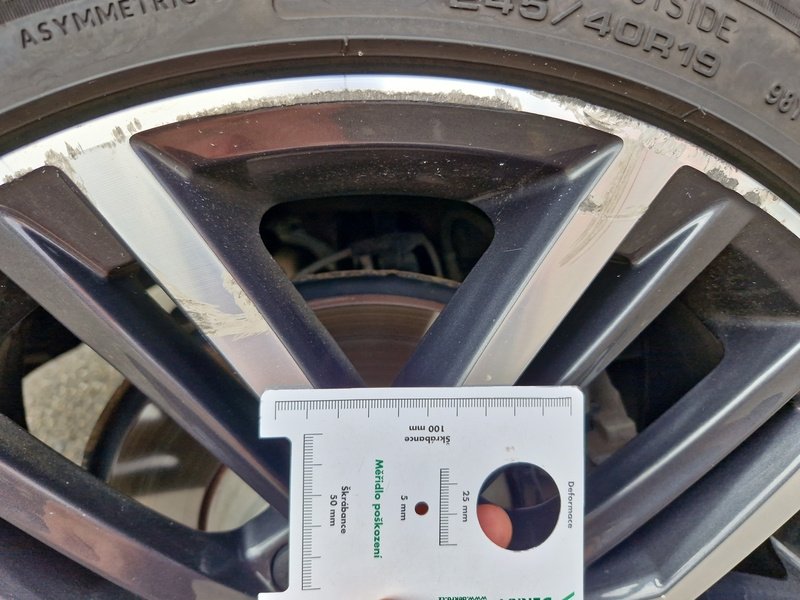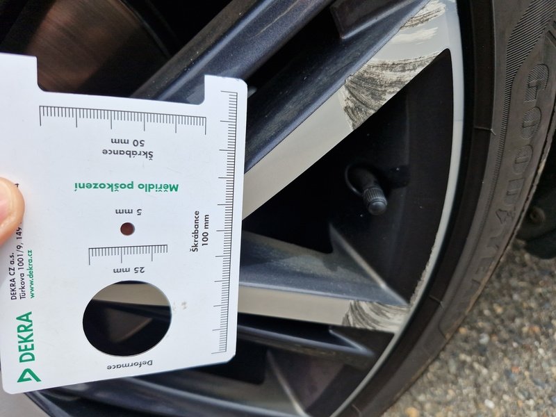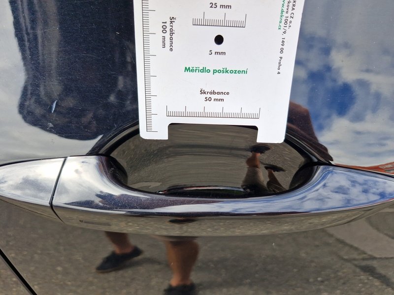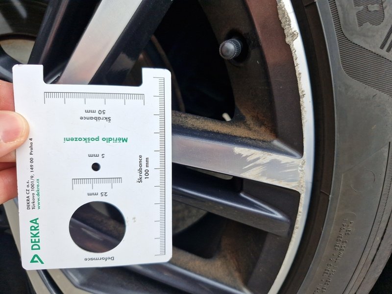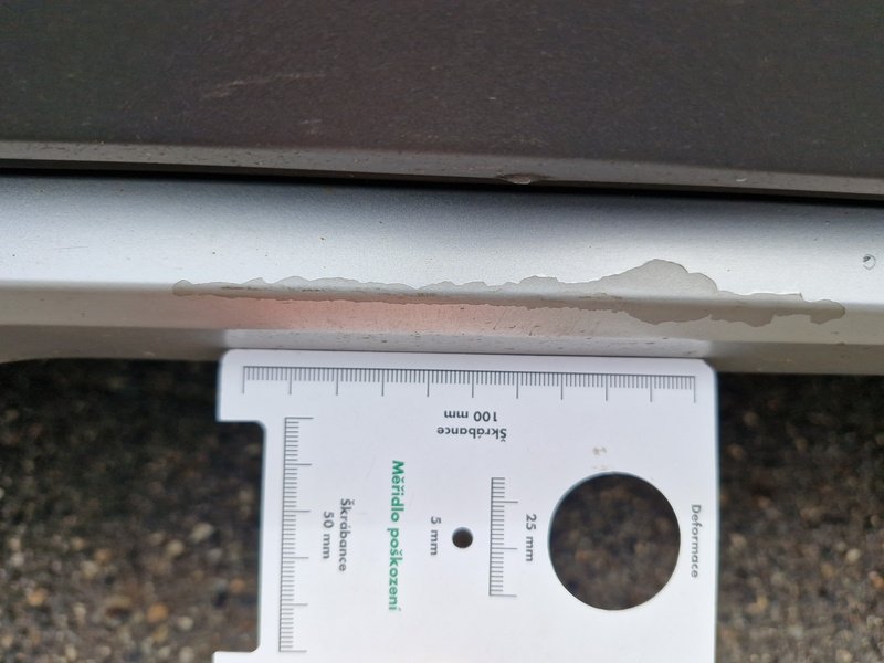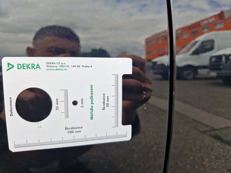 Oděrky a škrábance po obvodu karosérie, přední část karosérie je poškozená od kamínků, poškozené čelní sklo, deformace levých předních dveří, odřený kryt levého zpětného zrcátka, deformace levé zadní bočnice, odřený lem kola levé zadní bočnic,e odřený zadní nárazník, deformace zadního nárazníku, odřený spojler zadního nárazníku, mírně promáčklé víko zavazadlového prostoru - jamka, odřená pravá zadní bočnice, odřené pravé zadní dveře, odřené pravé přední dveř,e interiér vozidla opotřeben,