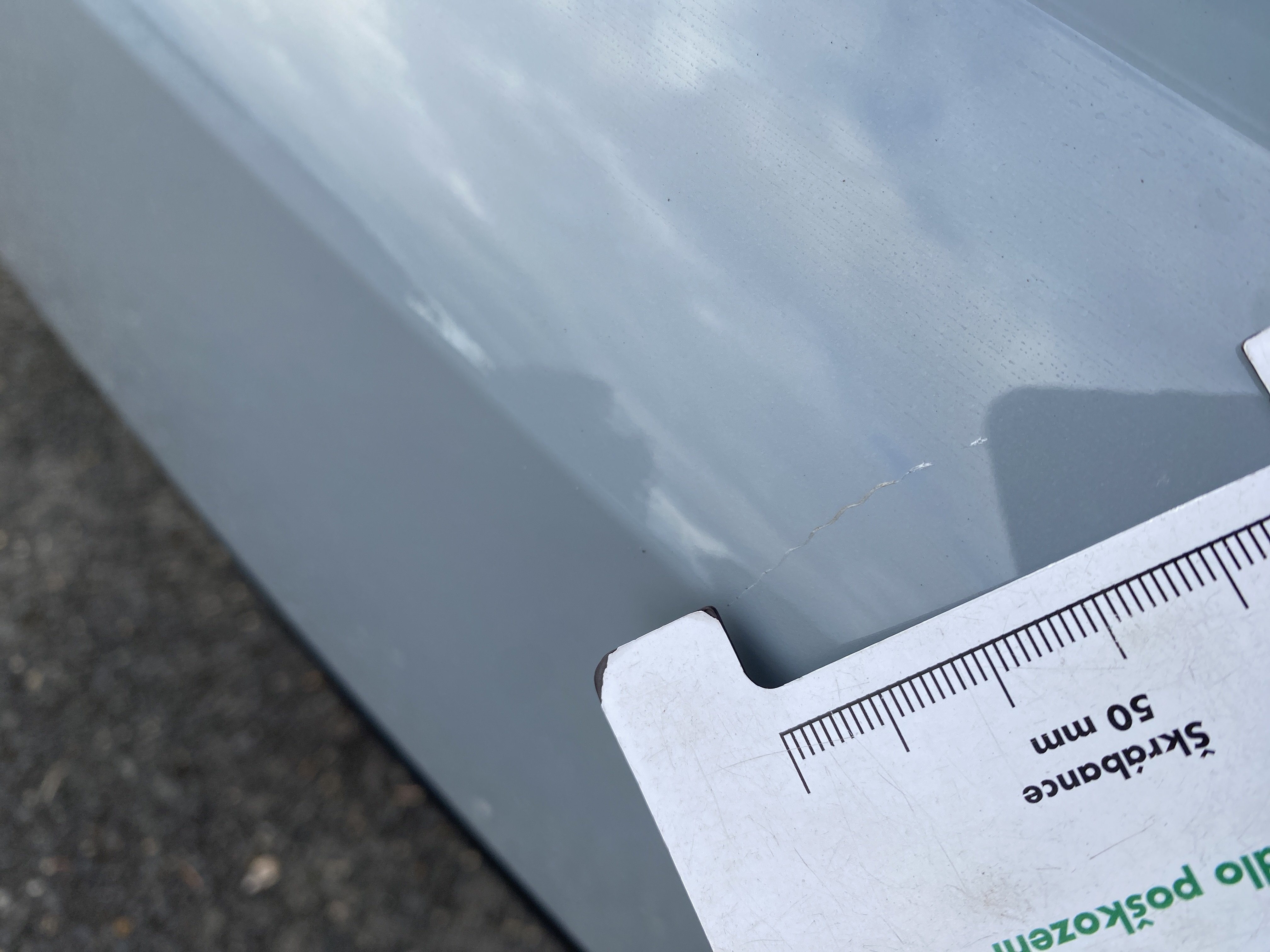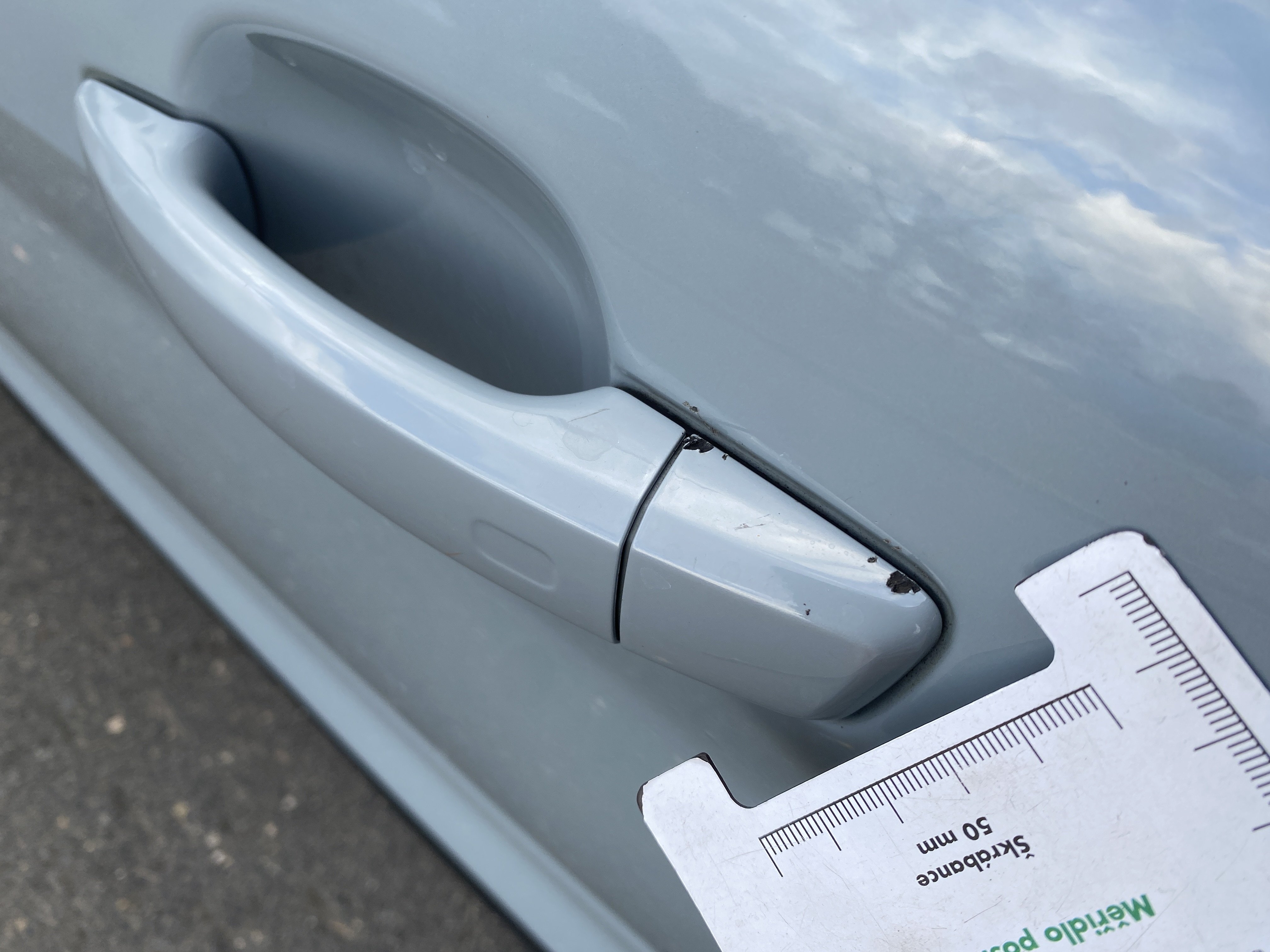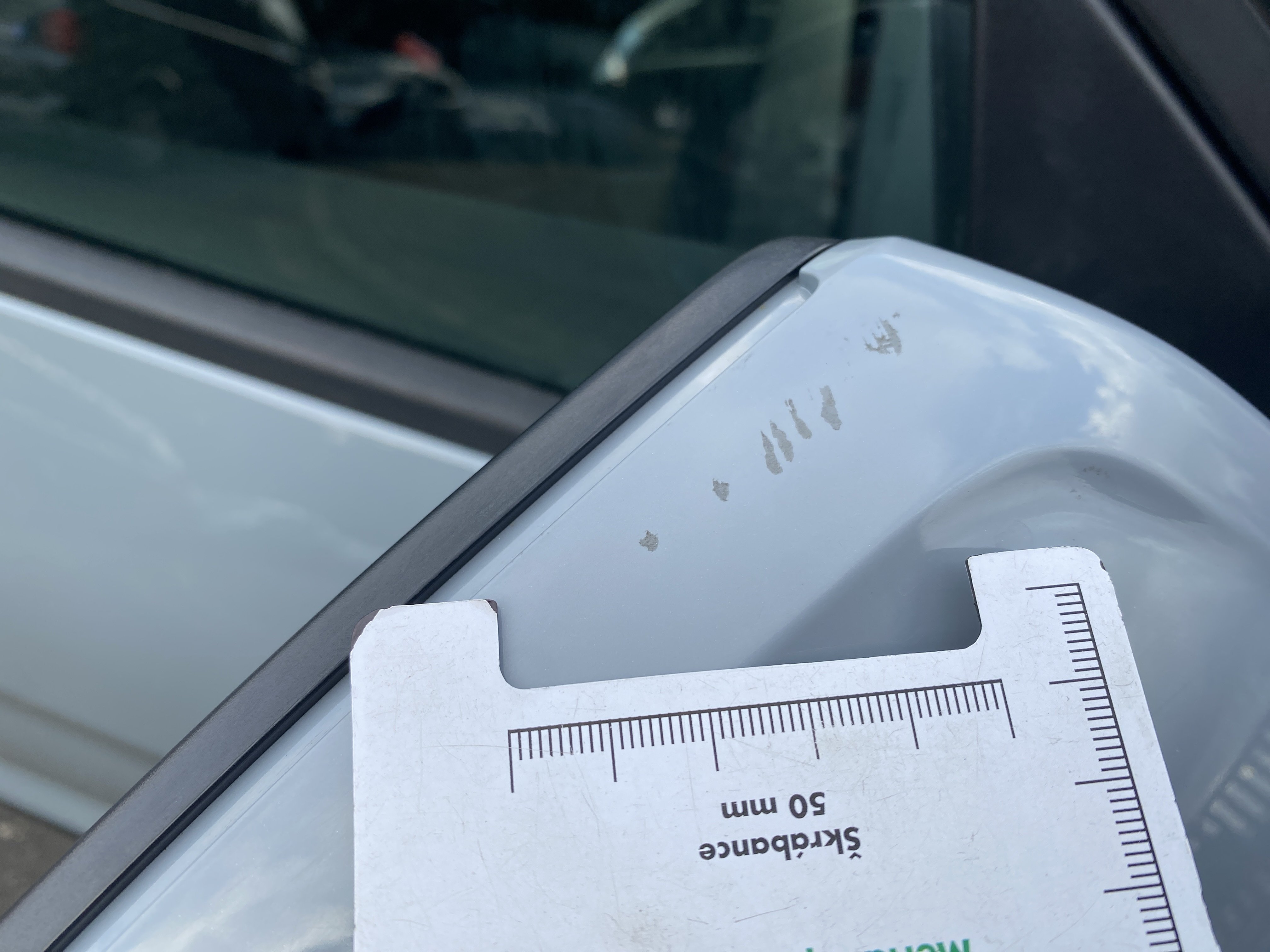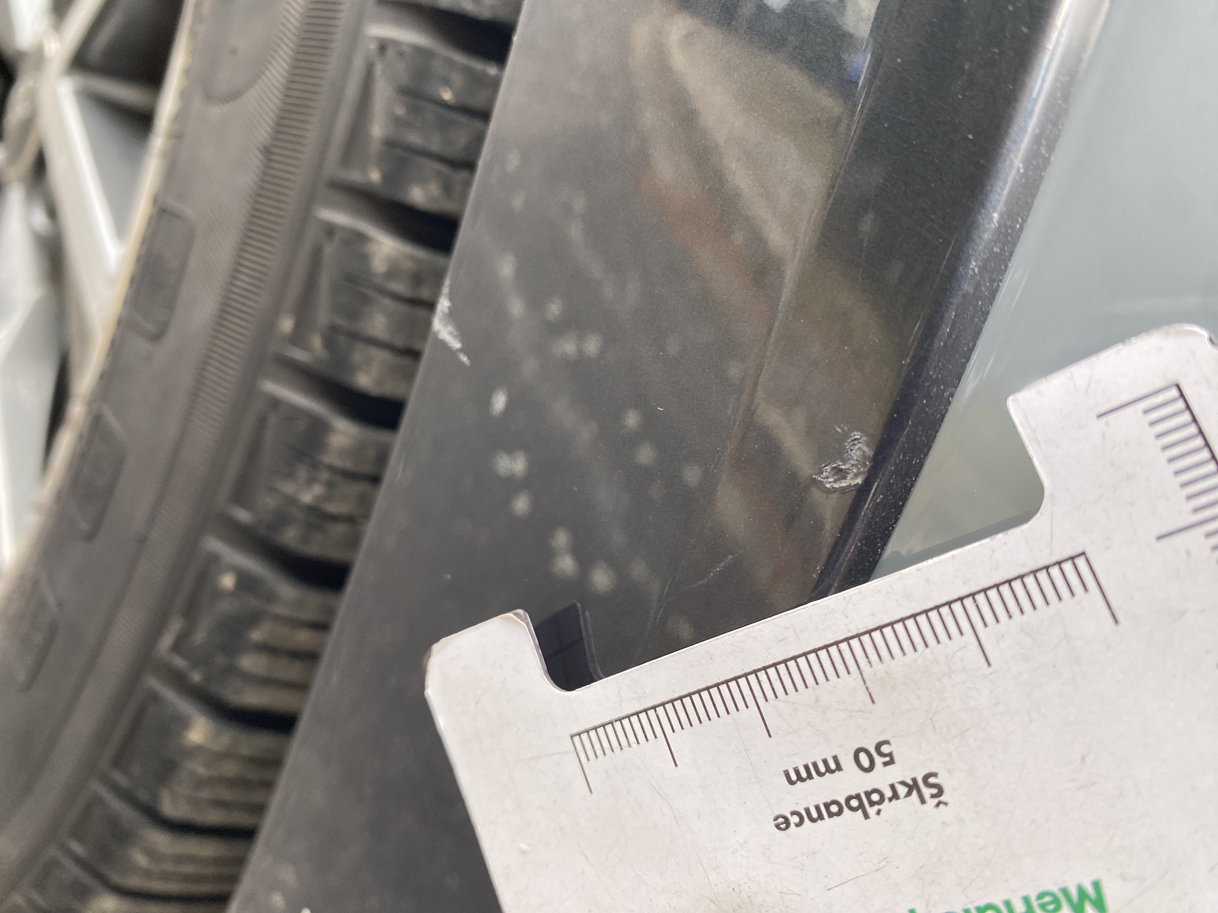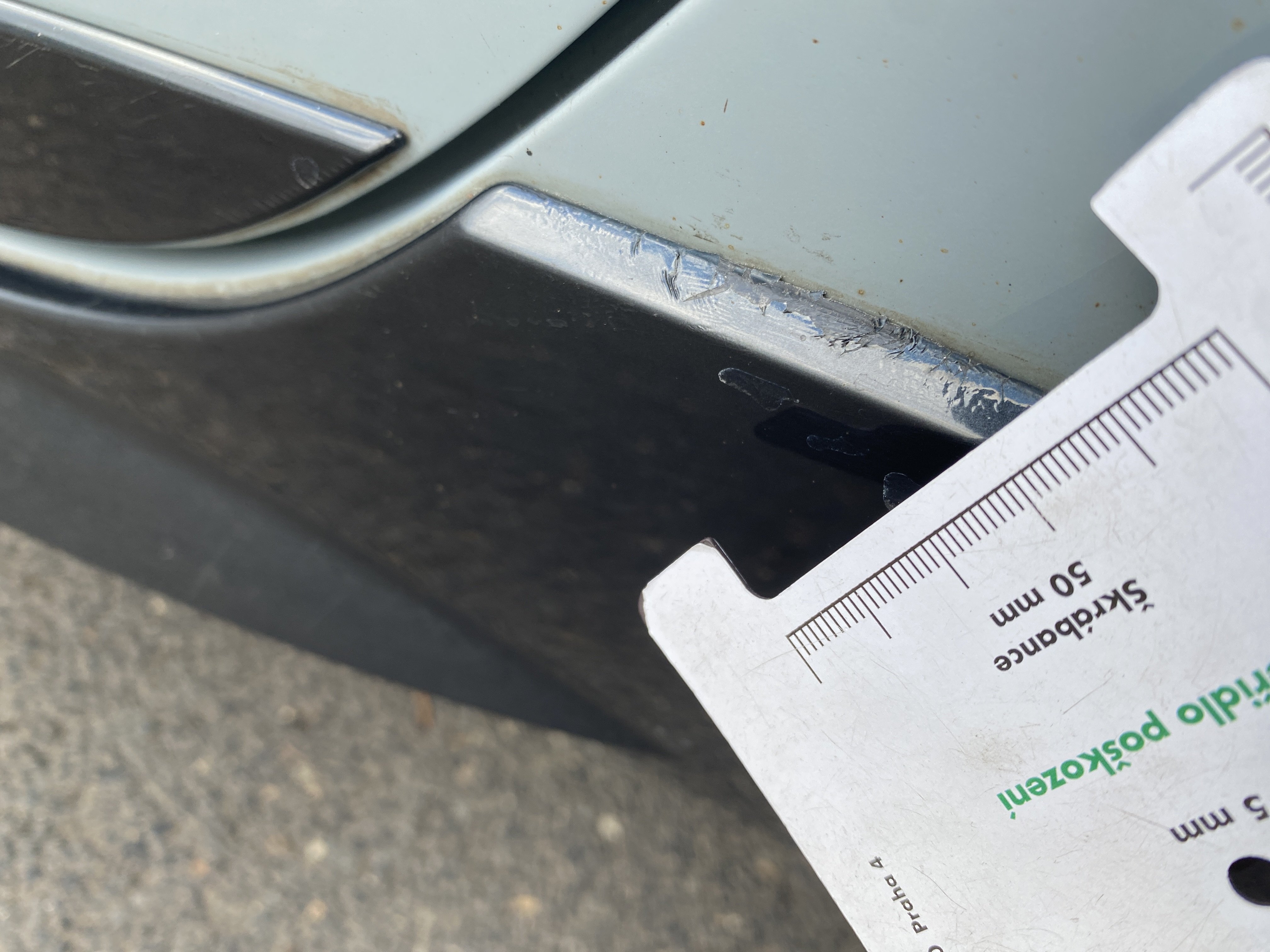 Oděrky a škrábance po obvodu karosérie, přední část karosérie je poškozená od kamínků, mírně odřený lem pravého předního blatníku, odřený přední nárazník, odřená klika levých předních dveří, poškozen plast levého lemu, mírně odřený lem levého zadního blatníku, mírně odřený zadní nárazník, odřený kryt pravého zpětného zrcátka, svítí kontrolka závady bezpečnostního systému, karosérie nese stopy po předchozí opravě, interiér vozidla opotřeben,
