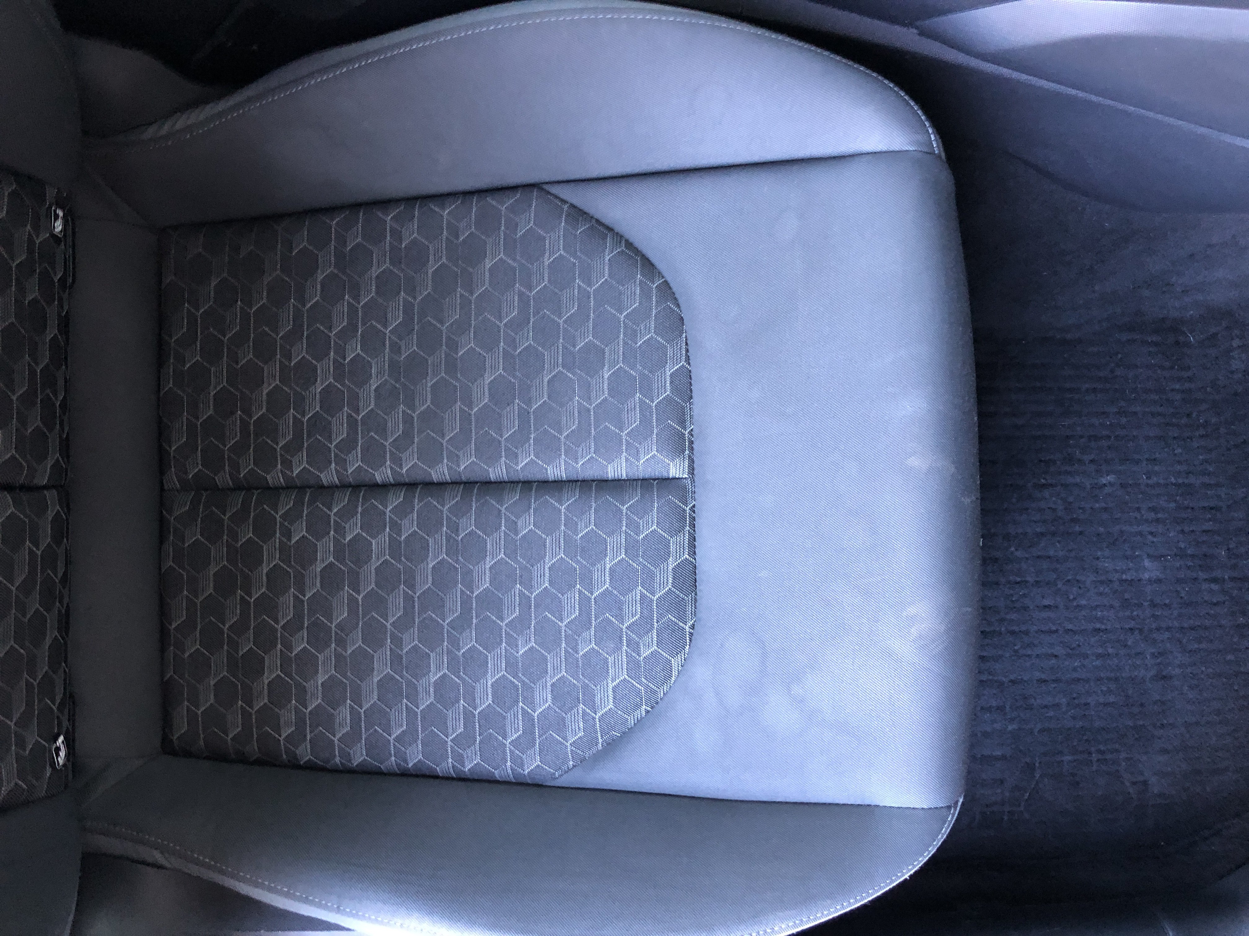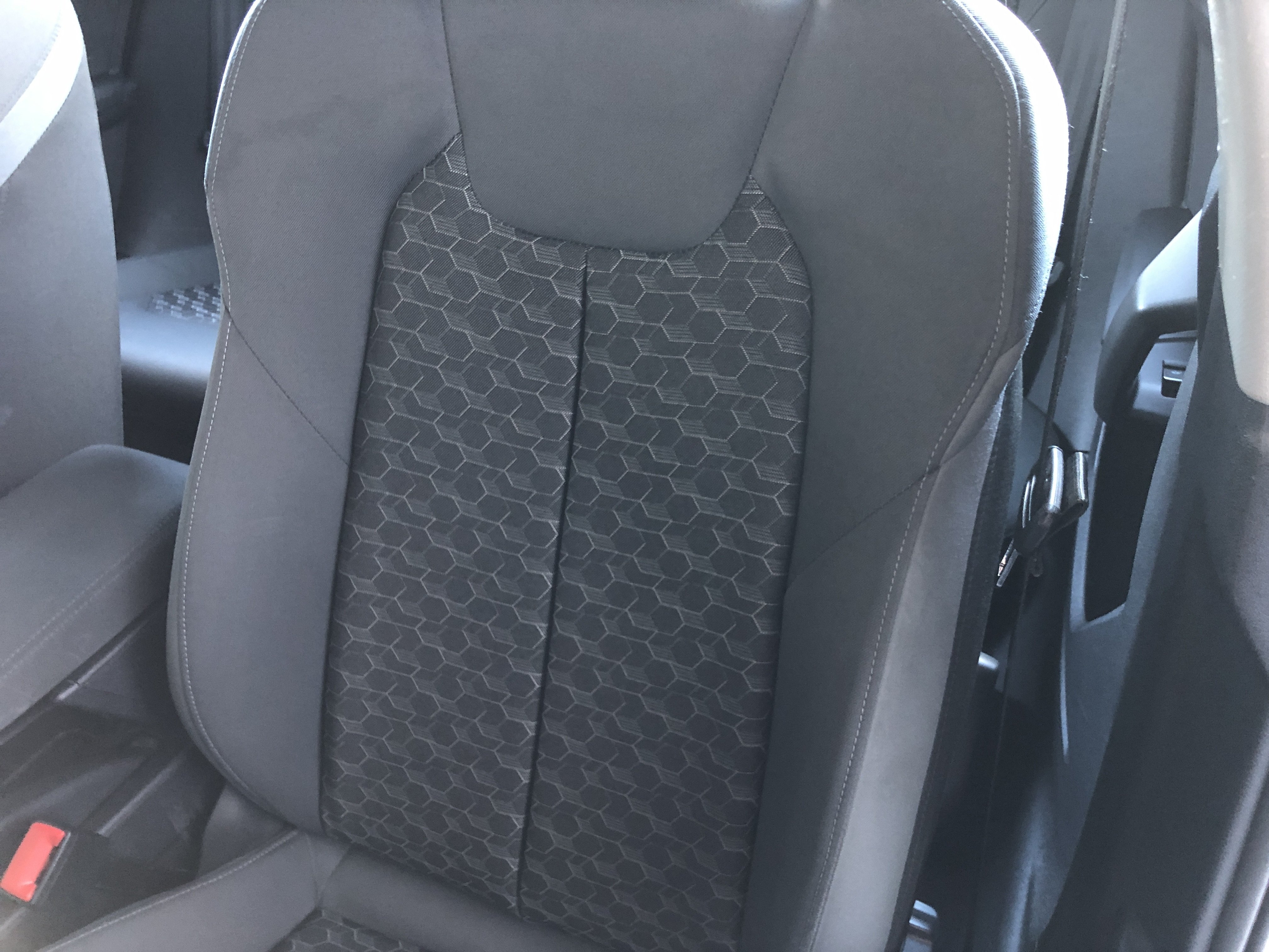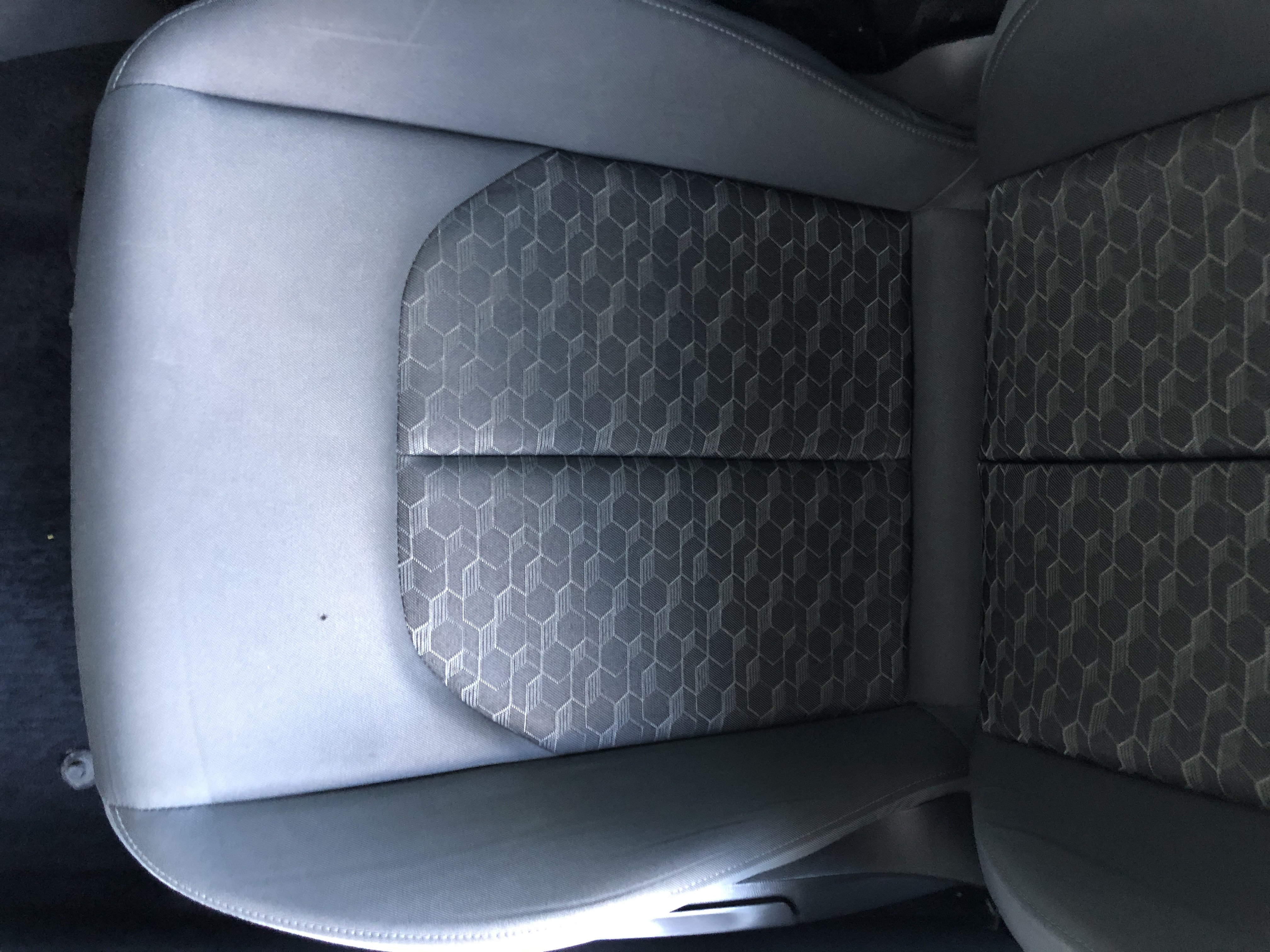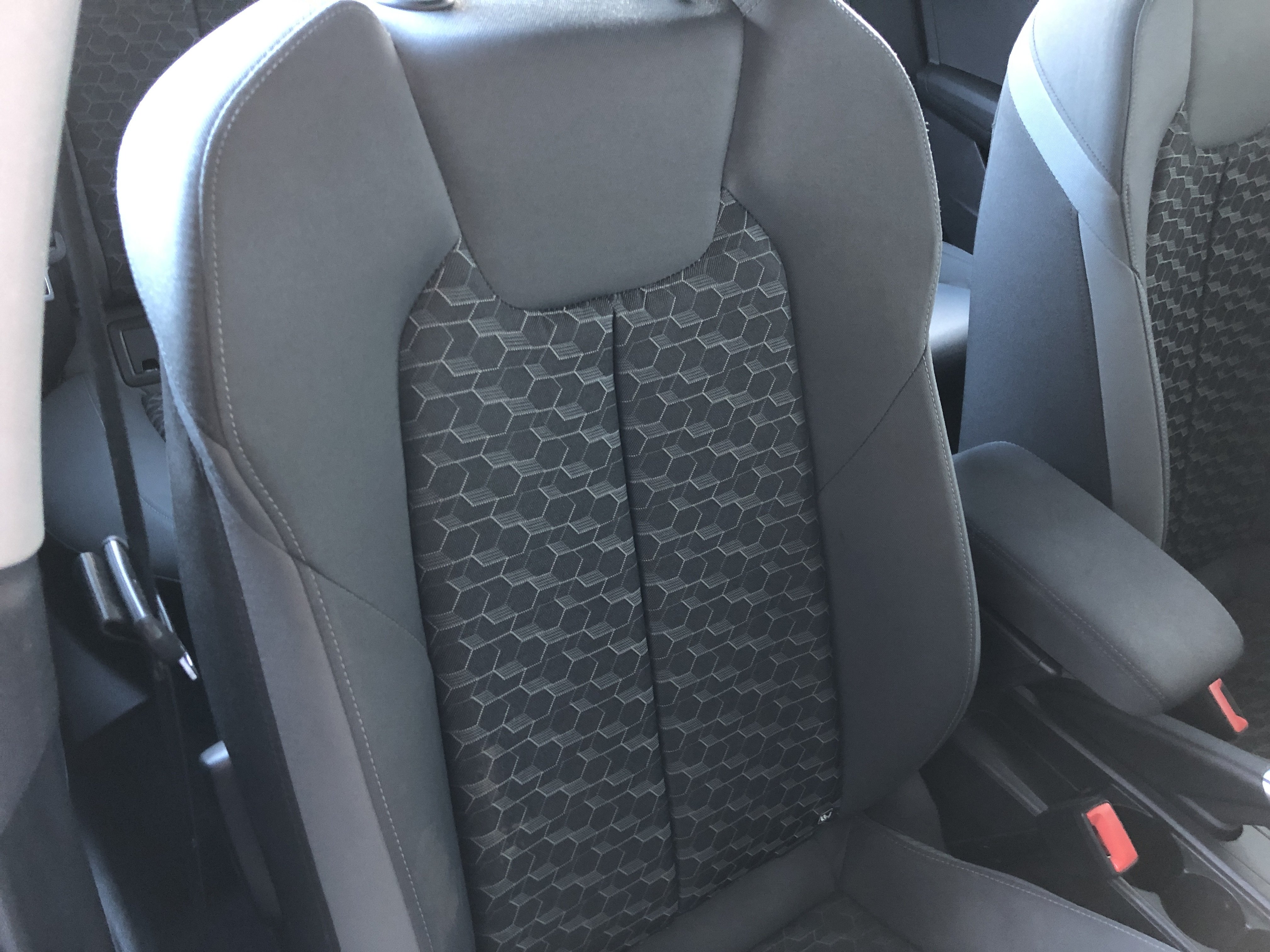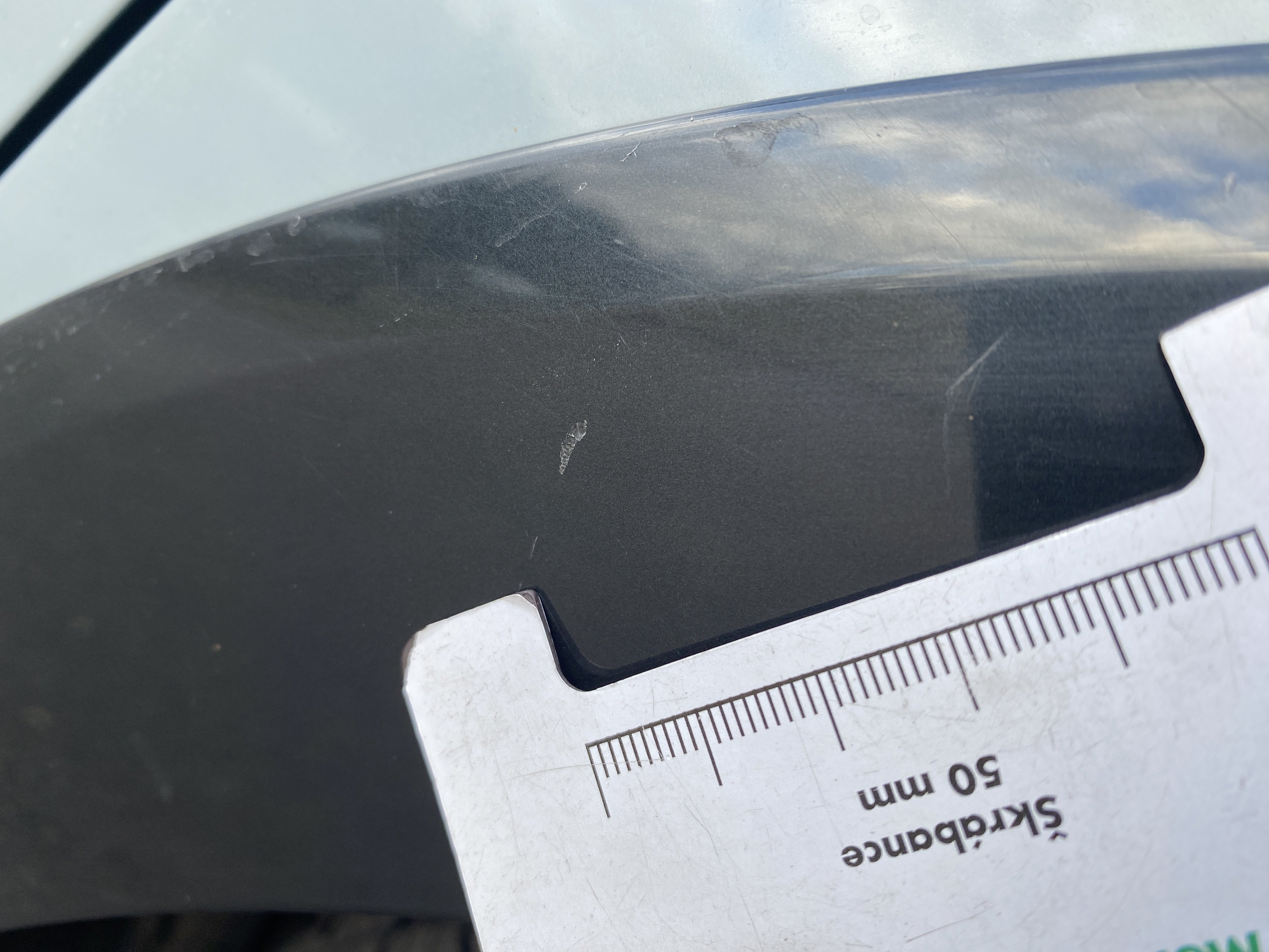 Oděrky a škrábance po obvodu karosérie, přední část karosérie je poškozená od kamínků, mírně odřený lem pravého předního blatníku, odřený přední nárazník, odřená klika levých předních dveří, poškozen plast levého lemu, mírně odřený lem levého zadního blatníku, mírně odřený zadní nárazník, odřený kryt pravého zpětného zrcátka, svítí kontrolka závady bezpečnostního systému, karosérie nese stopy po předchozí opravě, interiér vozidla opotřeben,