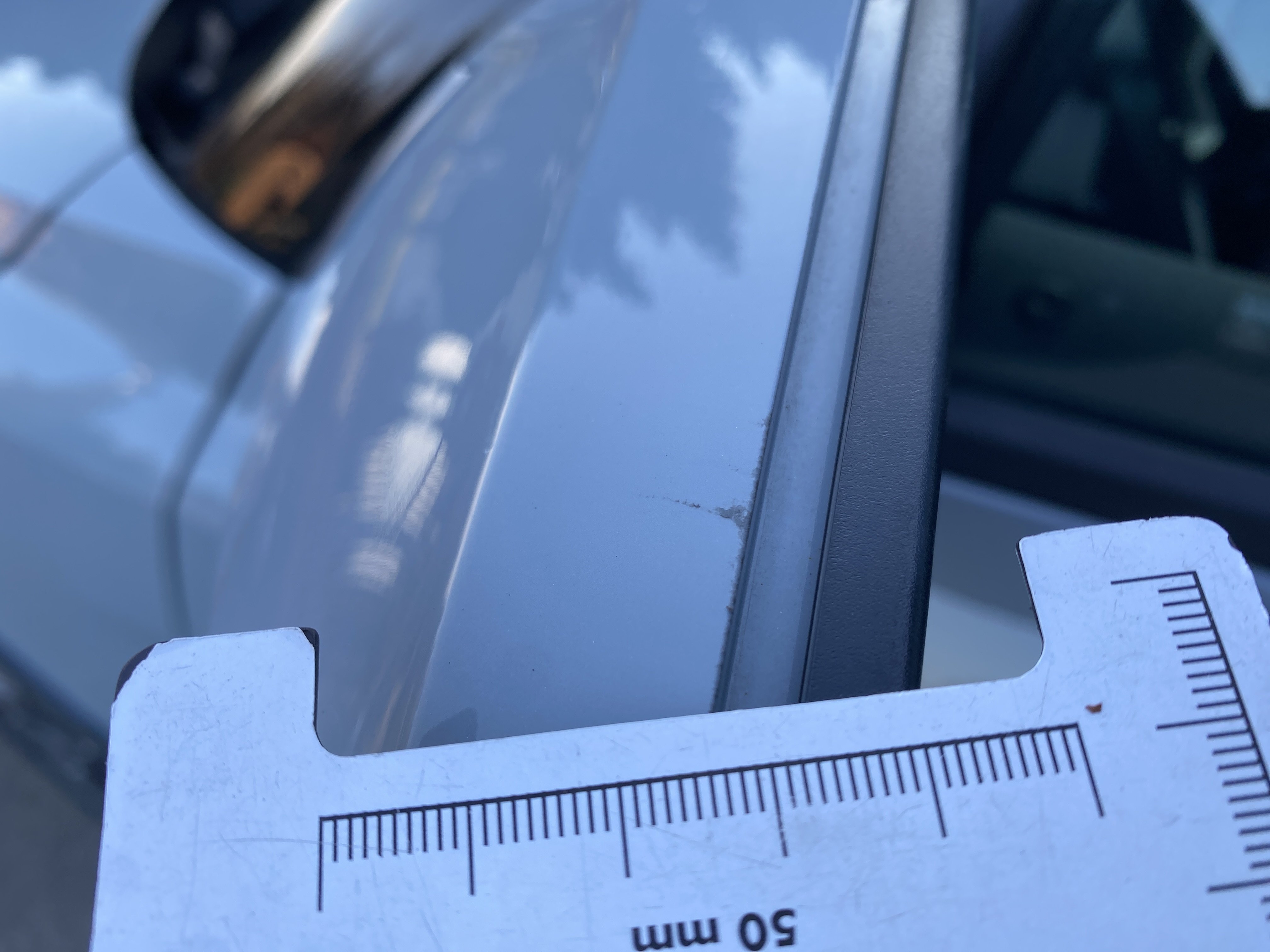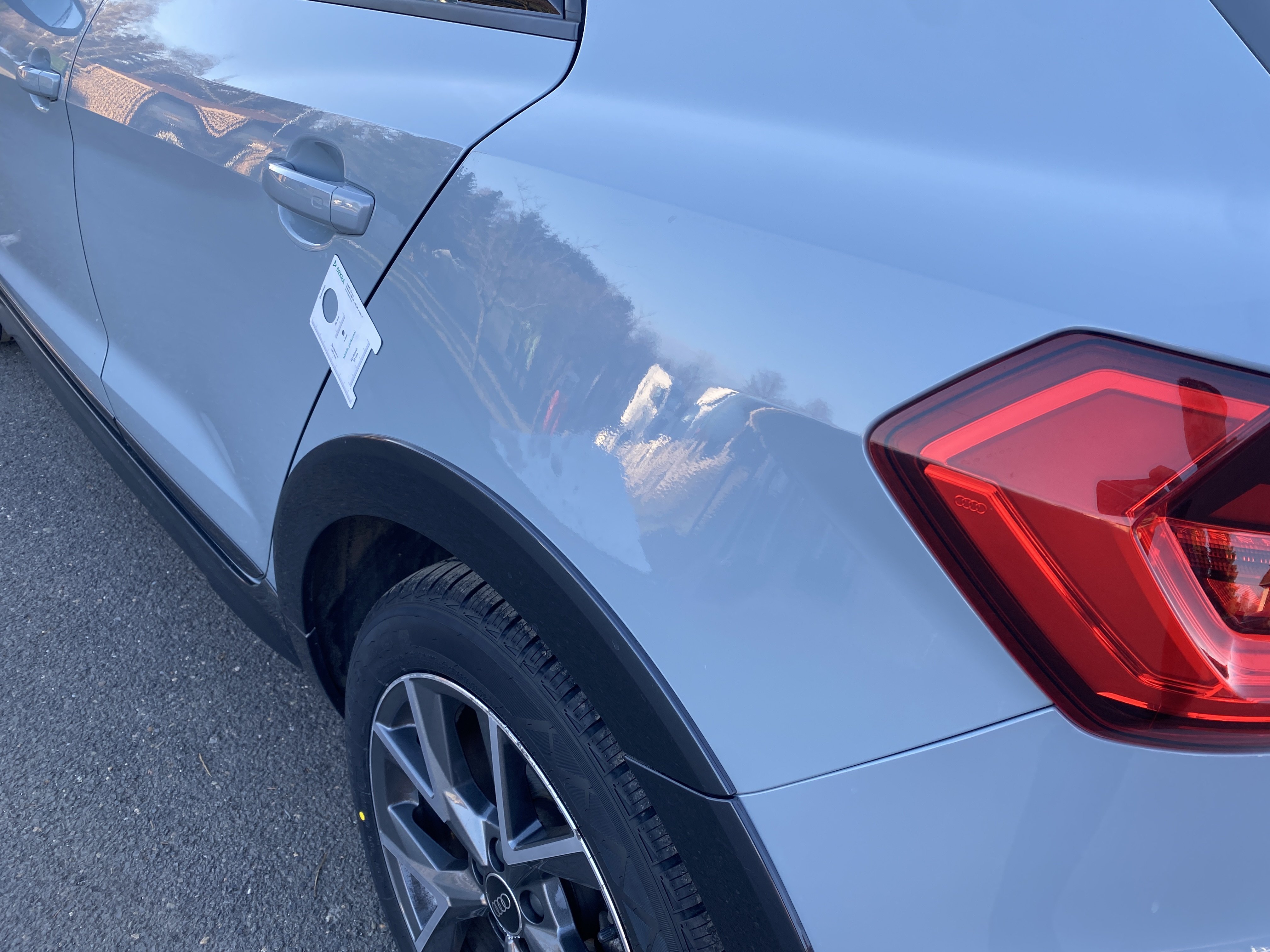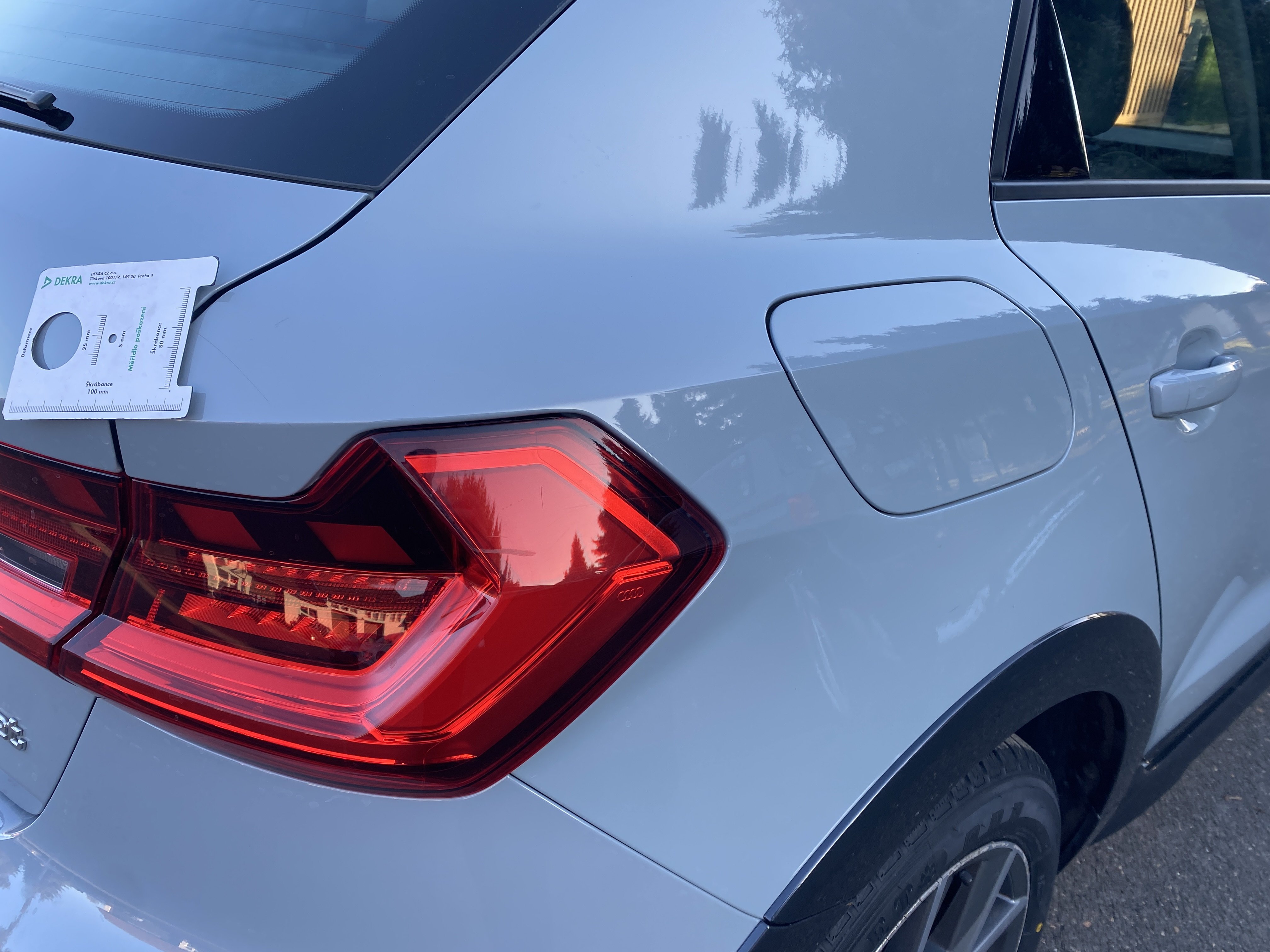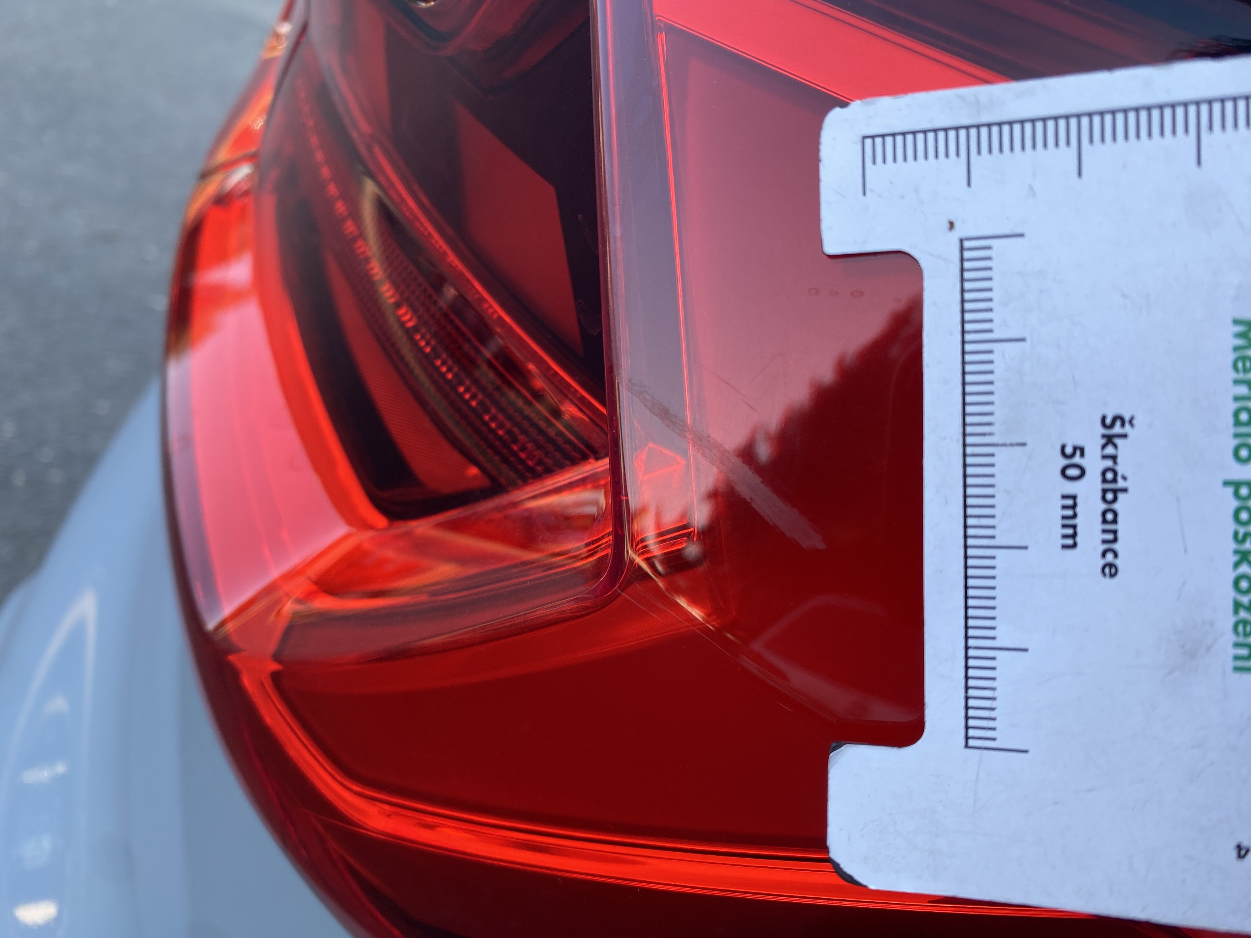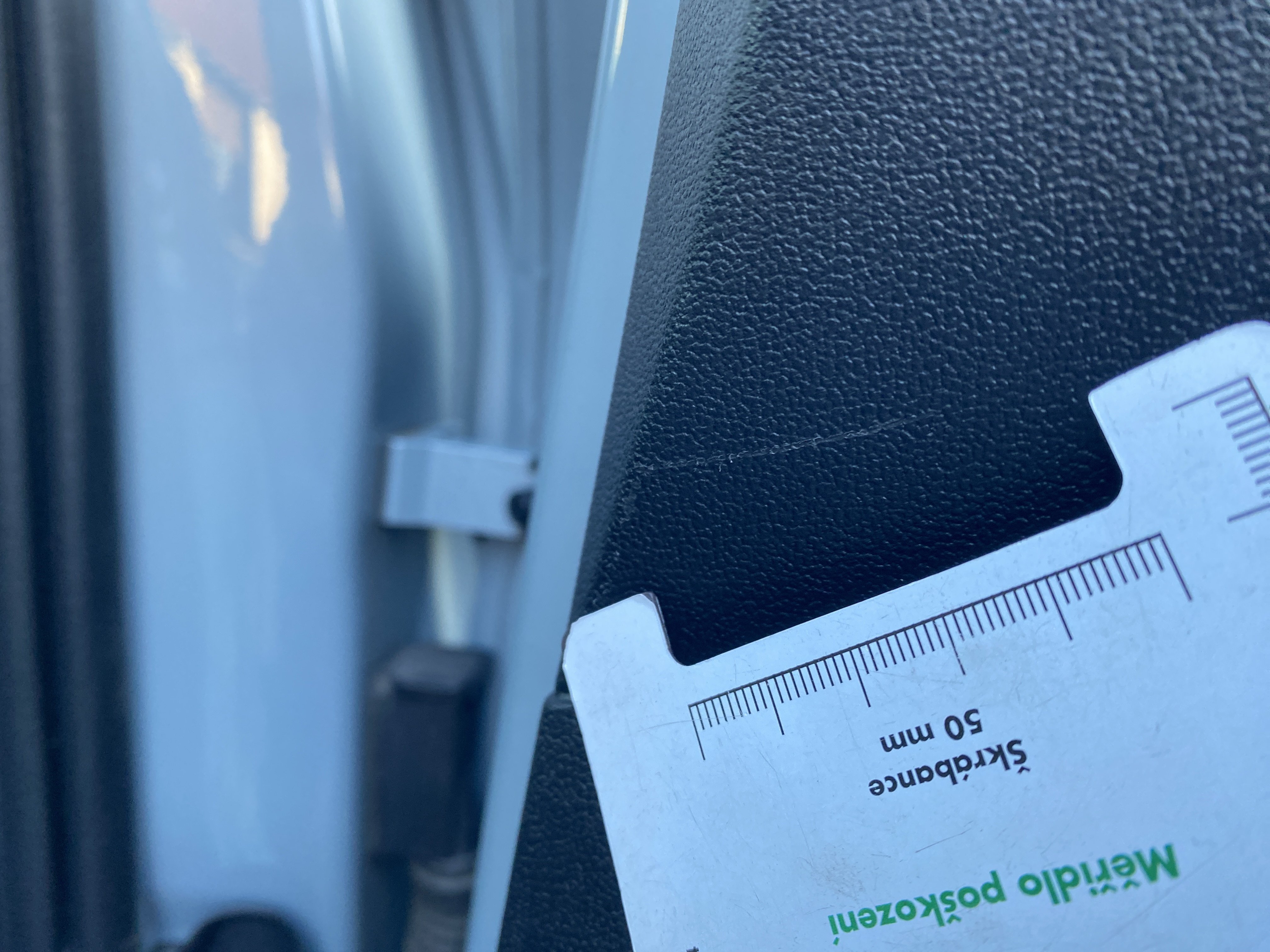 Oděrky a škrábance po obvodu karosérie, přední část karosérie je poškozená od kamínků, poškozen spojler předního nárazníku, mírně odřený kryt levého zpětného zrcátka, mírně promáčklý levý zadní blatník - jamka, mírně odřené pravé zadní světlo, odřený pravý zadní blatník, závada funkce nouzového volání, karosérie nese stopy po předchozí opravě, interiér vozidla opotřeben,