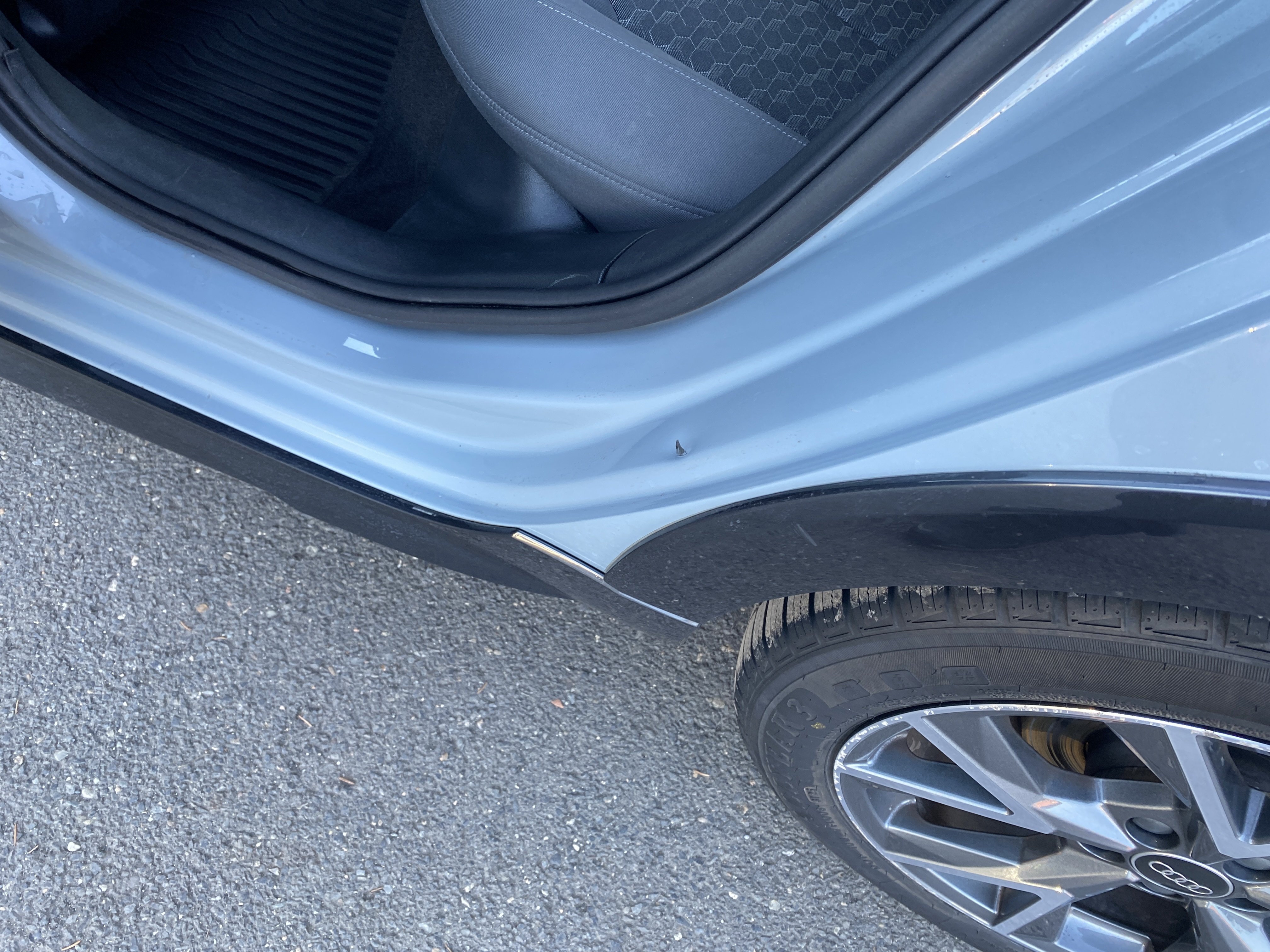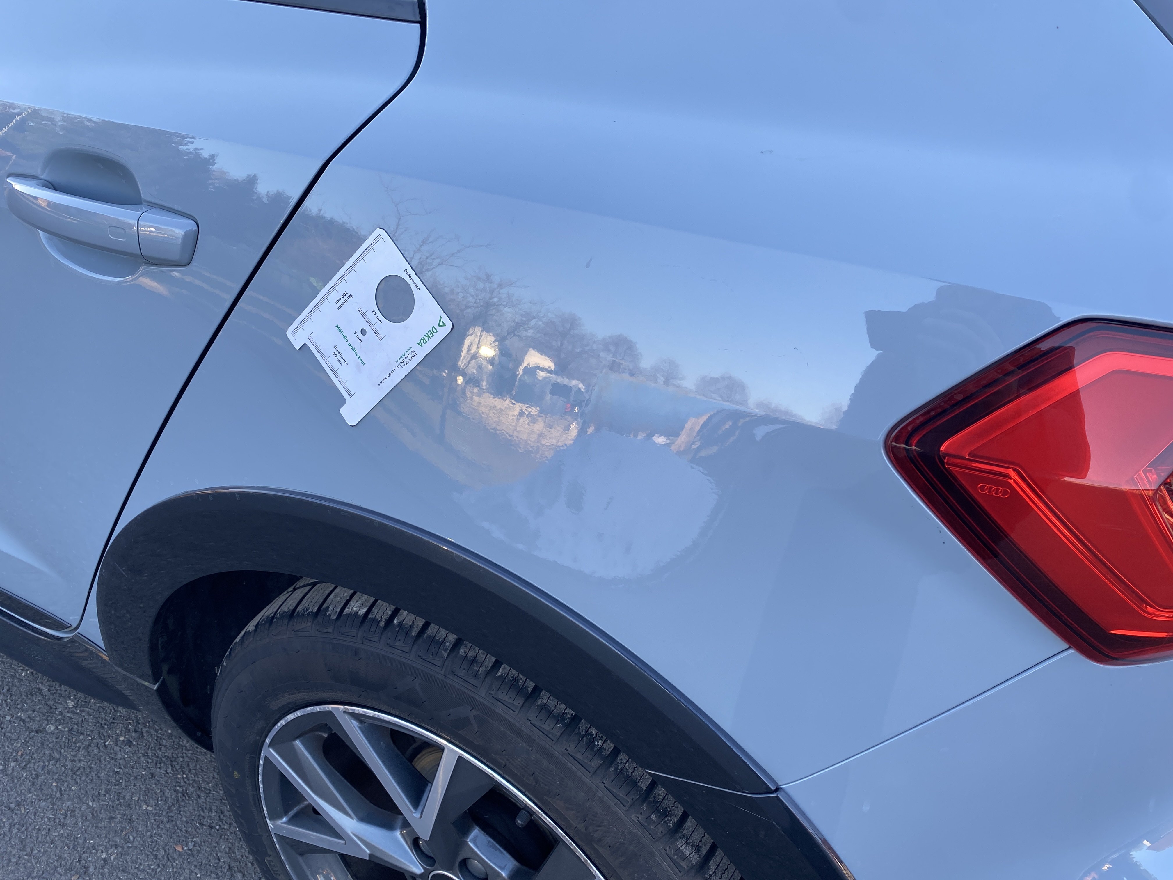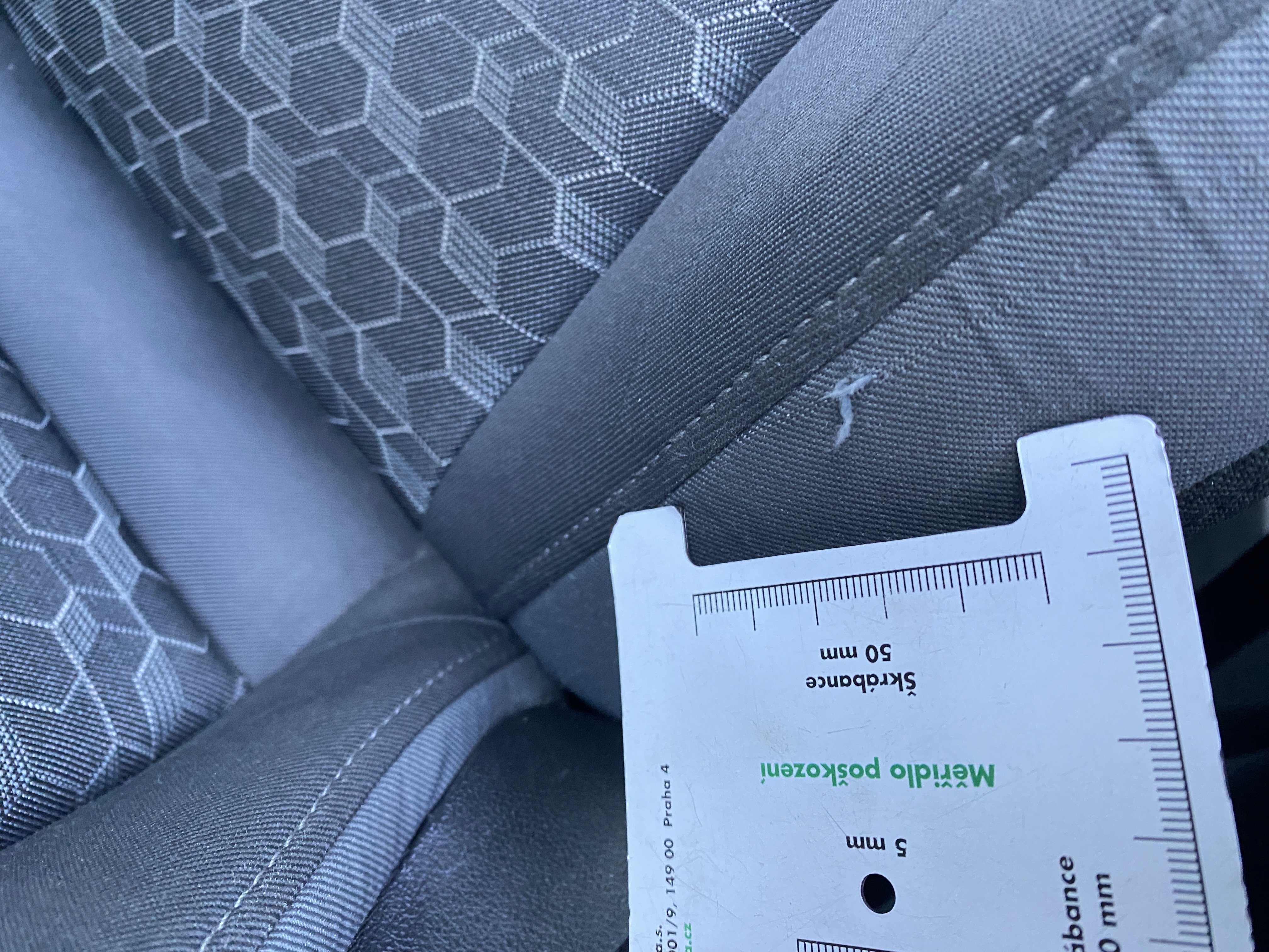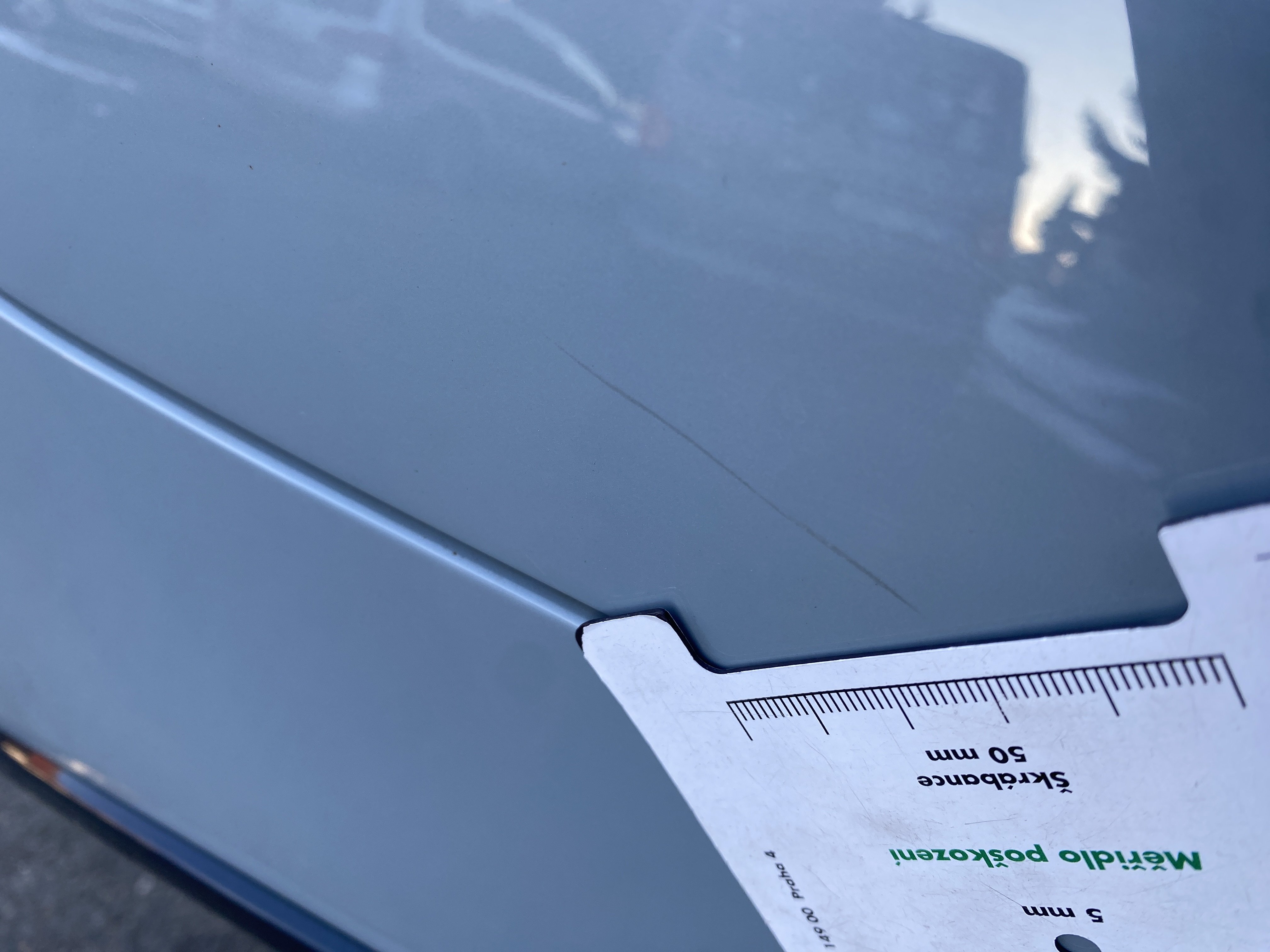 Oděrky a škrábance po obvodu karosérie, přední část karosérie je poškozená od kamínků, odřený levý zadní blatník, mírně odřený zadní nárazník, mírně promáčklý pravý zadní blatník - jamka, odřený lem pravý zadní blatník, karosérie nese stopy po předchozí opravě, interiér vozidla opotřeben,