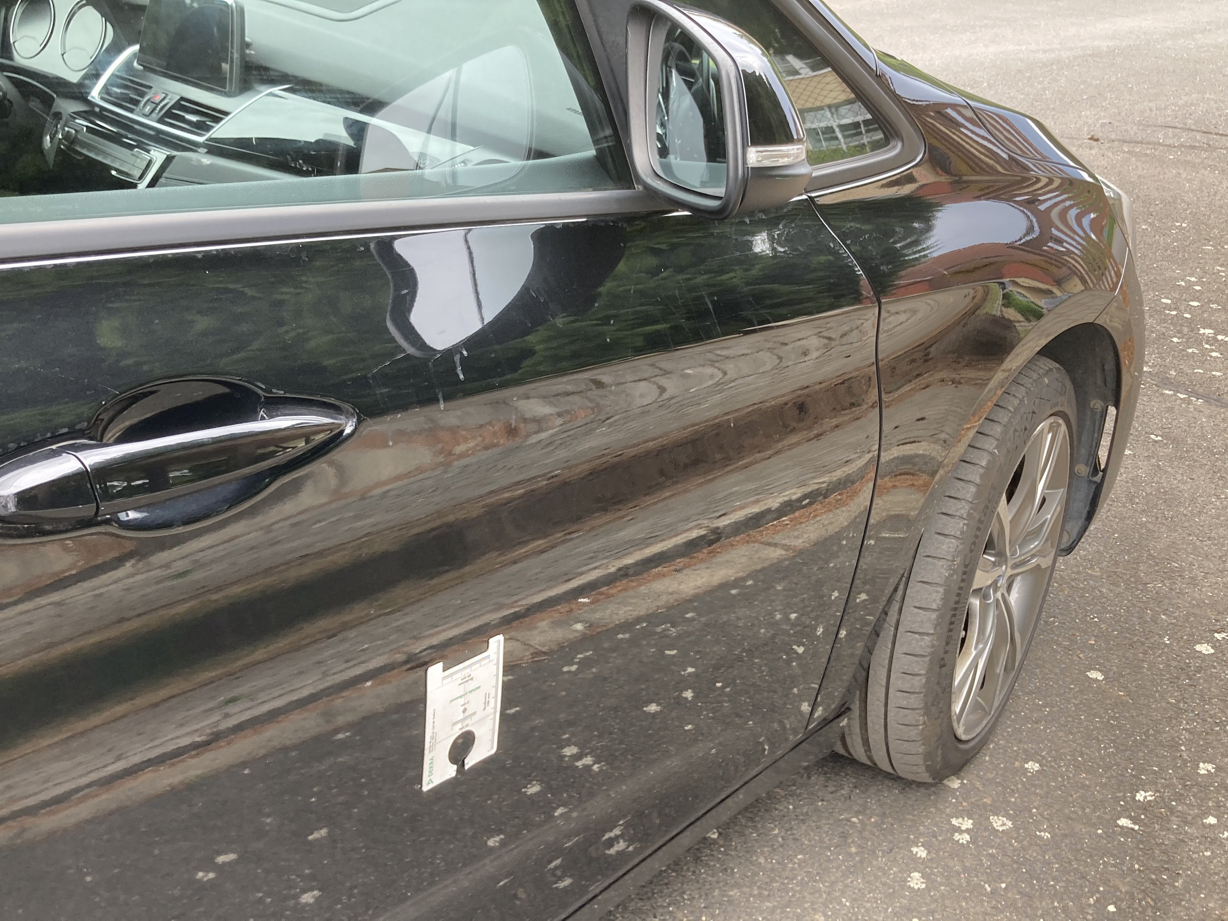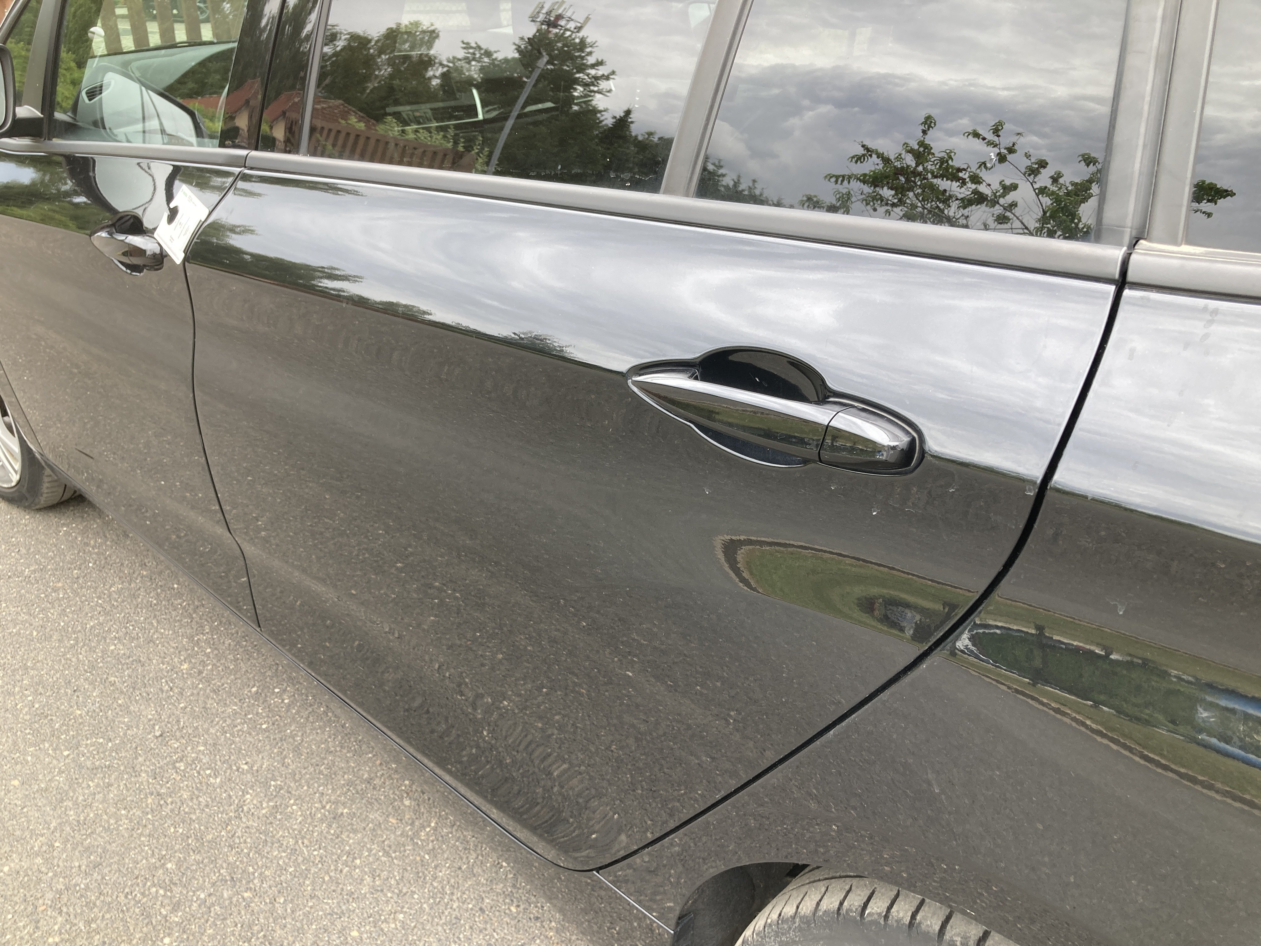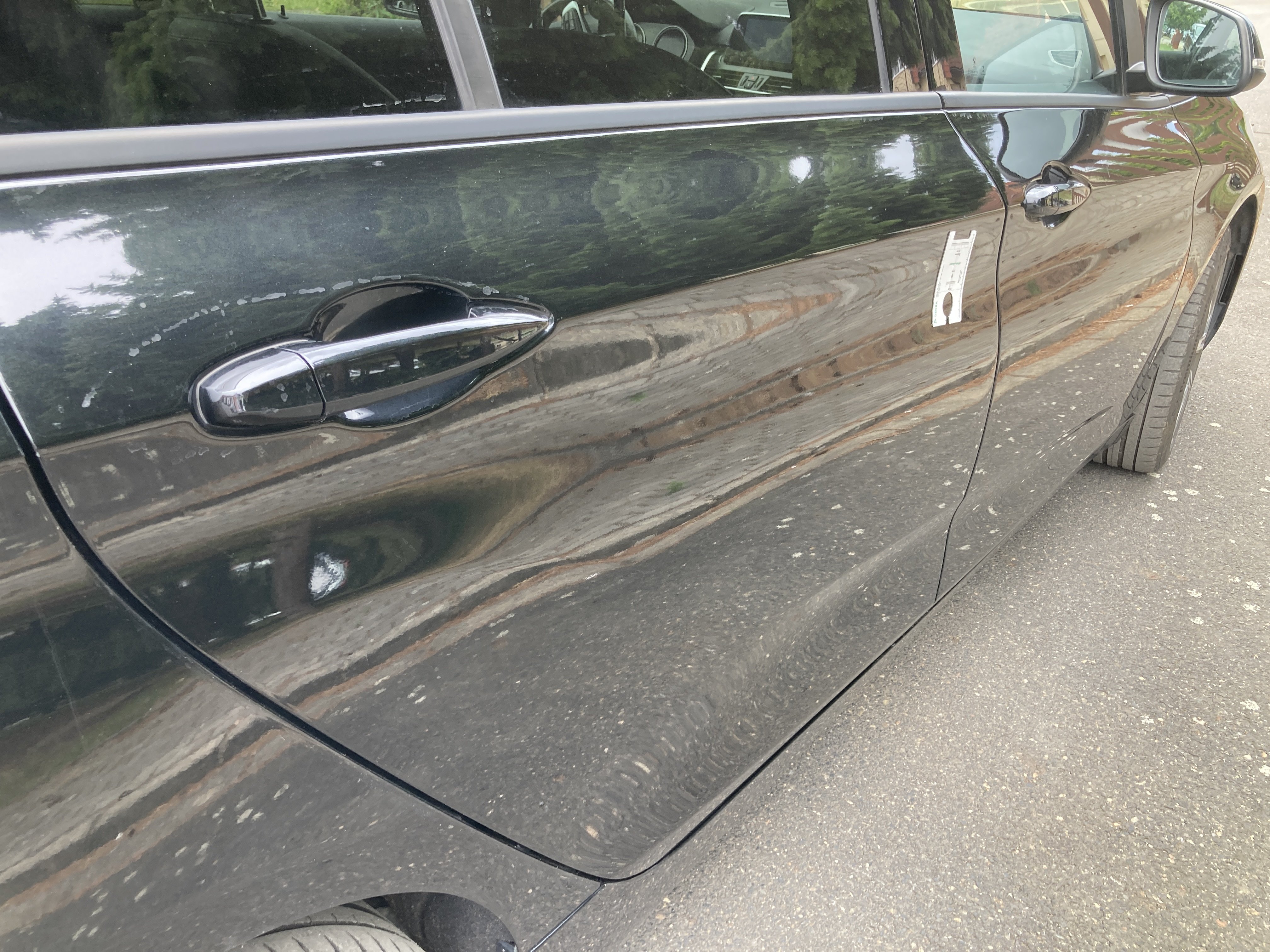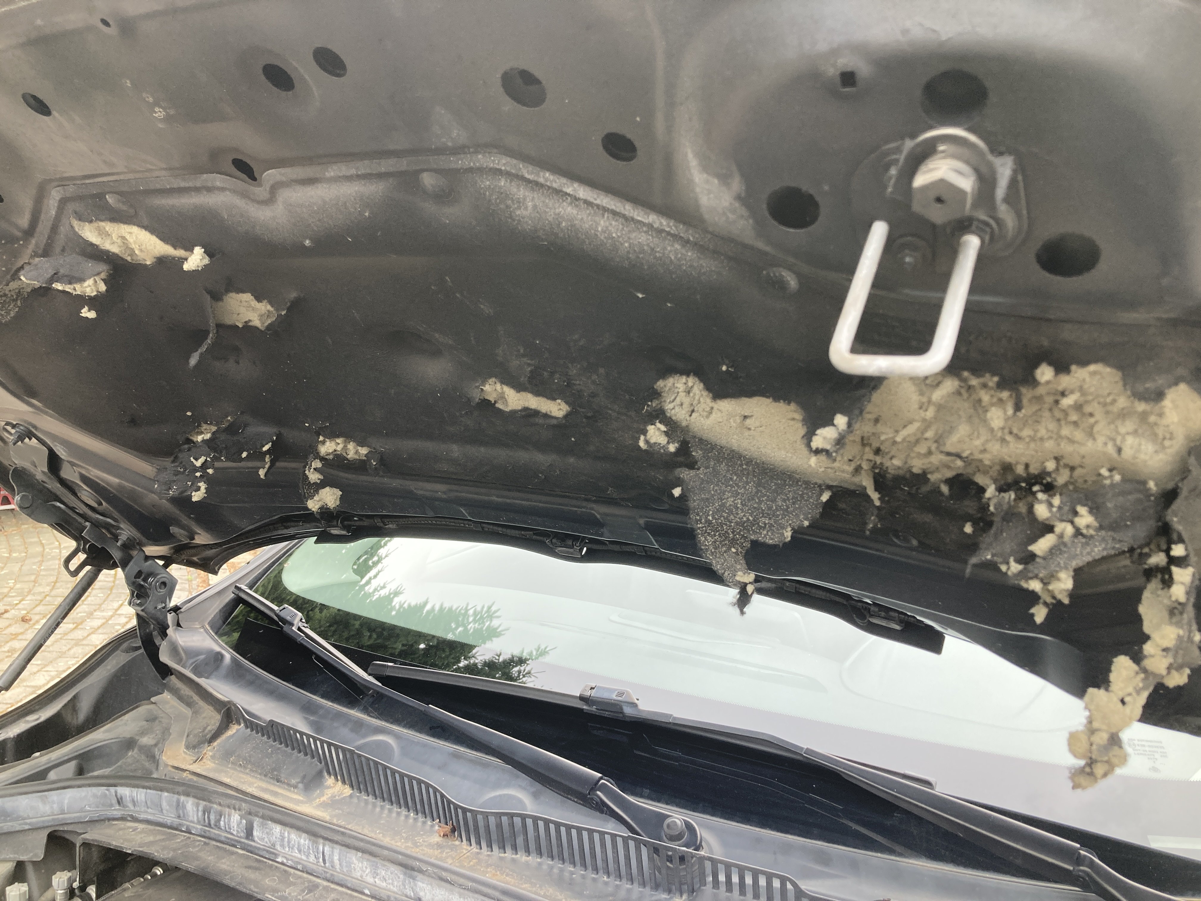 Oděrky a škrábance po obvodu karosérie, přední část karosérie je poškozená od kamínků, poškozená hluková izolace víka motorového prostoru, mírně promáčklý levý přední blatník - jamka, mírně odřené levé zadní dveře, odřený zadní nárazník, mírně odřené víko zavzadlového prostoru, mírně odřený kryt pravého zpětného zrcátka, mírně odřený pravý práh, interiér vozidla opotřeben, karosérie nese stopy po předchozí opravě, deformace plata střechy v zadní části, interiér vozidla opotřeben,