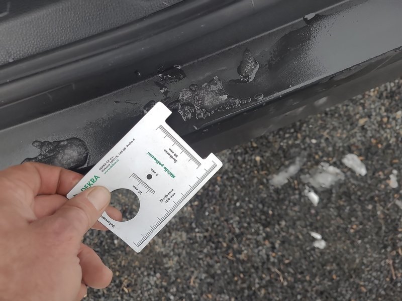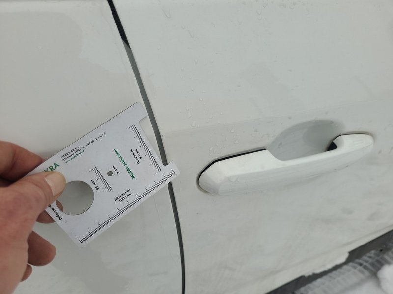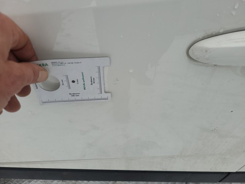 Oděrky a škrábance po obvodu karosérie, přední část karosérie je poškozená od kamínků, odřený levý práh, odřené levé přední dveře, odřený zadní nárazník, odřené pravé přední dveře, odřené madlo kliky pravých předních dveří, odřený pravý práh, interiér vozidla opotřeben,