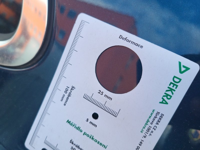 Oděrky a škrábance po obvodu karosérie, přední část karosérie je poškozená od kamínků, mírně promáčklé pravé zadní dveře - jamka, odřený přední nárazník, mírně promáčklé pravé přední dveře - jamka, mírně promáčklý pravý přední blatník - jamka, mírně promáčklá levá zadní bočnice - jamka, interiér vozidla opotřeben,