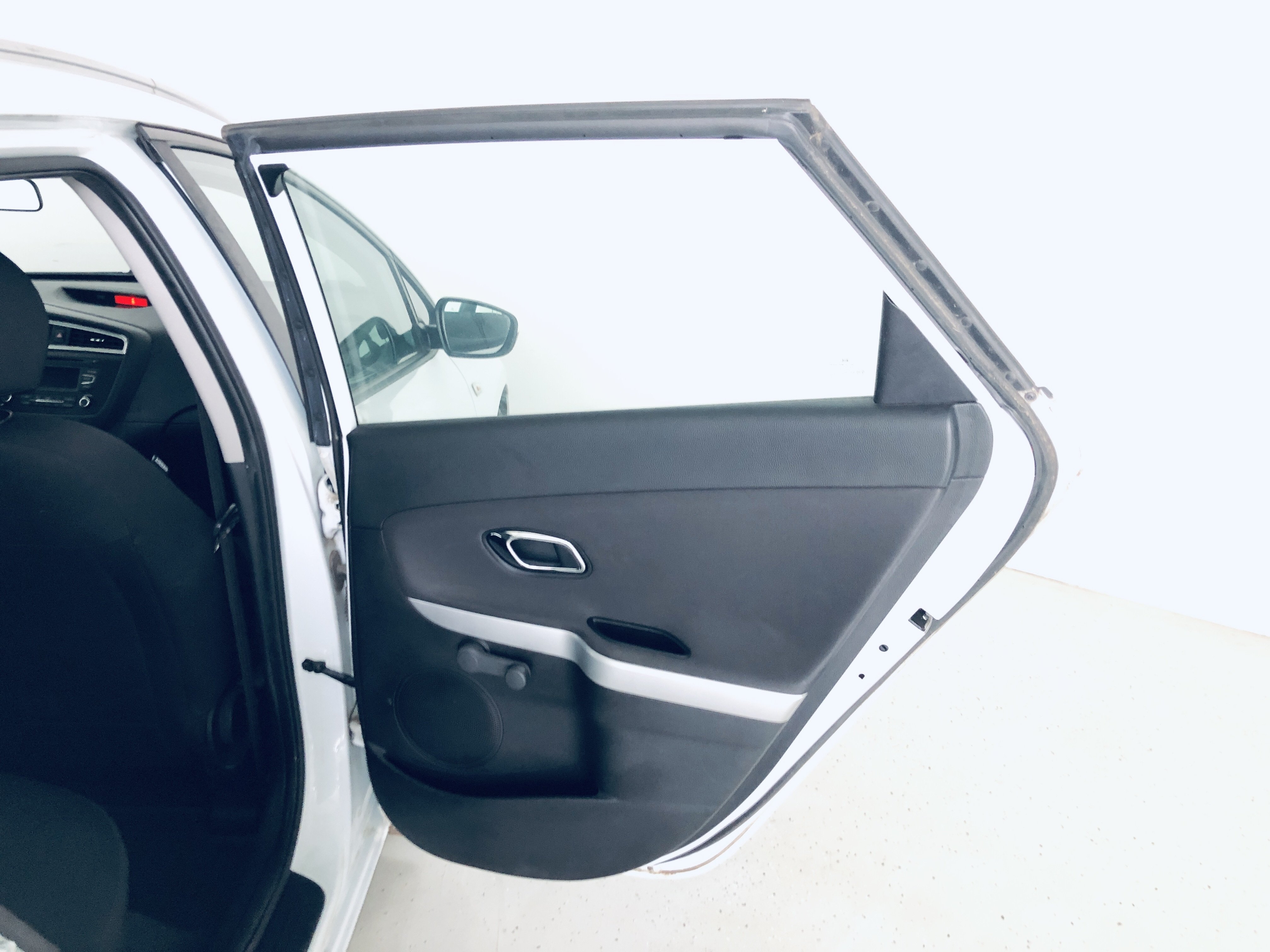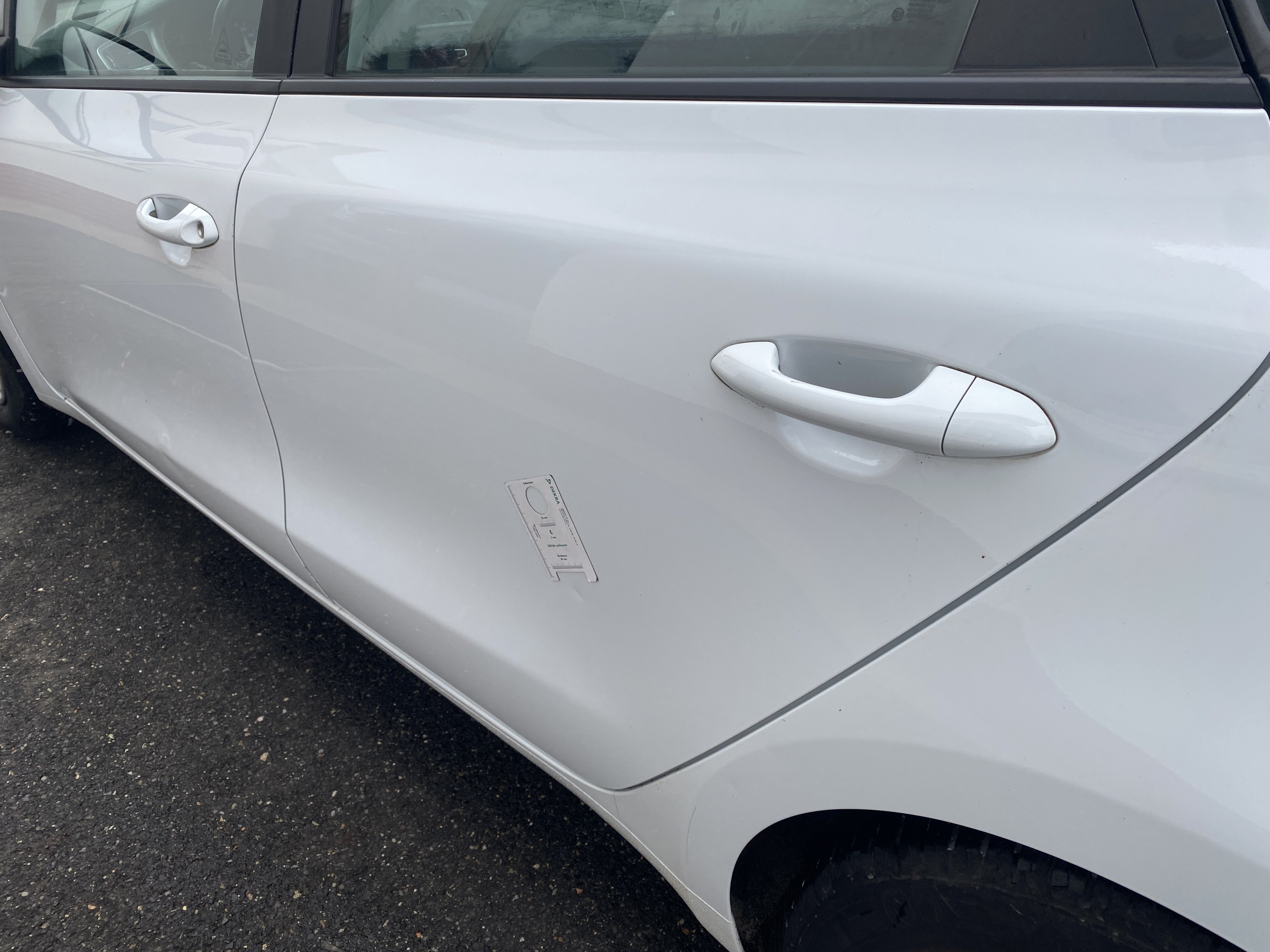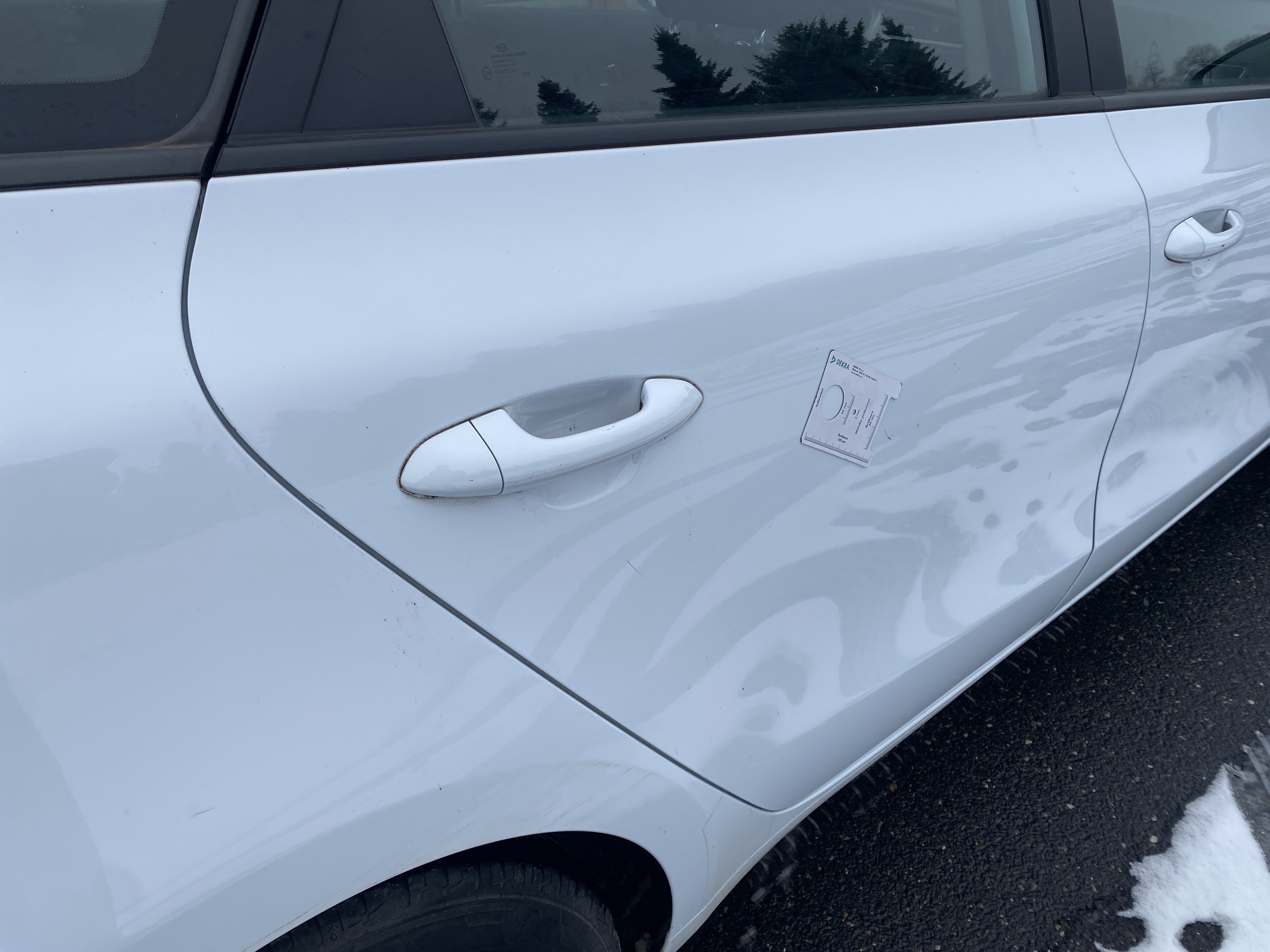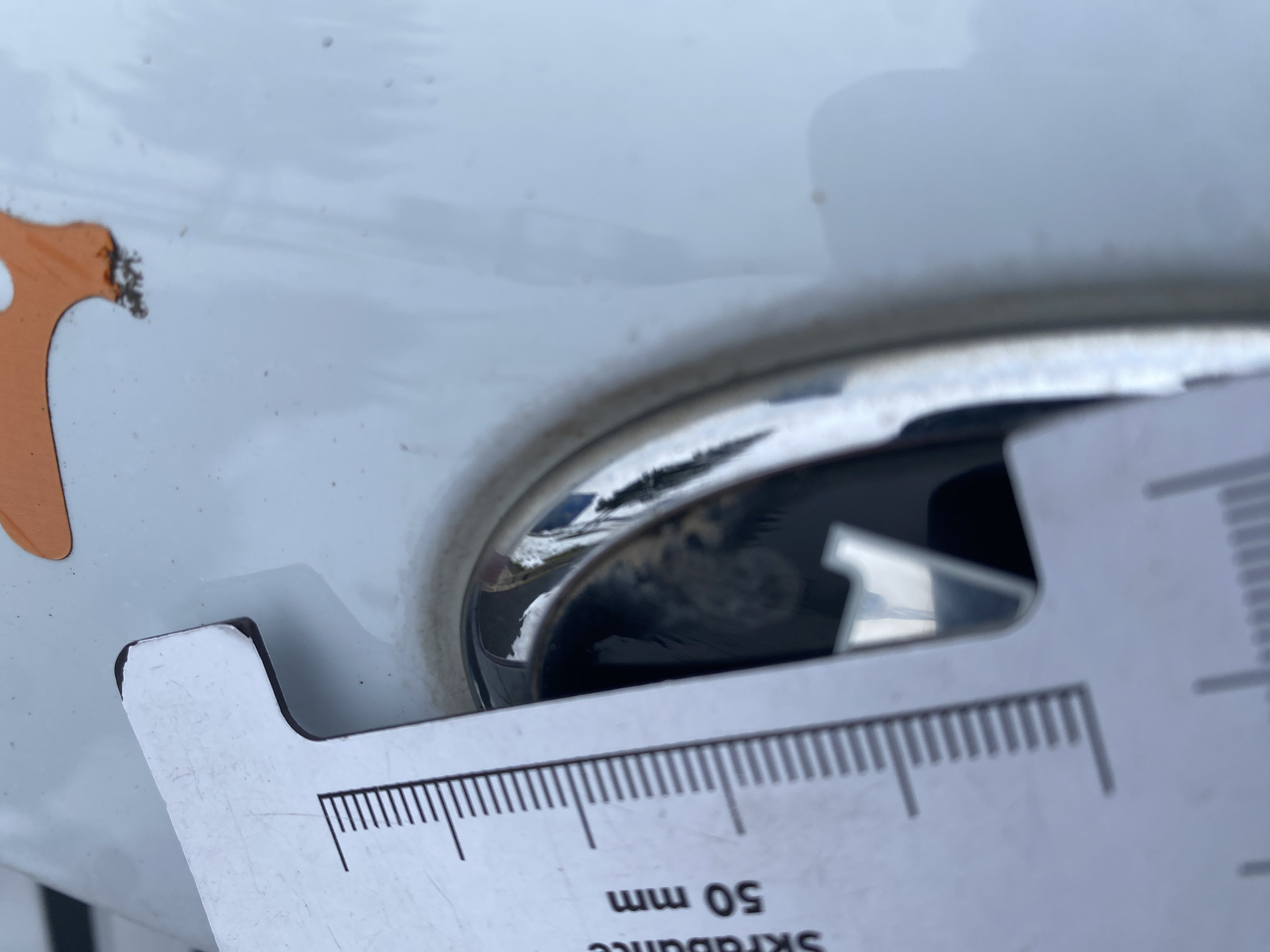 Oděrky a škrábance po obvodu karosérie, přední část karosérie je poškozená od kamínků, odřený přední nárazník, odřený levý přední blatník, lehce promáčklé levé přední dveře, odřená klika levých předních dveří, lehce promáčklé levé zadní dveře, odřený zadní nárazník, odřený znak víka zavazadlového prostoru, odřený pravý zadní blatník - koroze, odřené pravé zadní dveře, promáčklé pravé přední dveře, odřená klika pravých předních dveří, odřený plastový kryt pravého zpětného zrcátka, poškozený pravý práh - koroze, poškozené čelní sklo - jamka, chybí krycí roleta zavazadlového prostoru, interiér vozidla opotřeben.
