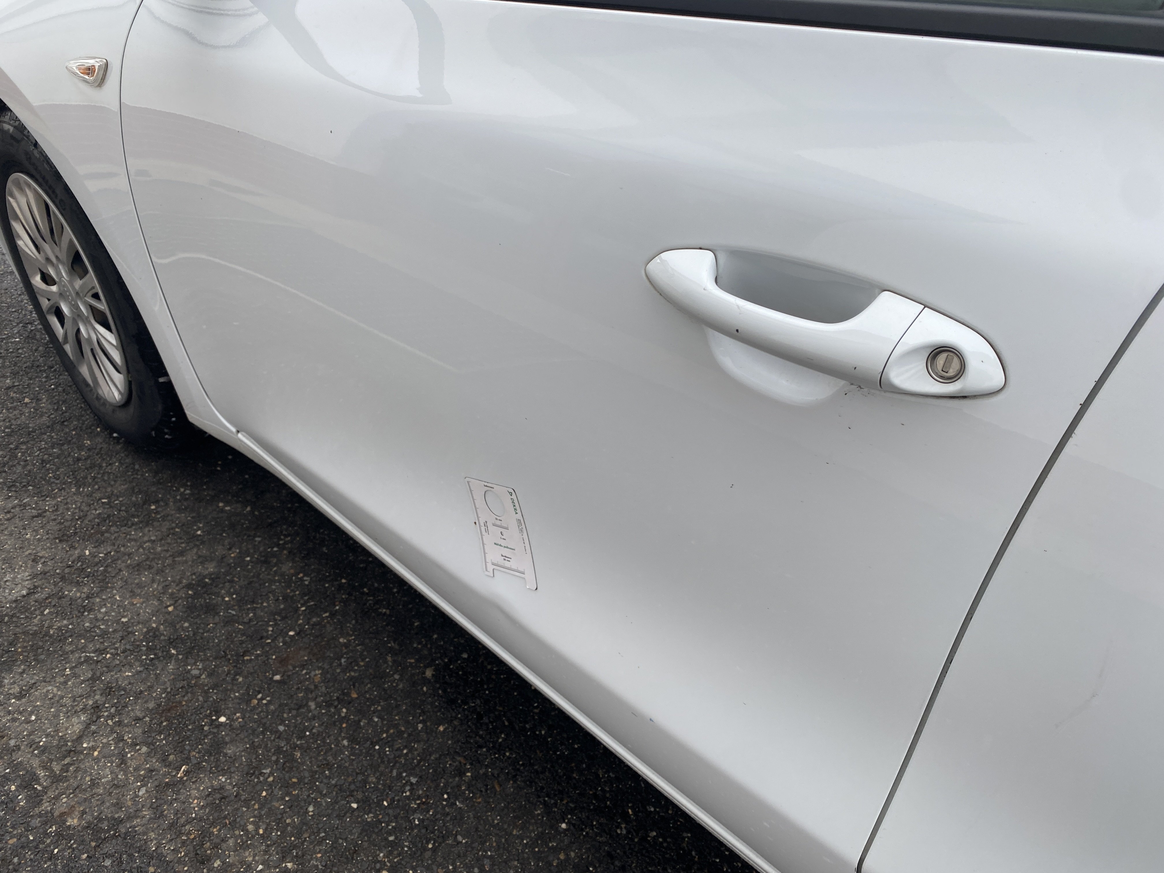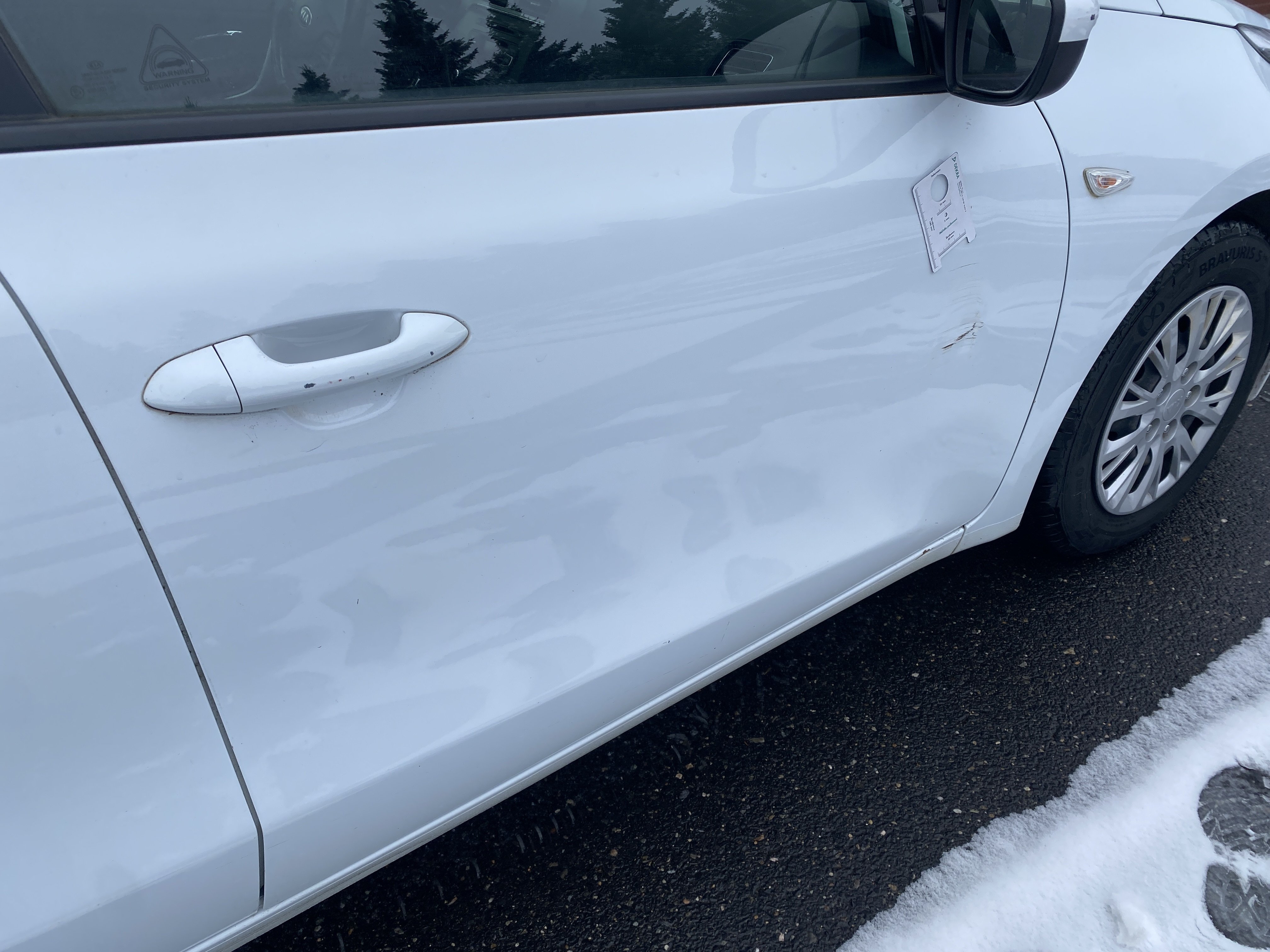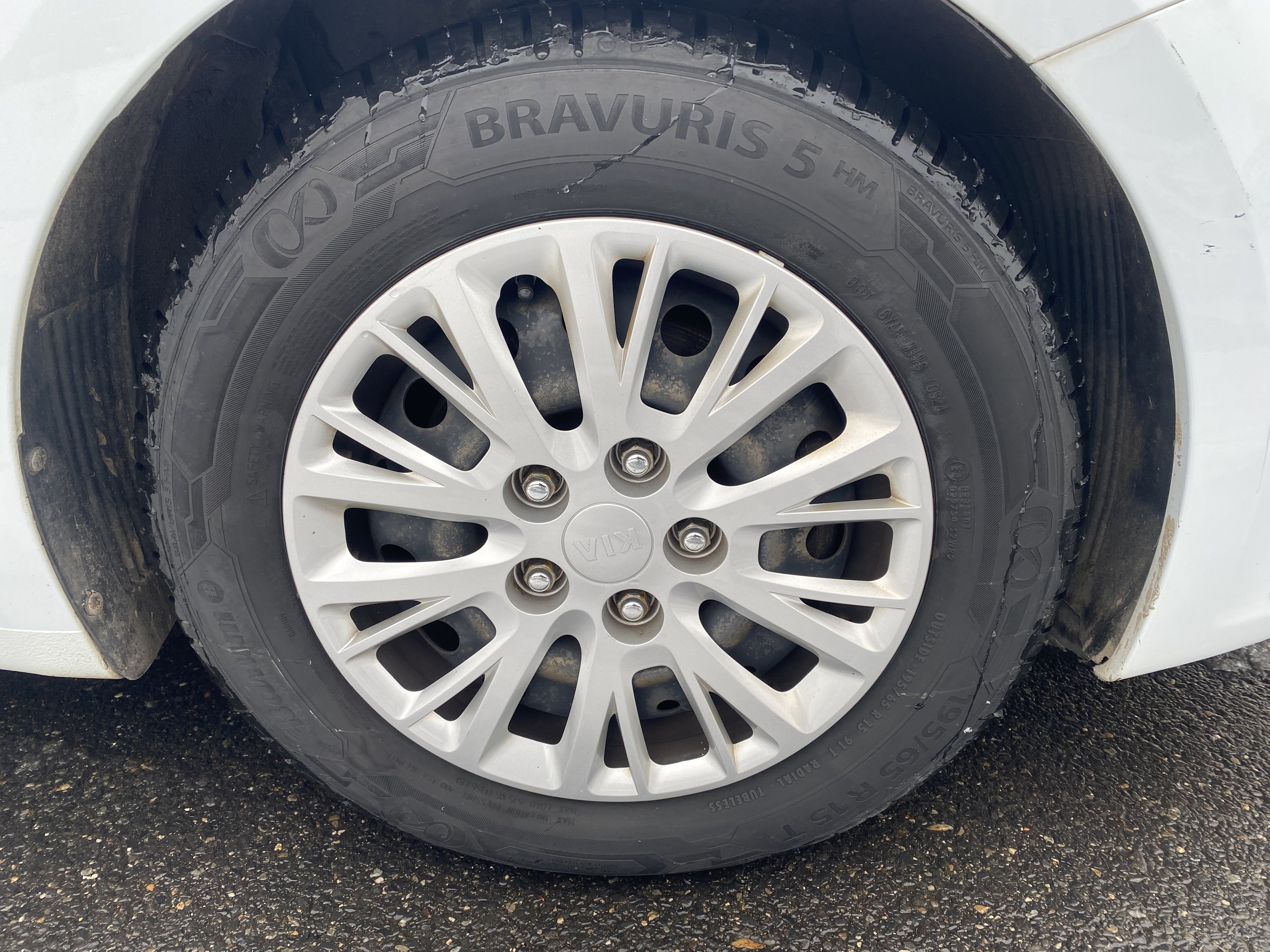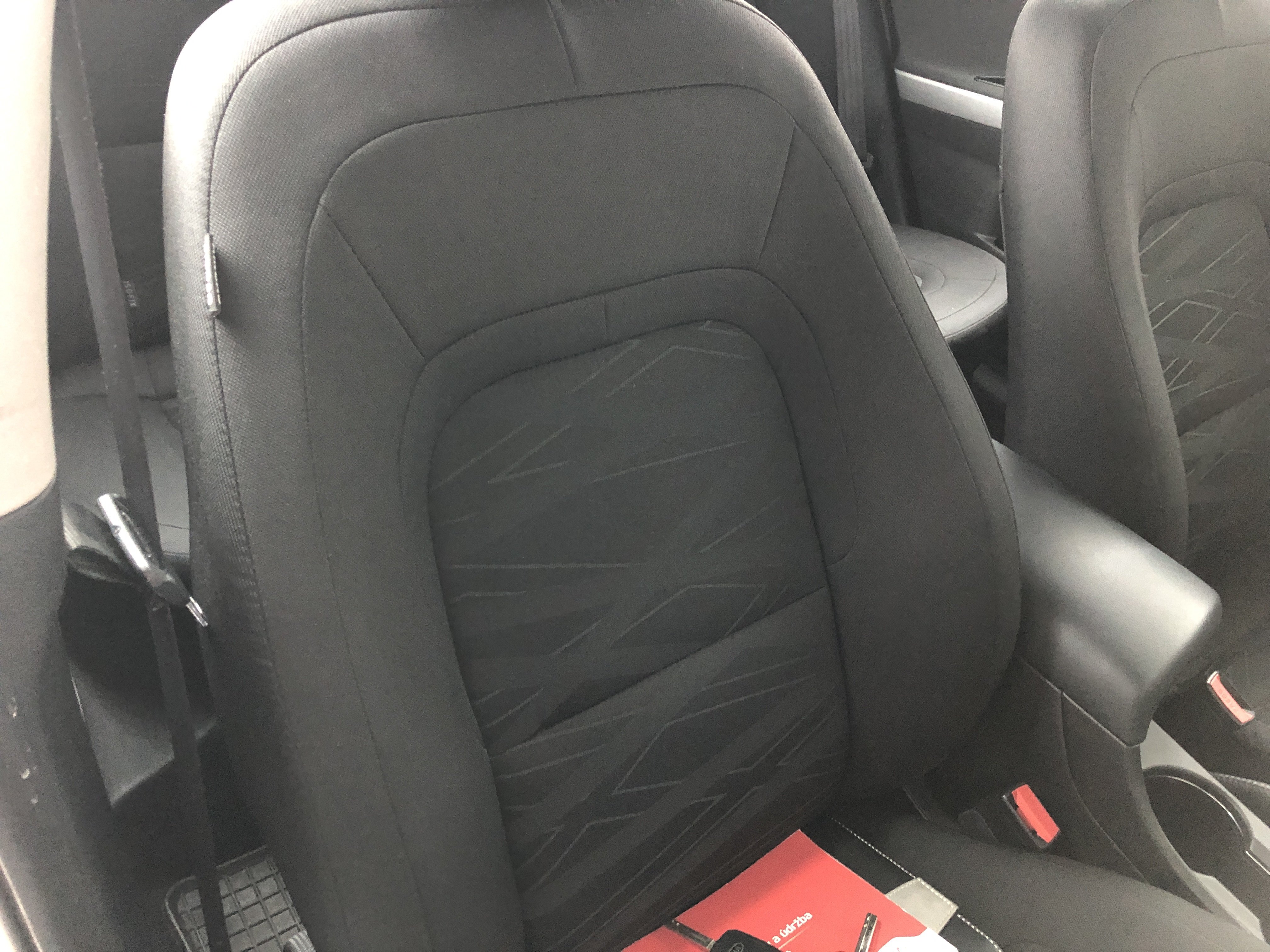 Oděrky a škrábance po obvodu karosérie, přední část karosérie je poškozená od kamínků, odřený přední nárazník, odřený levý přední blatník, lehce promáčklé levé přední dveře, odřená klika levých předních dveří, lehce promáčklé levé zadní dveře, odřený zadní nárazník, odřený znak víka zavazadlového prostoru, odřený pravý zadní blatník - koroze, odřené pravé zadní dveře, promáčklé pravé přední dveře, odřená klika pravých předních dveří, odřený plastový kryt pravého zpětného zrcátka, poškozený pravý práh - koroze, poškozené čelní sklo - jamka, chybí krycí roleta zavazadlového prostoru, interiér vozidla opotřeben.