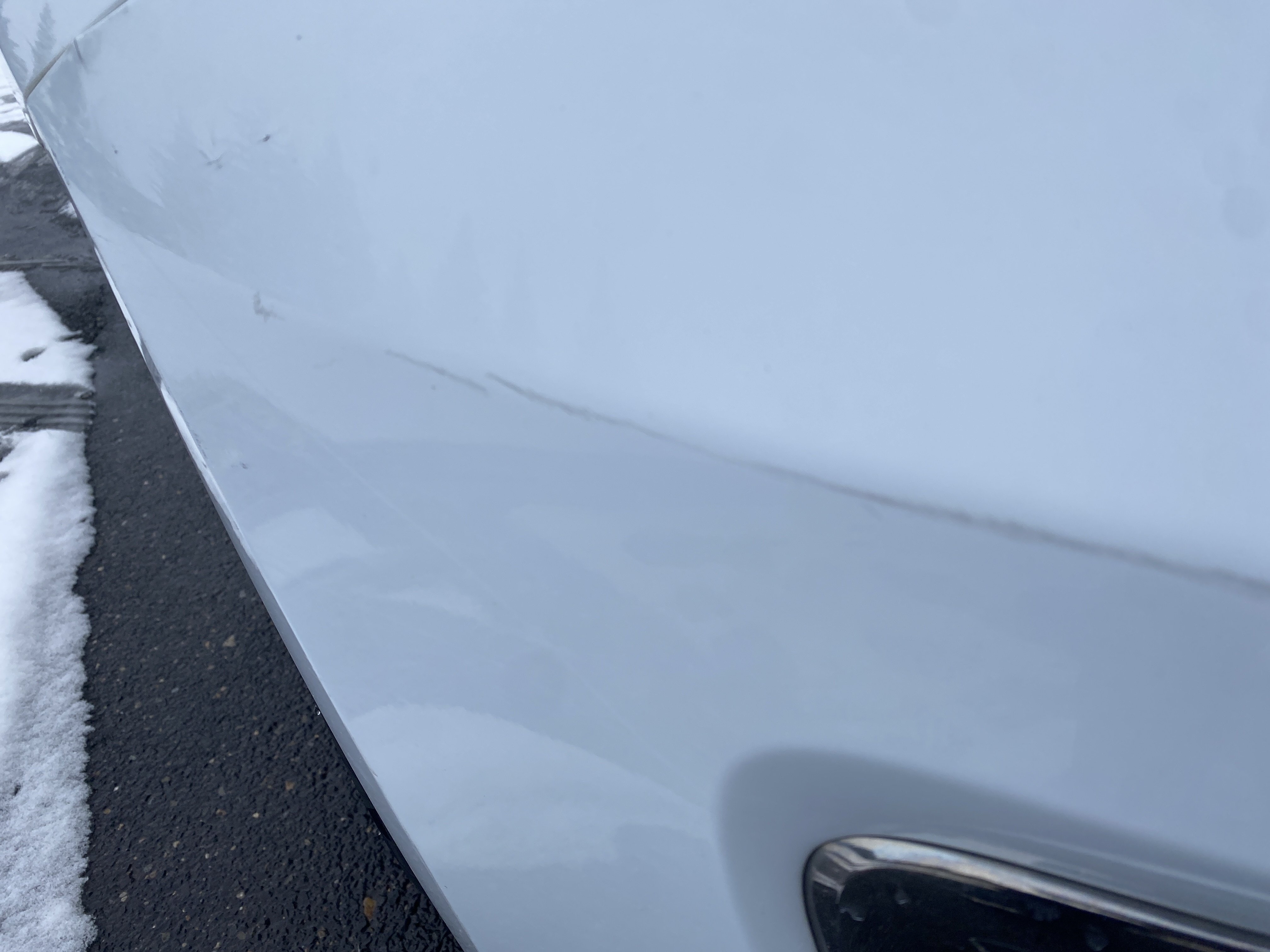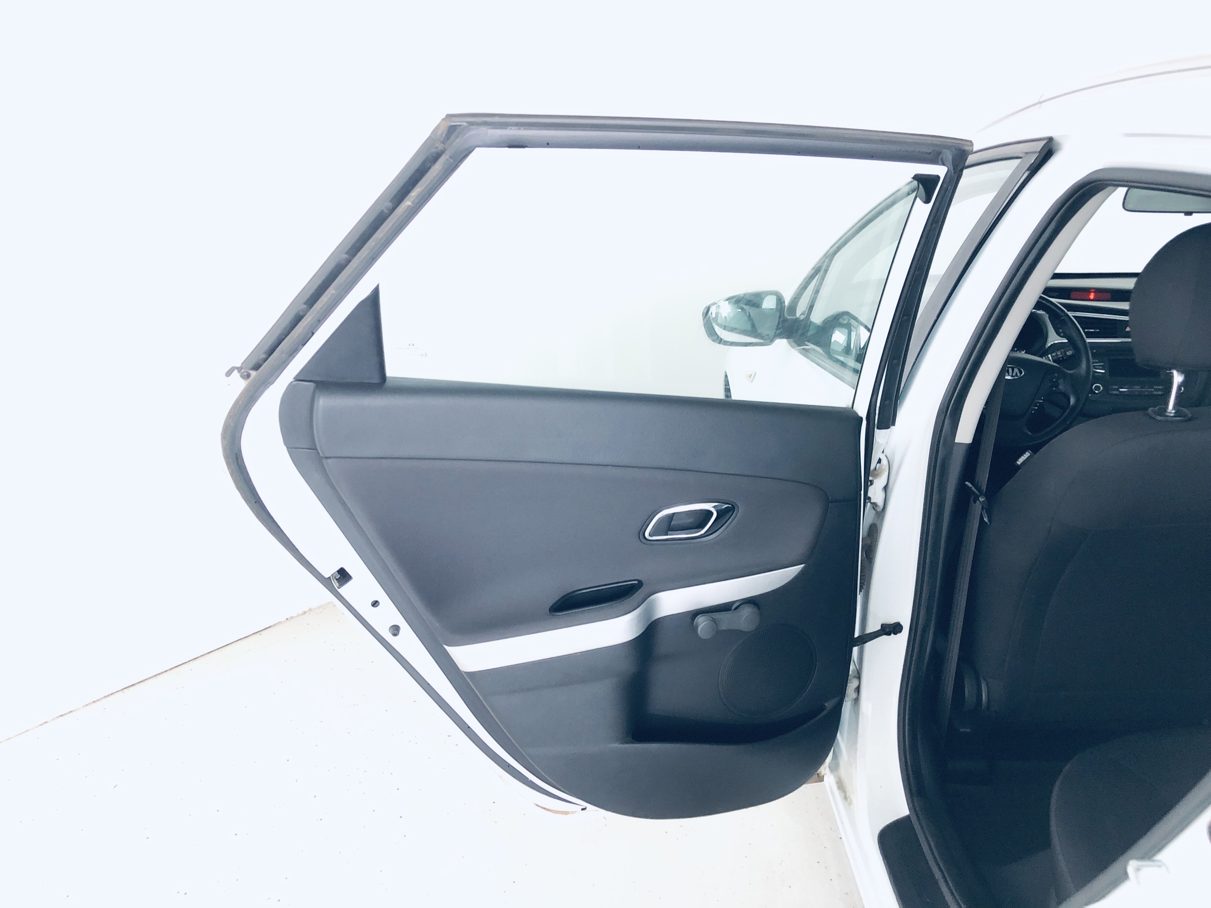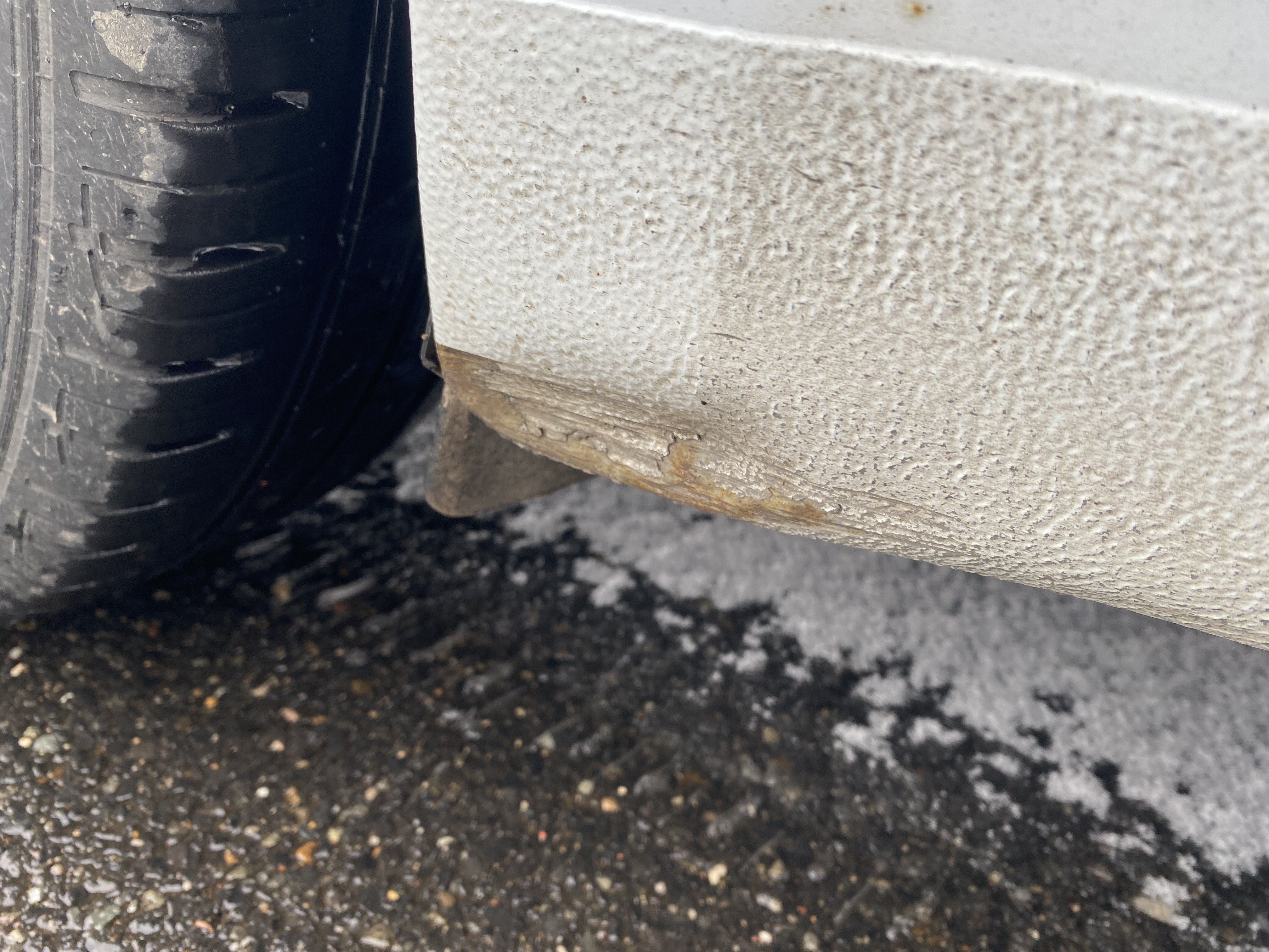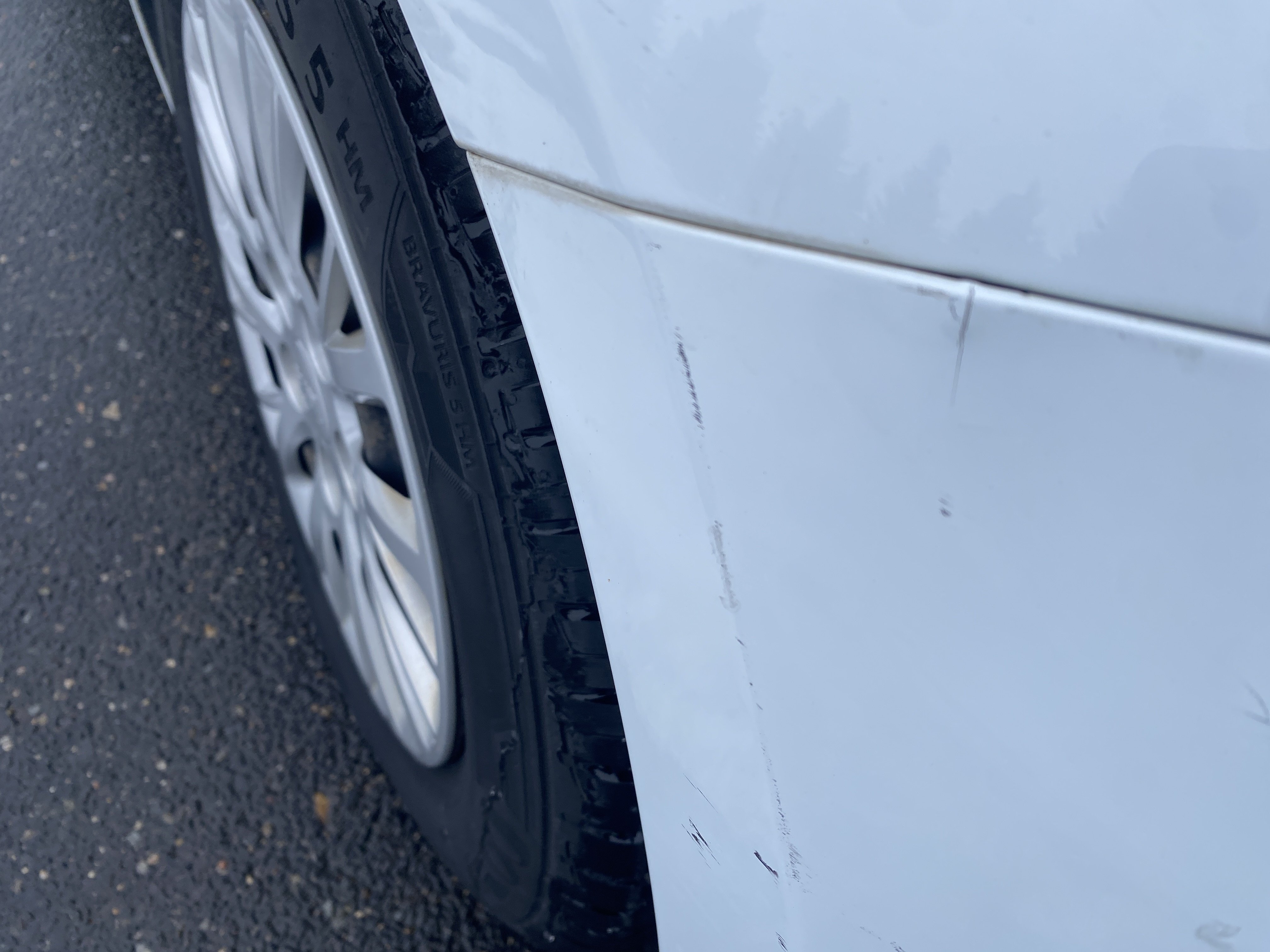 Oděrky a škrábance po obvodu karosérie, přední část karosérie je poškozená od kamínků, odřený přední nárazník, odřený levý přední blatník, lehce promáčklé levé přední dveře, odřená klika levých předních dveří, lehce promáčklé levé zadní dveře, odřený zadní nárazník, odřený znak víka zavazadlového prostoru, odřený pravý zadní blatník - koroze, odřené pravé zadní dveře, promáčklé pravé přední dveře, odřená klika pravých předních dveří, odřený plastový kryt pravého zpětného zrcátka, poškozený pravý práh - koroze, poškozené čelní sklo - jamka, chybí krycí roleta zavazadlového prostoru, interiér vozidla opotřeben.