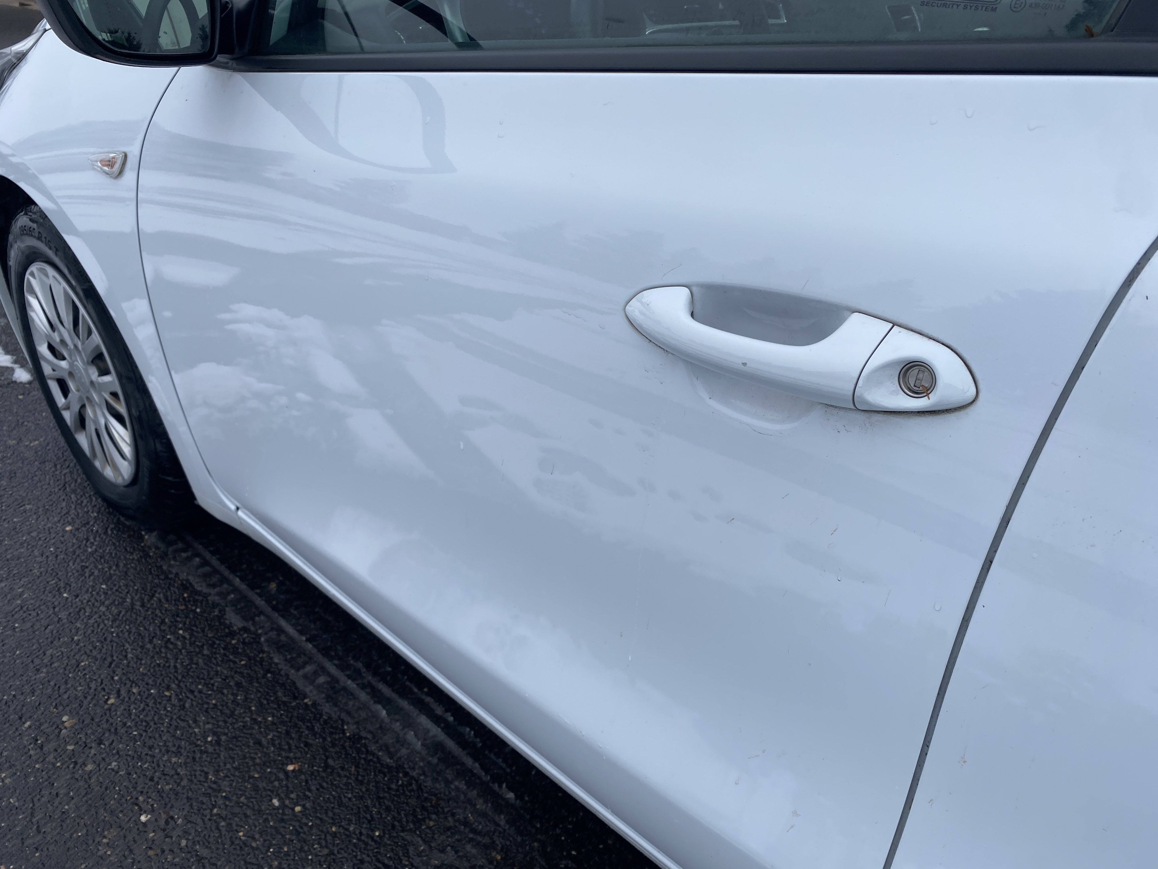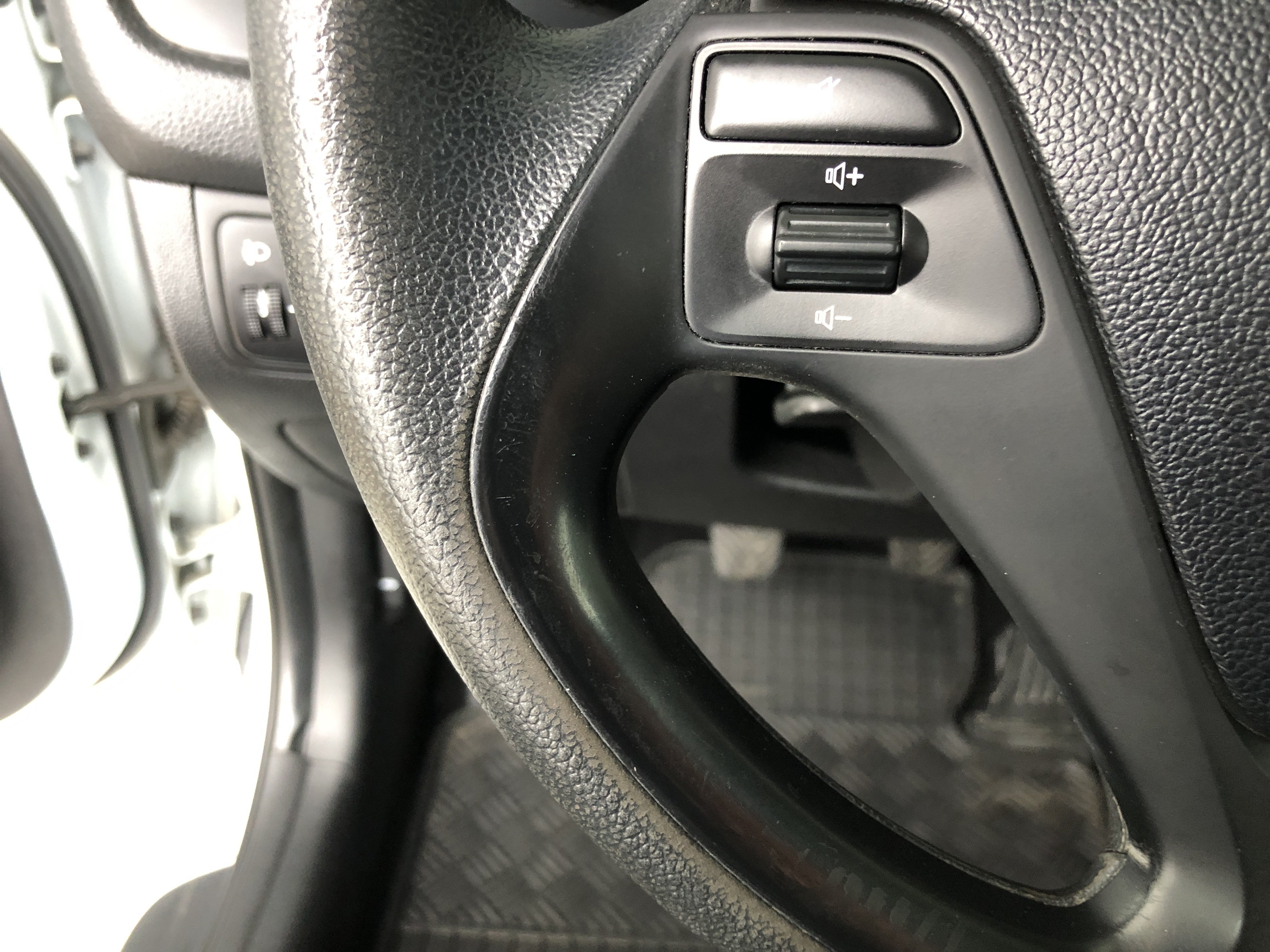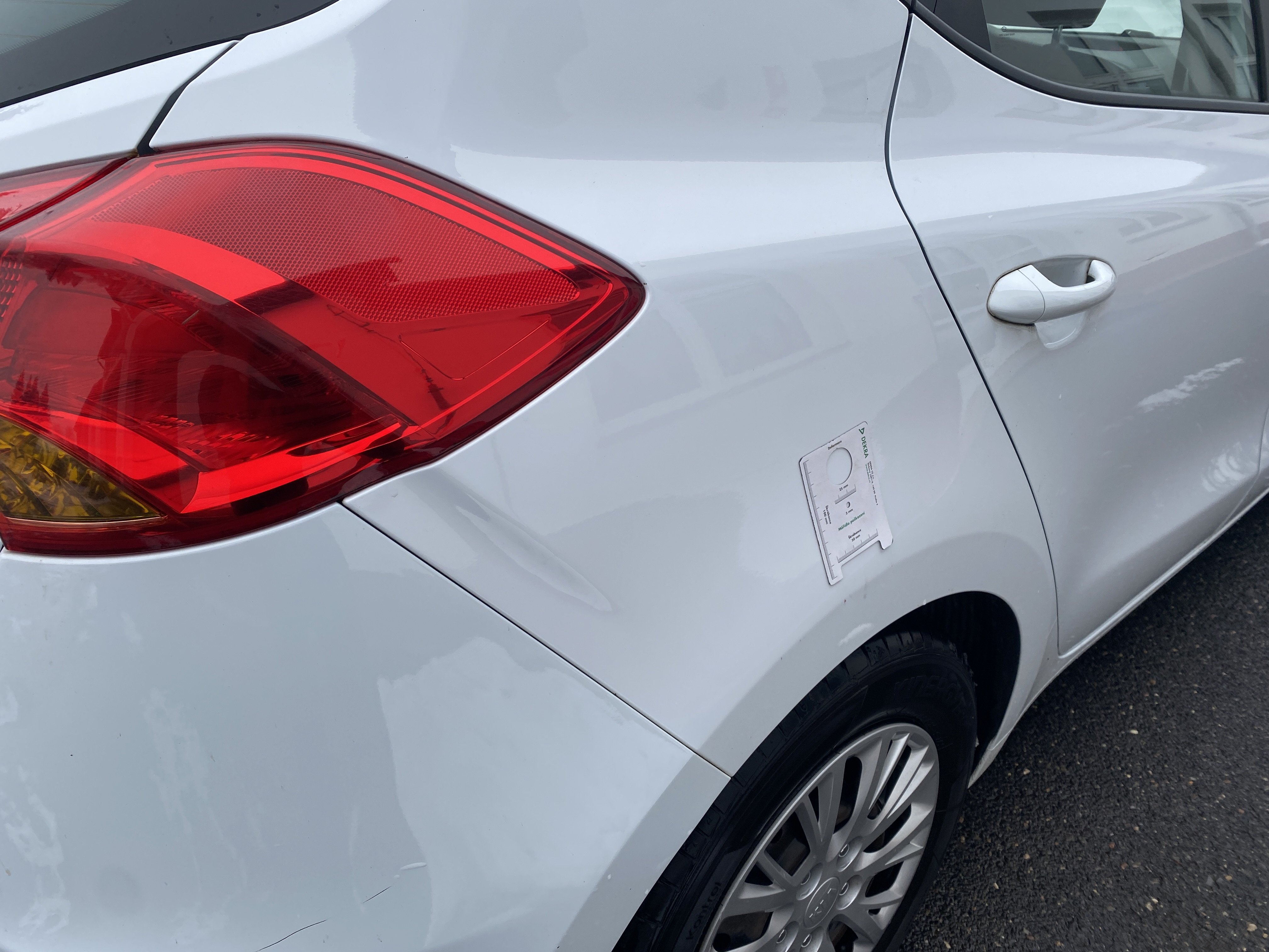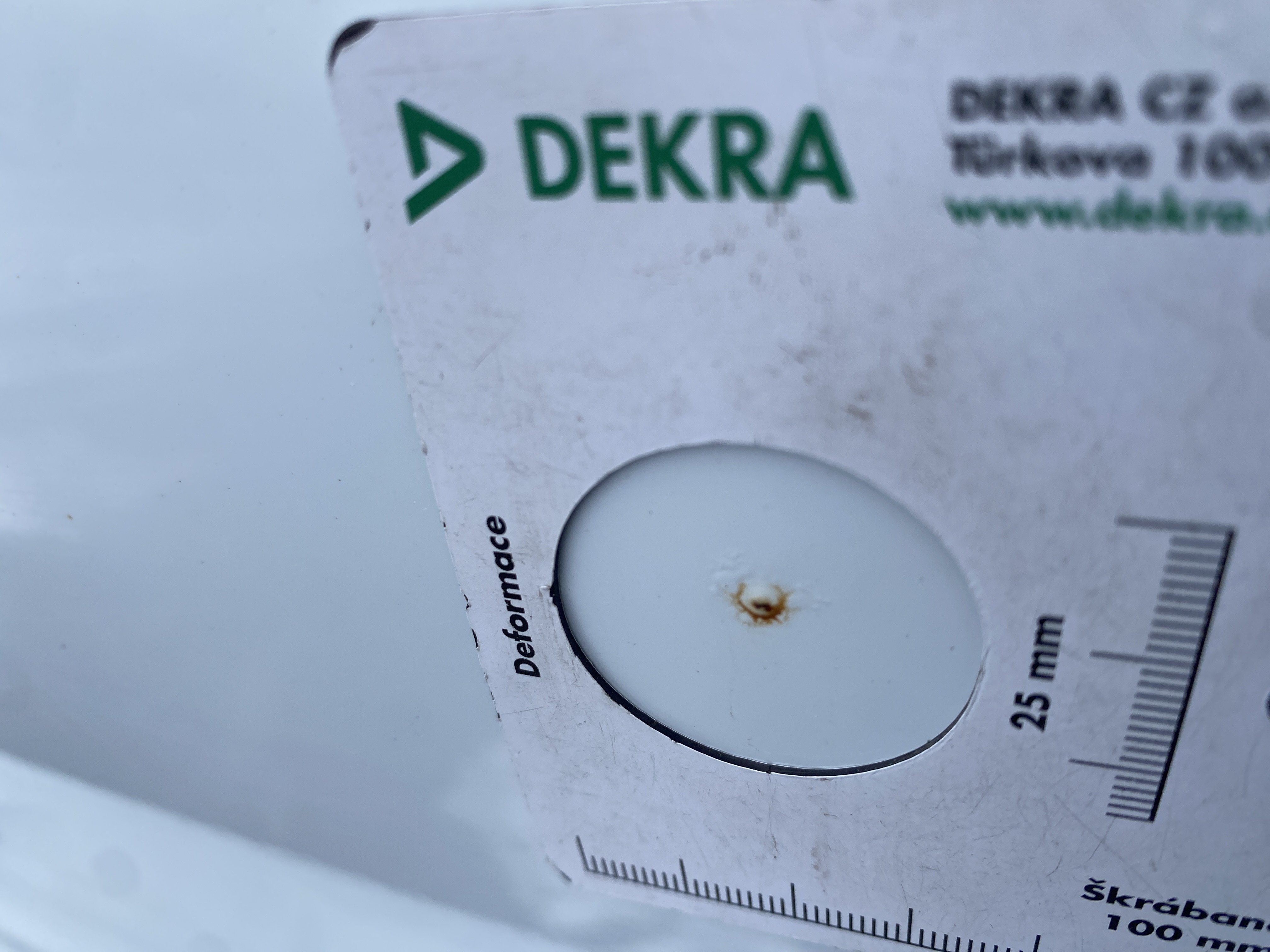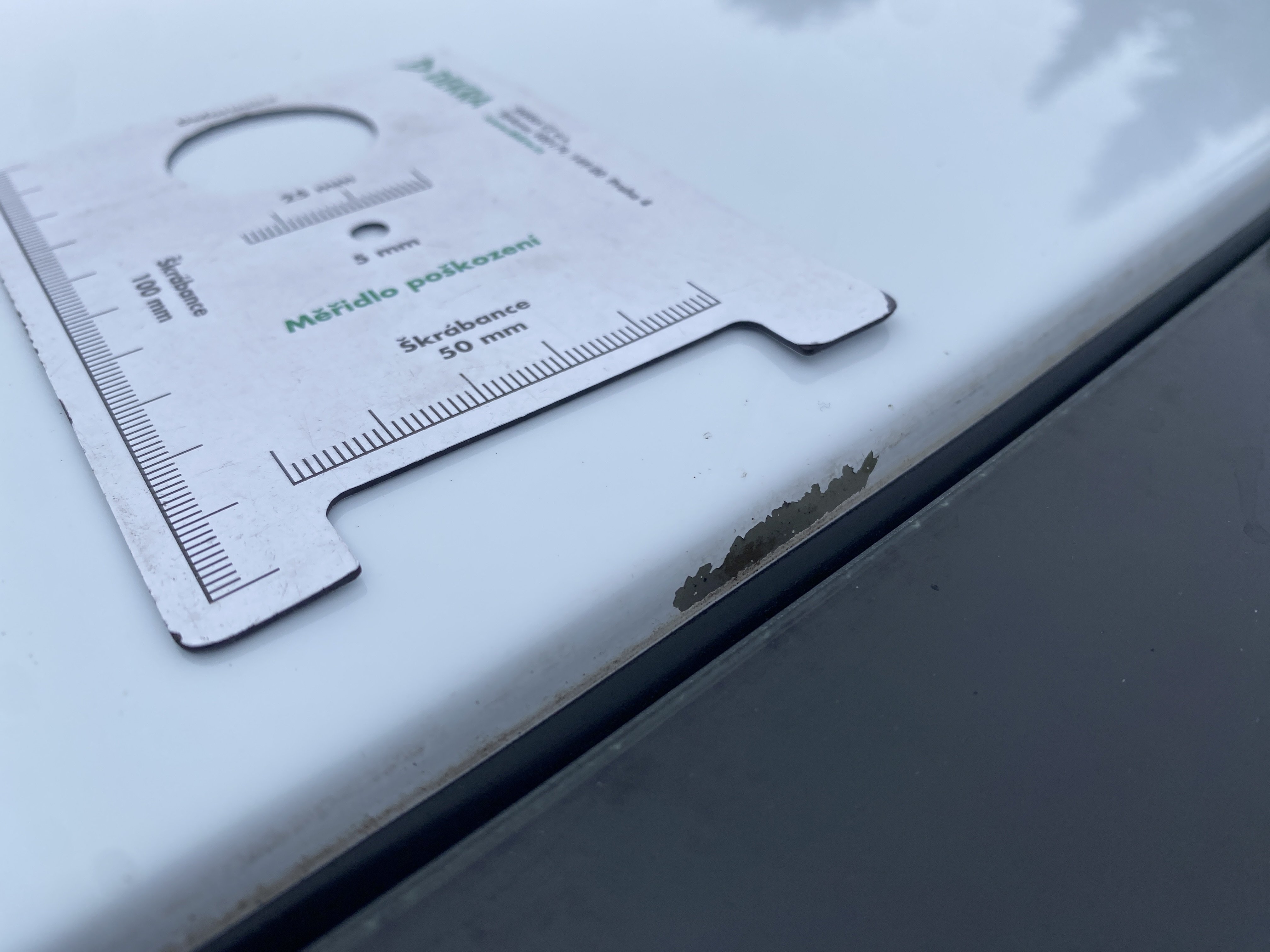 Oděrky a škrábance po obvodu karosérie, přední část karosérie je poškozená od kamínků, odřený přední nárazník, odřené víko motorového prostoru, odřená klika levých předních dveří, lehce promáčklé levé zadní dveře, odřený levý zadní blatník, odřený zadní nárazník, odřené víko zavazadlového prostoru - koroze, odřený pravý zadní blatník, promáčklé pravé přední dveře, odřená klika pravých předních dveří, odřené plato střechy - koroze, opotřebený volant, interiér vozidla opotřeben.