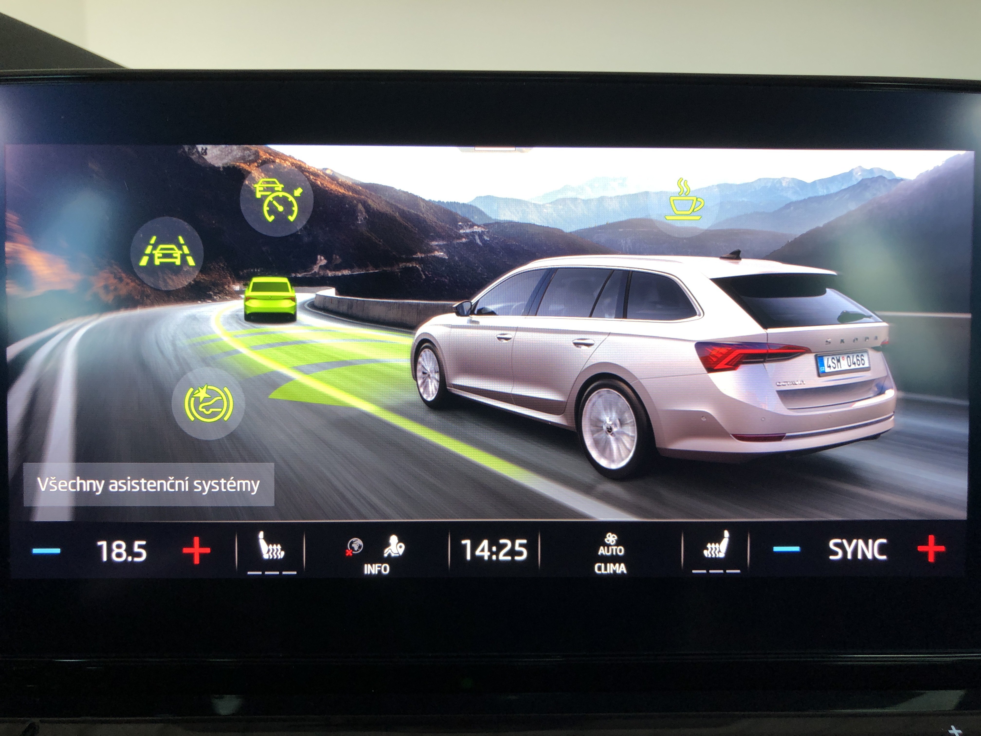 Speciální výbava: metalíza-lakování, odblokování sedadla . opěradlo sedadla za. v prostor zavazadl., Pomocný systém řidiče: adaptivní tempomat (ACC) s aktivní radar s funkcí Front Assistent (do 210 km/h), Pomocný systém řidiče: výběr jízdního programu, rezervní kolo jako nouzové kolo, skla boč. za. a zadní sklo tón. (SunSet), stěna za. . opěradla sedadla za. část koženka, světlomet mlhový LED s světlomet natáč., zařízení park. vpředu a za.
