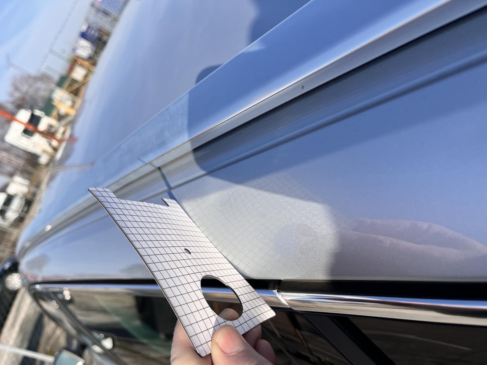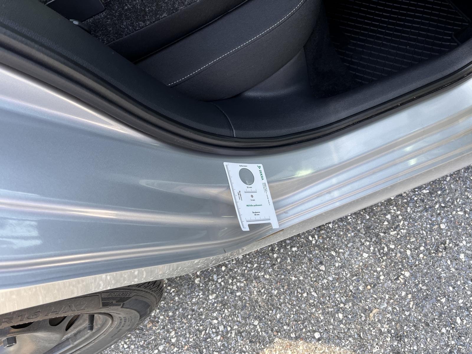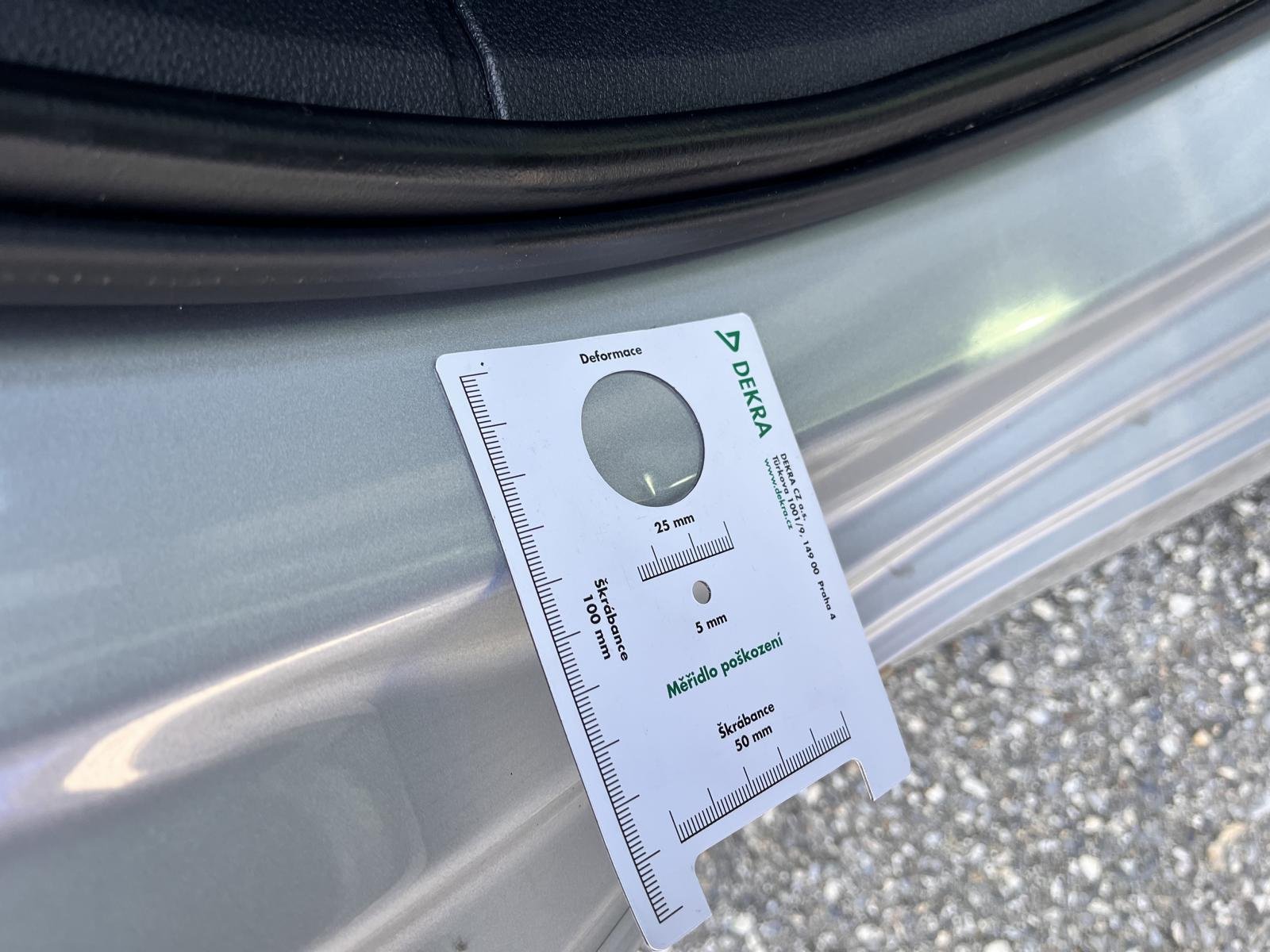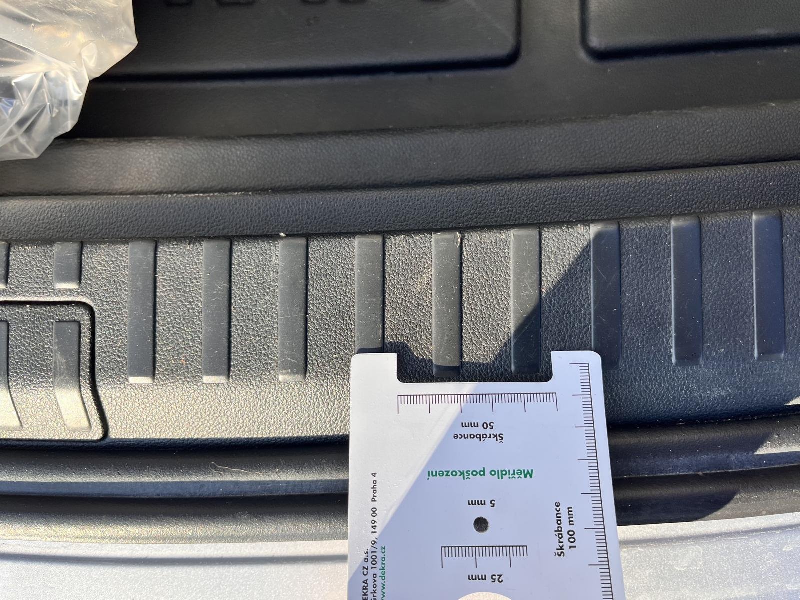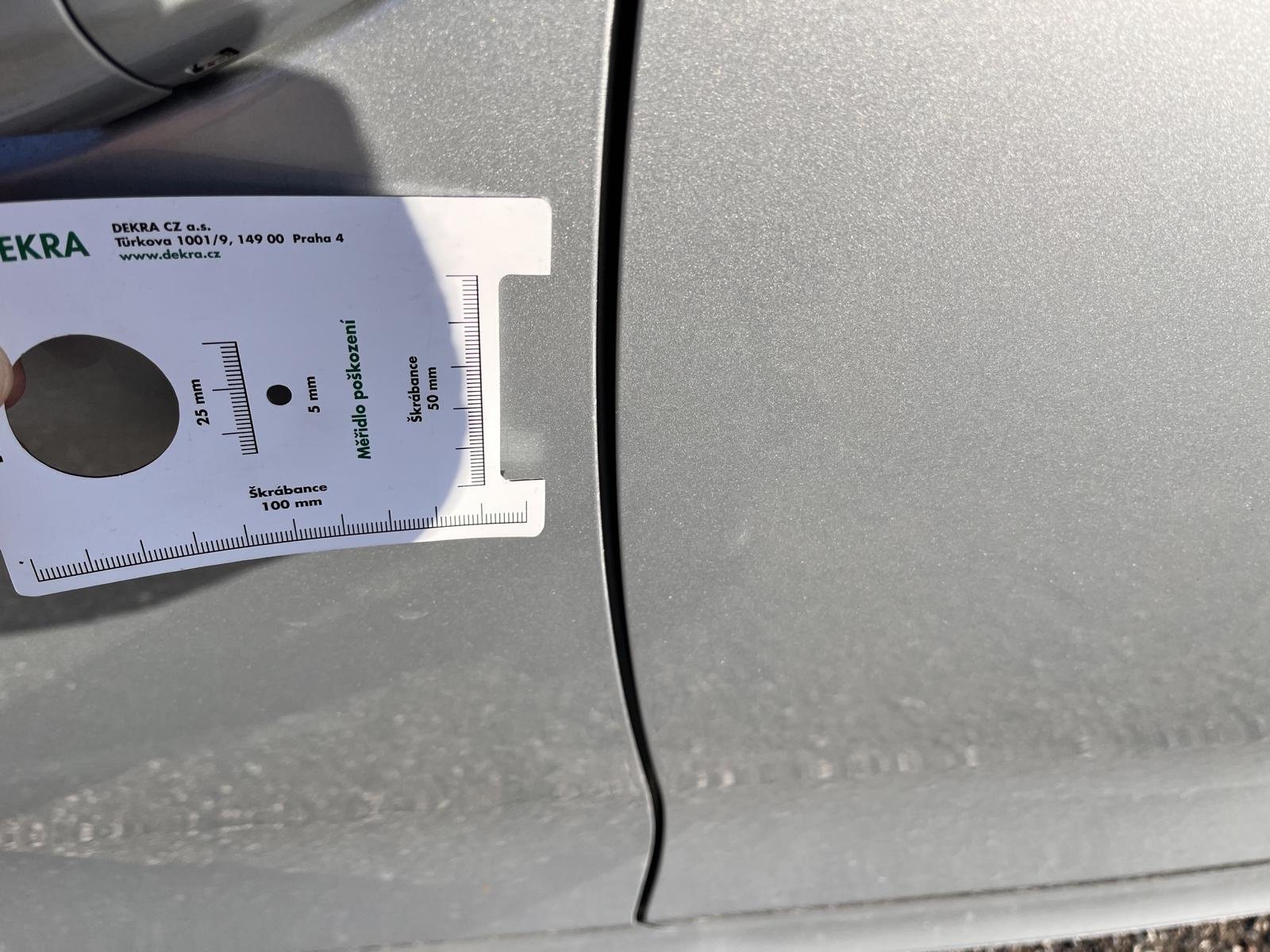 Oděrky a škrábance po obvodu karosérie, přední část karosérie je poškozená od kamínků, odřený zadní nárazník, mírně promáčklá levá zadní bočnica - jamka, deformace levého rámu dveří, odřené levé přední dveře, interiér vozidla opotřeben,