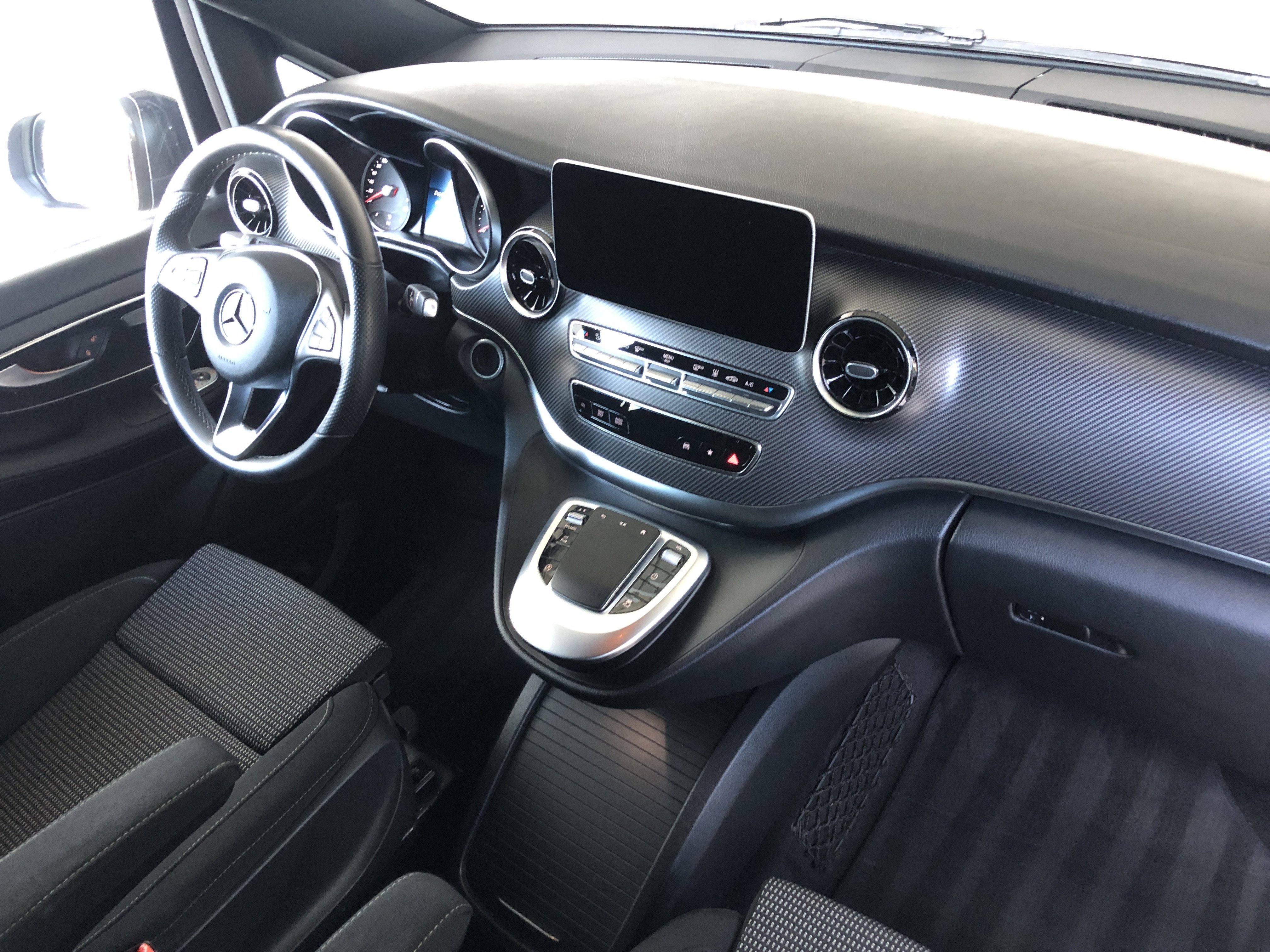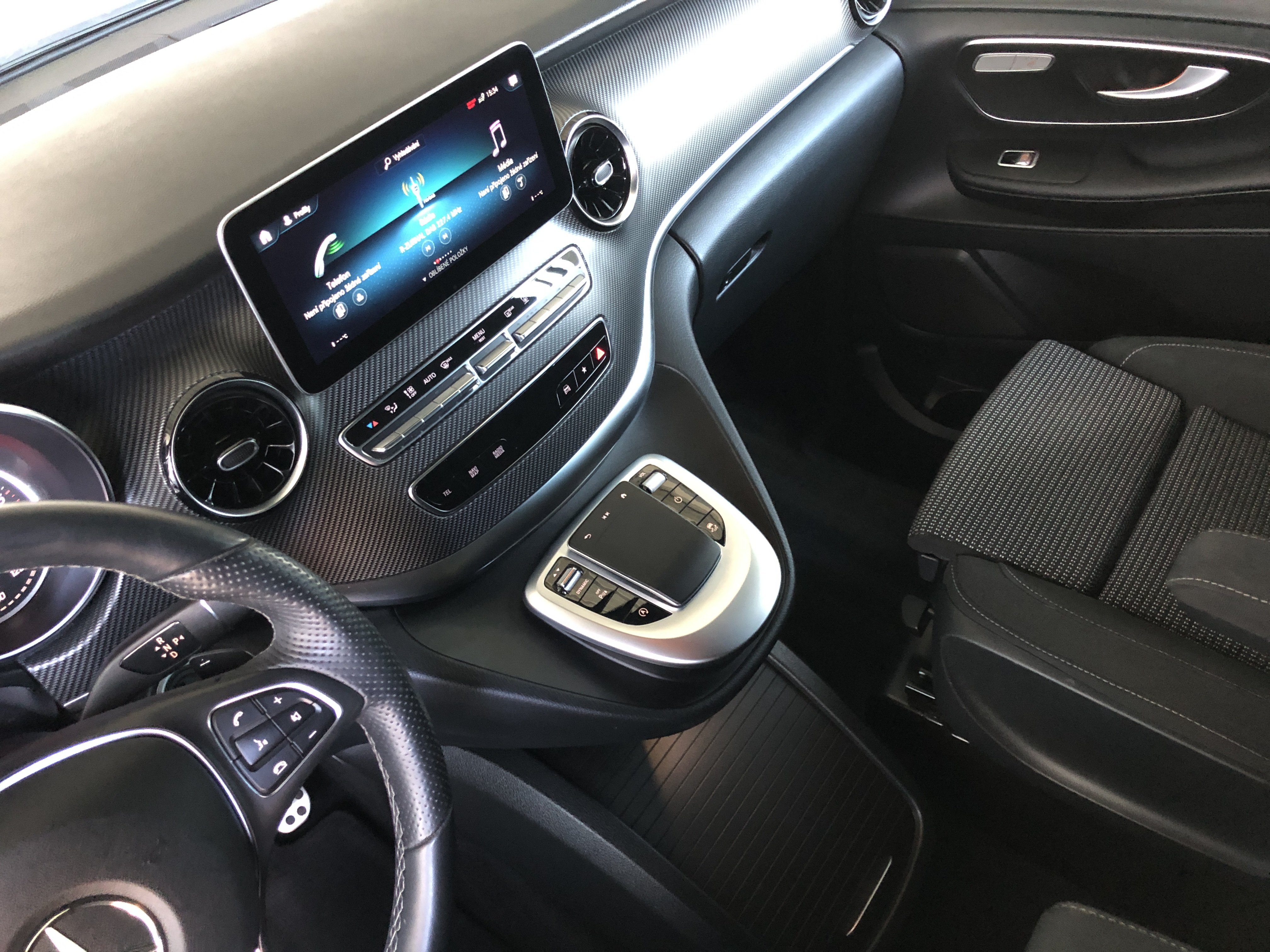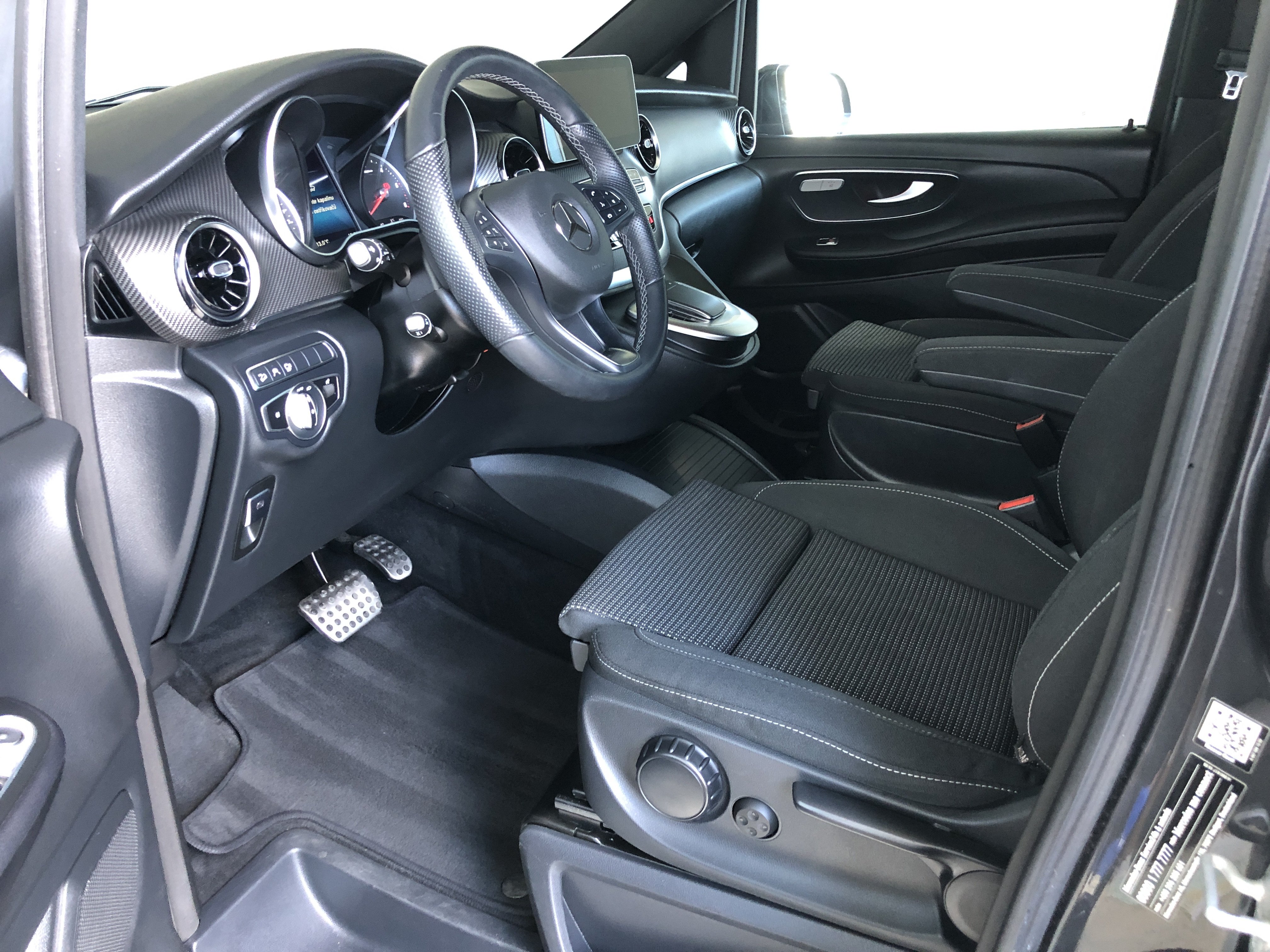 Speciální výbava: airbag hlavový (airbag okenní) za., AMG-Line(obložení / práh boč. (AMG), kryt nárazníku př. AMG, spoiler hrany střechy AMG, sportovní pedálová skupina hliník kartáčován, obložení stropu / potah střechy vnitř. látka černá, třmen brzdy kotouč. s označení modelu (Mercedes-Benz)), celková hmotnost přívěsu 2500 kg, detekce obsazení dětské sedačky v sedadlo spolujezdce (automat.), držák nápojů za., dveře posuv. prostor pro náklad/spolucestujícího levý, dveře za. výklop. s automat. systém otvírání a zavíraní, fixování nákladu / upínací oka, funkce Hold, inteligentní systém osvětlení LED(svítilny za. LED), klimatizace autom. sedadlo zad. nouz. (Tempmatik), klimatizace komfort-autom. Thermotronik(kabinový filtr: filtr pylový), komfort otevřít + zavřít s infračervený ovládání dálk., konzola stř. vpředu s roleta / místo odkl., maximální celková hmotnost 3,20 t, metalíza-lakování, multimediální systém MBUX (Touchscreen 10,25")(hands-free Bluetooth, WLAN-Hotspot), nádrž paliv.: zvětšený, osvětlení Ambiente přístr. deska, paket Akustika, paket Interiér-Světla(lišty nástupní s označení modelu Mercedes-Benz (osvětl.), osvětlení prostoru pro nohy vpředu, osvětlení v madlo sedadlo zad. nouz. s světlo čtecí bodové), paket Komfortní sedadlo(sedadla v řidičově kabině: sedadlo řidiče s Nastavení výšky sedadla, sedadla v řidičově kabině: sedadlo spolujezdce s Nastavení výšky sedadla), paket Parkování s 360° kamera(systém Parktronic (PTS), kamerový systém 360 stupeň), paket Stopa(zrcátko vněj. s asistent mrtvého úhlu, Pomocný systém řidiče: asistent pro jízdu v pruhu), paket Zrcátko(zrcátko vněj. el. sklopný, zrcátko vněj. s osvětlení okolí, zrcátko zpět. vni. a zrcátko vněj. levý s ztmavování automat.), Pomocný systém řidiče: aktivní asistent brzdový, Pomocný systém řidiče: asistent dálkových světel plus, prosklení za. tón. / sklo černé, rohožky velur, ráfek z leh. slitiny 8x19 (AMG, 7-dvojpaprsků), sedadla v nákladovém prostoru/v prostoru pro cestující: 1.řada, 3.sedadl.lavice komfort, sedadla v řidičově kabině: sedadlo spolujezdce komfort, sedadla v řidičově kabině: sedadlo řidiče s opěra beder.(sedadla v řidičově kabině: sedadlo spolujezdce s opěra beder.), sedadla v řidičově kabině: sedadlo řidiče vyhř.(sedadla v řidičově kabině: sedadlo spolujezdce vyhř.), Smartphone-Integration (Apple CarPlay a Android Auto), systém tlumení podvozku Agility Control, síťka odkl. na opěradla sedadla za., síťka odkl. na opěradlo sedadla př. levý(síťka odkl. na opěradlo sedadla př. vpravo), topení příd. (teplá voda), volant (kůže), vybavení interiéru: díly ozd. vzhled Karbon, zadní sklo nastav., zařízení závěsné kulová hlavice dem., zvedák vozidla, zásuvky (12V-zásuvka) v prostor pro náklad/spolucestujícího, dvojitý