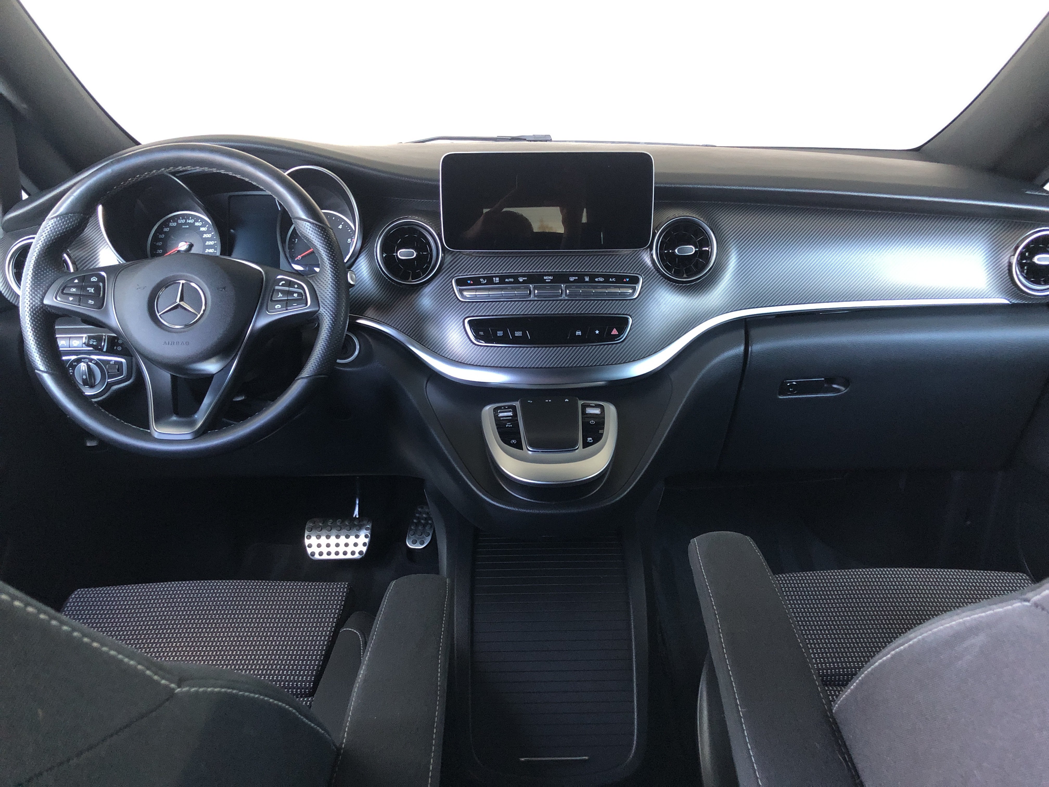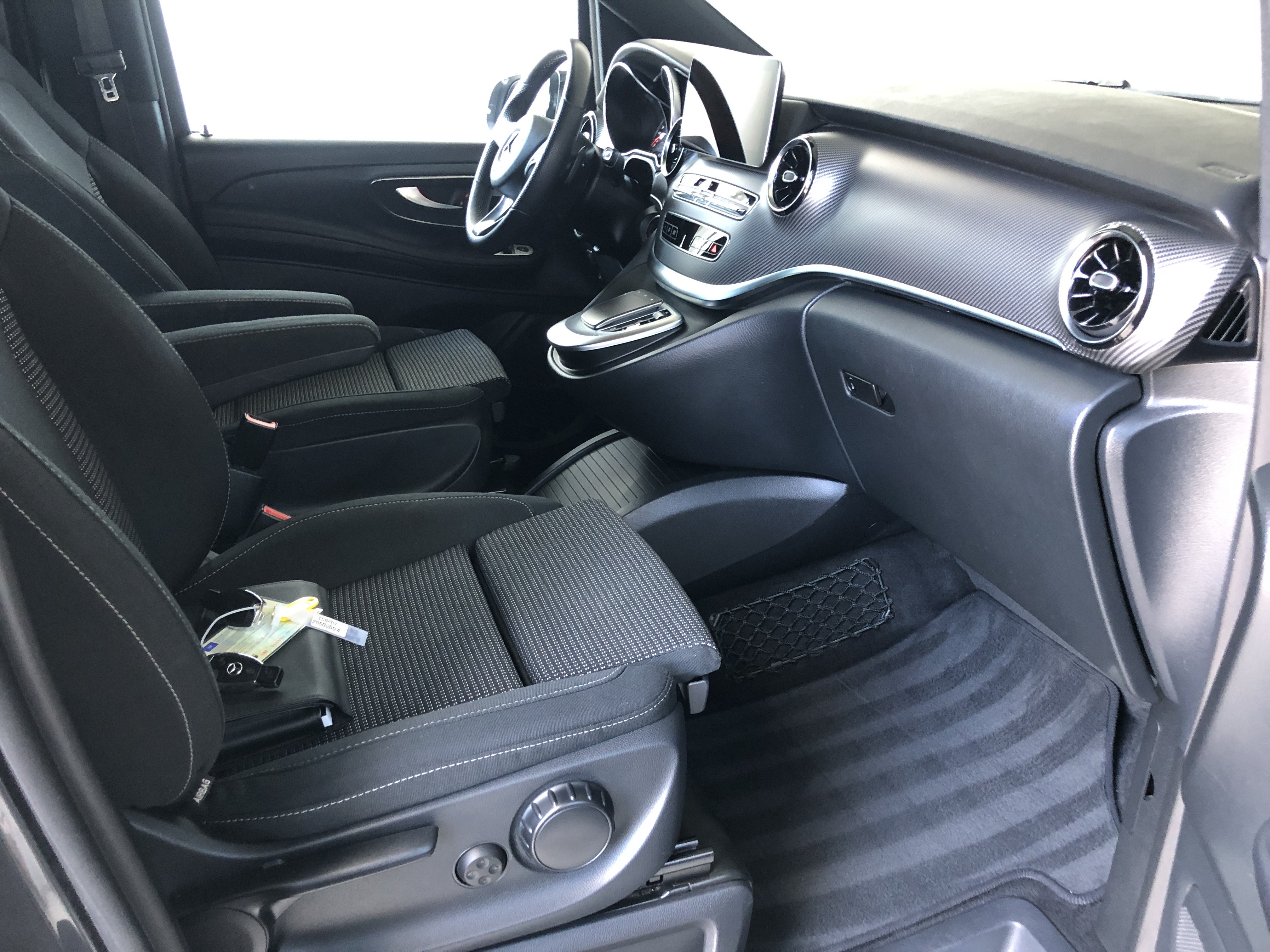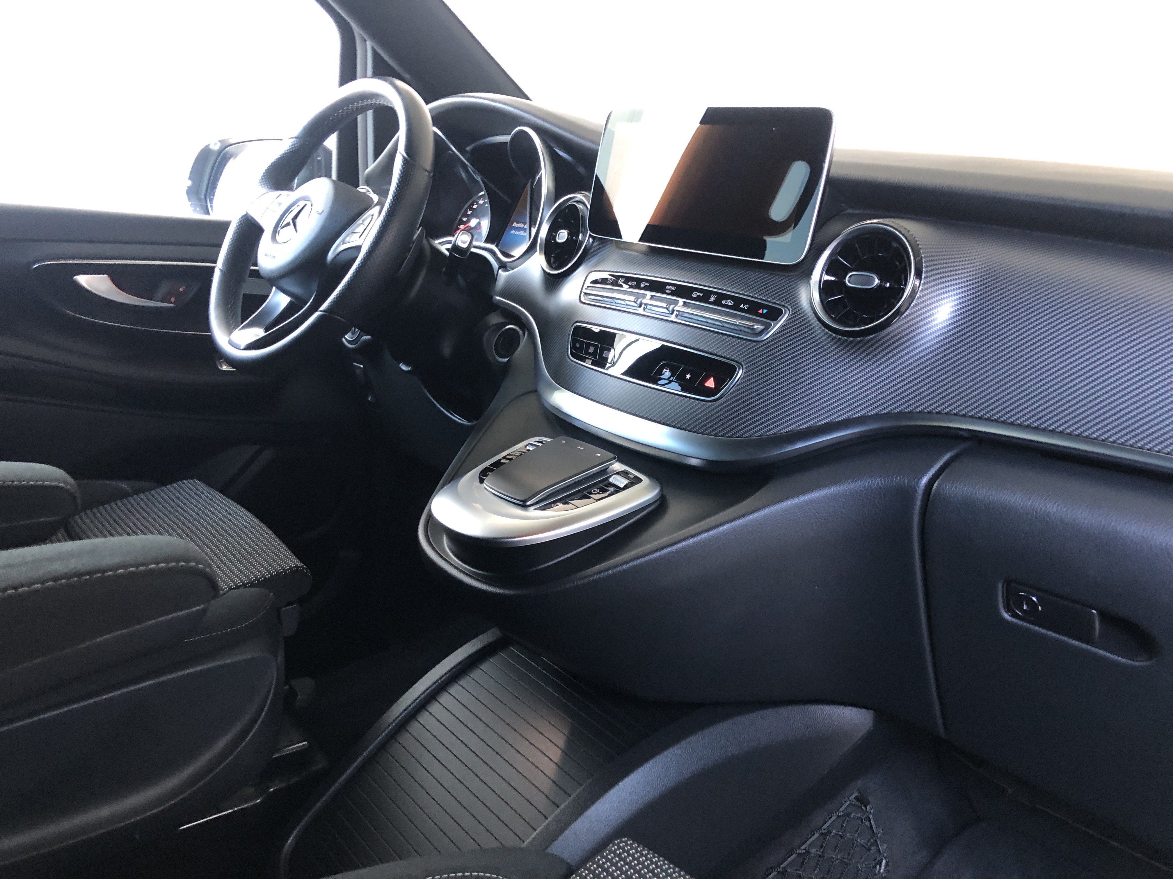 Speciální výbava: airbag hlavový (airbag okenní) za., AMG-Line(obložení / práh boč. (AMG), kryt nárazníku př. AMG, spoiler hrany střechy AMG, sportovní pedálová skupina hliník kartáčován, obložení stropu / potah střechy vnitř. látka černá, třmen brzdy kotouč. s označení modelu (Mercedes-Benz)), celková hmotnost přívěsu 2500 kg, detekce obsazení dětské sedačky v sedadlo spolujezdce (automat.), držák nápojů za., dveře posuv. prostor pro náklad/spolucestujícího levý, dveře za. výklop. s automat. systém otvírání a zavíraní, fixování nákladu / upínací oka, funkce Hold, inteligentní systém osvětlení LED(svítilny za. LED), klimatizace autom. sedadlo zad. nouz. (Tempmatik), klimatizace komfort-autom. Thermotronik(kabinový filtr: filtr pylový), komfort otevřít + zavřít s infračervený ovládání dálk., konzola stř. vpředu s roleta / místo odkl., maximální celková hmotnost 3,20 t, metalíza-lakování, multimediální systém MBUX (Touchscreen 10,25")(hands-free Bluetooth, WLAN-Hotspot), nádrž paliv.: zvětšený, osvětlení Ambiente přístr. deska, paket Akustika, paket Interiér-Světla(lišty nástupní s označení modelu Mercedes-Benz (osvětl.), osvětlení prostoru pro nohy vpředu, osvětlení v madlo sedadlo zad. nouz. s světlo čtecí bodové), paket Komfortní sedadlo(sedadla v řidičově kabině: sedadlo řidiče s Nastavení výšky sedadla, sedadla v řidičově kabině: sedadlo spolujezdce s Nastavení výšky sedadla), paket Parkování s 360° kamera(systém Parktronic (PTS), kamerový systém 360 stupeň), paket Stopa(zrcátko vněj. s asistent mrtvého úhlu, Pomocný systém řidiče: asistent pro jízdu v pruhu), paket Zrcátko(zrcátko vněj. el. sklopný, zrcátko vněj. s osvětlení okolí, zrcátko zpět. vni. a zrcátko vněj. levý s ztmavování automat.), Pomocný systém řidiče: aktivní asistent brzdový, Pomocný systém řidiče: asistent dálkových světel plus, prosklení za. tón. / sklo černé, rohožky velur, ráfek z leh. slitiny 8x19 (AMG, 7-dvojpaprsků), sedadla v nákladovém prostoru/v prostoru pro cestující: 1.řada, 3.sedadl.lavice komfort, sedadla v řidičově kabině: sedadlo spolujezdce komfort, sedadla v řidičově kabině: sedadlo řidiče s opěra beder.(sedadla v řidičově kabině: sedadlo spolujezdce s opěra beder.), sedadla v řidičově kabině: sedadlo řidiče vyhř.(sedadla v řidičově kabině: sedadlo spolujezdce vyhř.), Smartphone-Integration (Apple CarPlay a Android Auto), systém tlumení podvozku Agility Control, síťka odkl. na opěradla sedadla za., síťka odkl. na opěradlo sedadla př. levý(síťka odkl. na opěradlo sedadla př. vpravo), topení příd. (teplá voda), volant (kůže), vybavení interiéru: díly ozd. vzhled Karbon, zadní sklo nastav., zařízení závěsné kulová hlavice dem., zvedák vozidla, zásuvky (12V-zásuvka) v prostor pro náklad/spolucestujícího, dvojitý