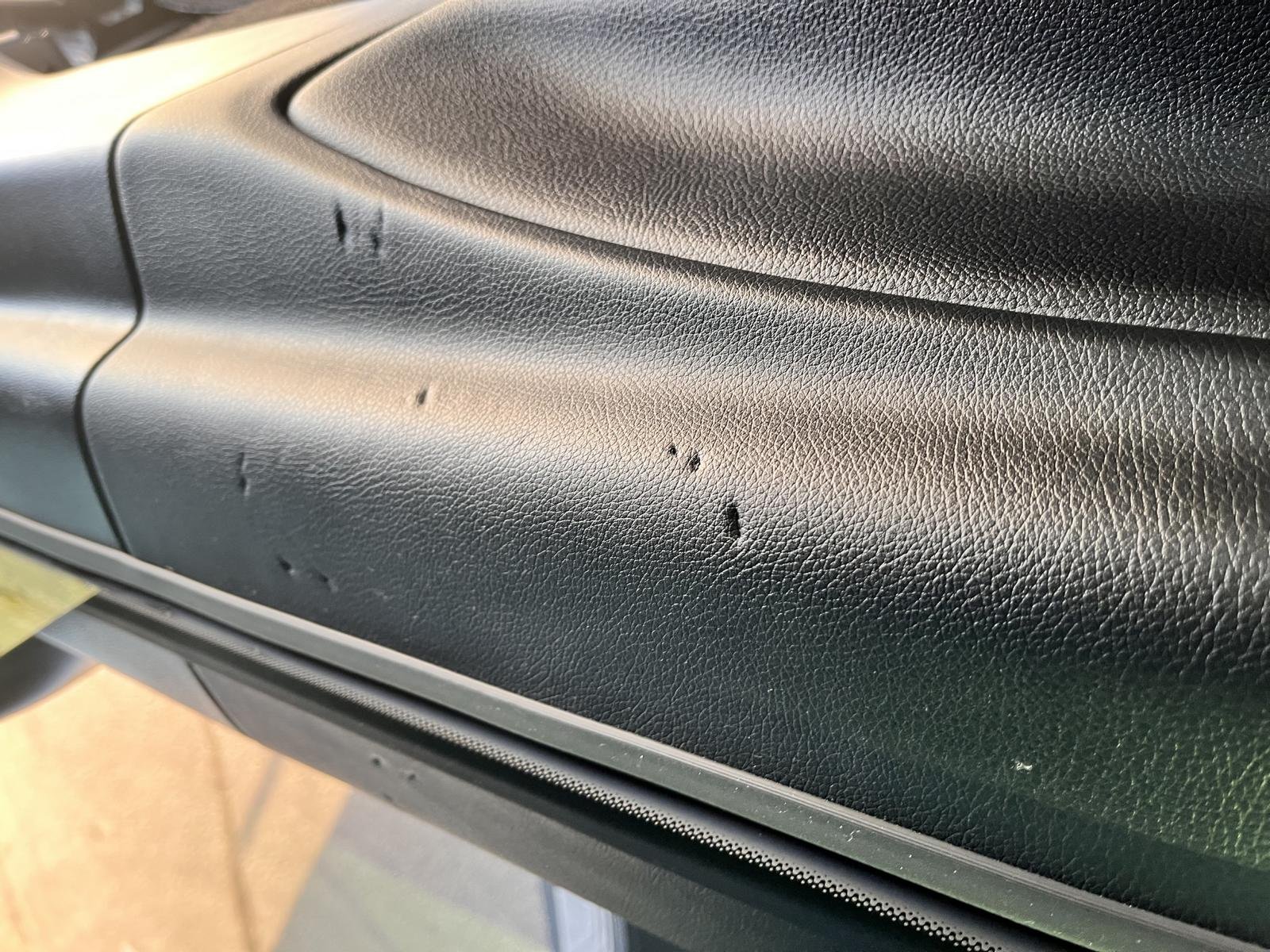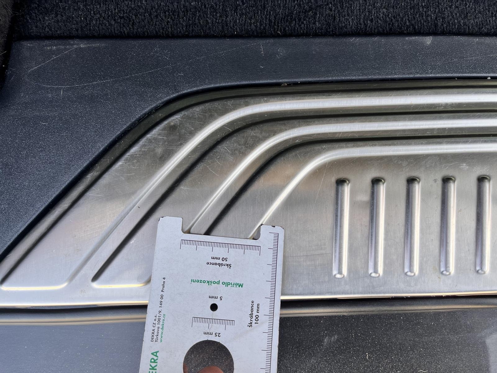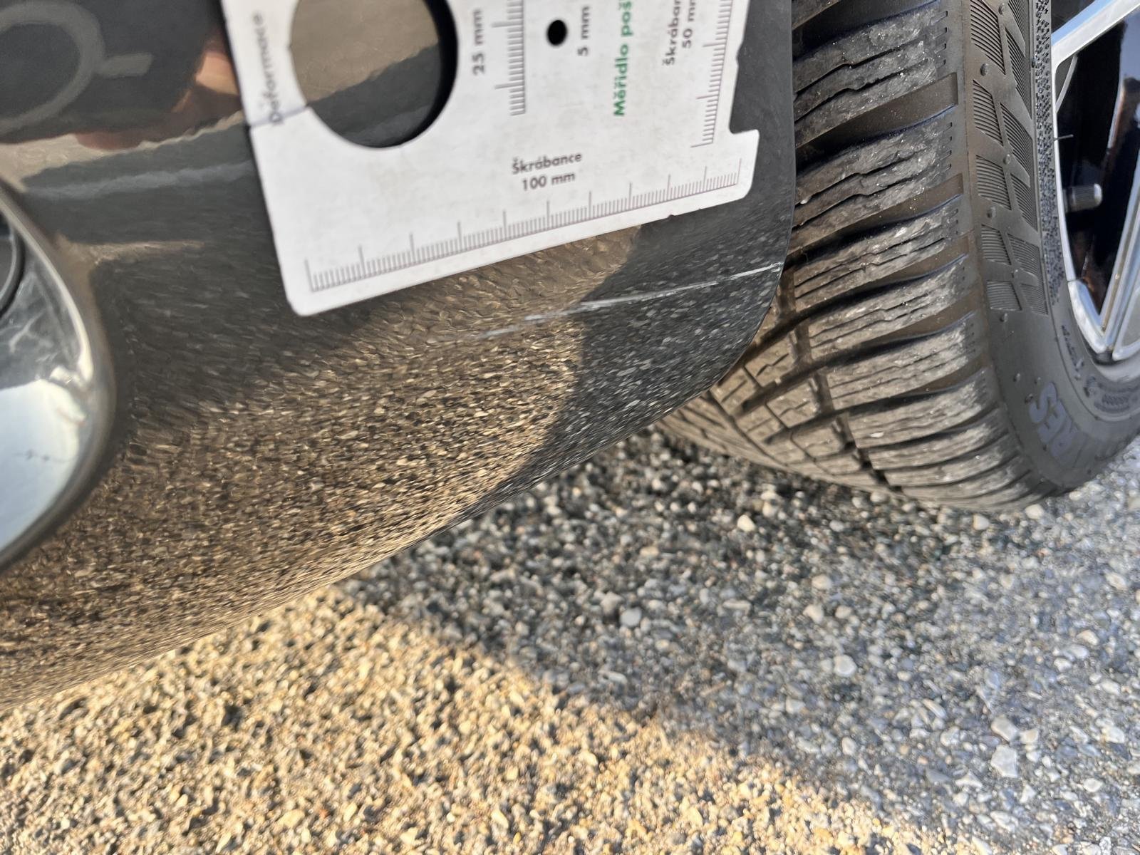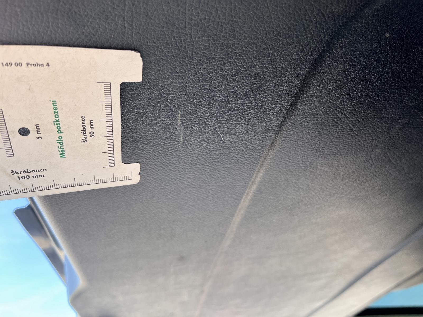 Oděrky a škrábance po obvodu karosérie, přední část karosérie je poškozená od kamínků, odřený přední nárazník, odřený spojler předního nárazníku, odřené levé přední dveře, deformace levých posuvných dveří, deformace levé zadní bočnice, poškozen zadní nárazník, odřená pravá zadní bočnice, odřené pravé posuvné dveře, interiér vozidla opotřeben,