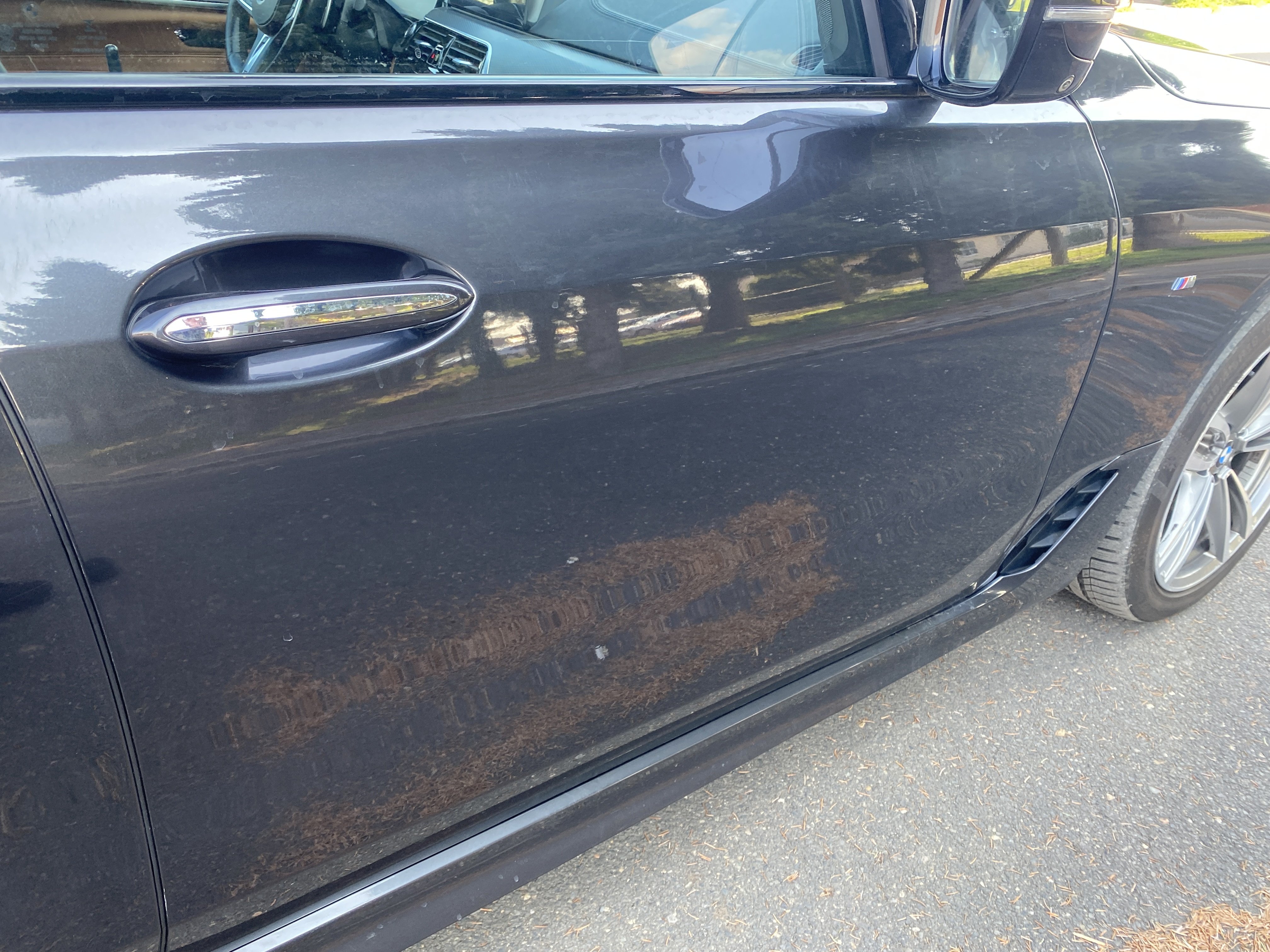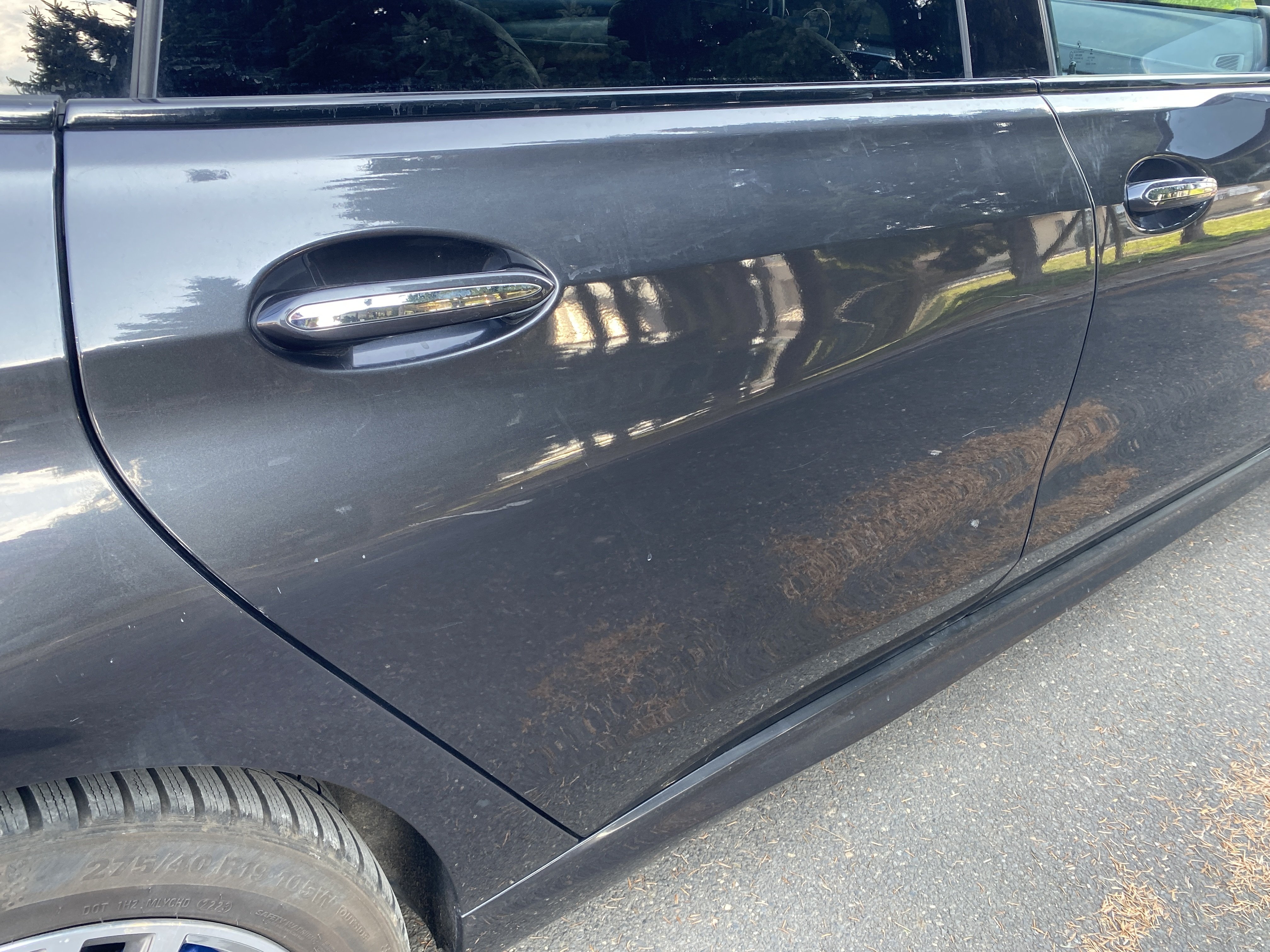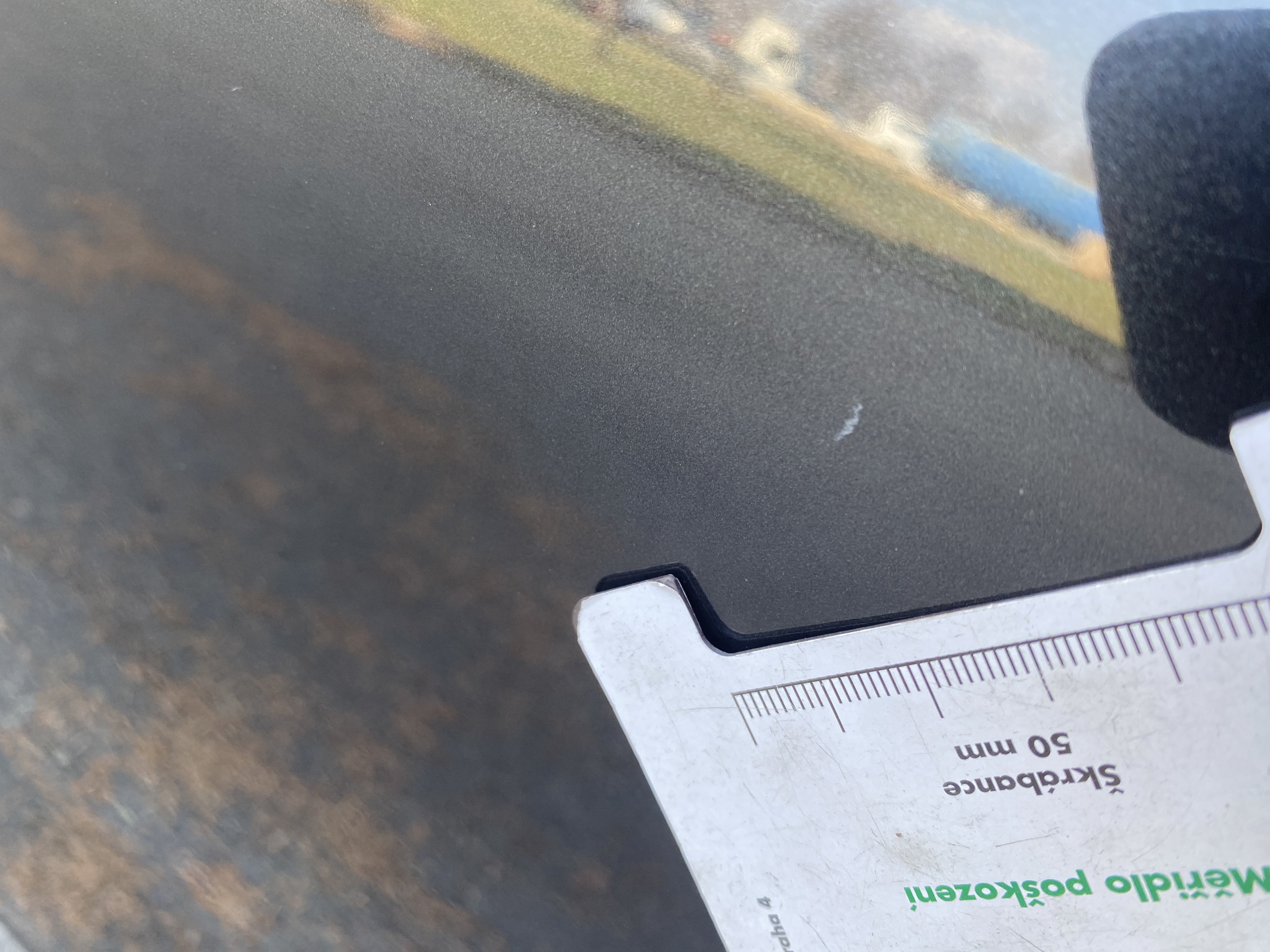 Oděrky a škrábance po obvodu karosérie, přední část karosérie je poškozená od kamínků, odřený přední nárazník, odřená hrana levých předních dveří, odřené levé zadní dveře, odřený zadní nárazník, odřený pravý zadní blatník, odřené pravé zadní dveře, odřené pravé přední dveře, svítí kontrolka opotřebení brzdových destiček, palubní počítač hlásí servisní interval, svítí kontrolka motoru, nefunkční stahování levého zadního okna, poškozen boční kryt levé přední sedačky, interiér vozidla poškozen,