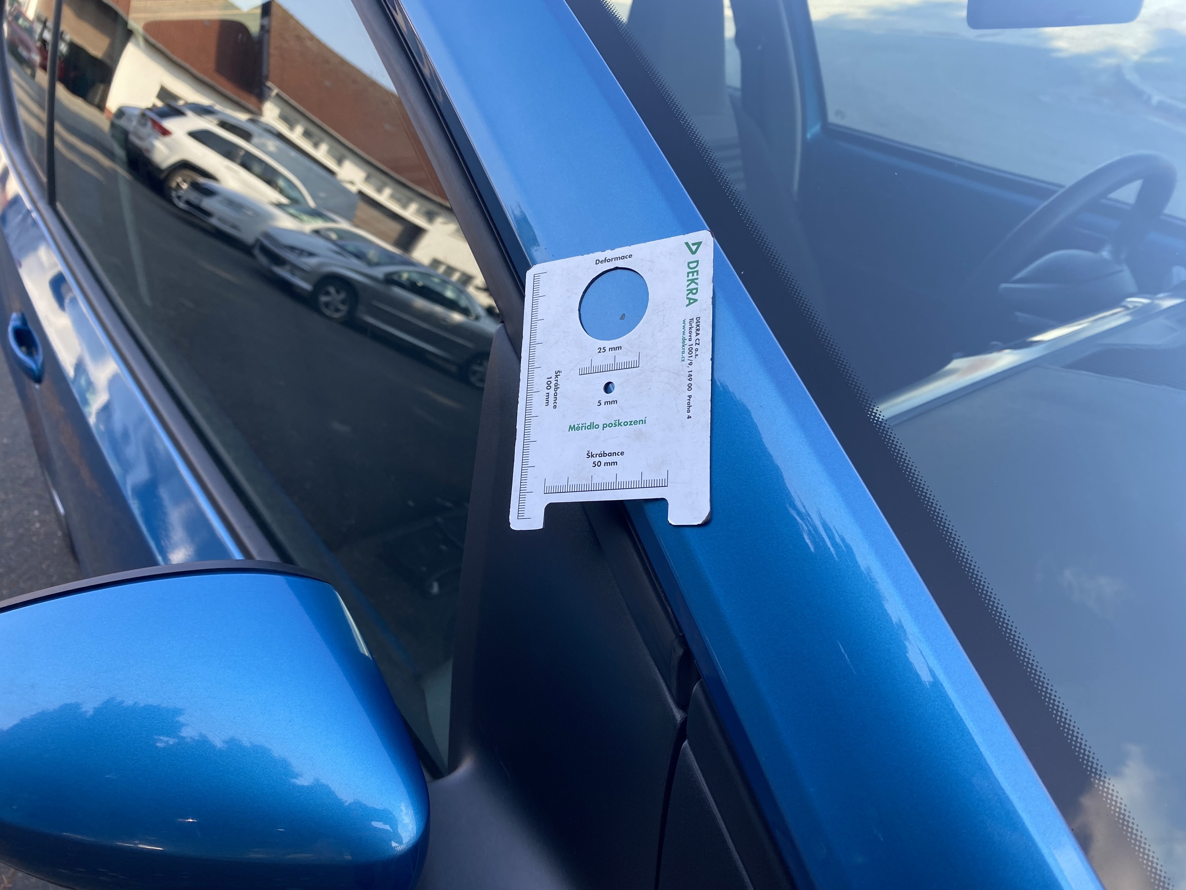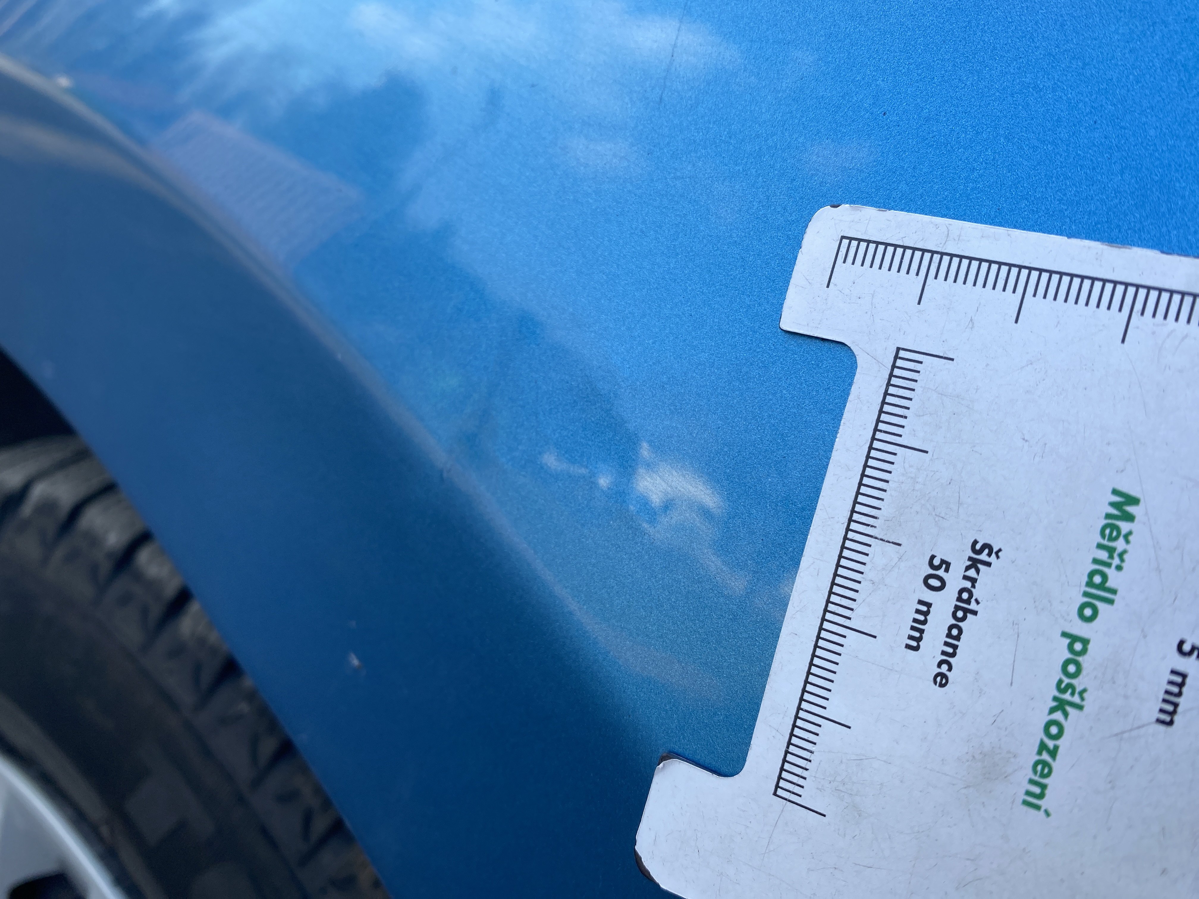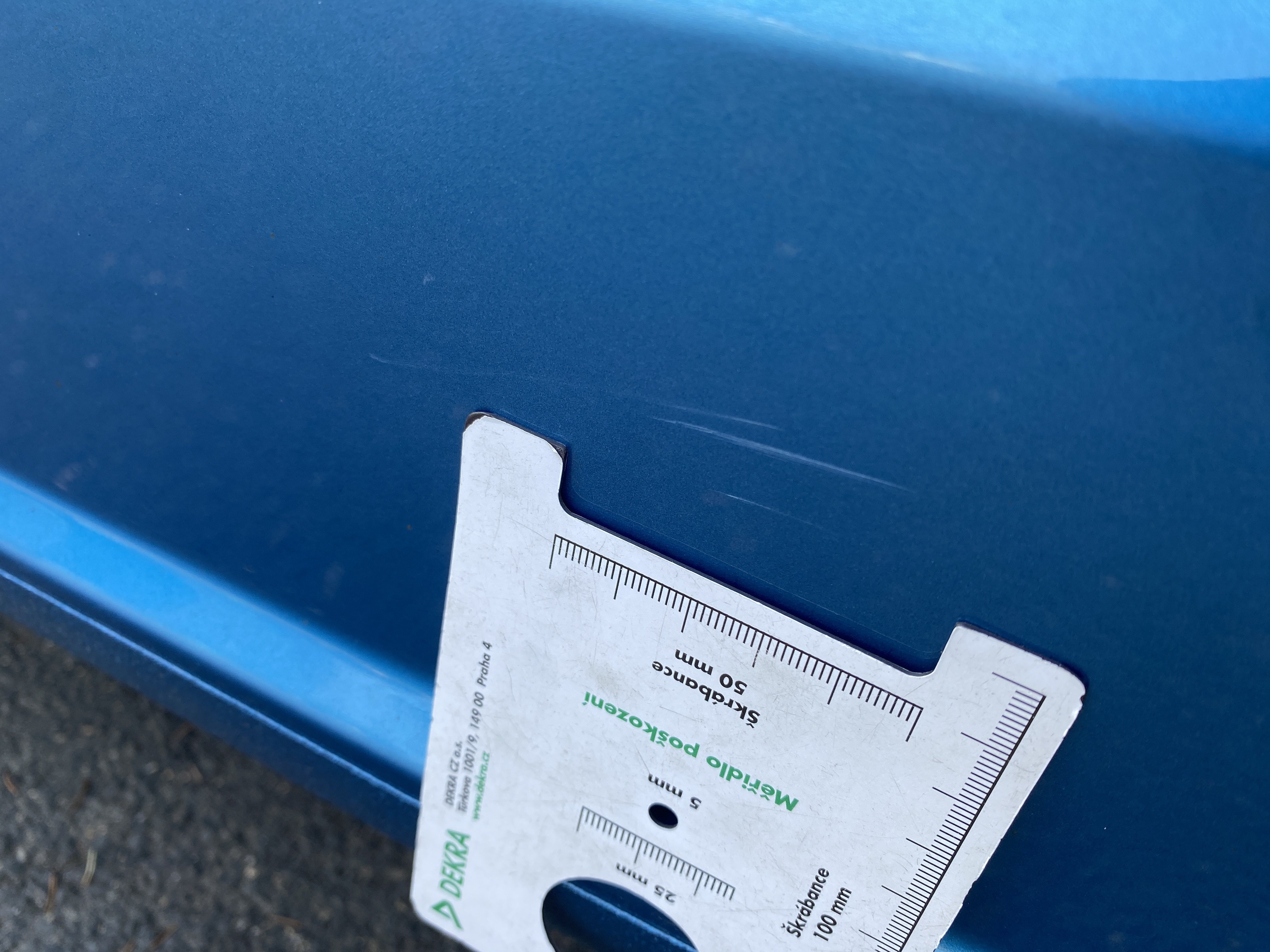 Oděrky a škrábance po obvodu karosérie, přední část karosérie je poškozená od kamínků, mírně promáčklý pravý přední blatník - jamka, odřené pravé přední dveře, odřené a promáčklé víko motorového prostoru, promáčklý levý přední blatník, mírně odřené levé přední dveře, odřený levý zadní blatník, deformace zadního nárazníku, odřené pravé přední dveře, promáčklý pravý rám střechy - jmaka, palubní počítač hlásí servisní interval, interiér vozidla poškozen,