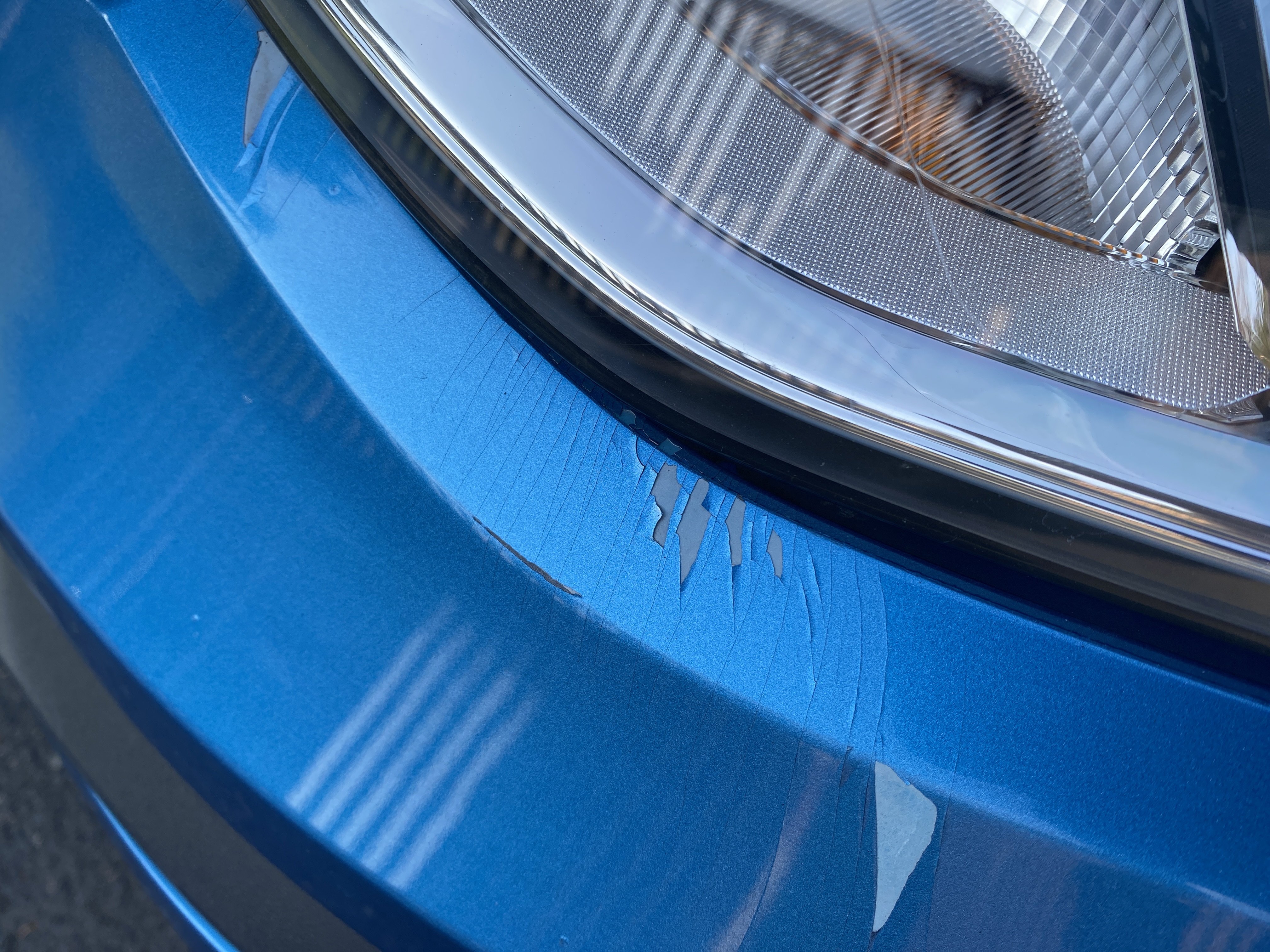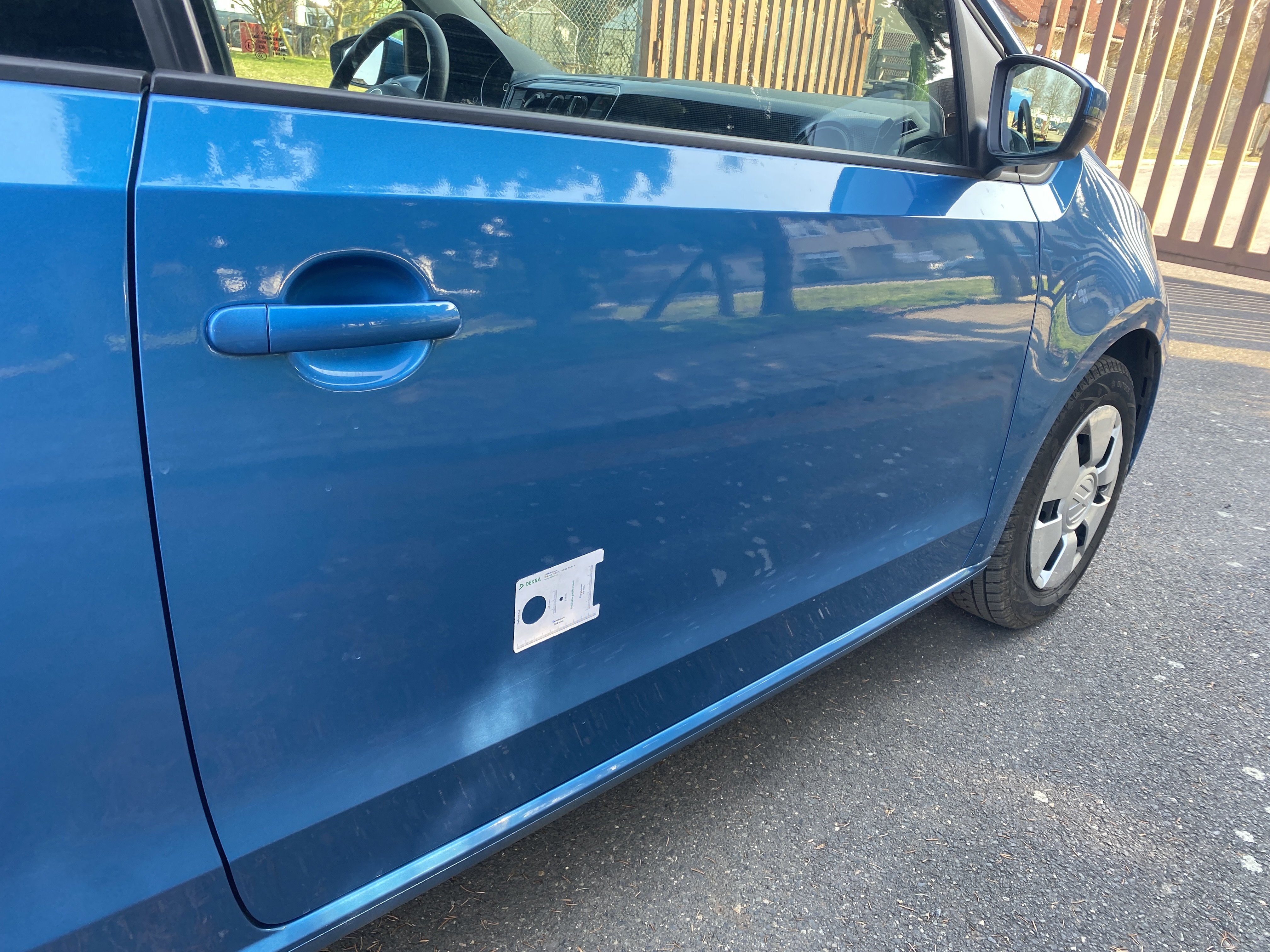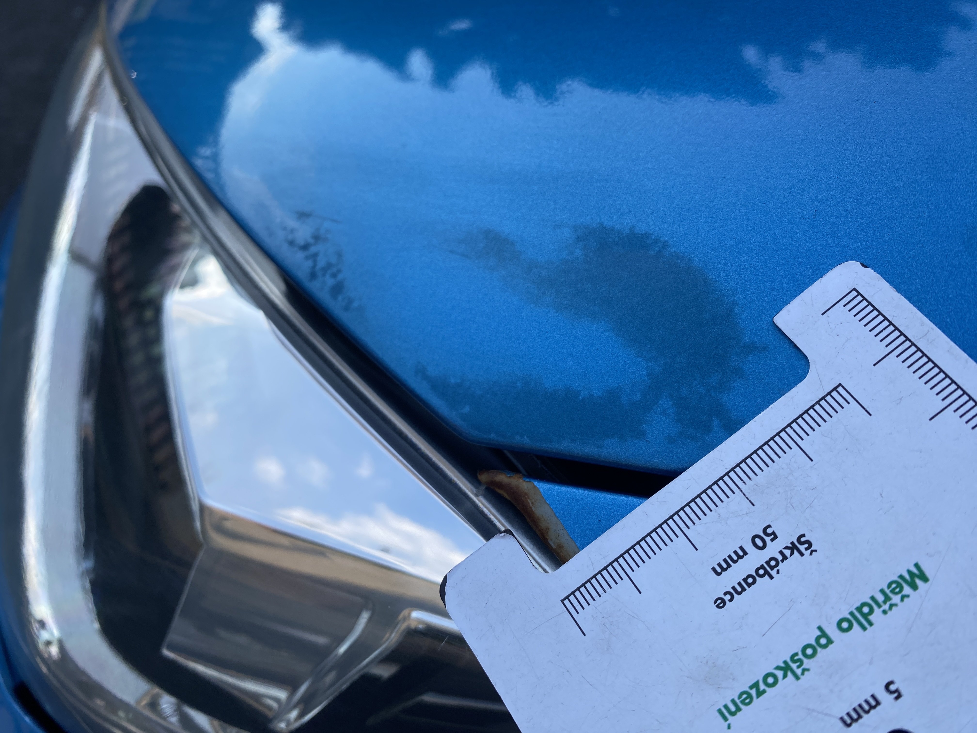 Oděrky a škrábance po obvodu karosérie, přední část karosérie je poškozená od kamínků, mírně promáčklý pravý přední blatník - jamka, odřené pravé přední dveře, odřené a promáčklé víko motorového prostoru, promáčklý levý přední blatník, mírně odřené levé přední dveře, odřený levý zadní blatník, deformace zadního nárazníku, odřené pravé přední dveře, promáčklý pravý rám střechy - jmaka, palubní počítač hlásí servisní interval, interiér vozidla poškozen,