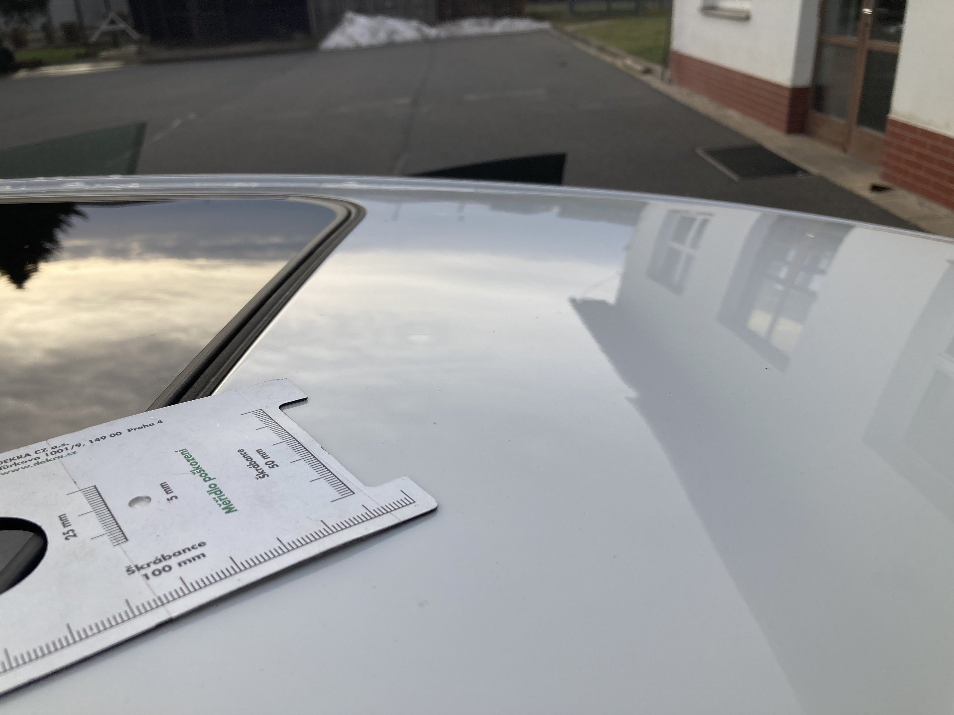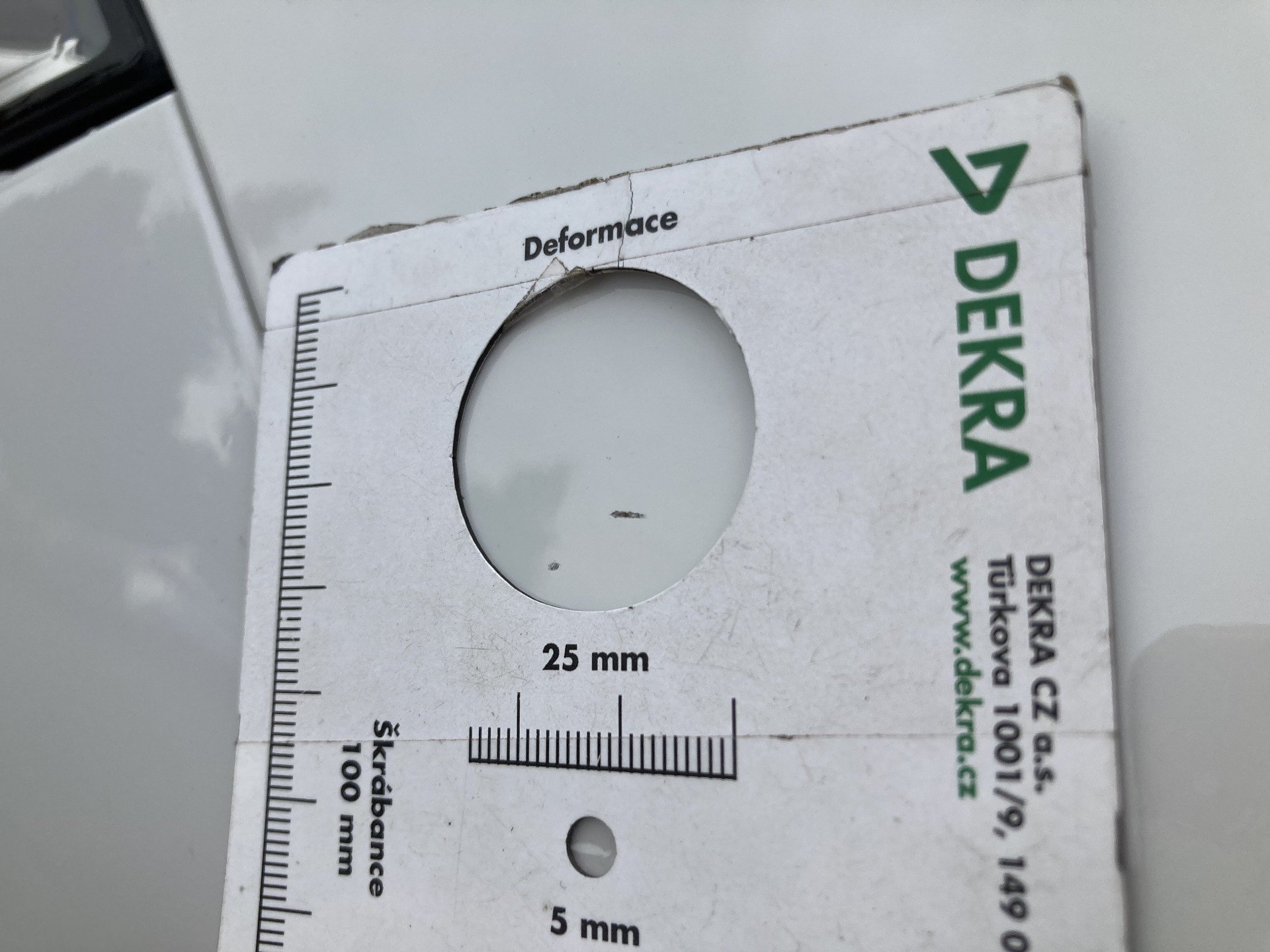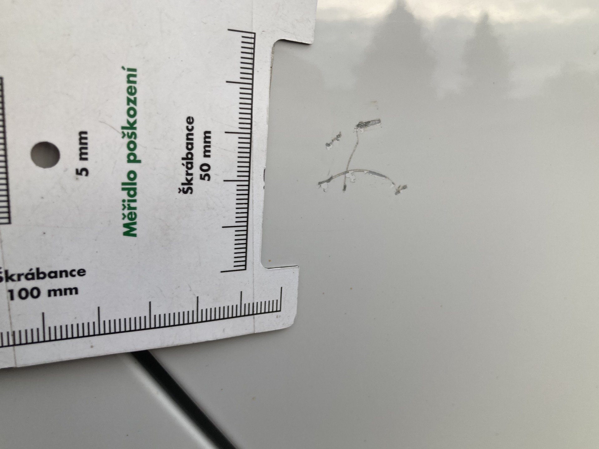 Oděrky a škrábance po obvodu karosérie, přední část karosérie je poškozená od kamínku, mírně promáčklé víko motorového prostoru - jamky, mírně odřené levé přední dveře, odřený levý plastový práh v zadní části, odřený lem levého zadního blatníku, mírně promáčklé víko zavazadlového prostoru - jamky, mírně promáčklá střecha - jamky, odřený zadní nárazník, odřené pravé zadní dveře, odřené pravé přední dveře, odřený kryt pravého zpětného zrcátka, interiér vozidla opotřeben, karosérie vozidla poškozená kroupy,